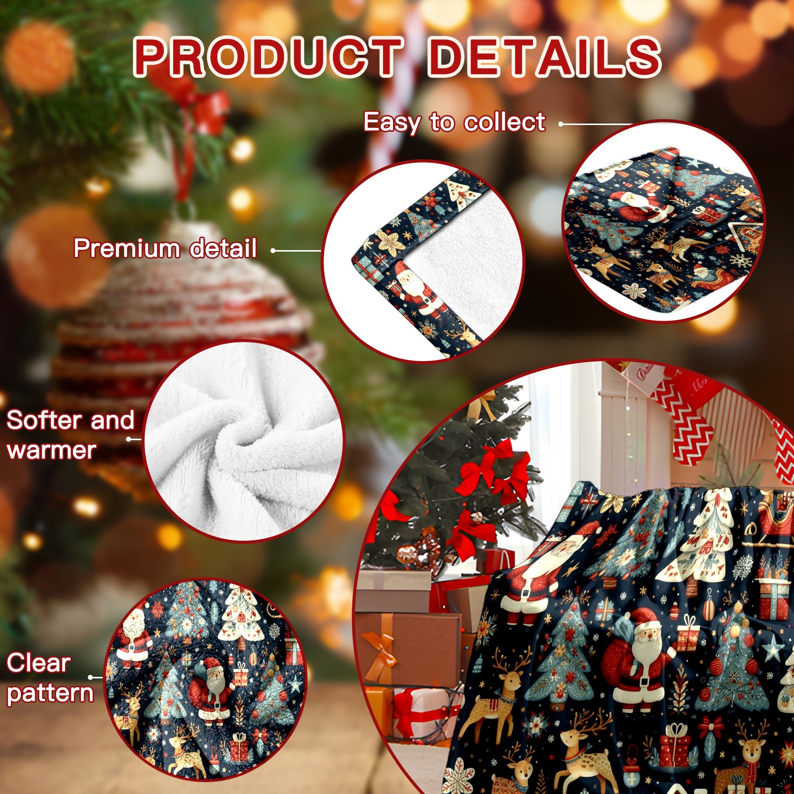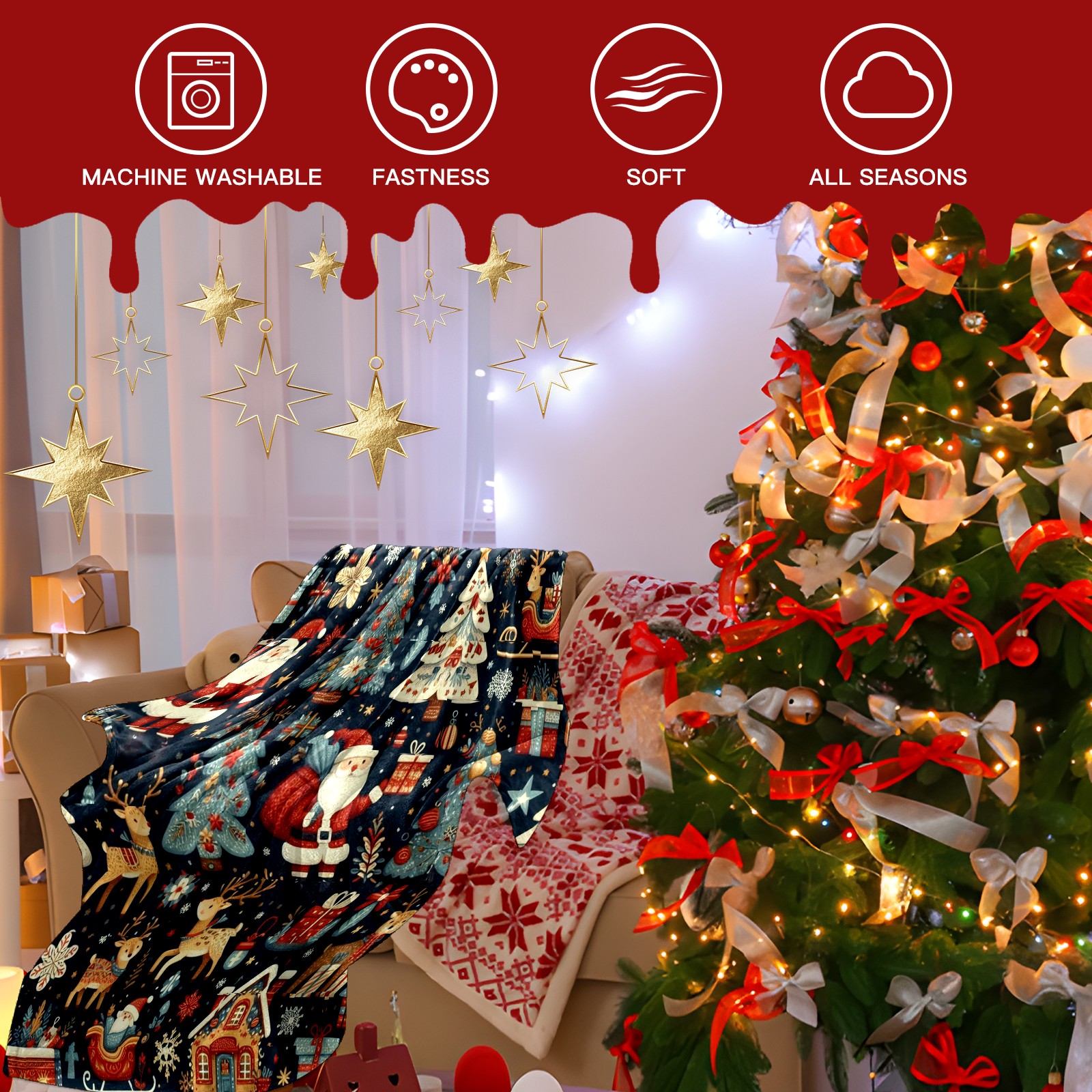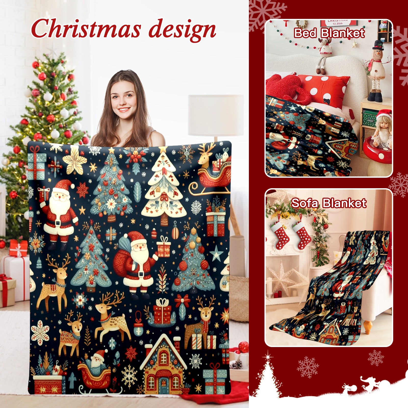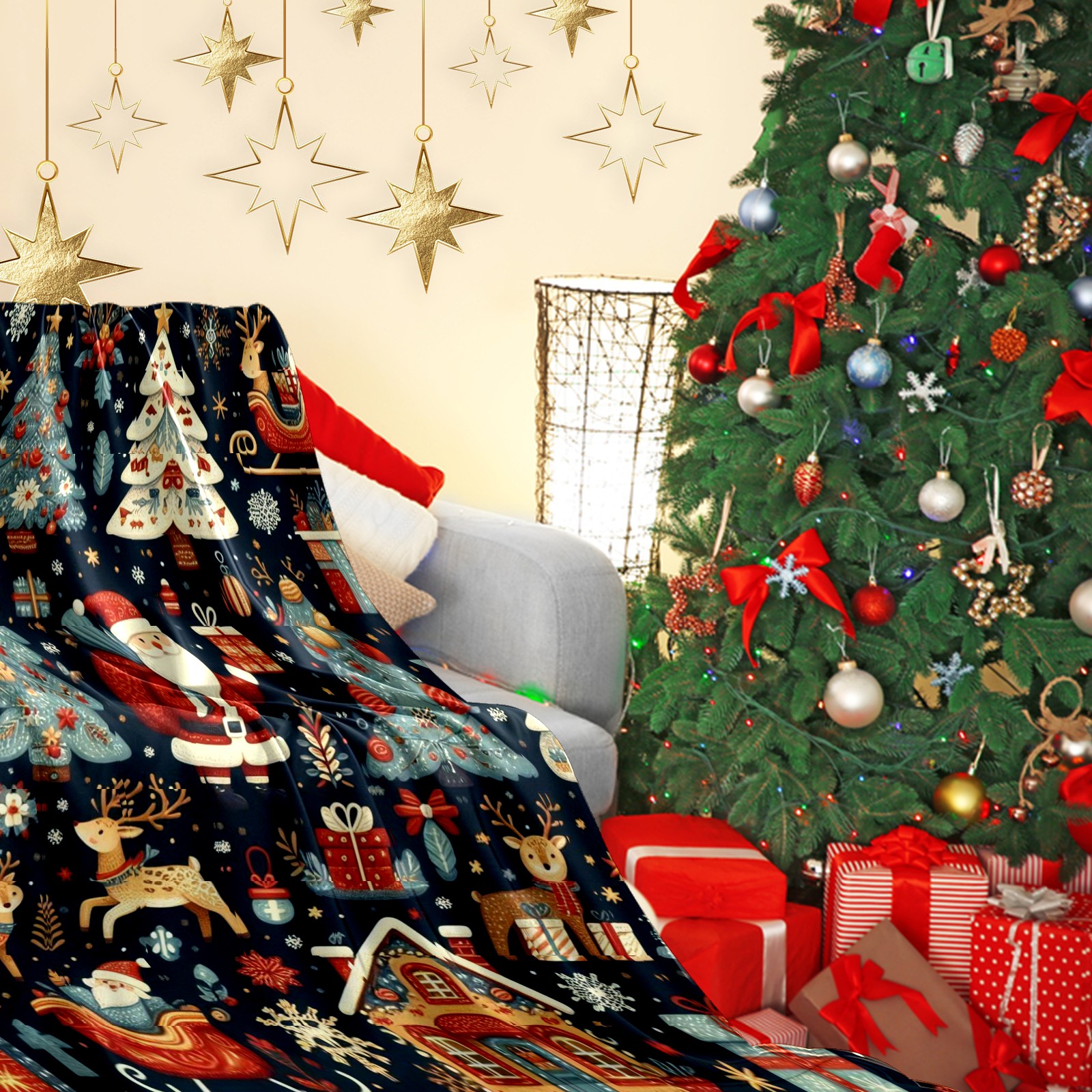 Премиальная фланелевая одеяло Dark Blue Christmas Santa Scenes