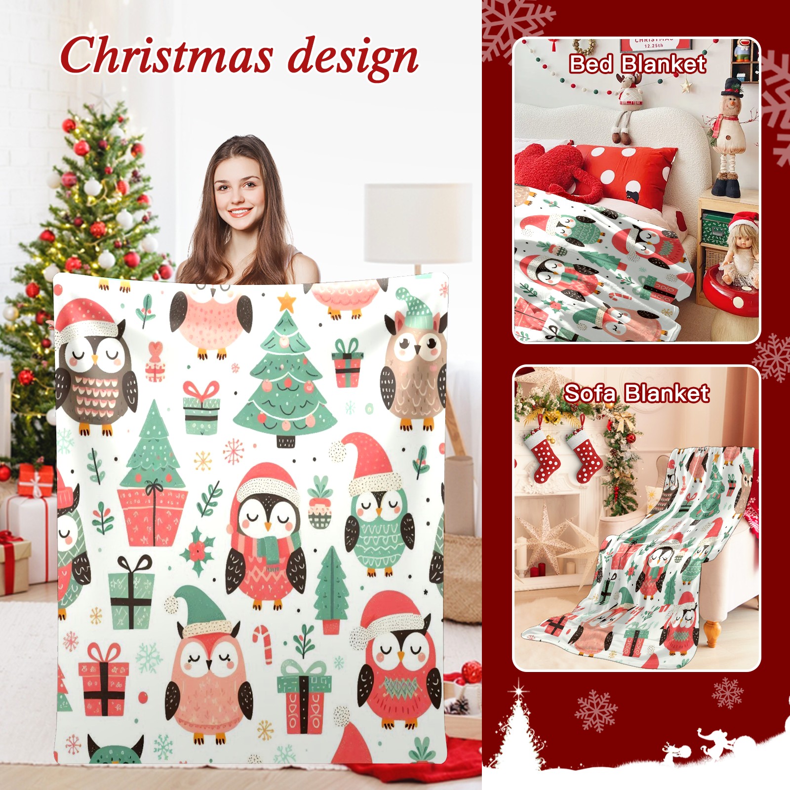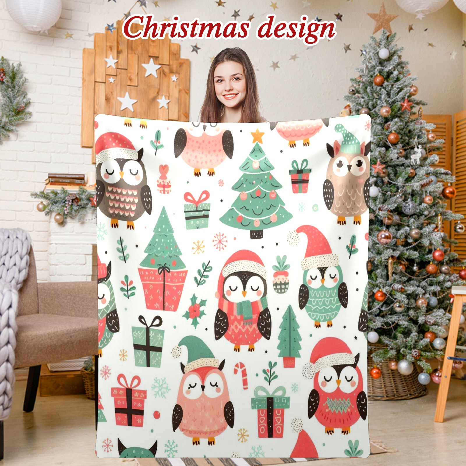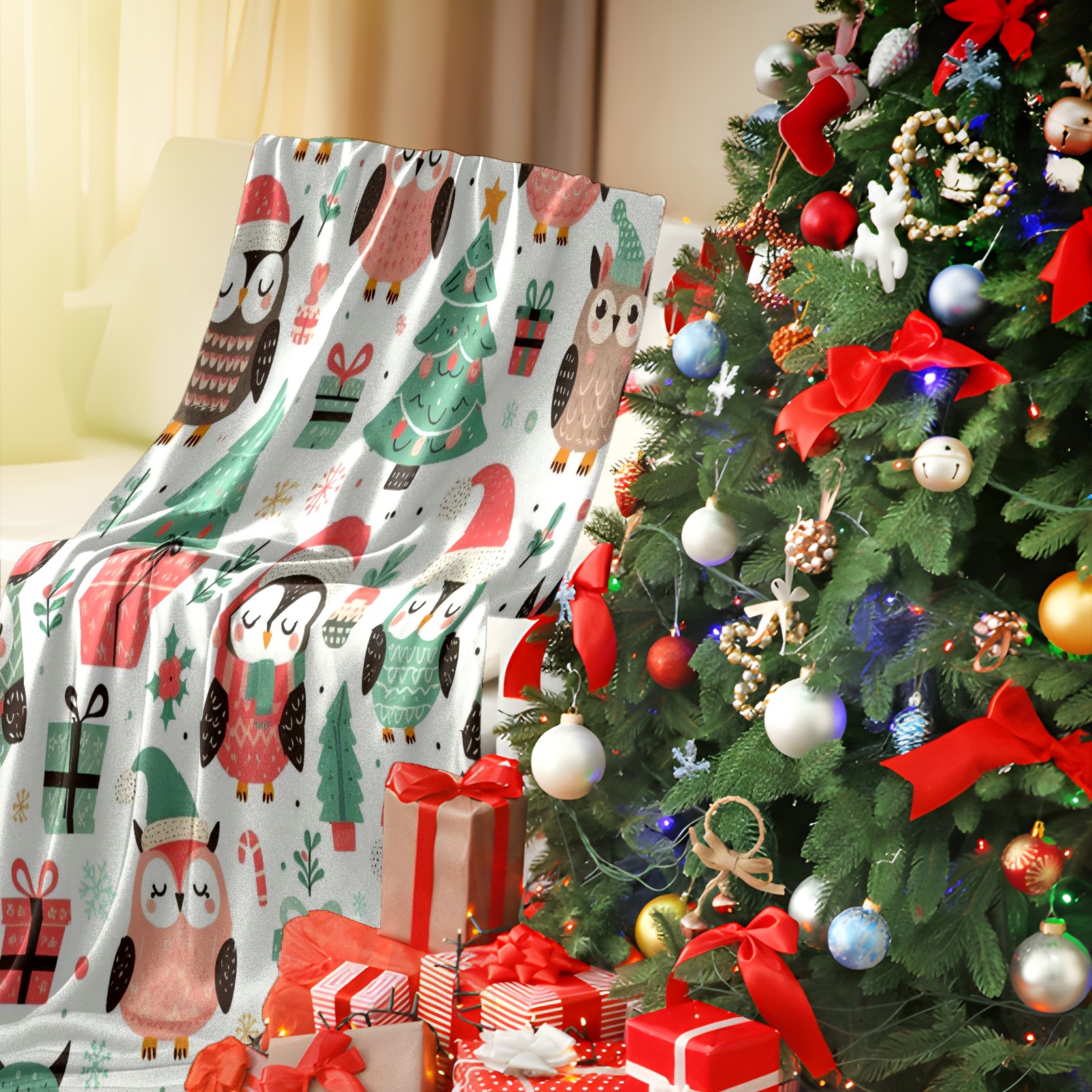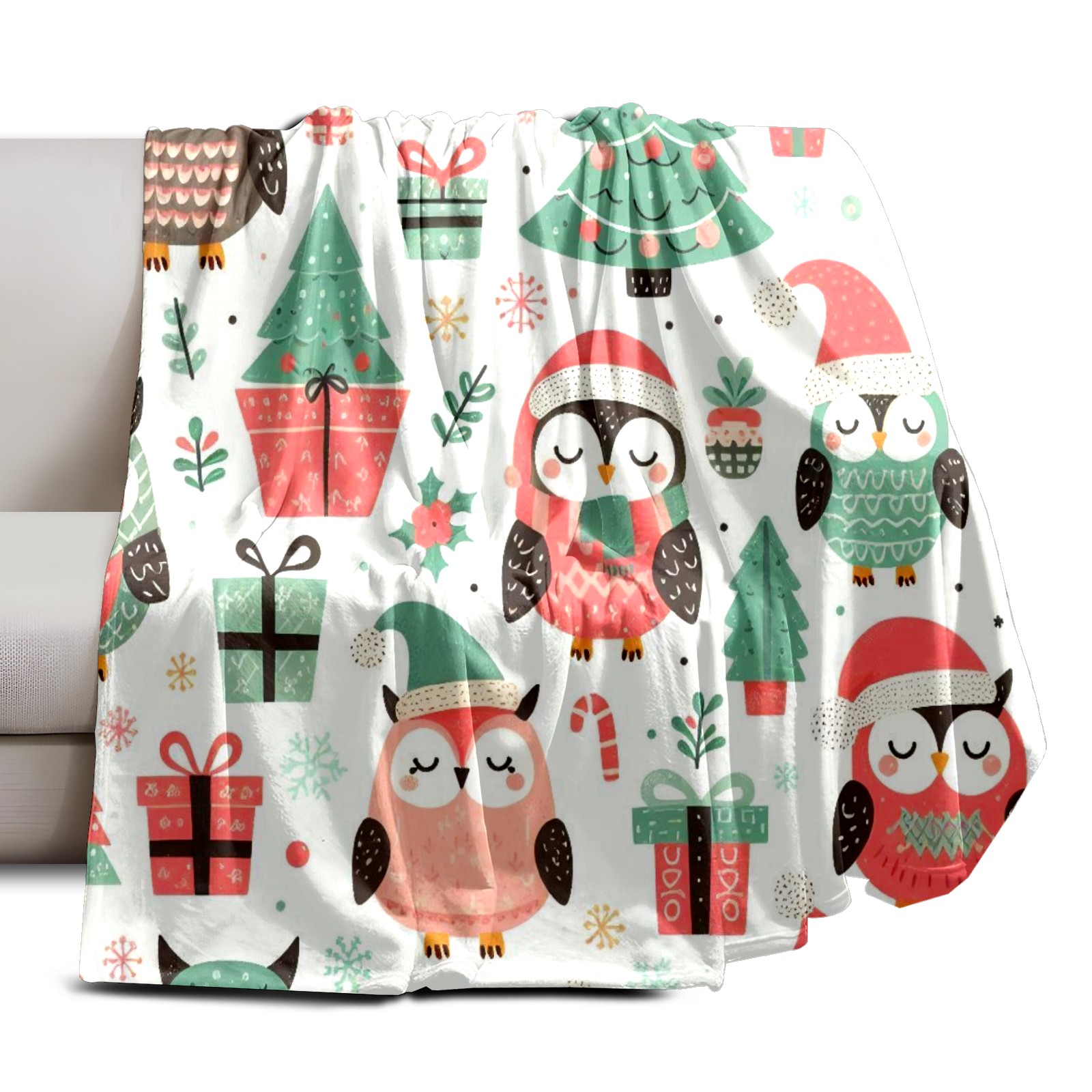 Премиальная фланелевая одеяло Pink Christmas Owls Gifts