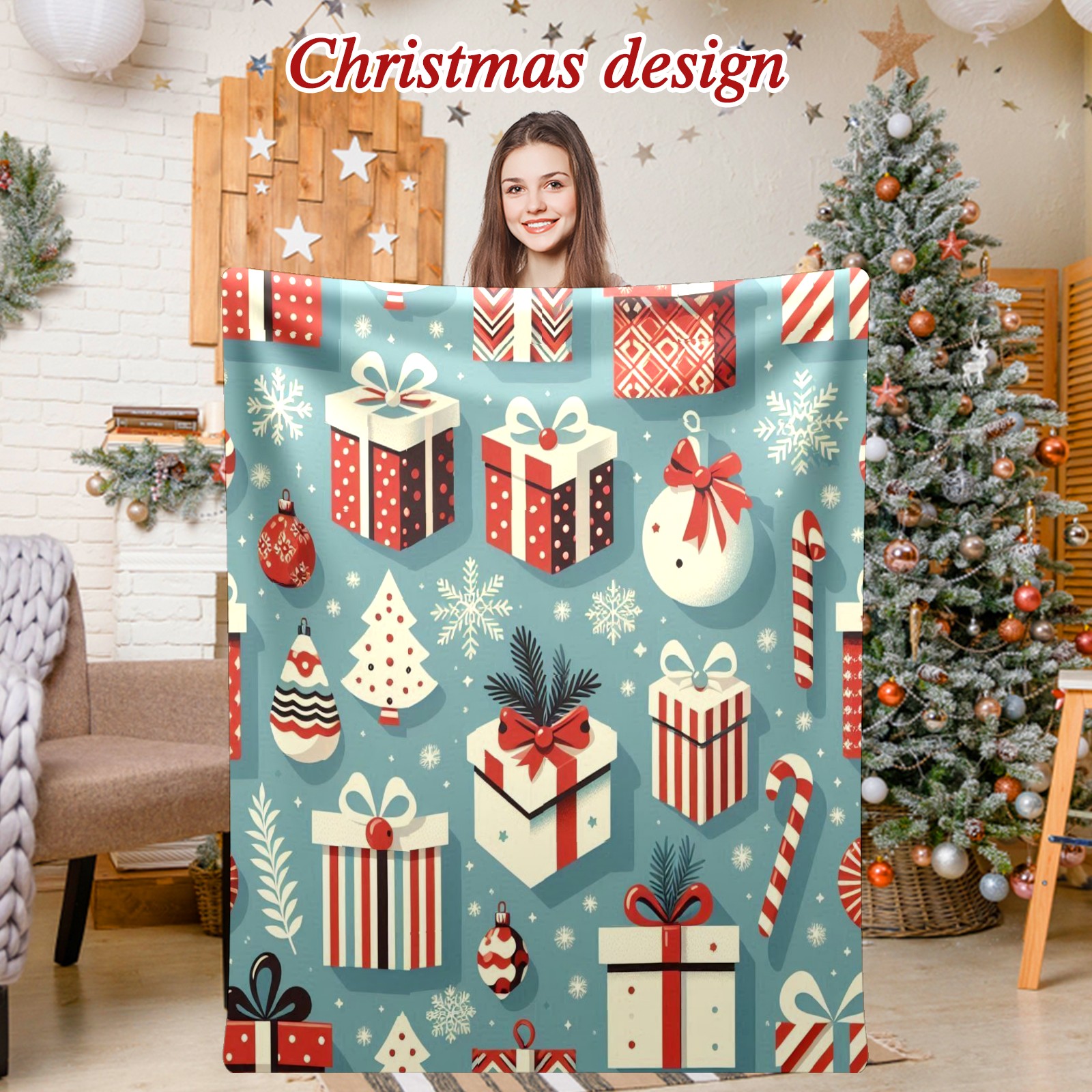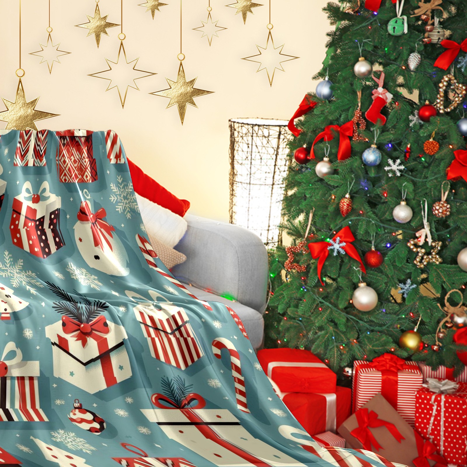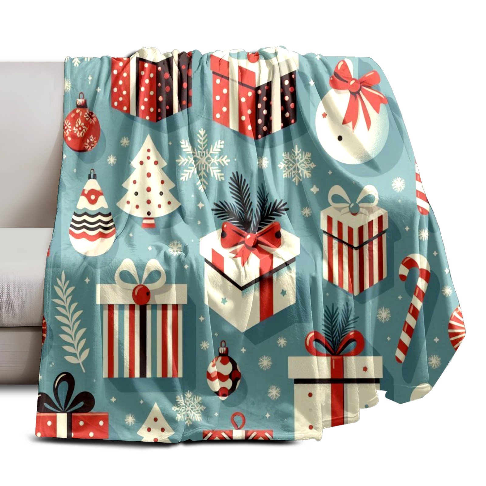 Премиальная фланелевая одеяло Blue Christmas Presents