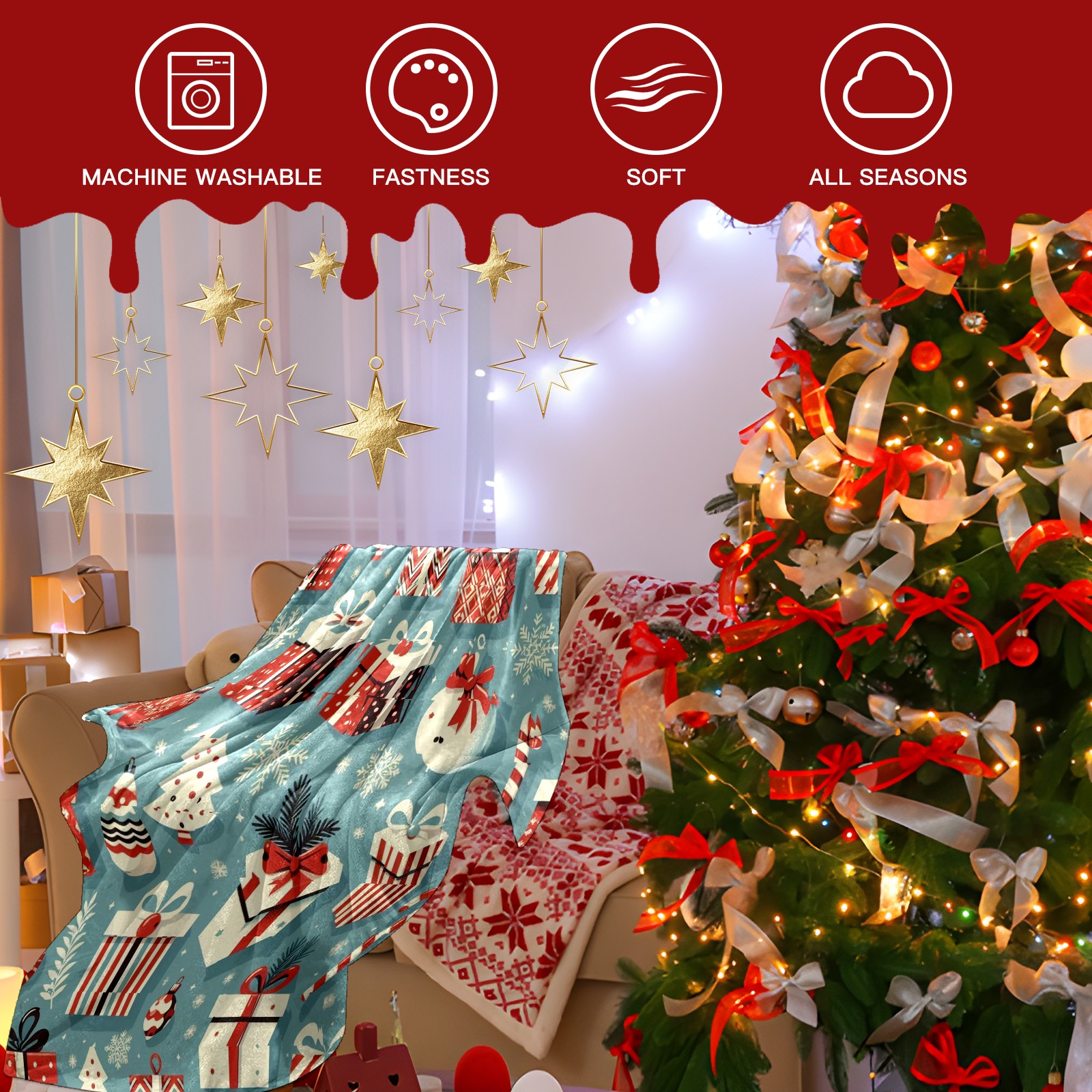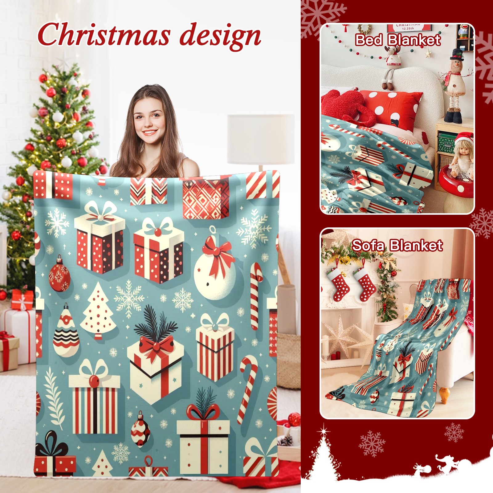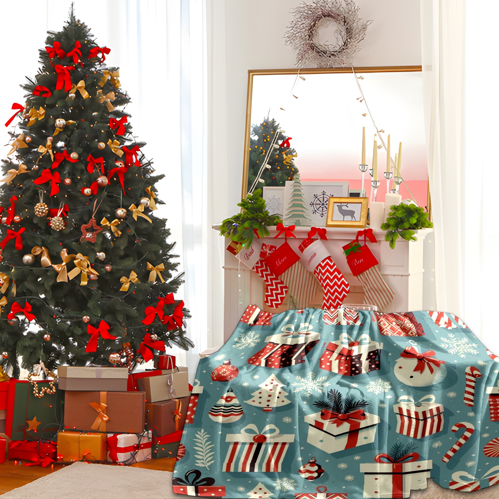 Премиальная фланелевая одеяло Blue Christmas Presents