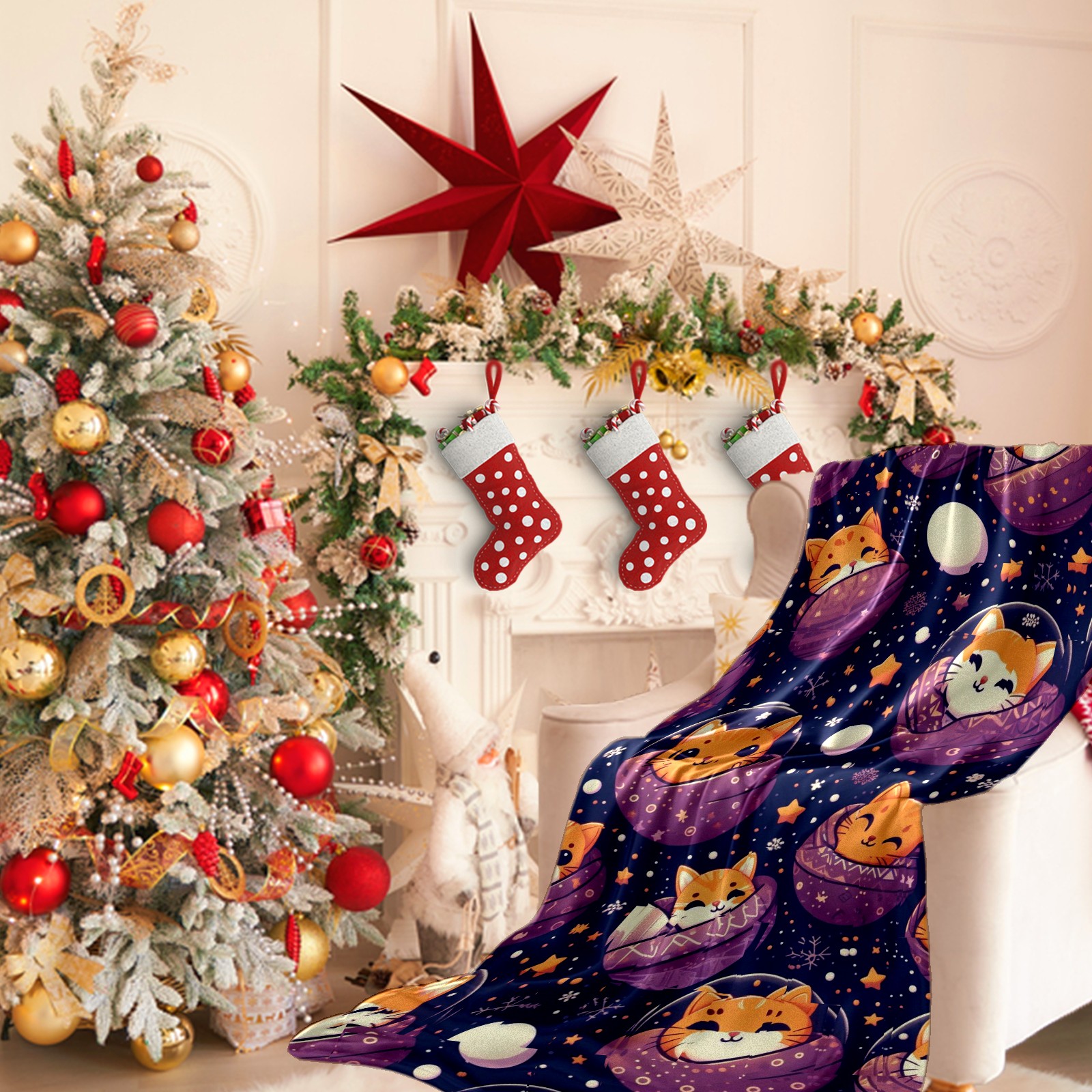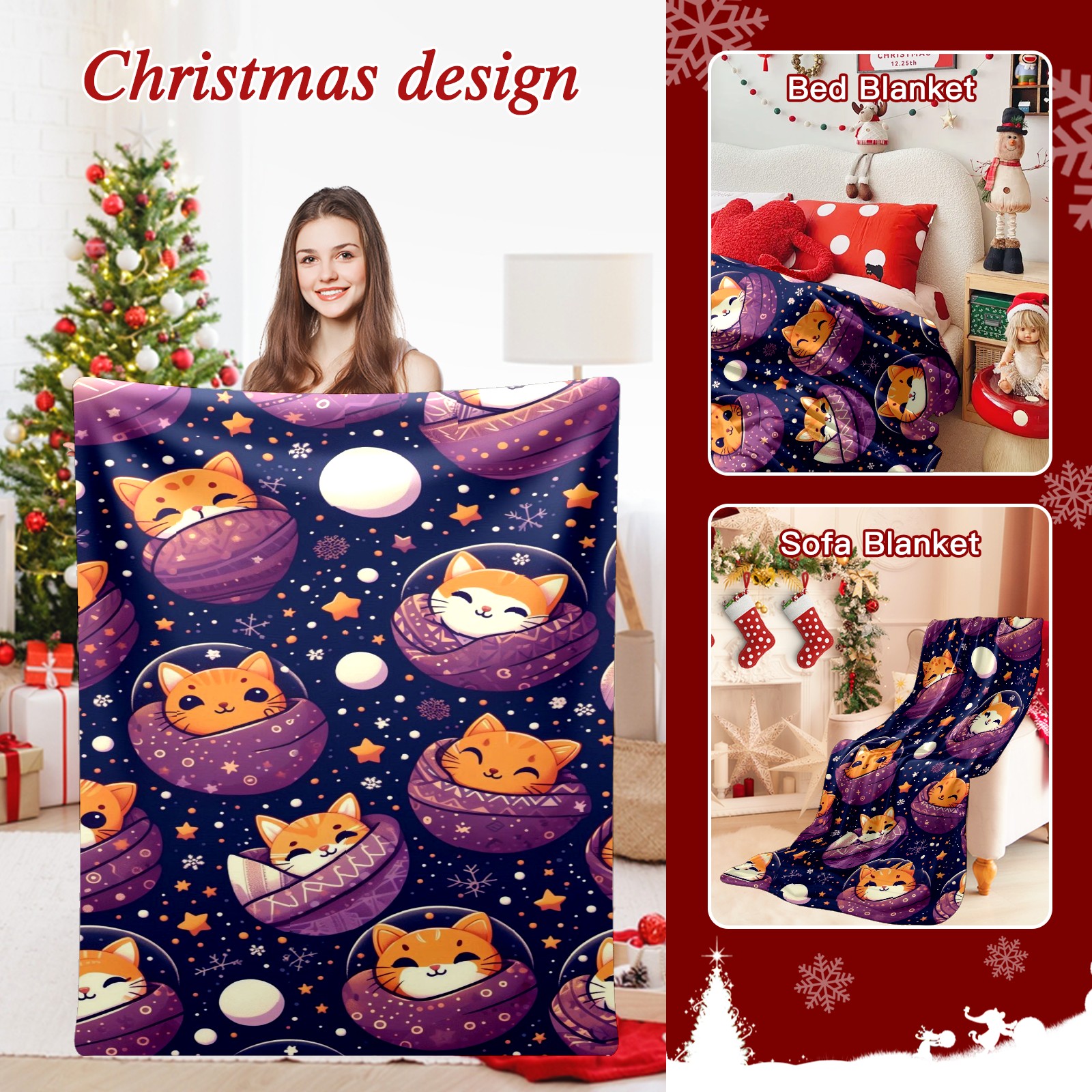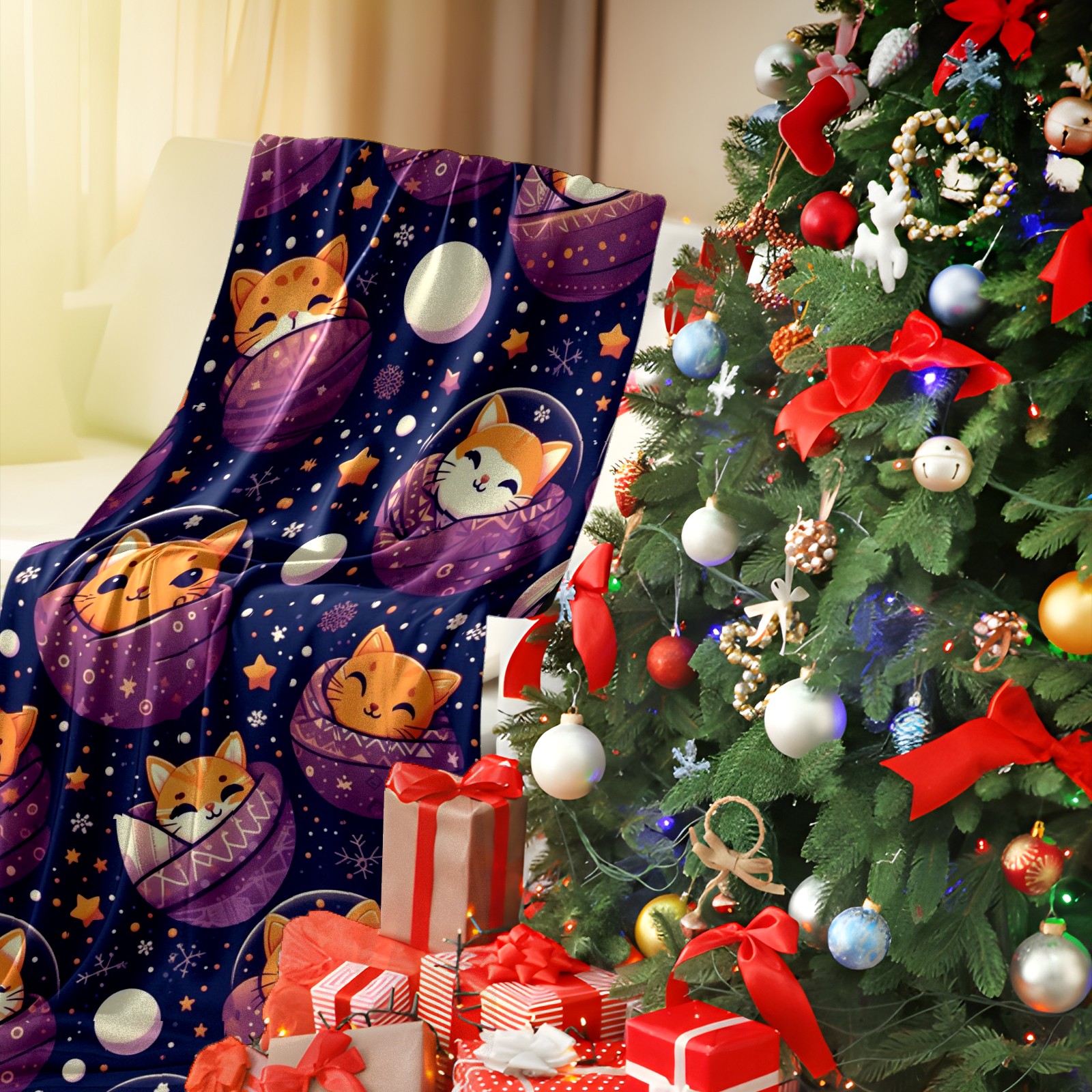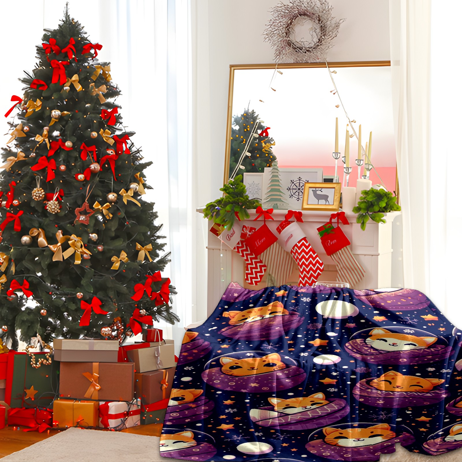 Премиальная фланелевая одеяло Purple Christmas Foxes
