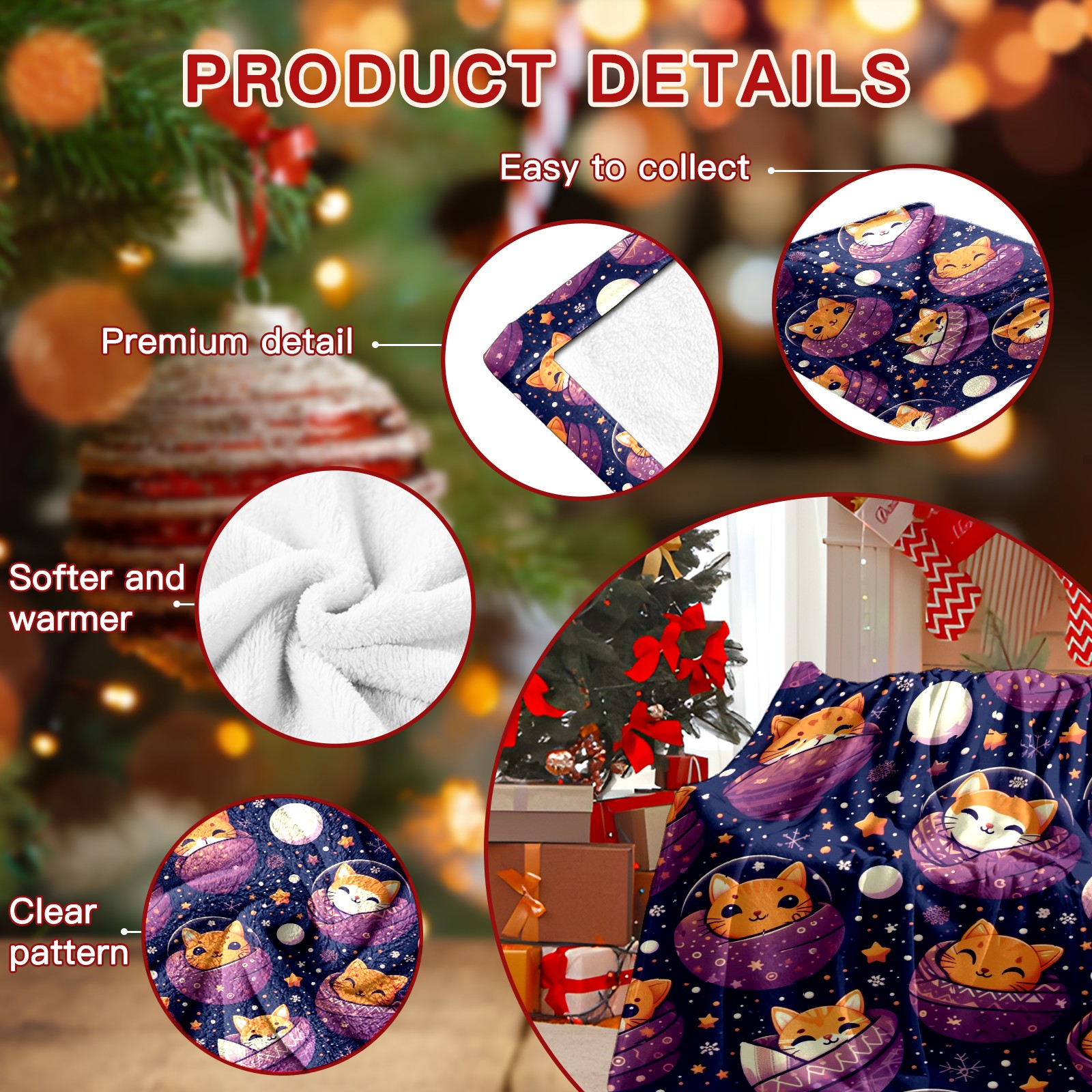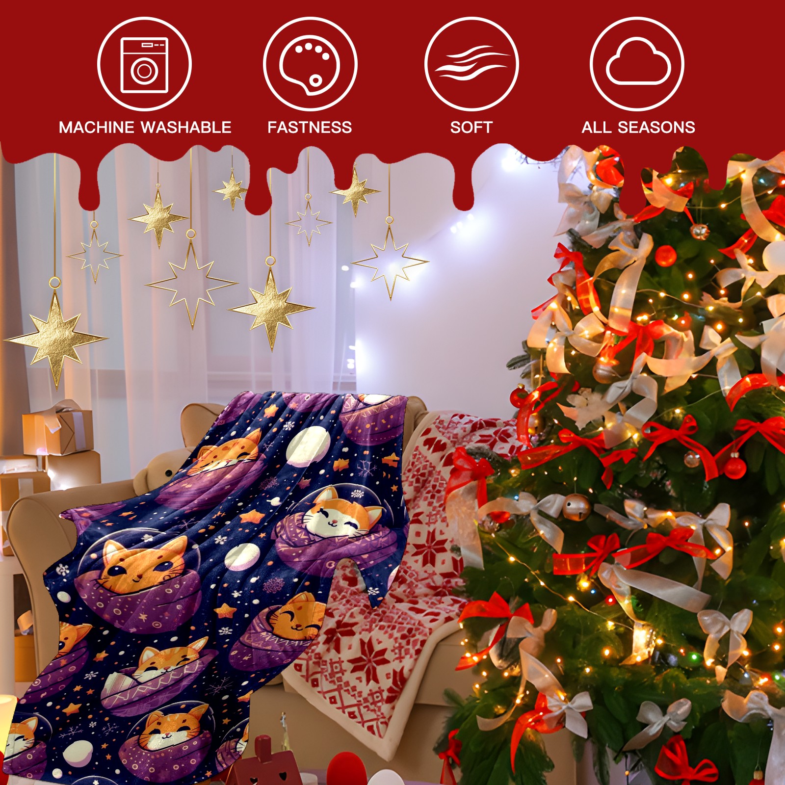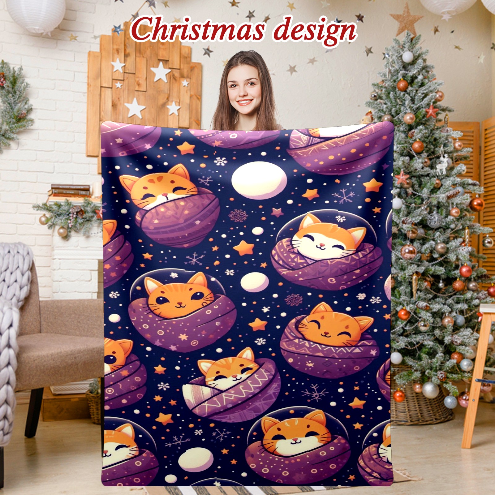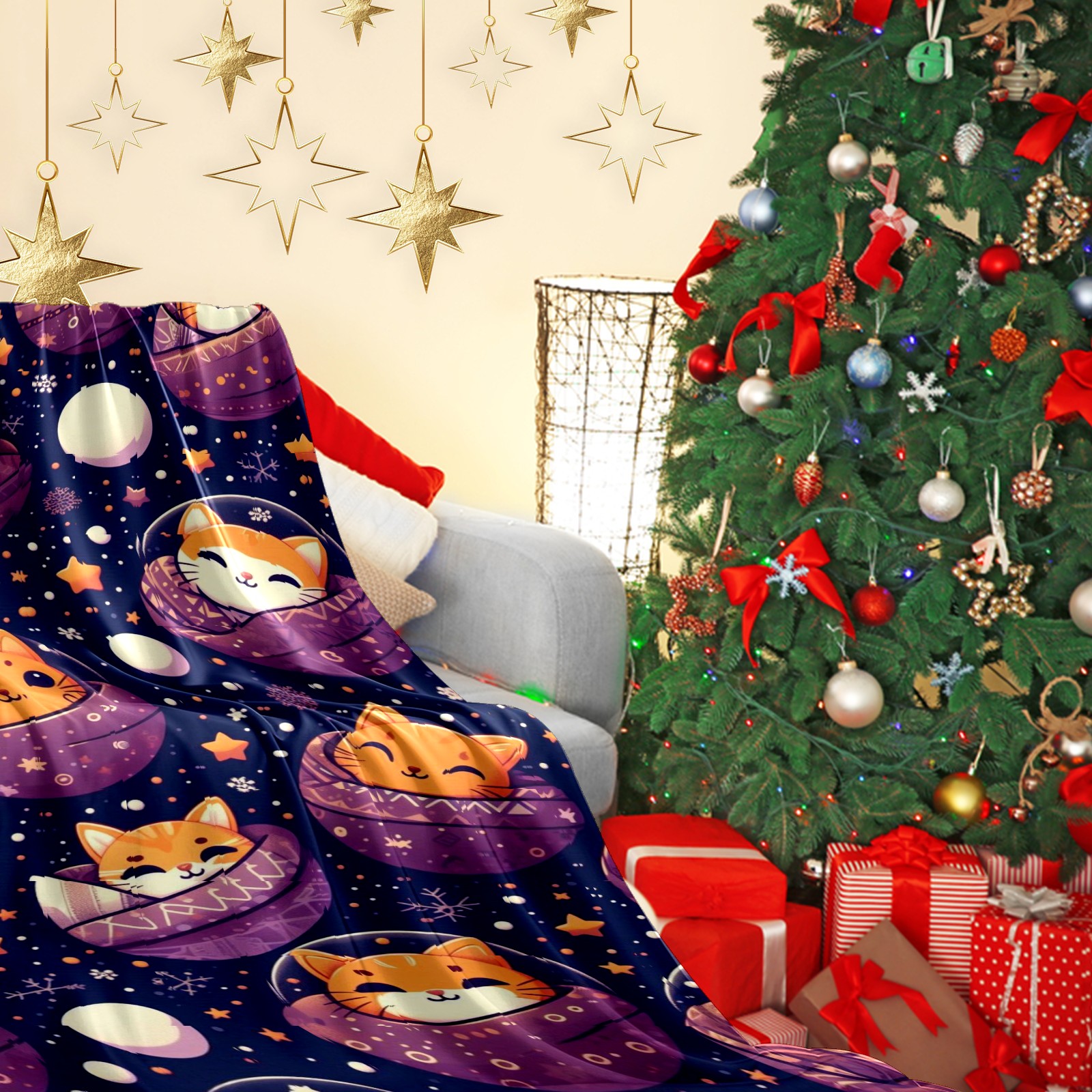 Премиальная фланелевая одеяло Purple Christmas Foxes