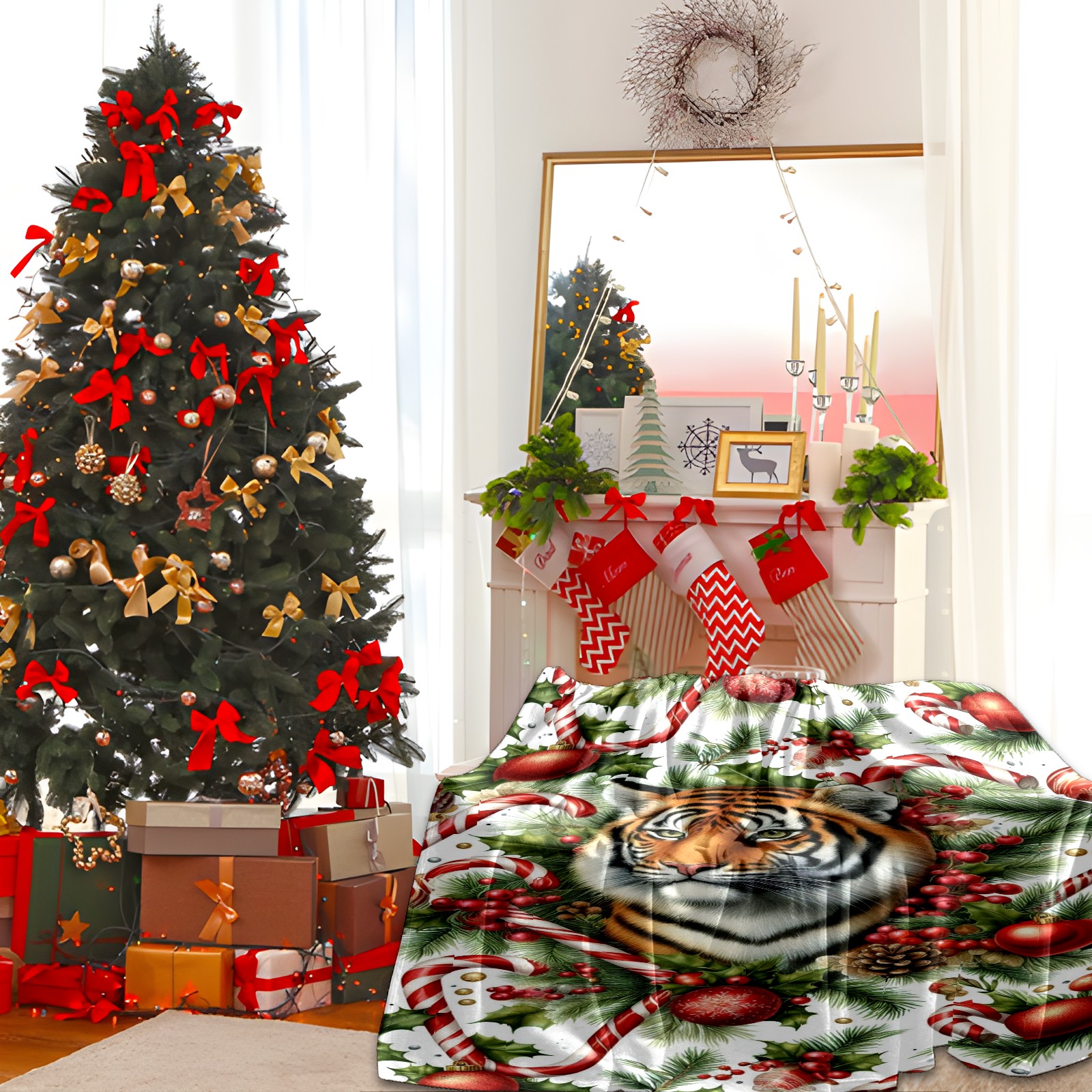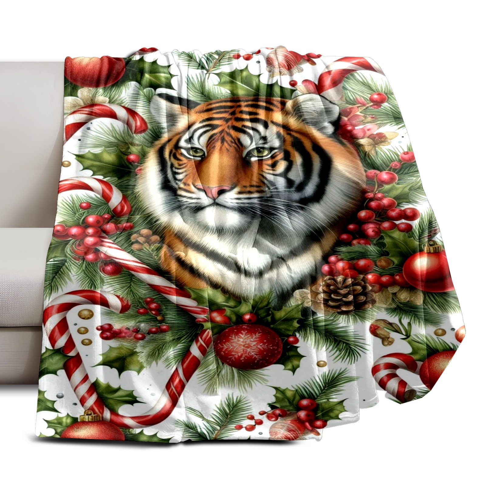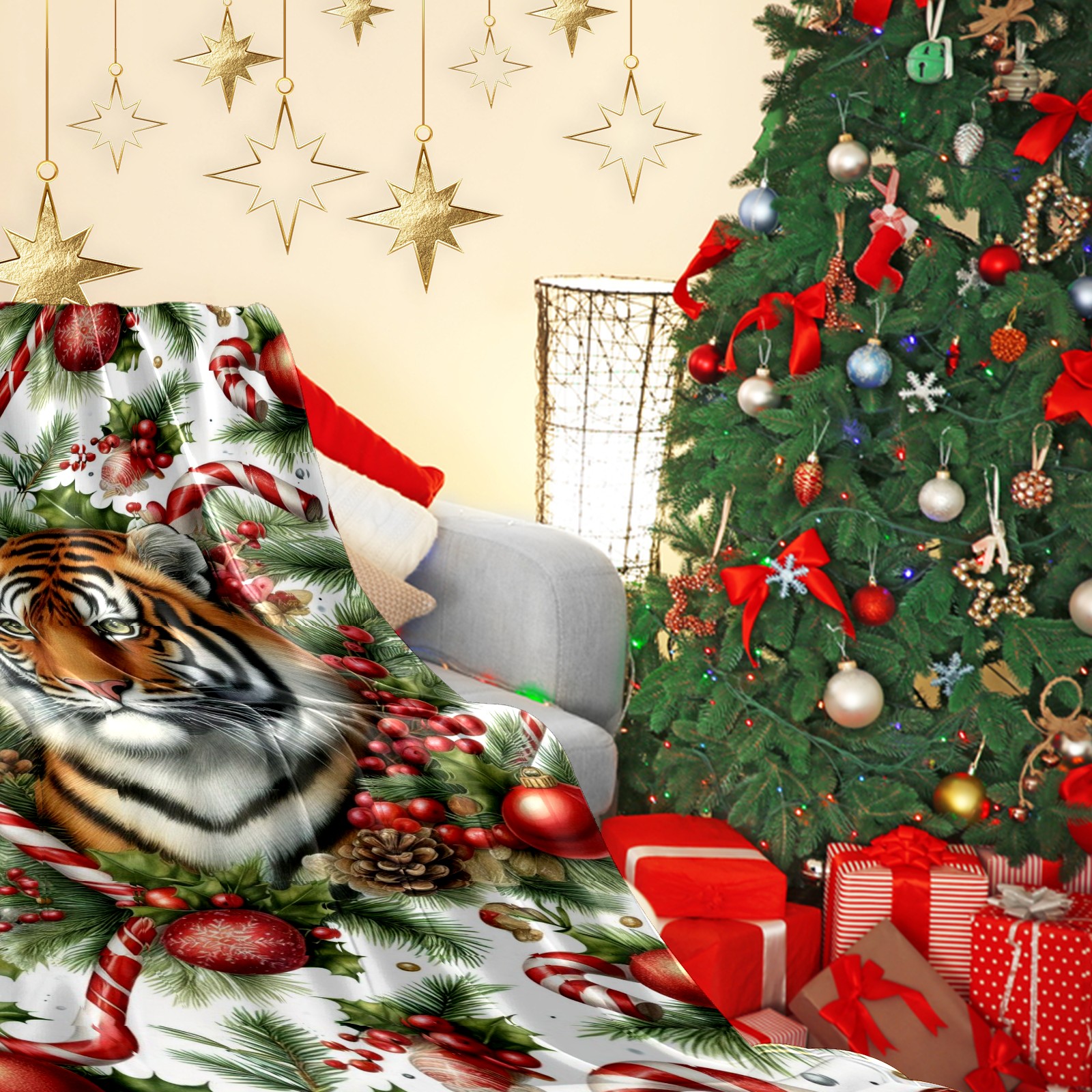 Премиальная фланелевая одеяло Red Christmas Tiger