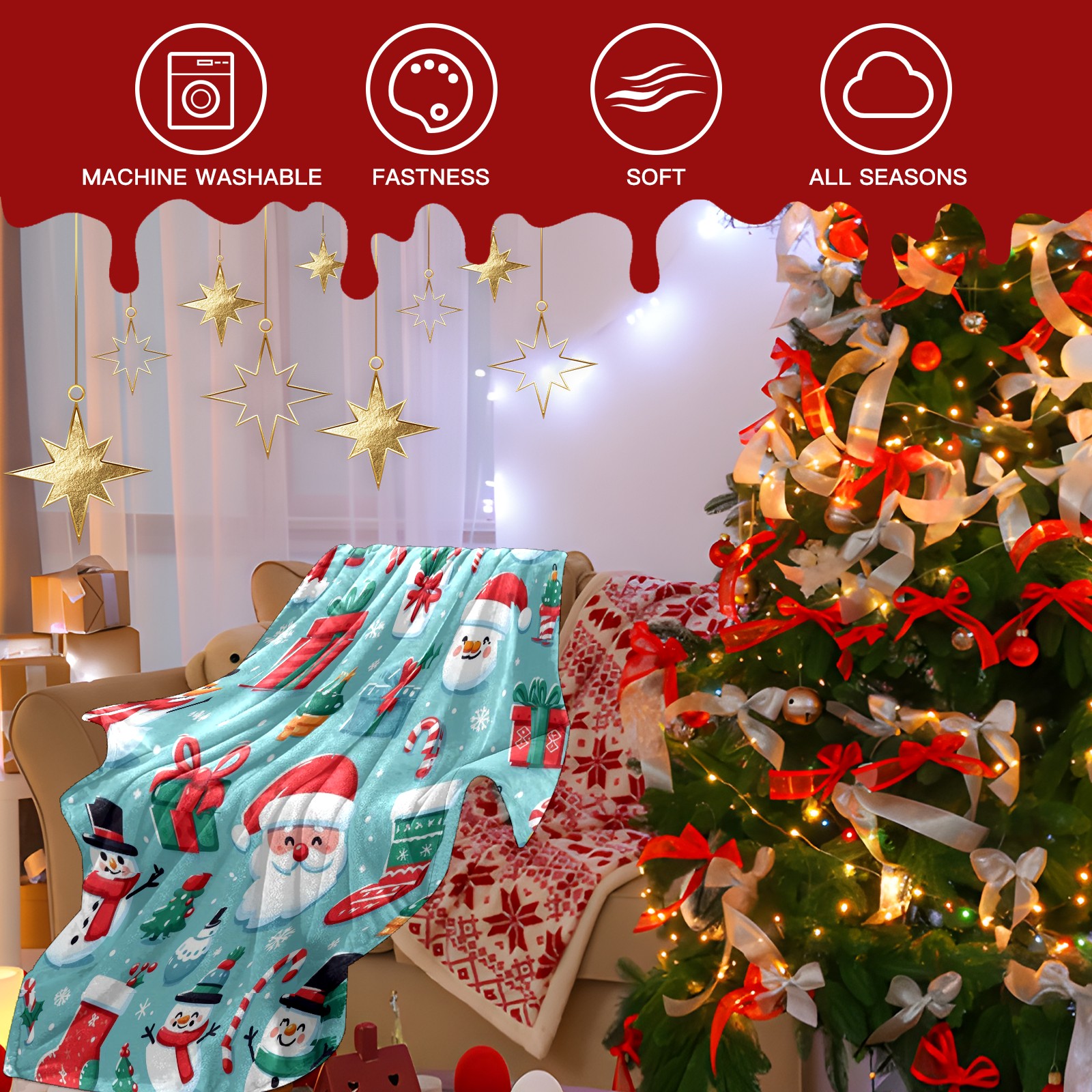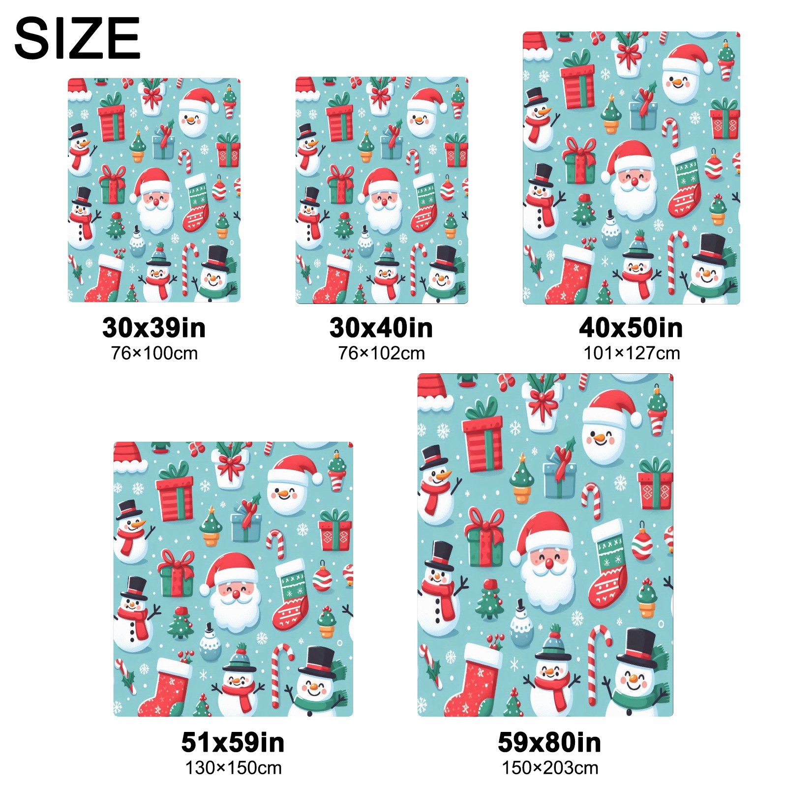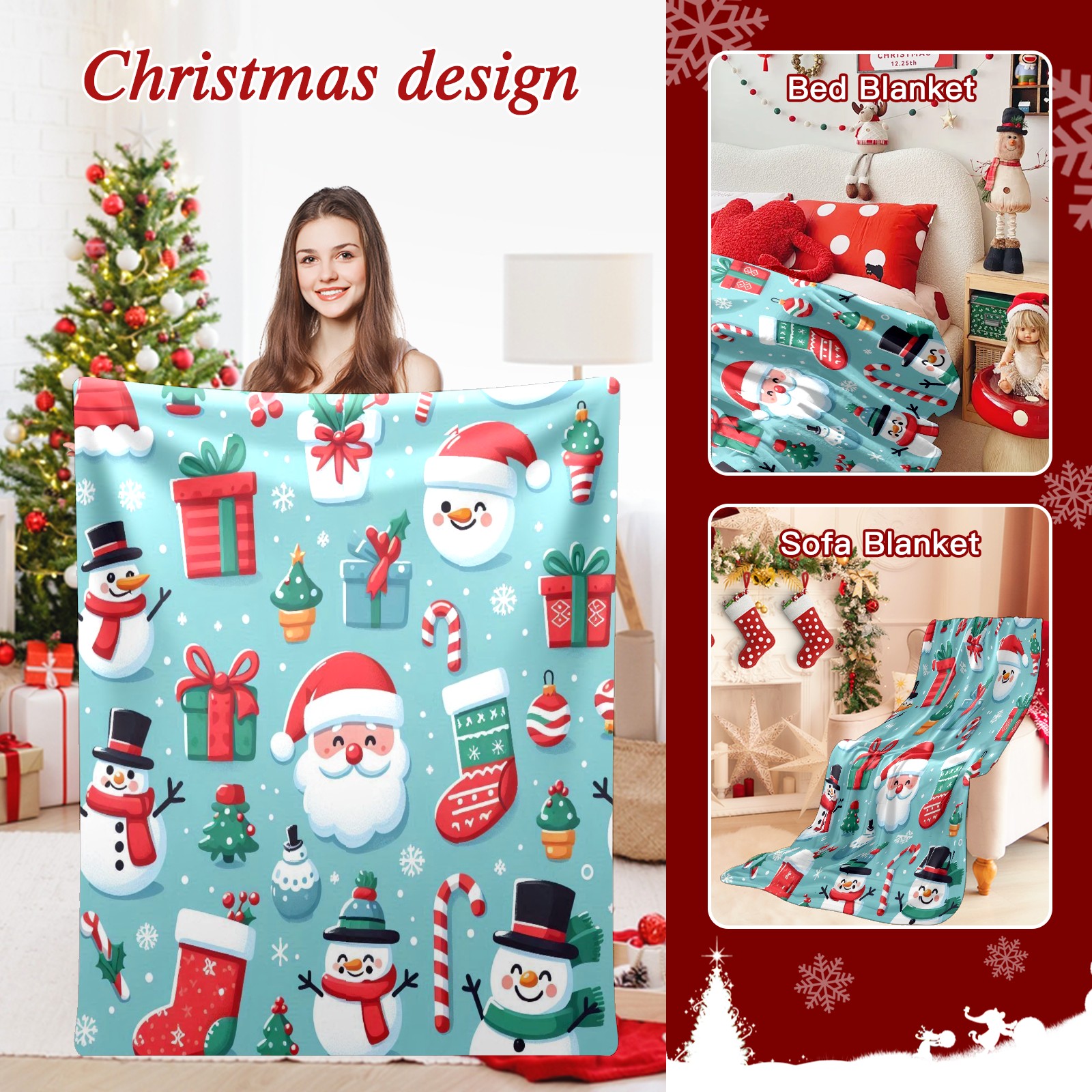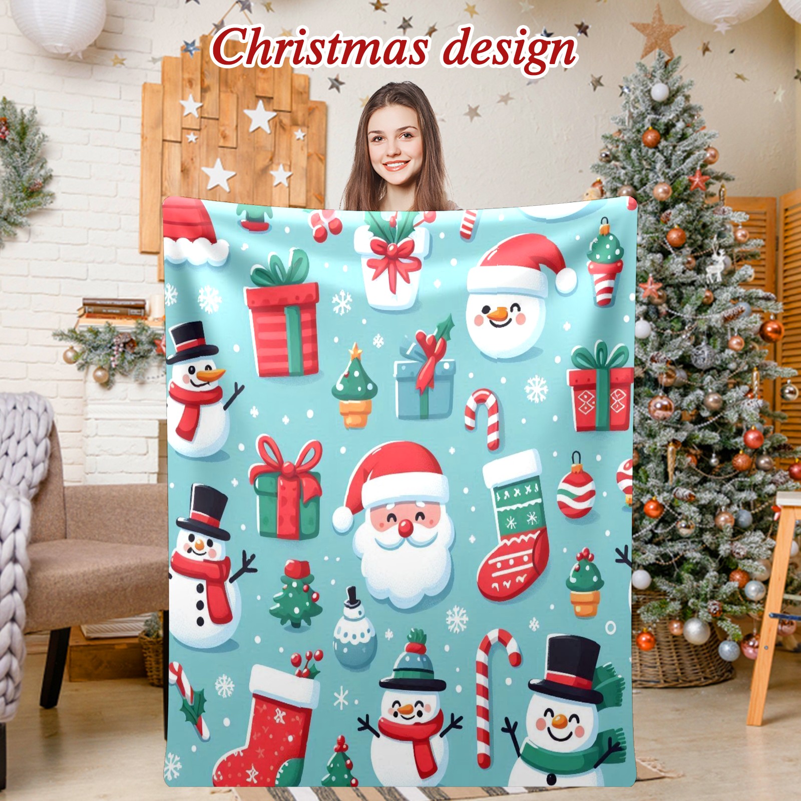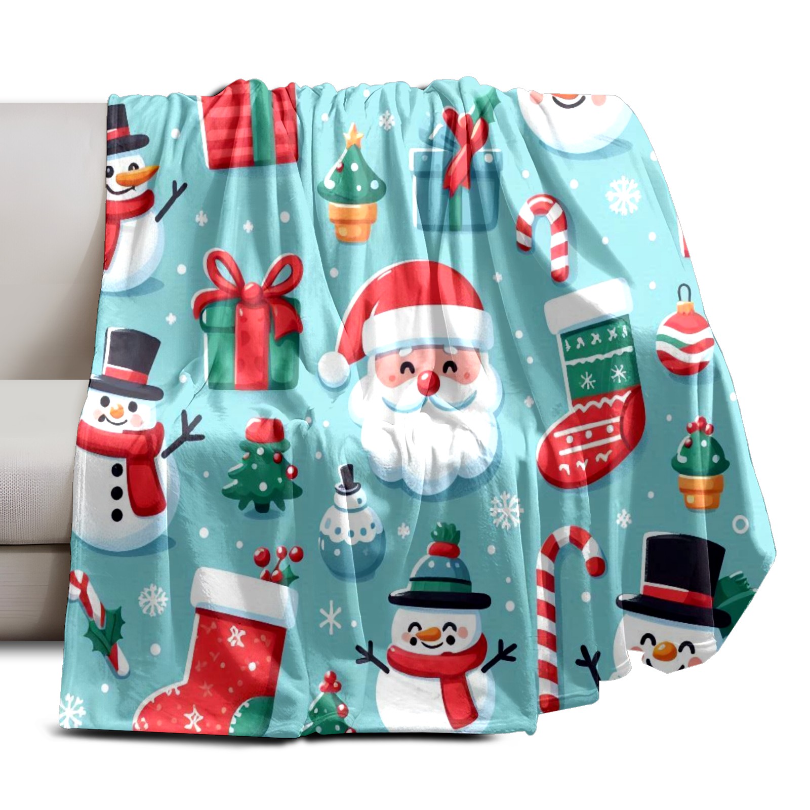 Премиальная фланелевая одеяло Blue Christmas Snowmen Santa