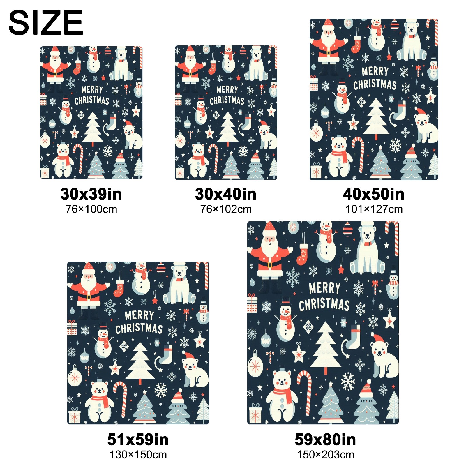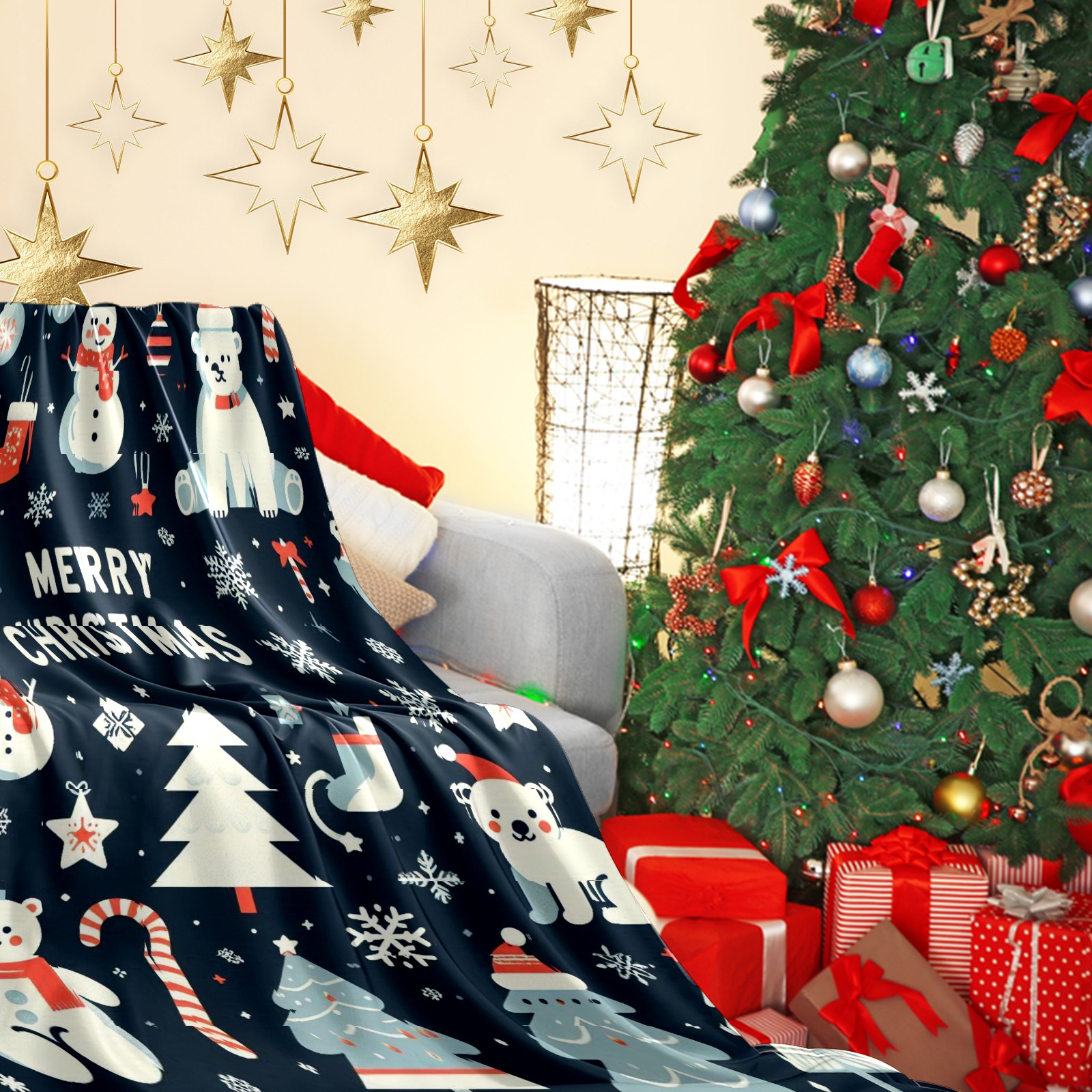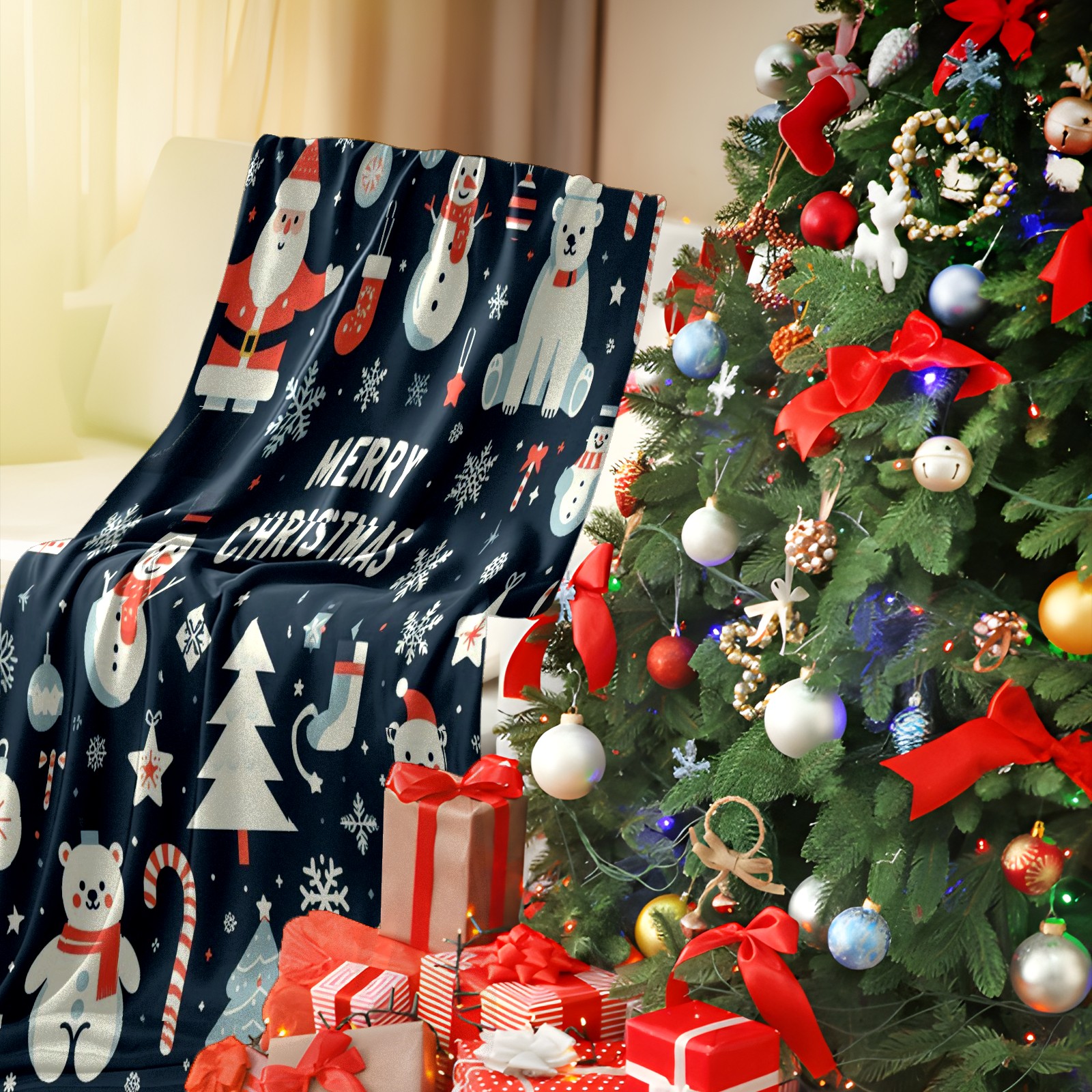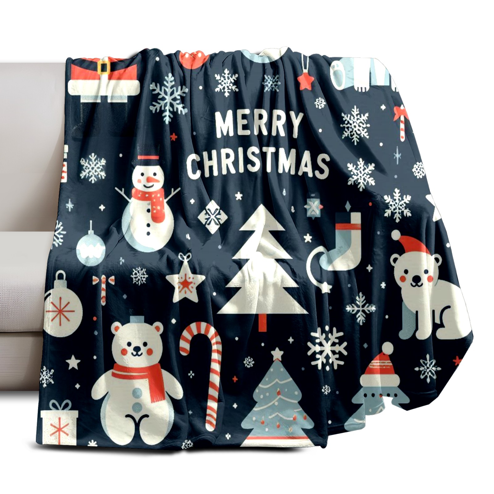 Премиальная фланелевая одеяло Blue Christmas Polar Bears Snowmen