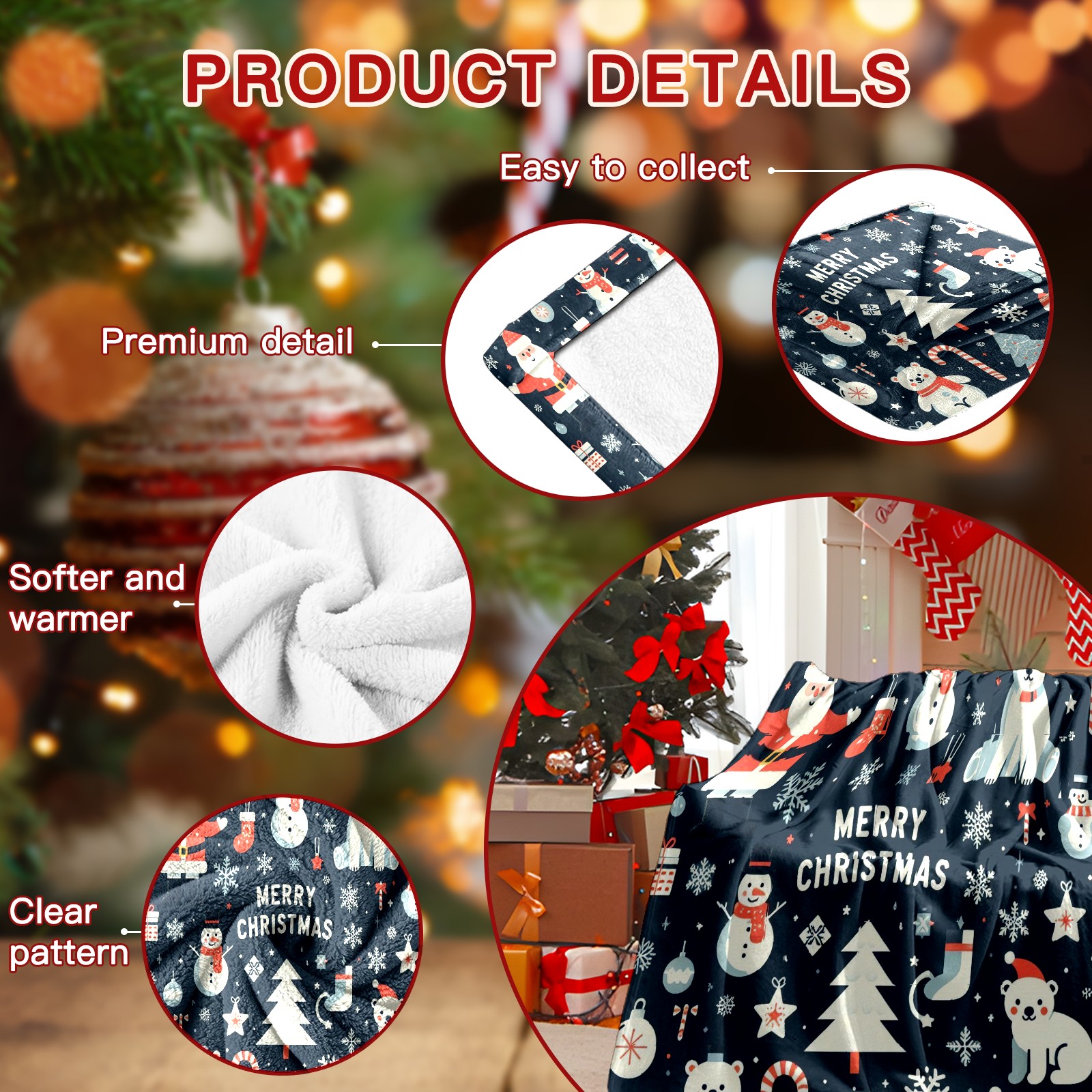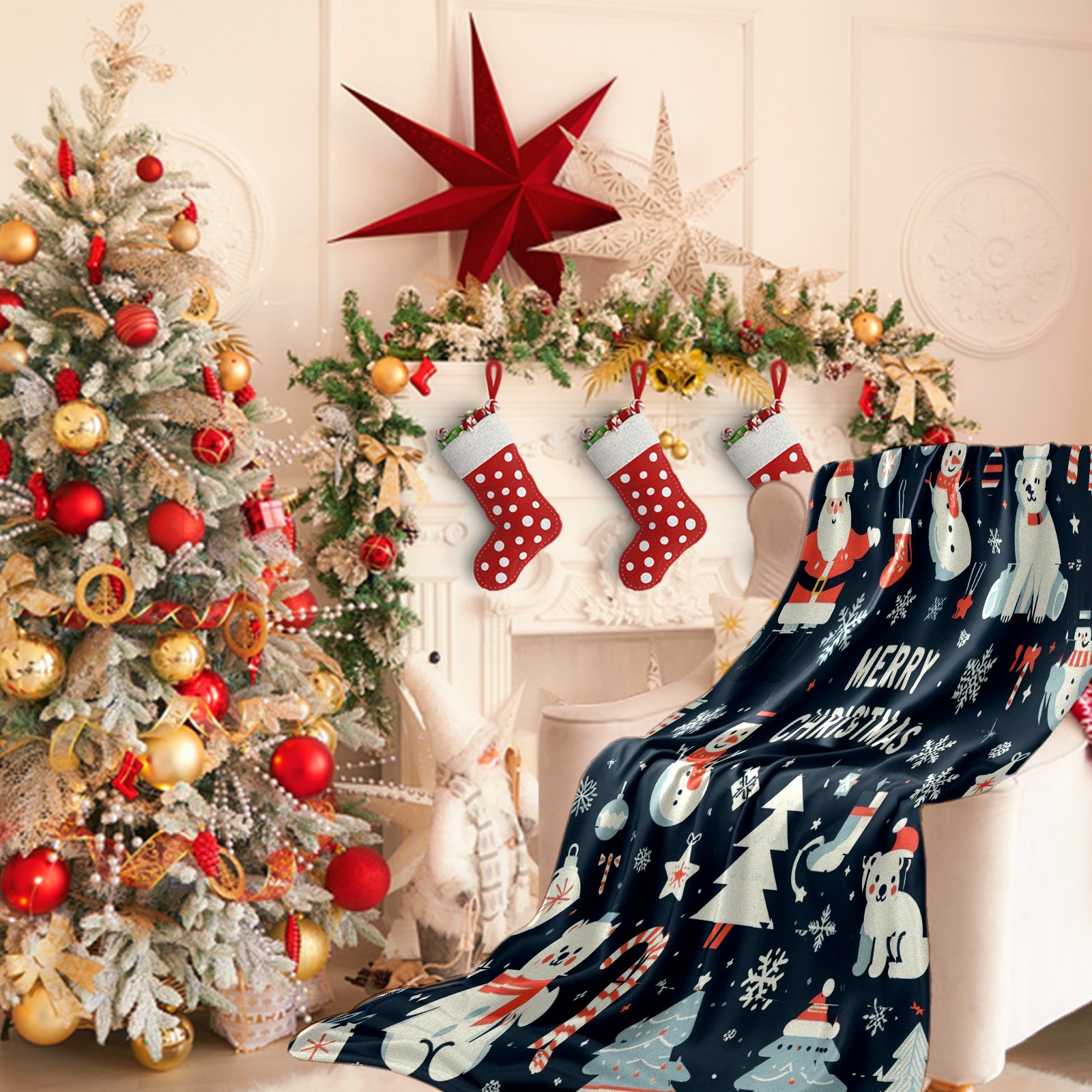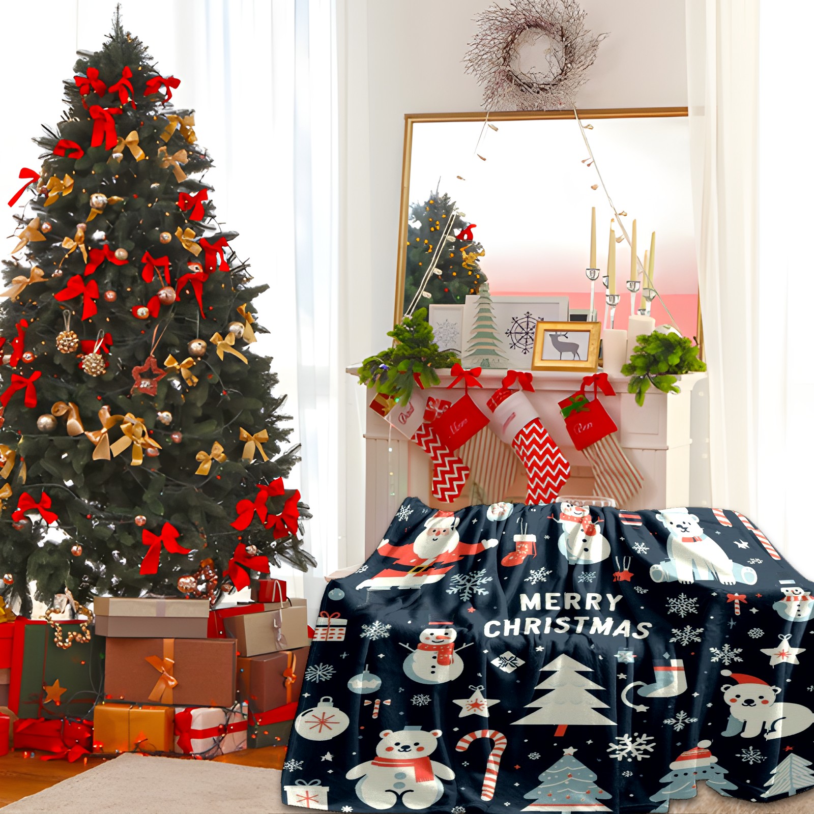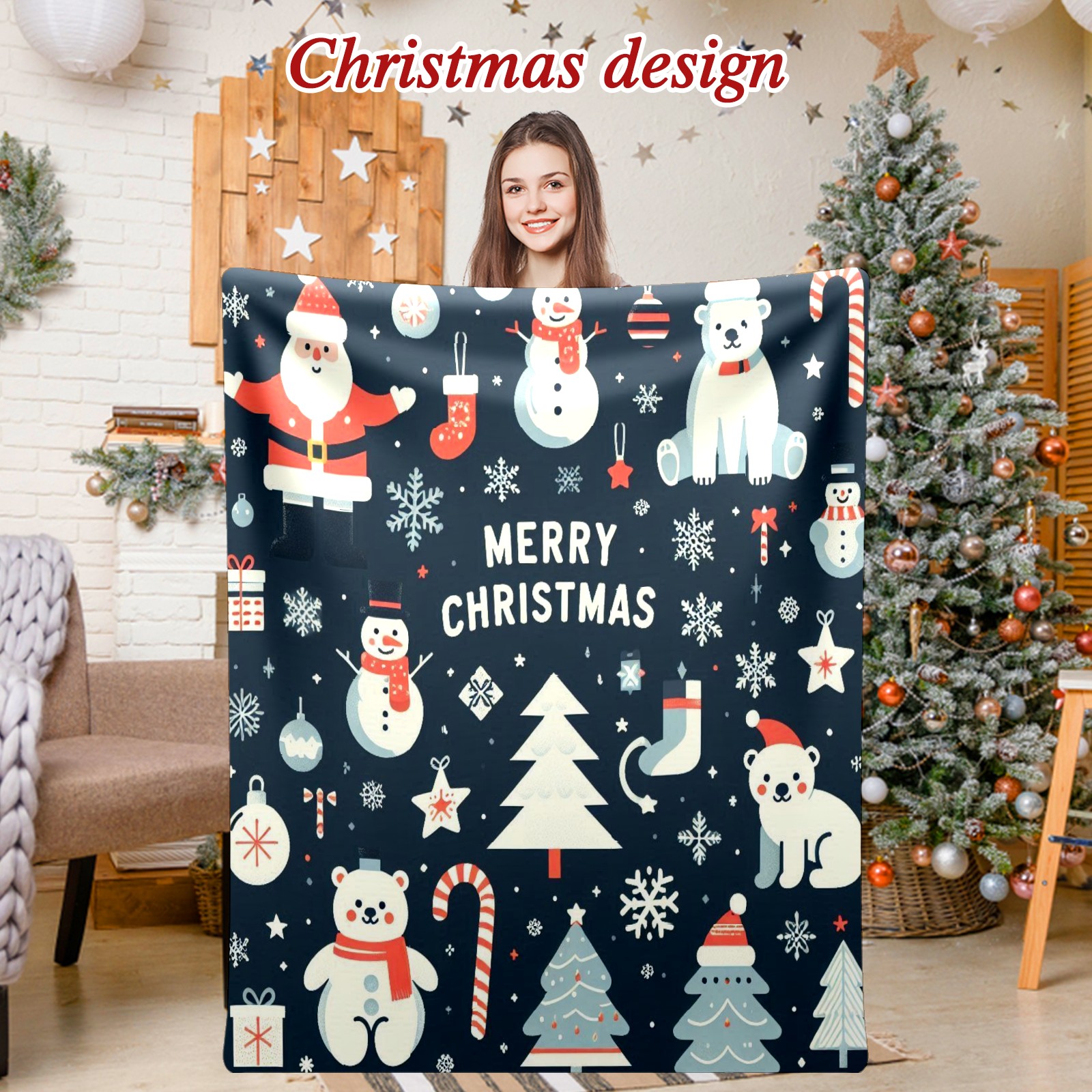 Премиальная фланелевая одеяло Blue Christmas Polar Bears Snowmen