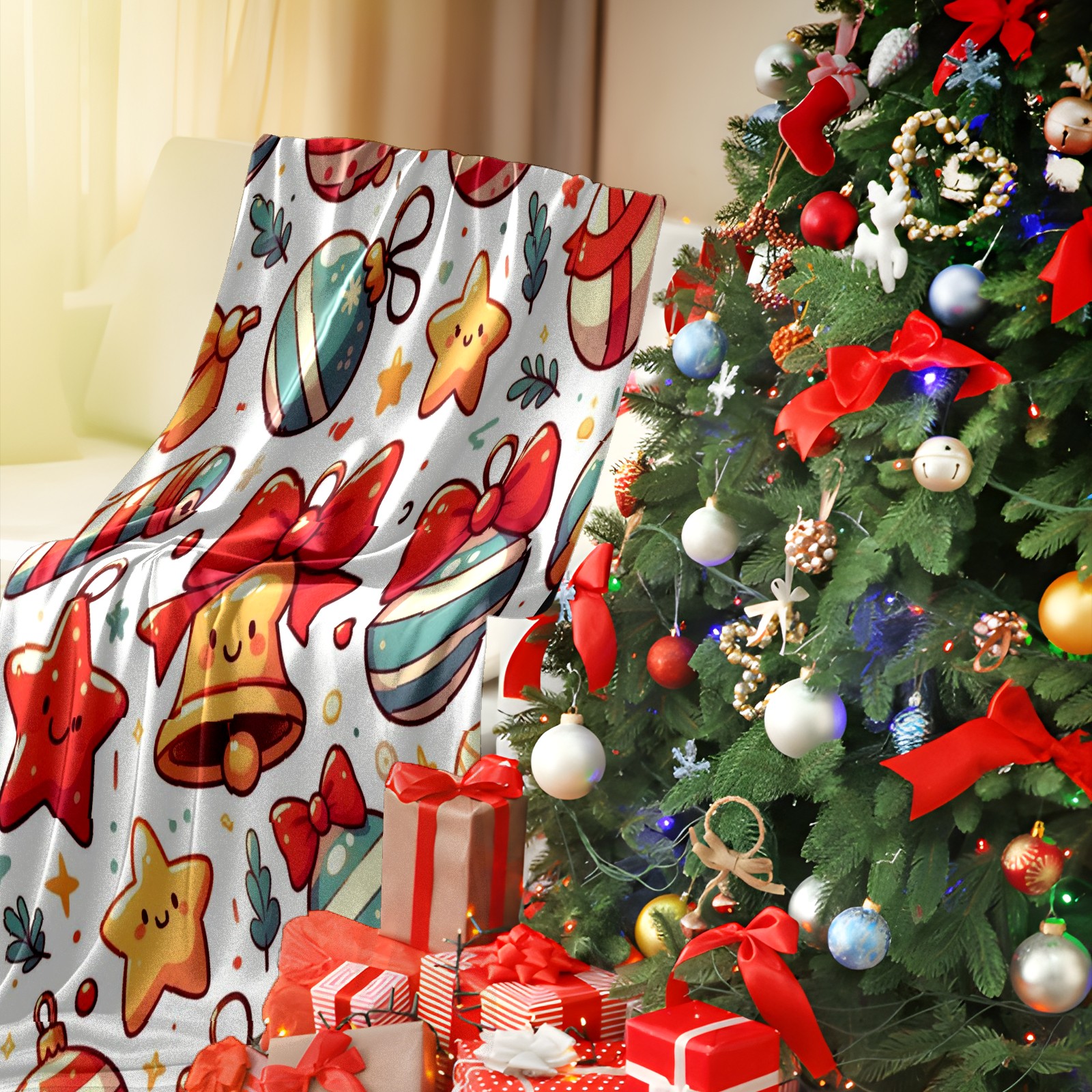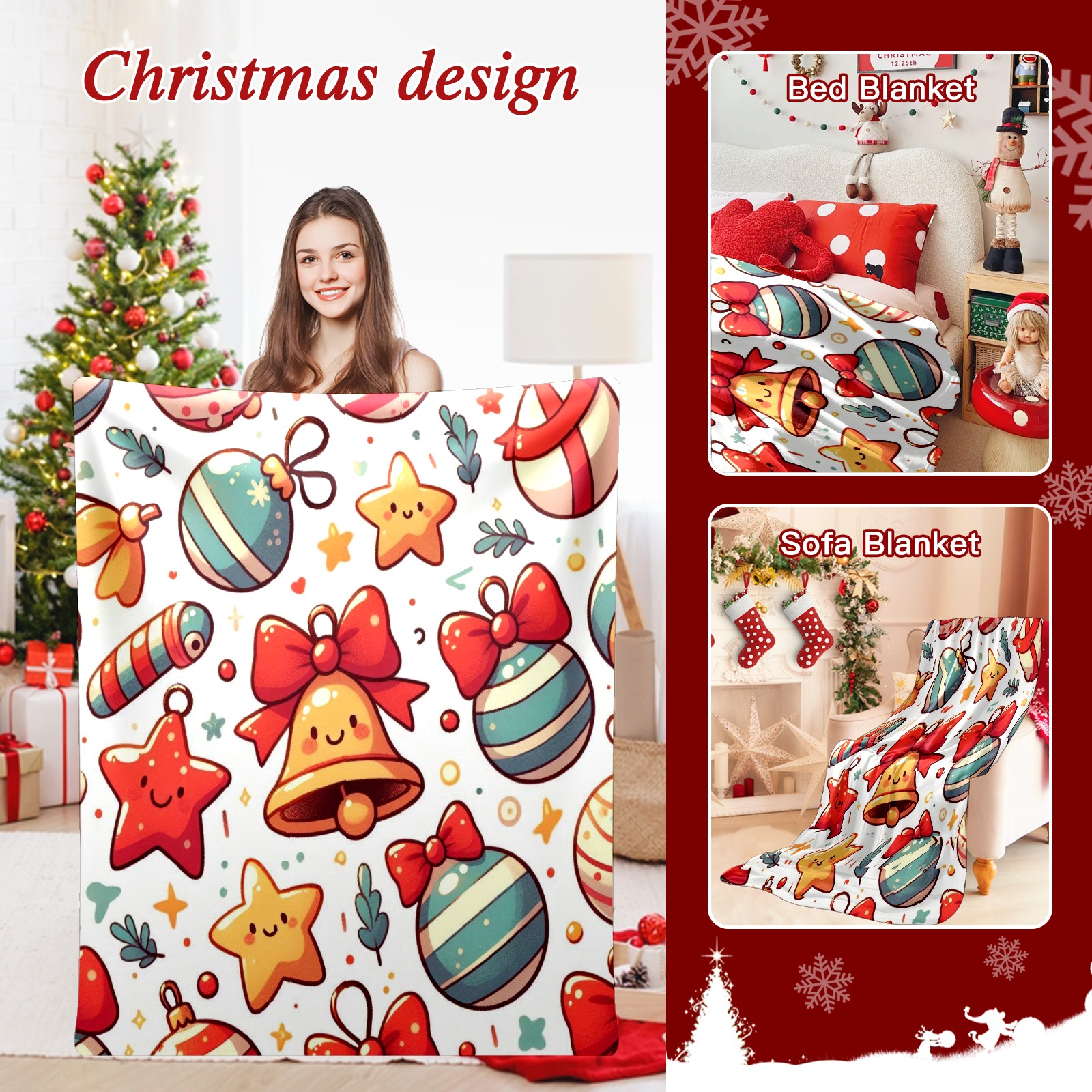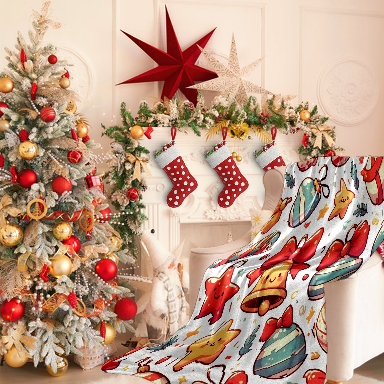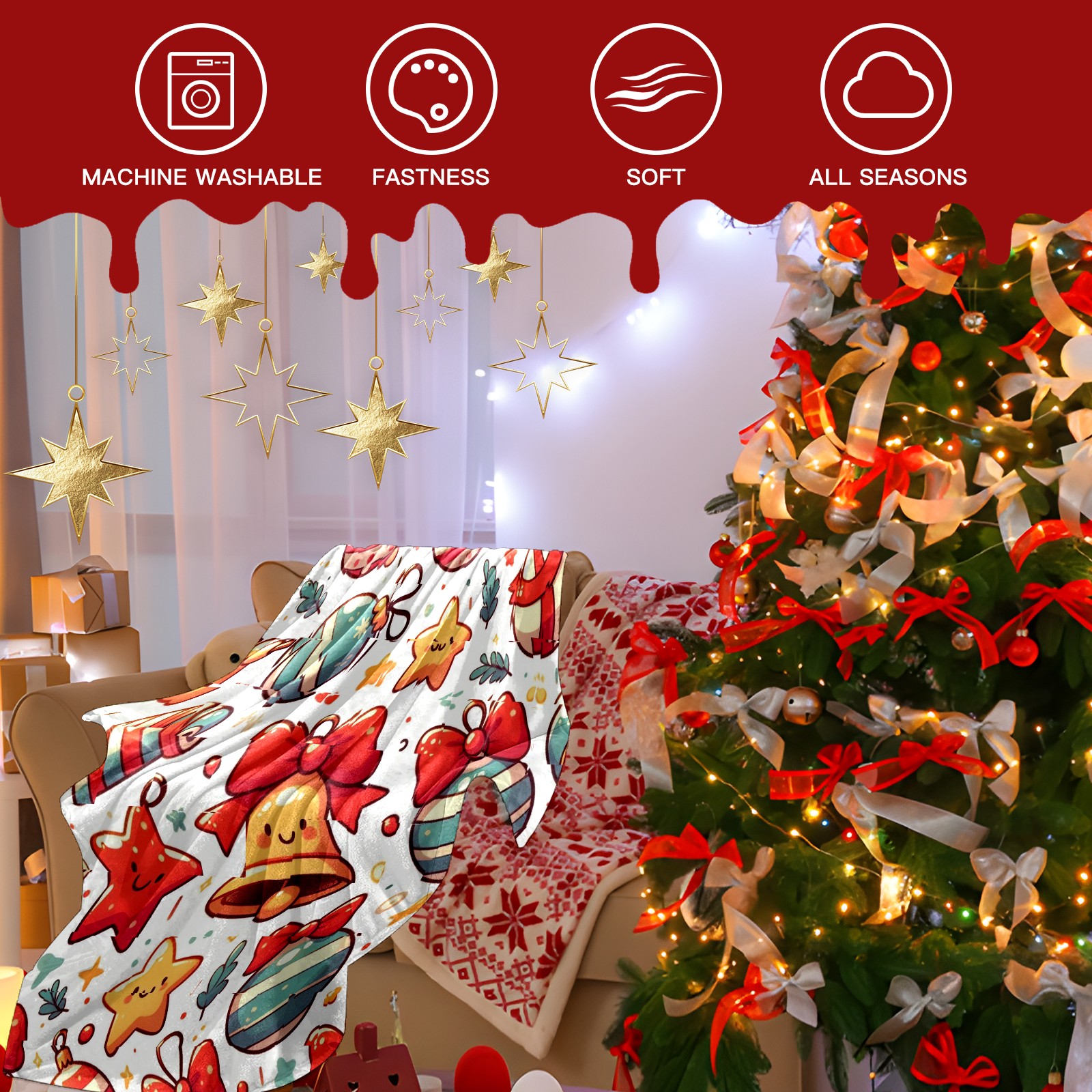 Премиальная фланелевая одеяло Red Christmas Ornaments Bells