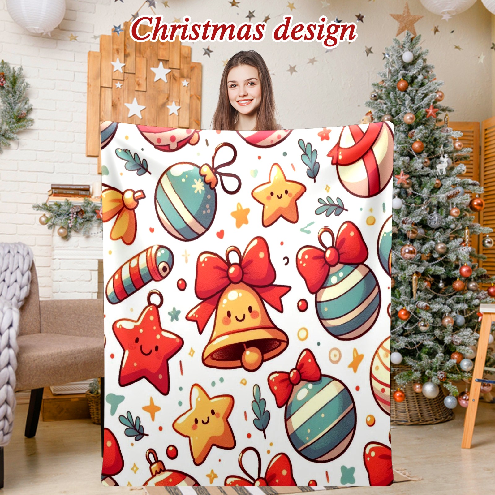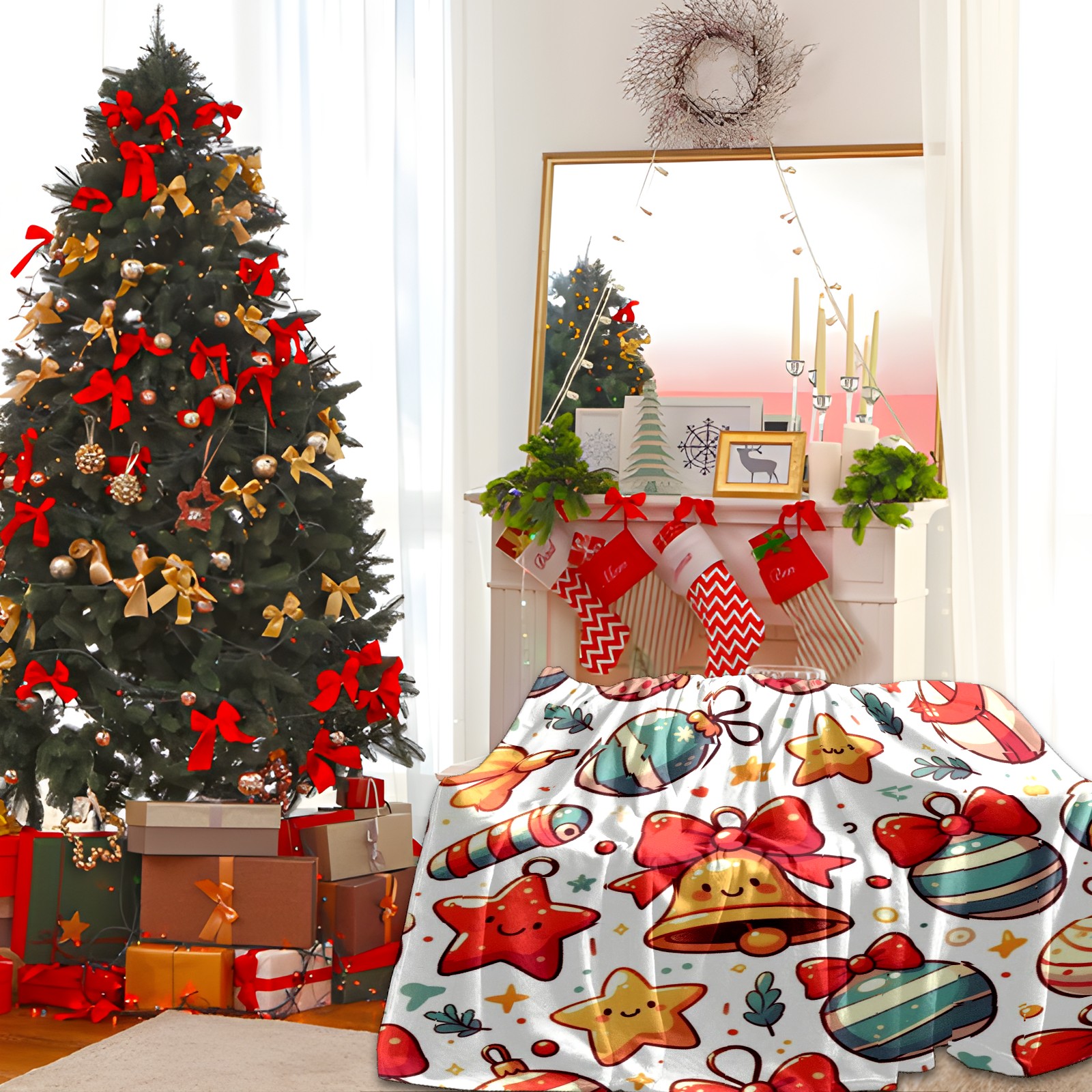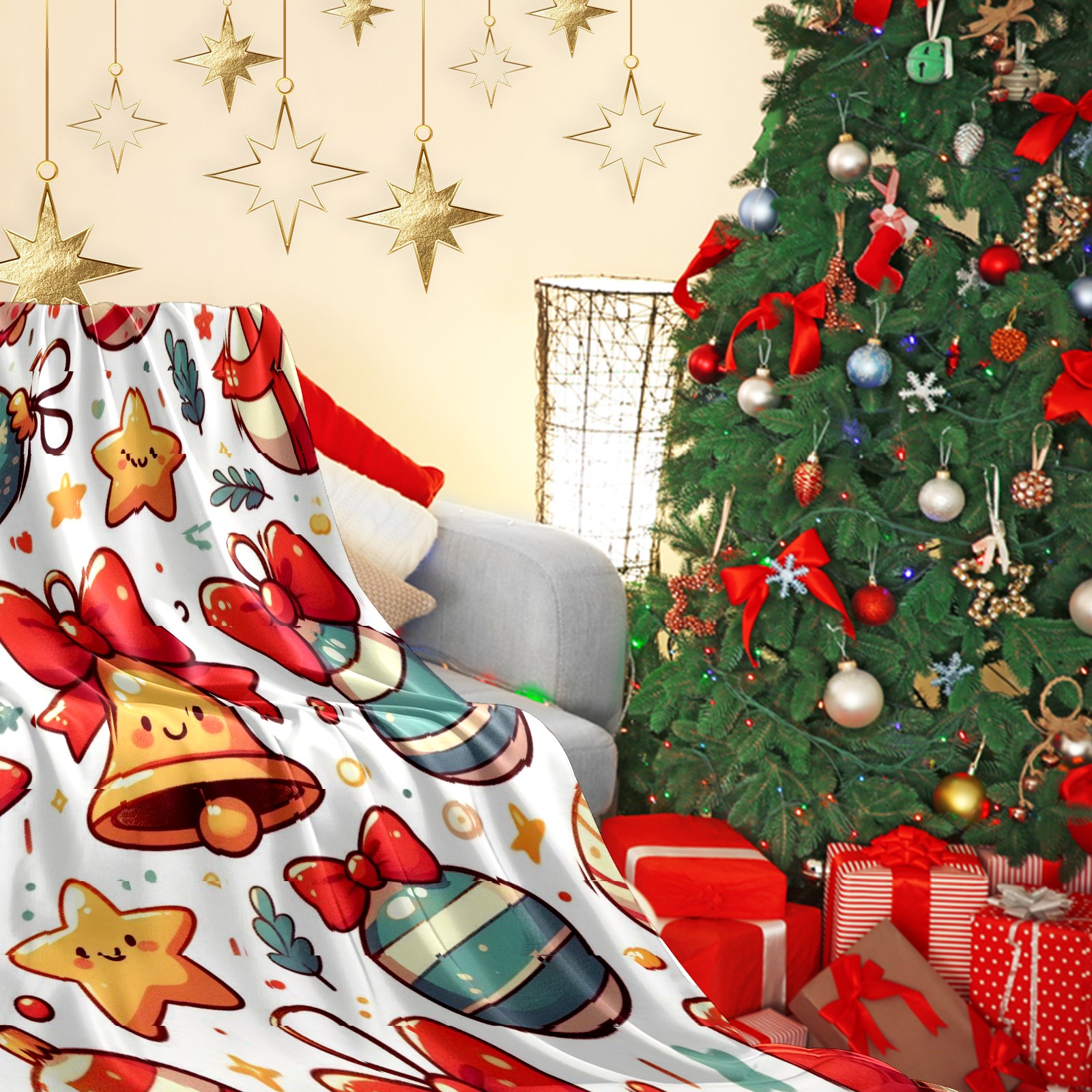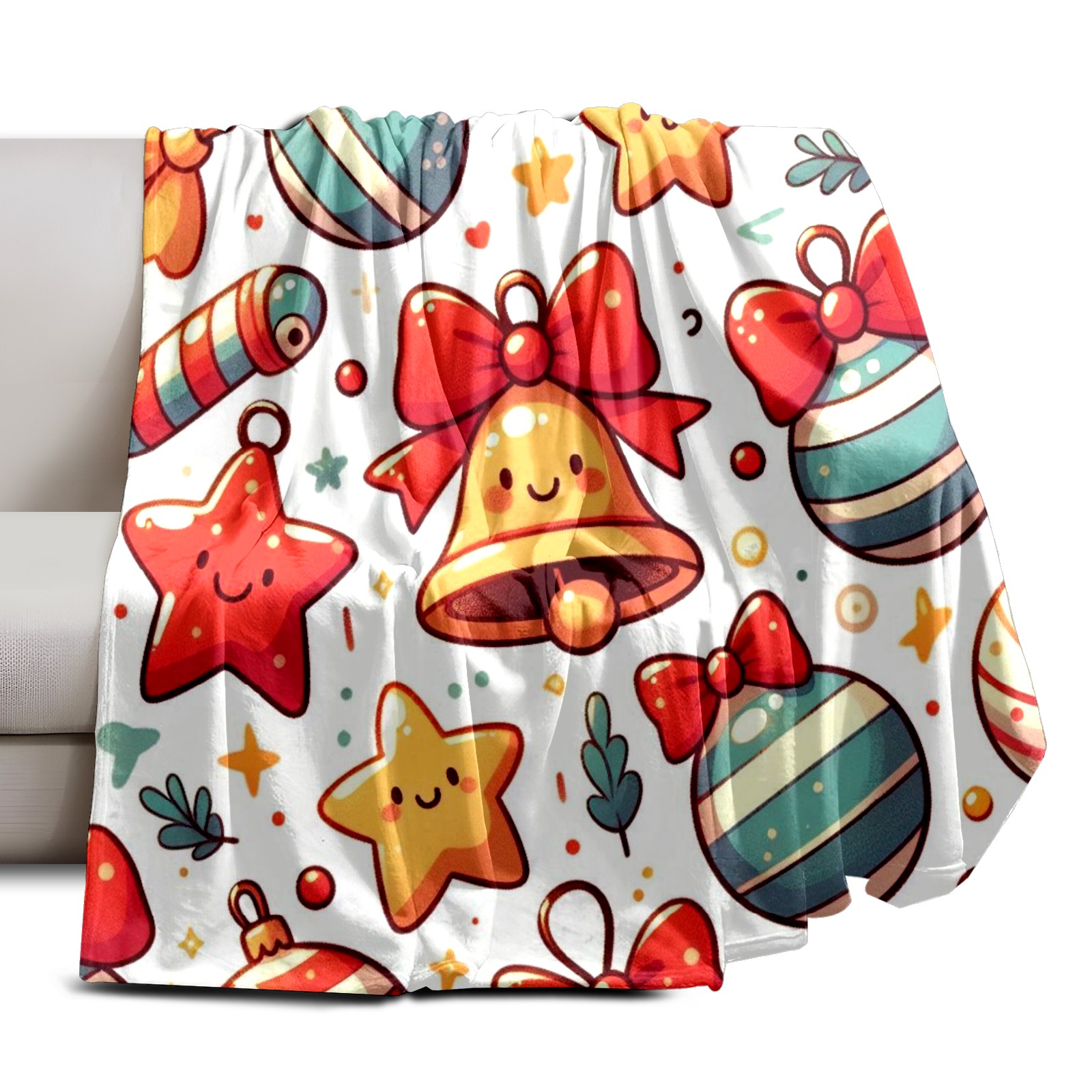 Премиальная фланелевая одеяло Red Christmas Ornaments Bells