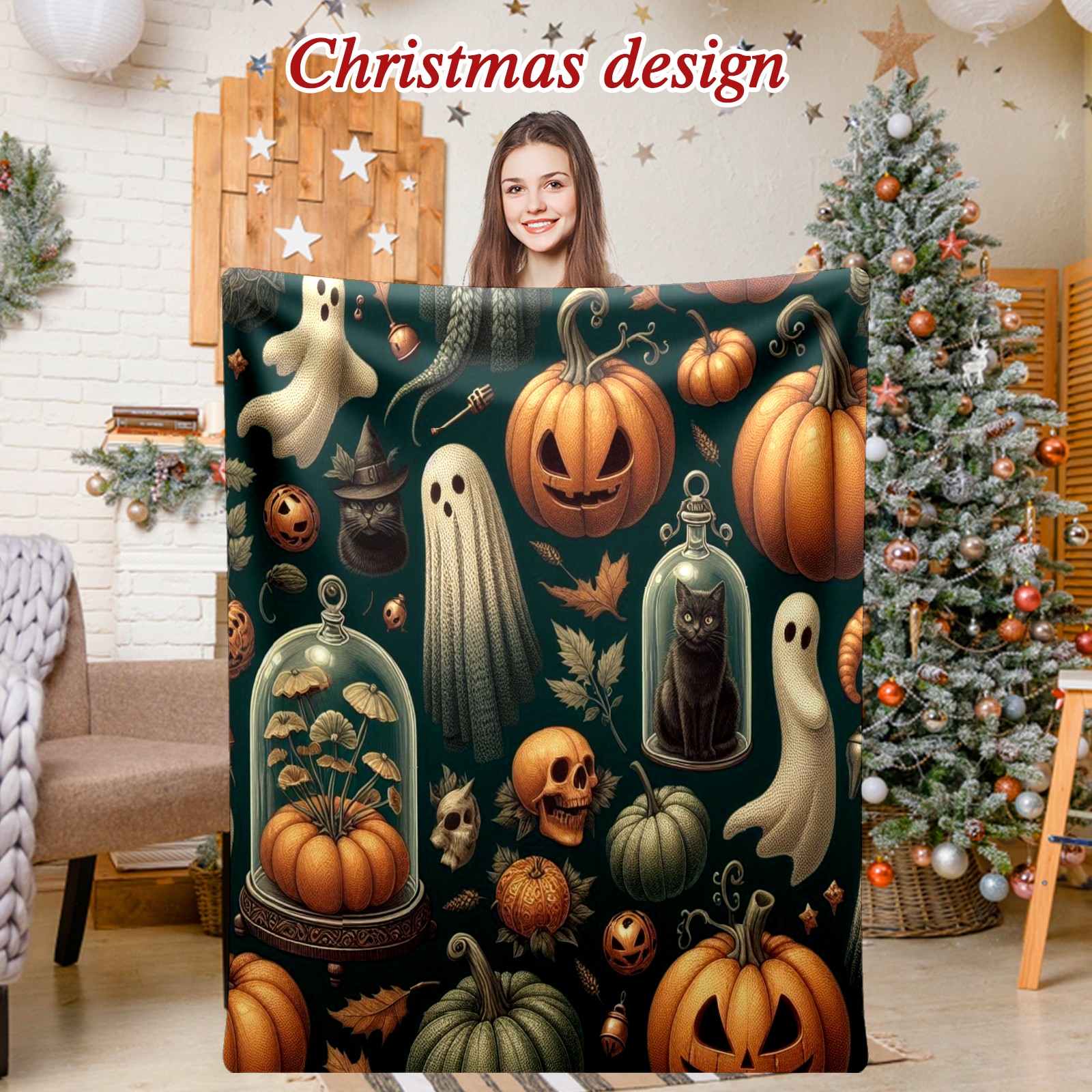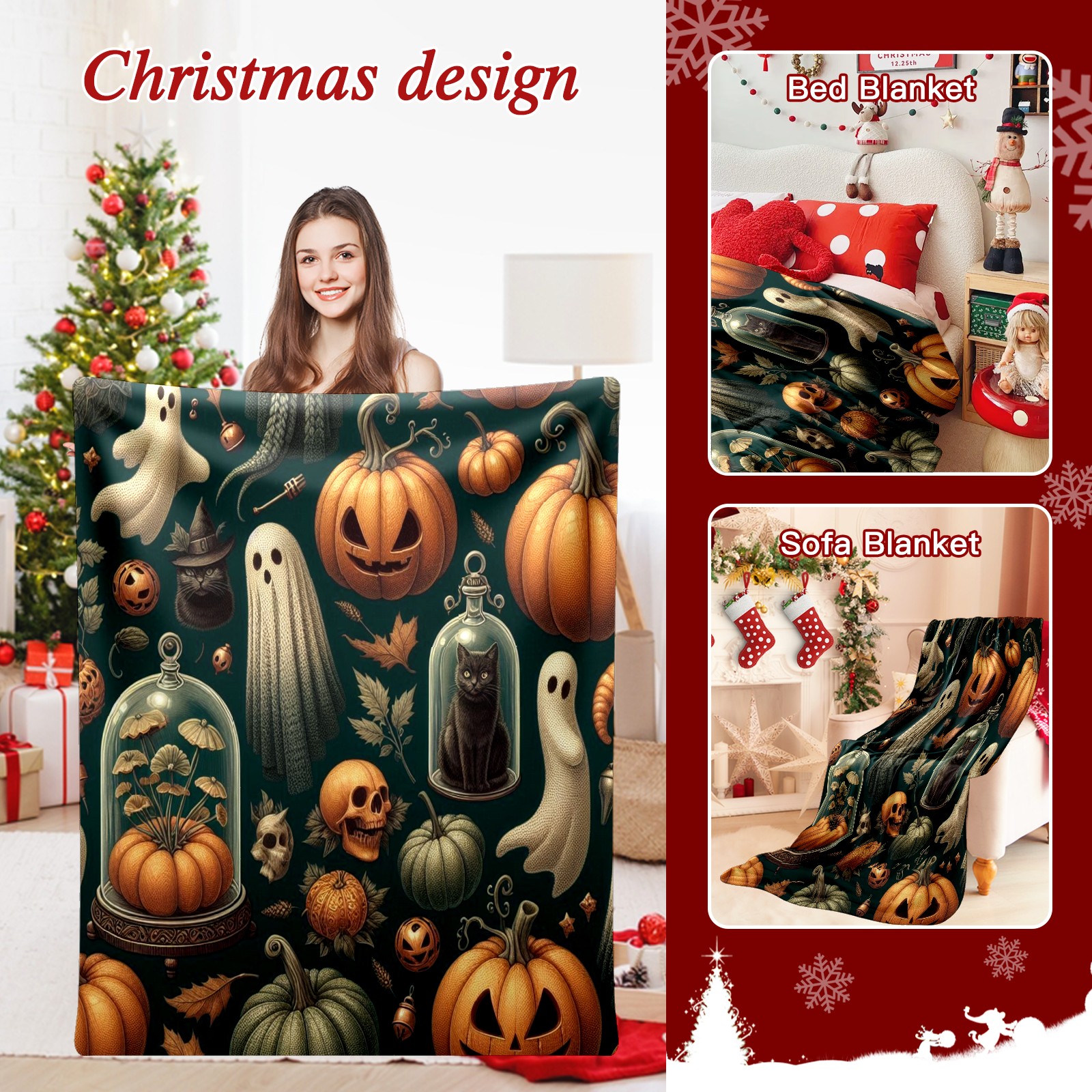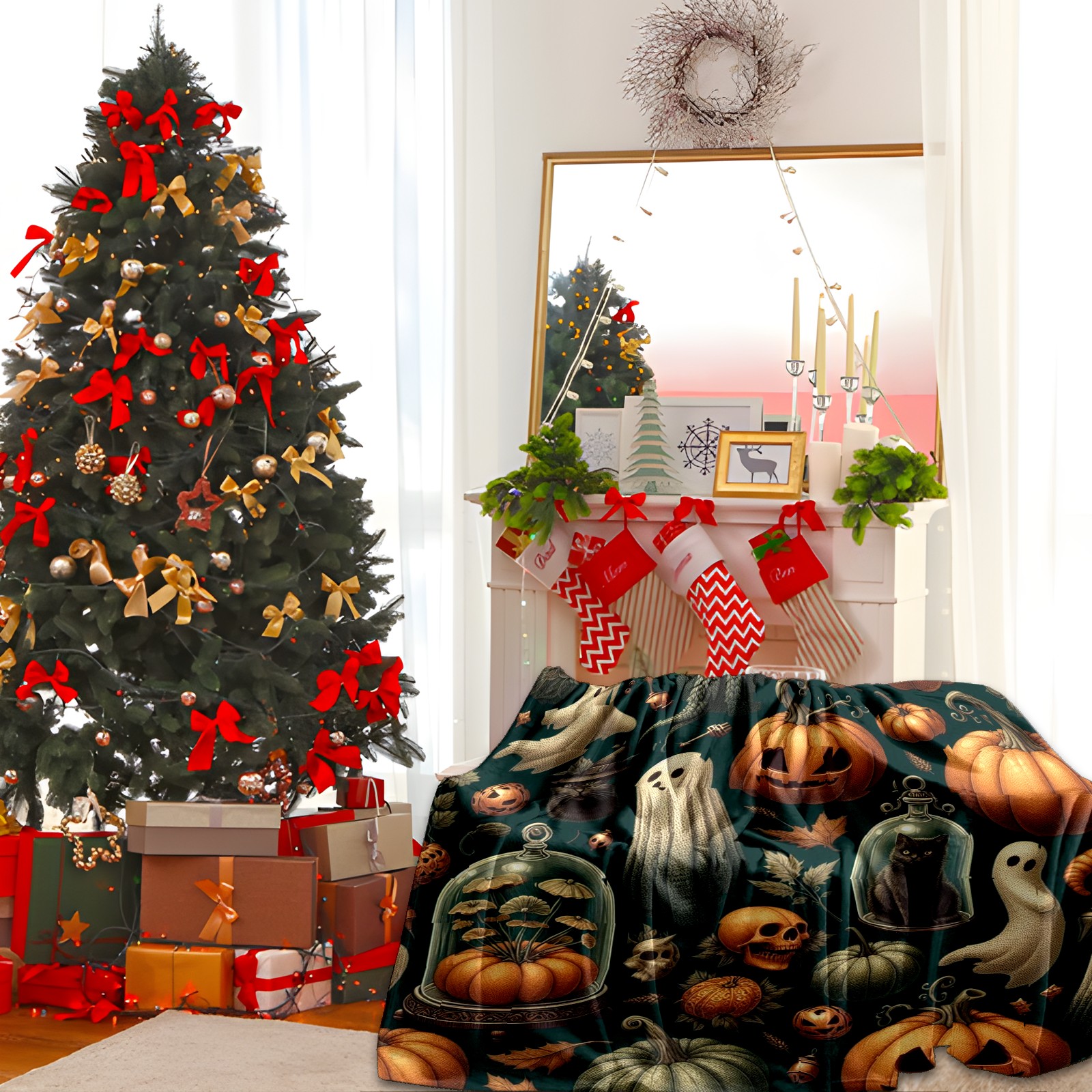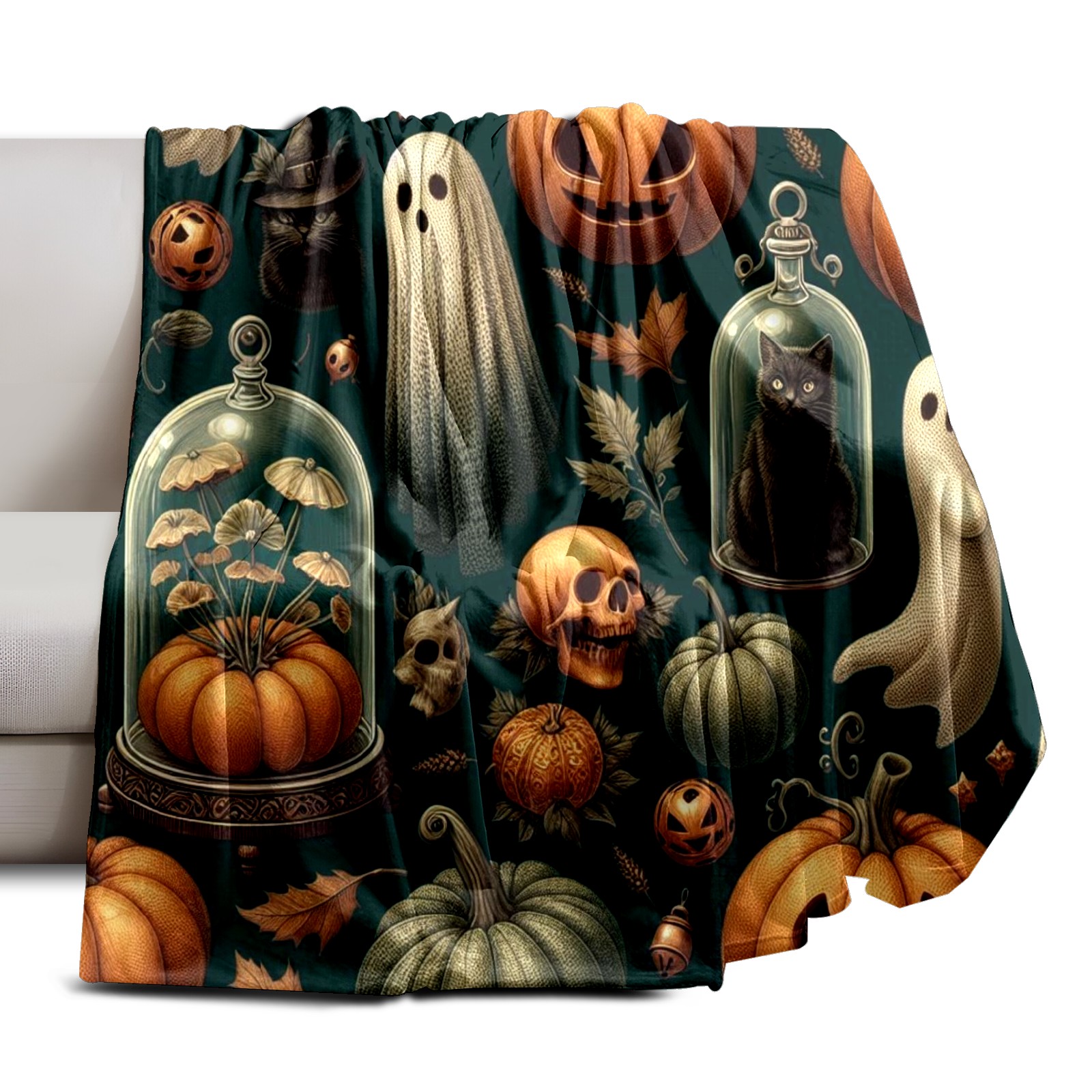 Премиальная фланелевая одеяло Orange Halloween Pumpkins Ghosts