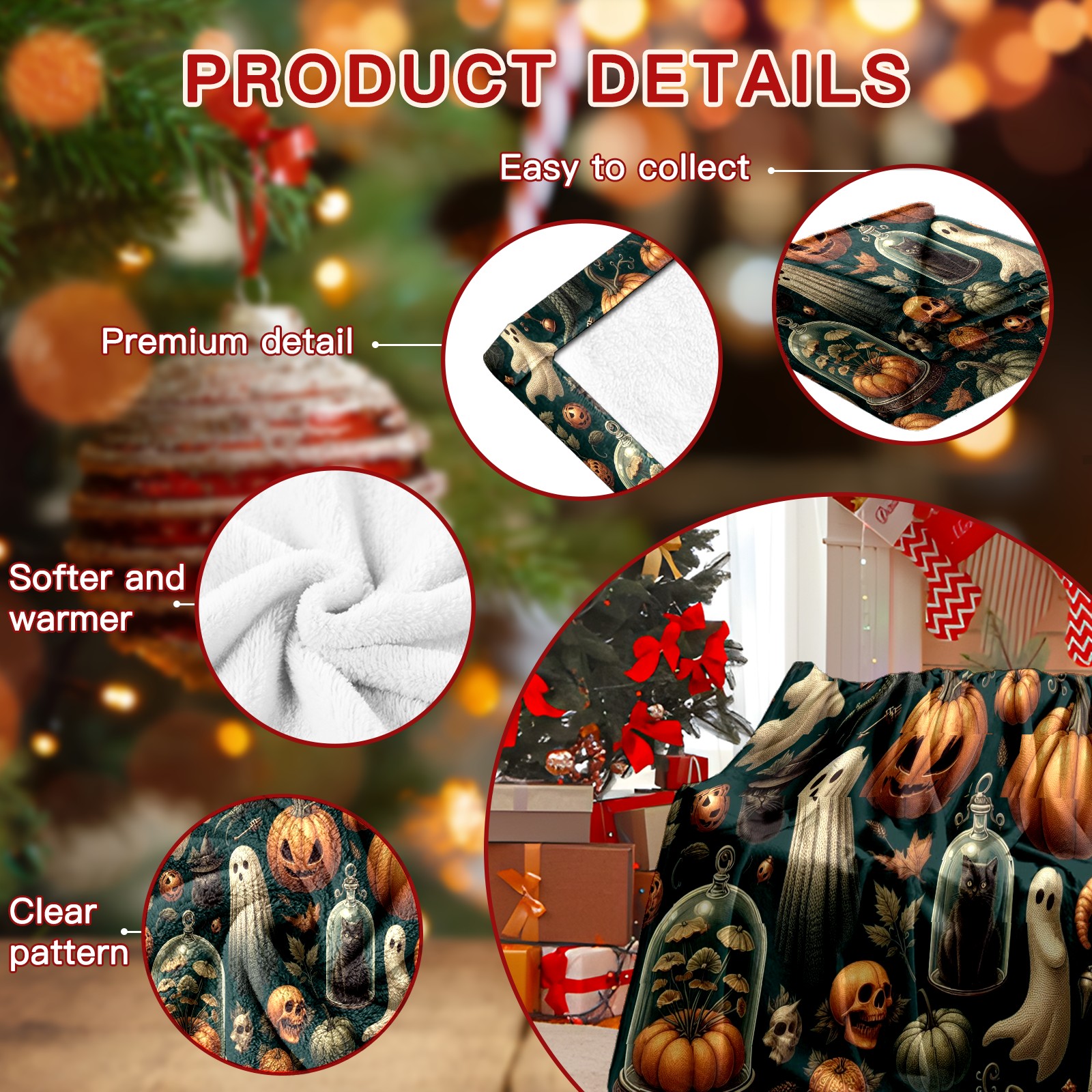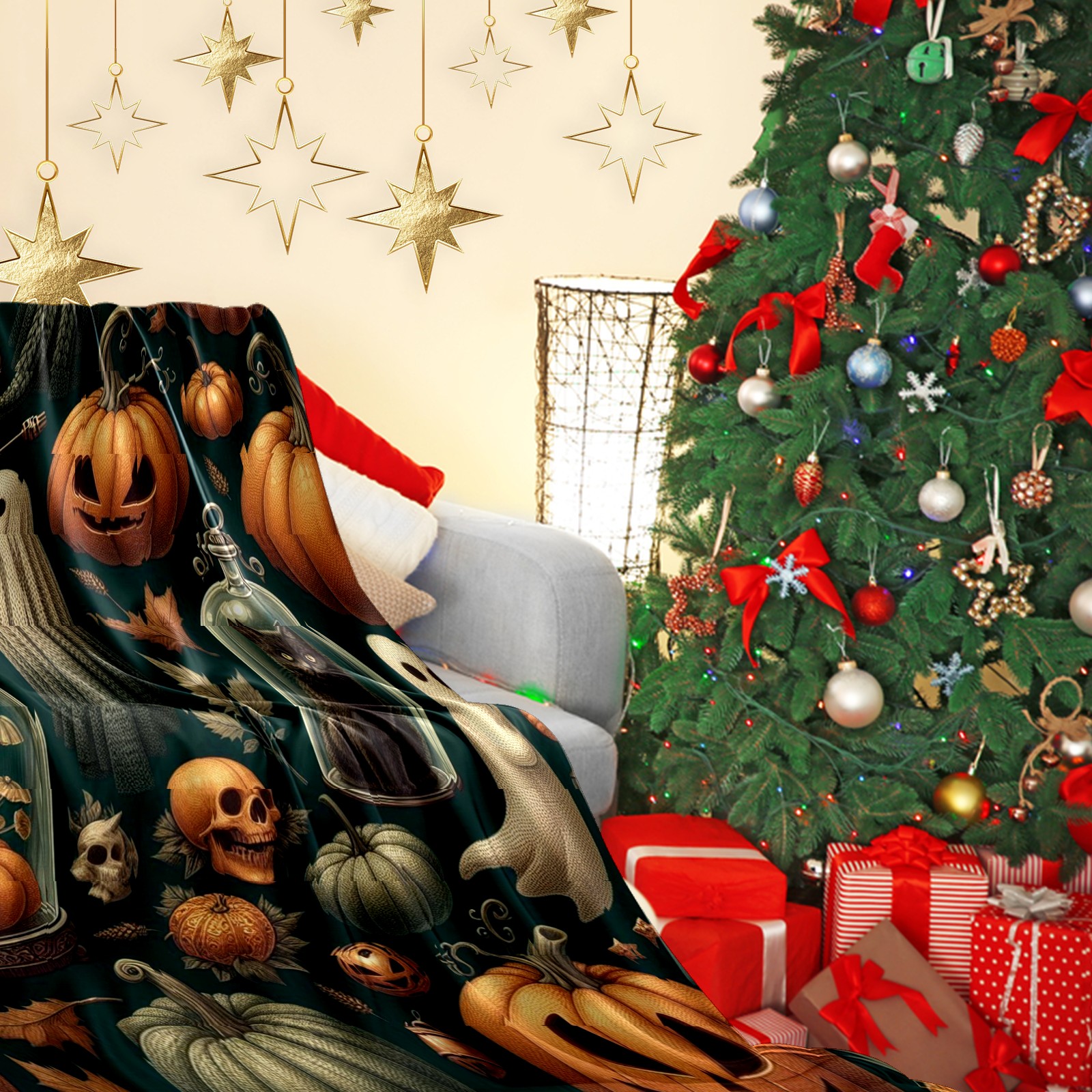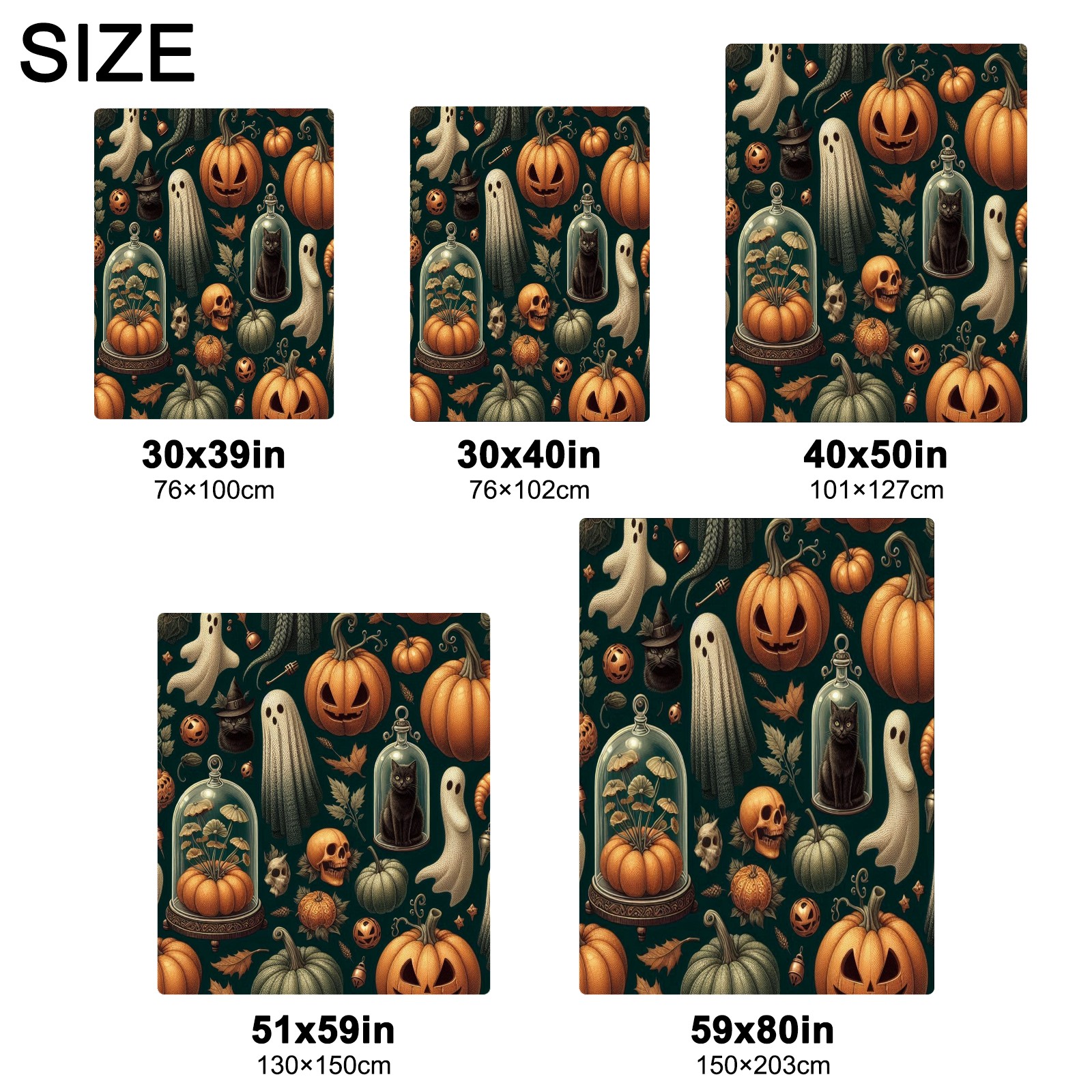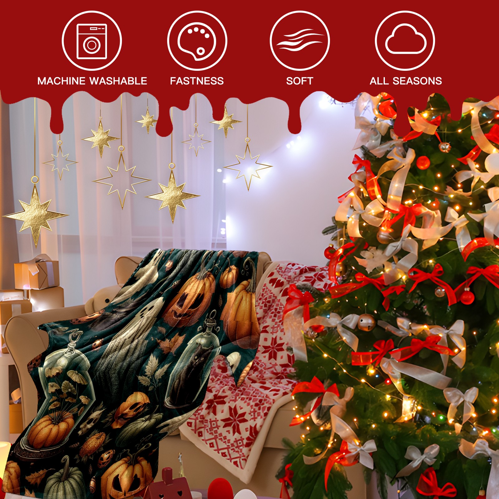Премиальная фланелевая одеяло Orange Halloween Pumpkins Ghosts