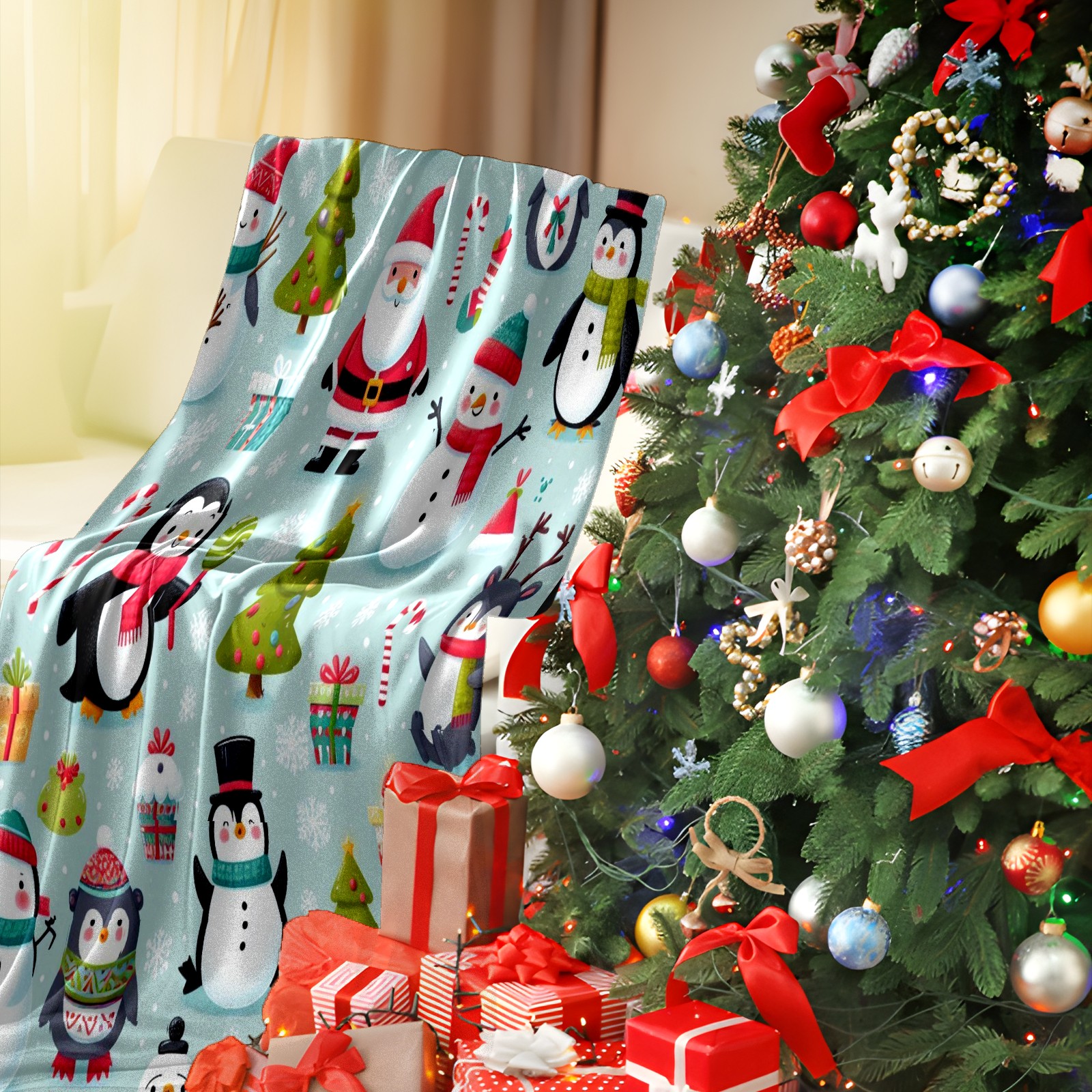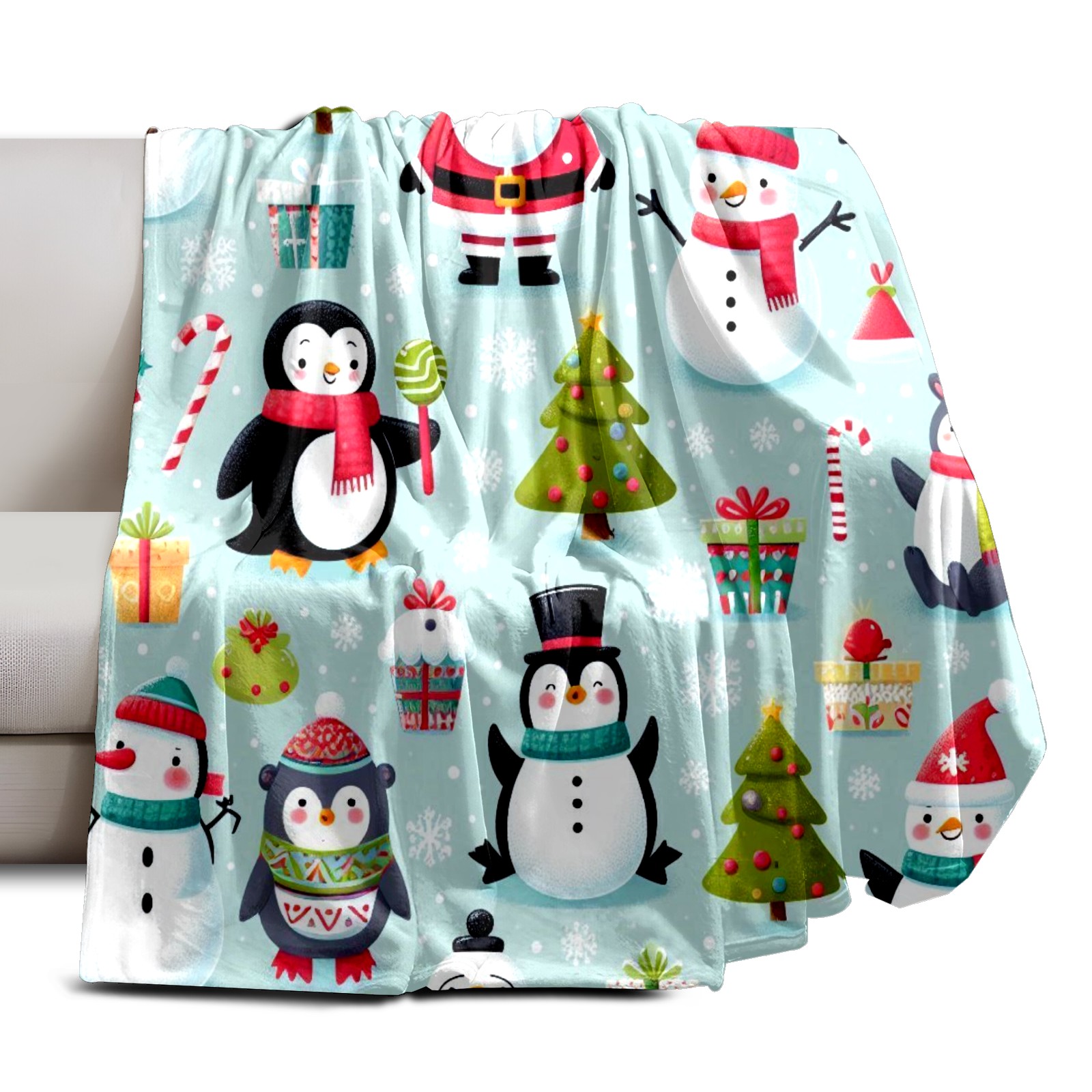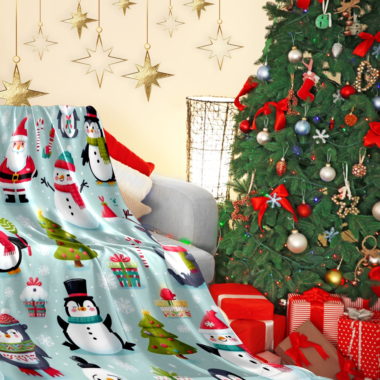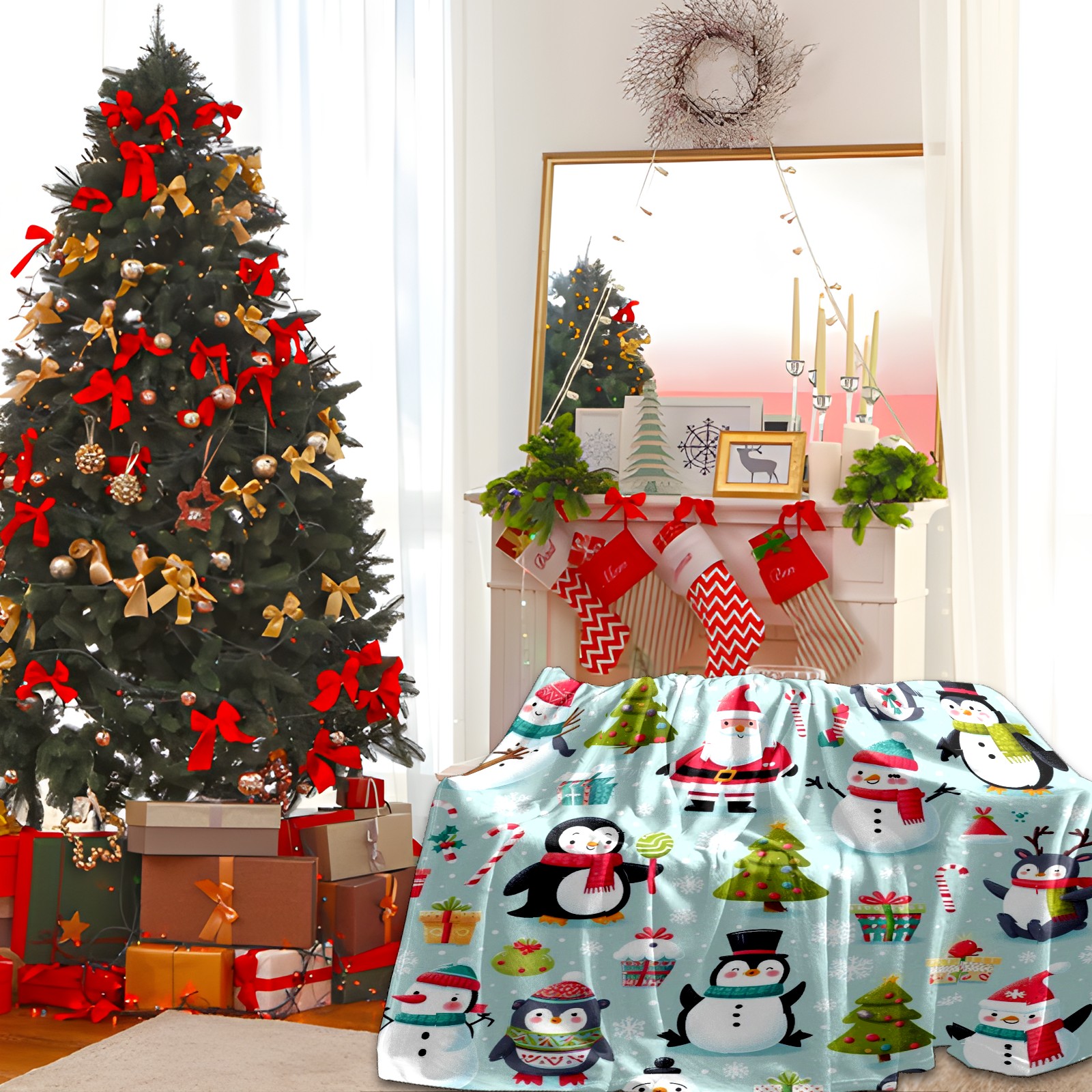 Премиальная фланелевая одеяло Light Blue Christmas Penguins