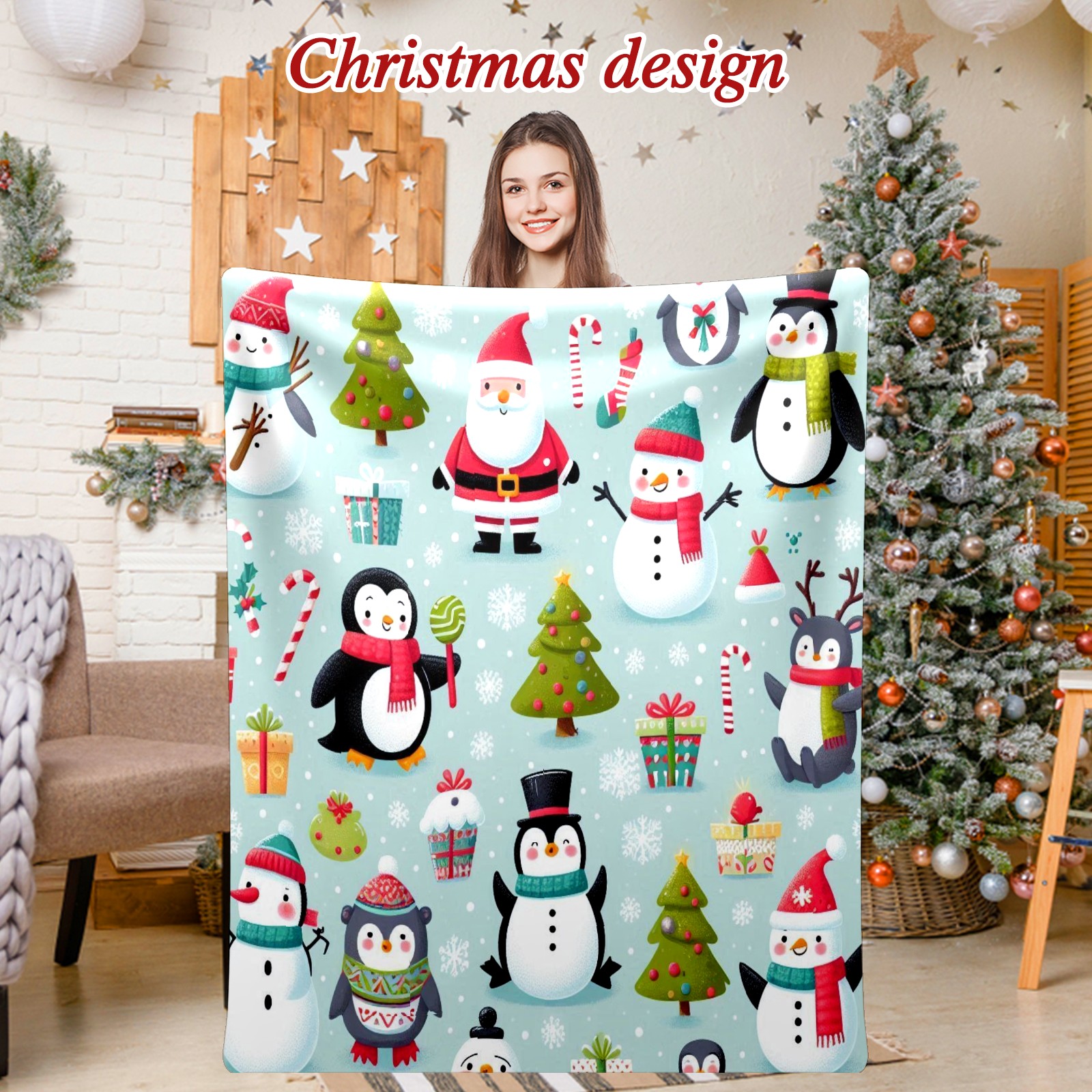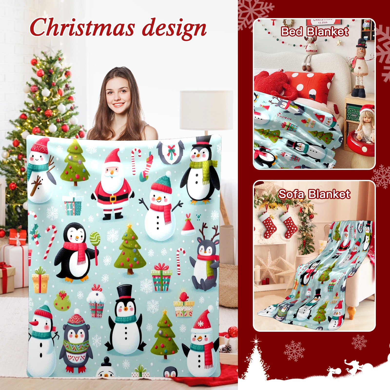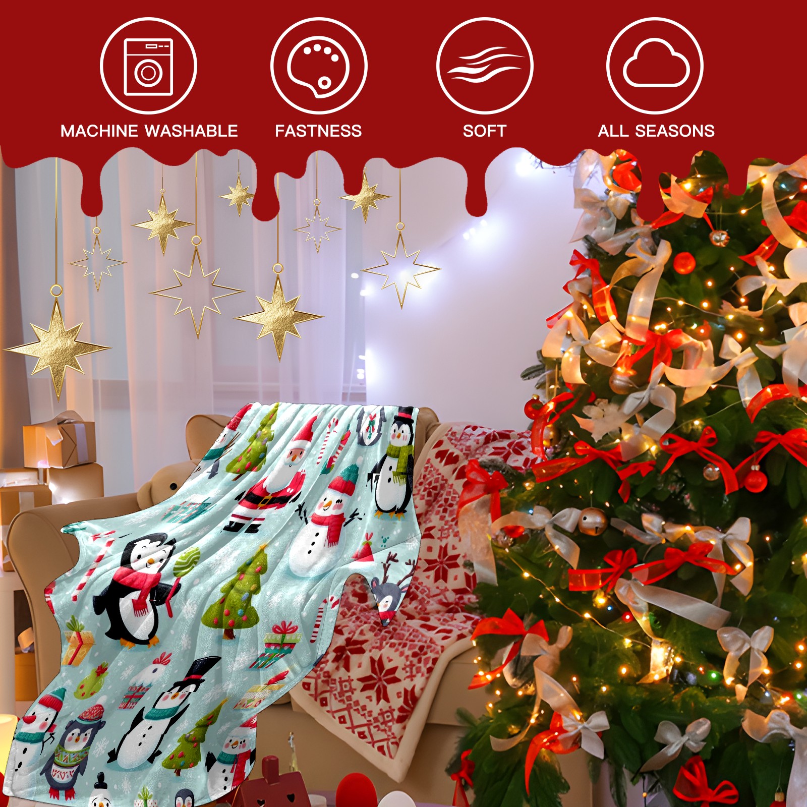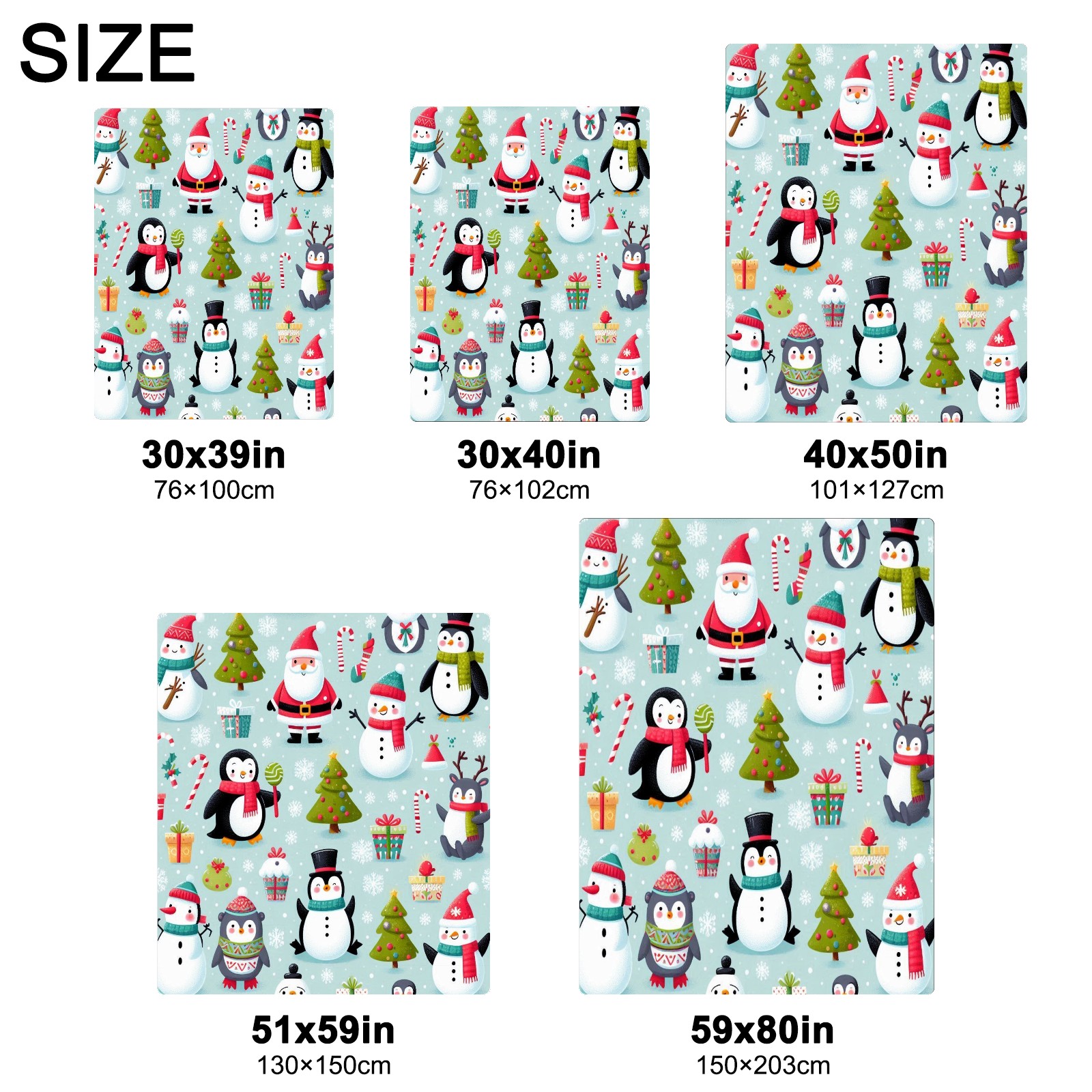Премиальная фланелевая одеяло Light Blue Christmas Penguins