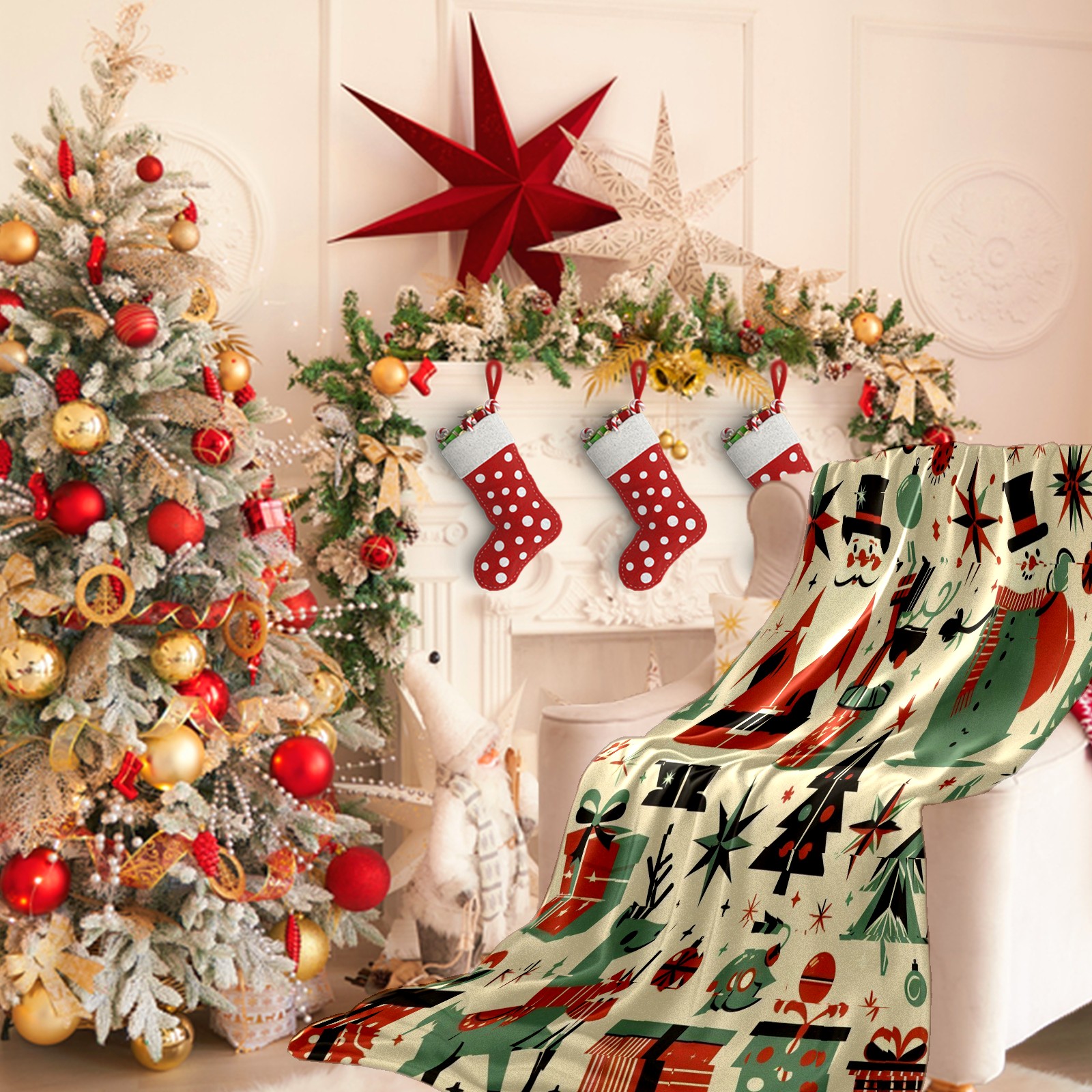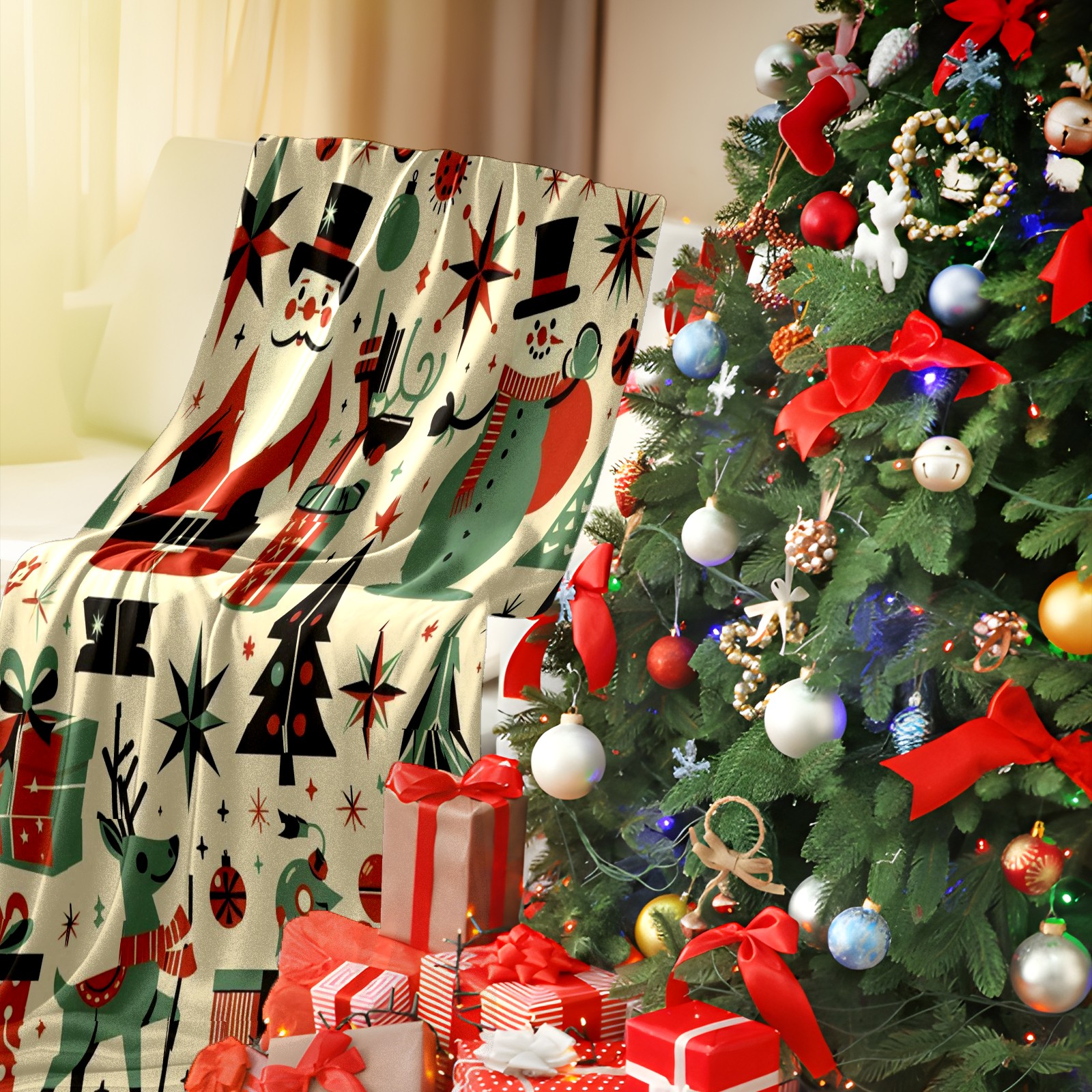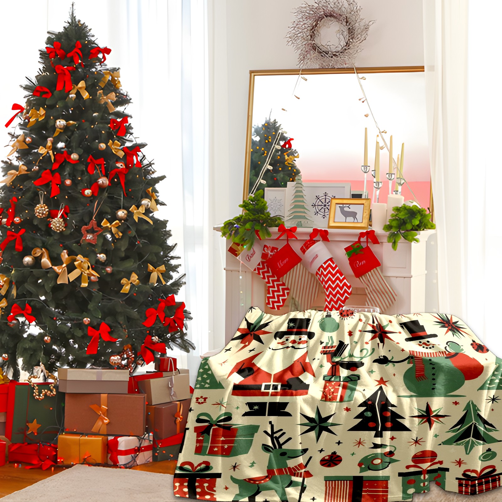Премиальная фланелевая одеяло Beige Christmas Snowmen Trees