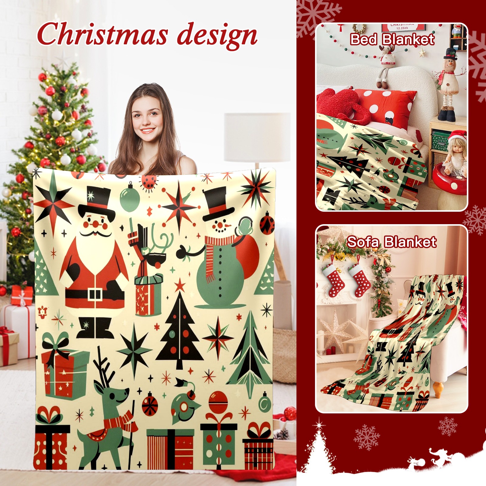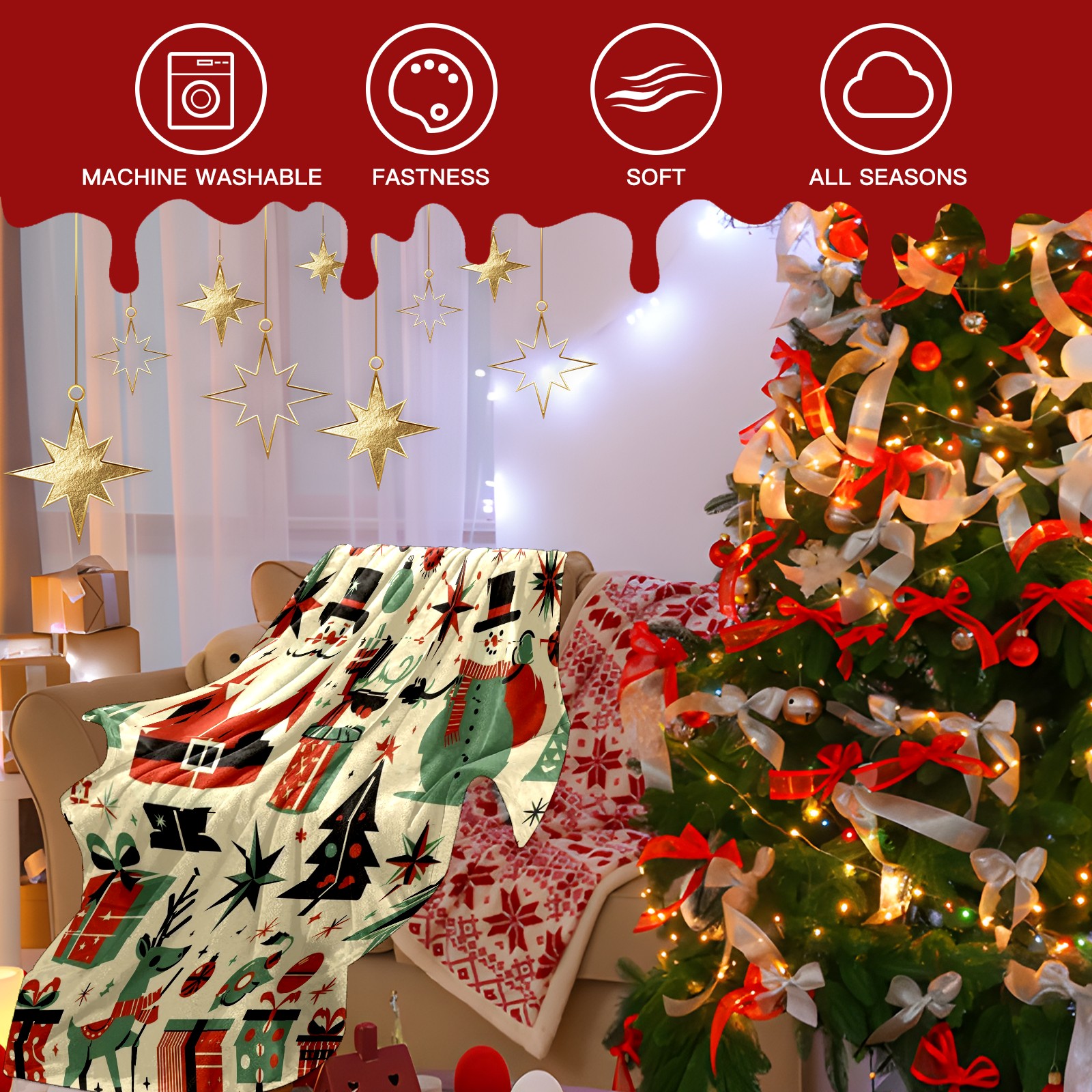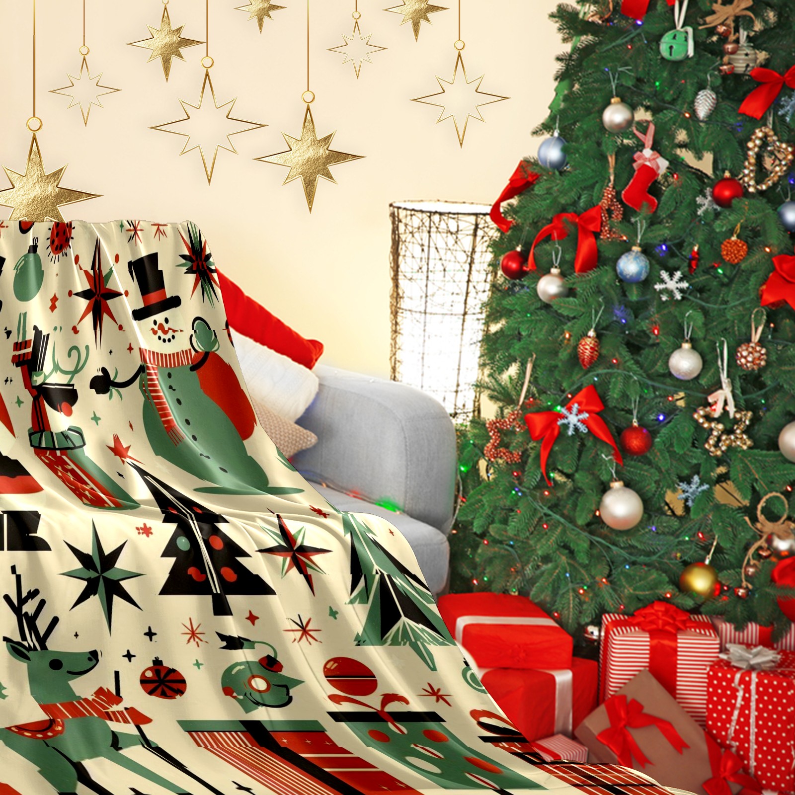 Премиальная фланелевая одеяло Beige Christmas Snowmen Trees