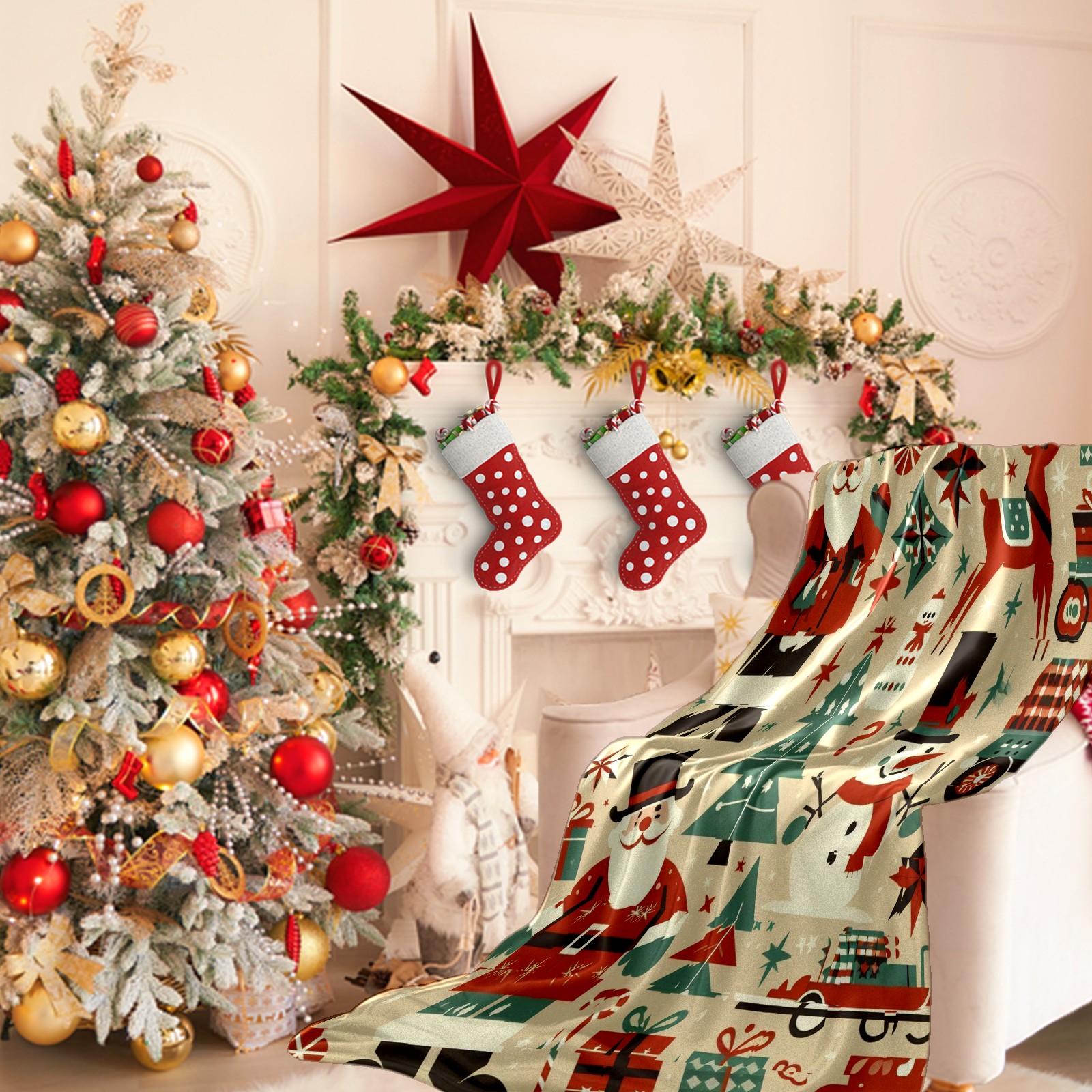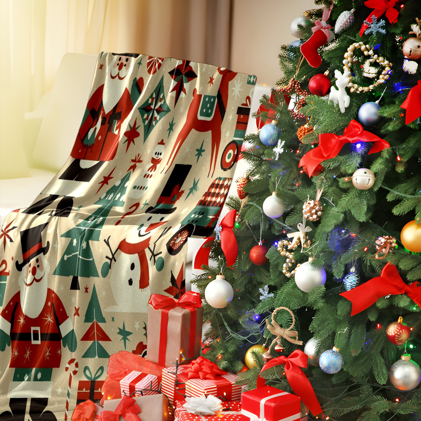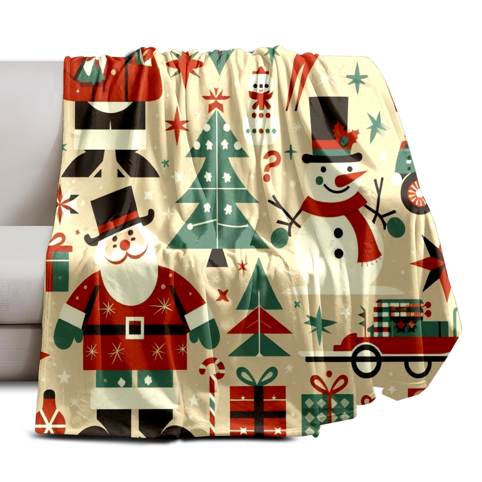 Премиальная фланелевая одеяло Beige Christmas Santa Snowman