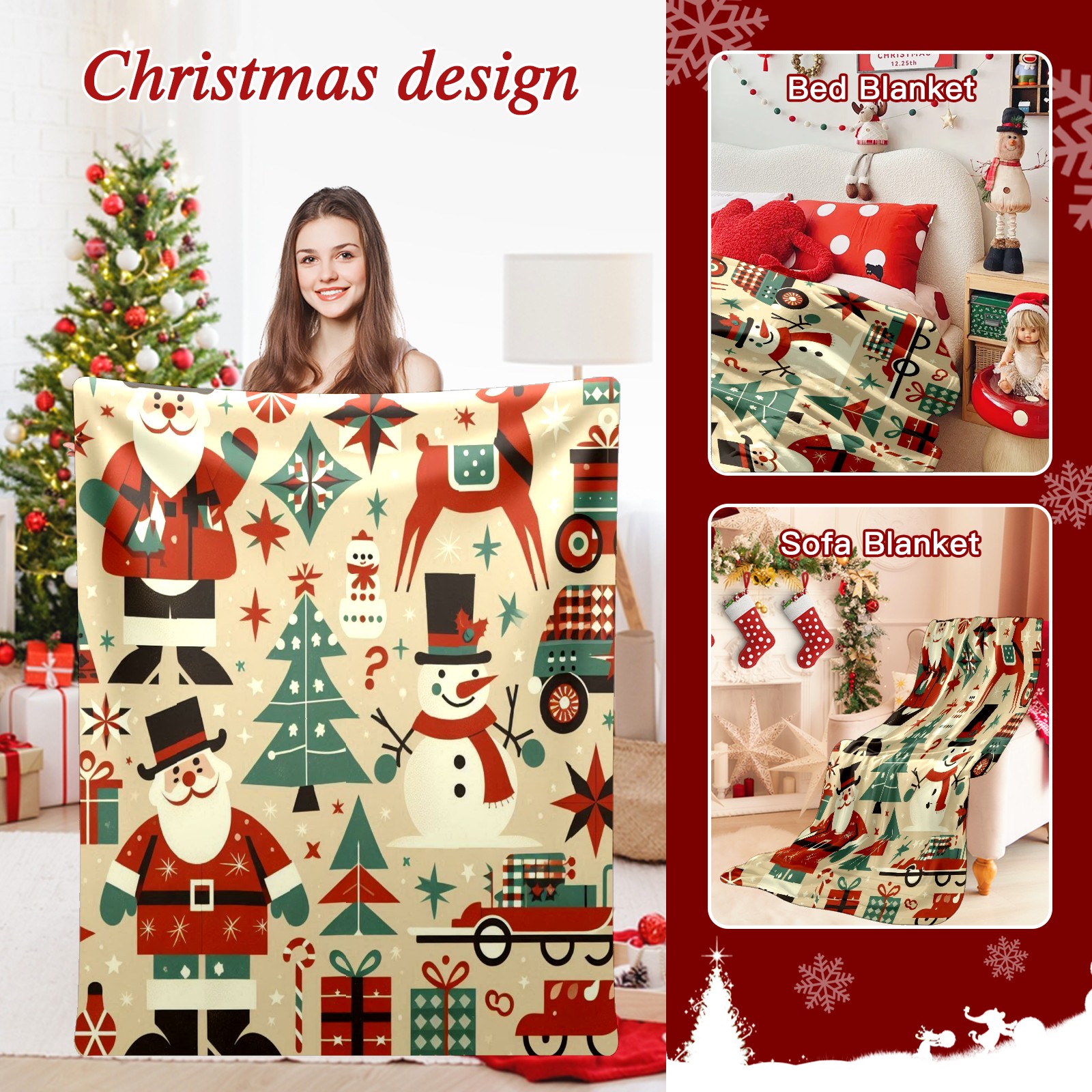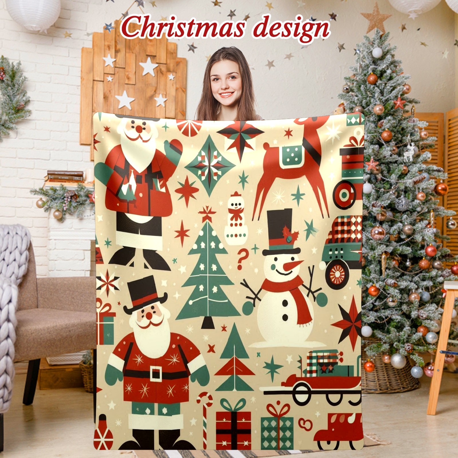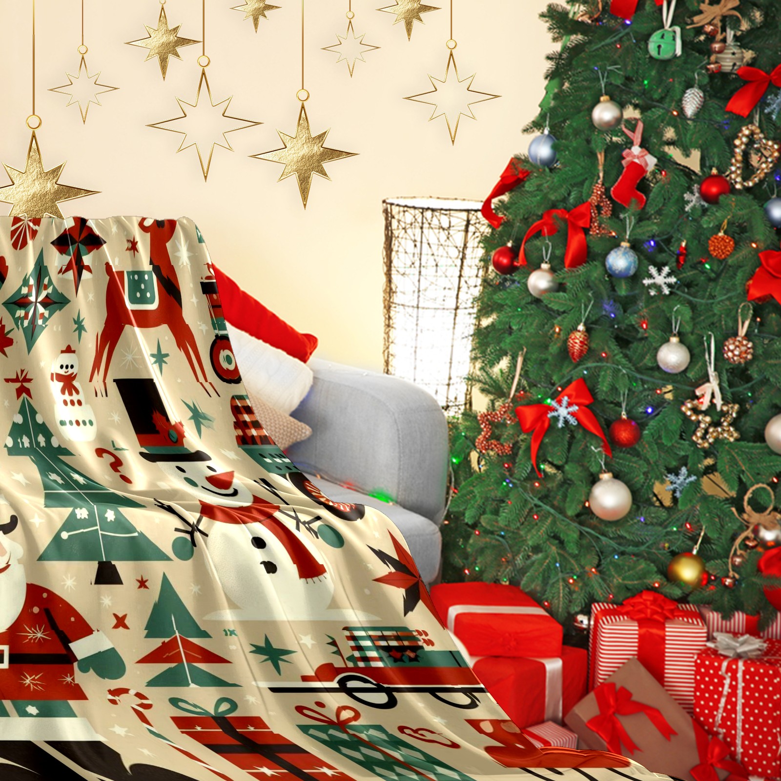 Премиальная фланелевая одеяло Beige Christmas Santa Snowman