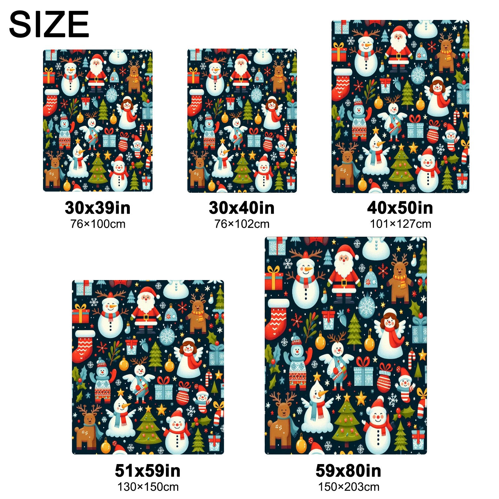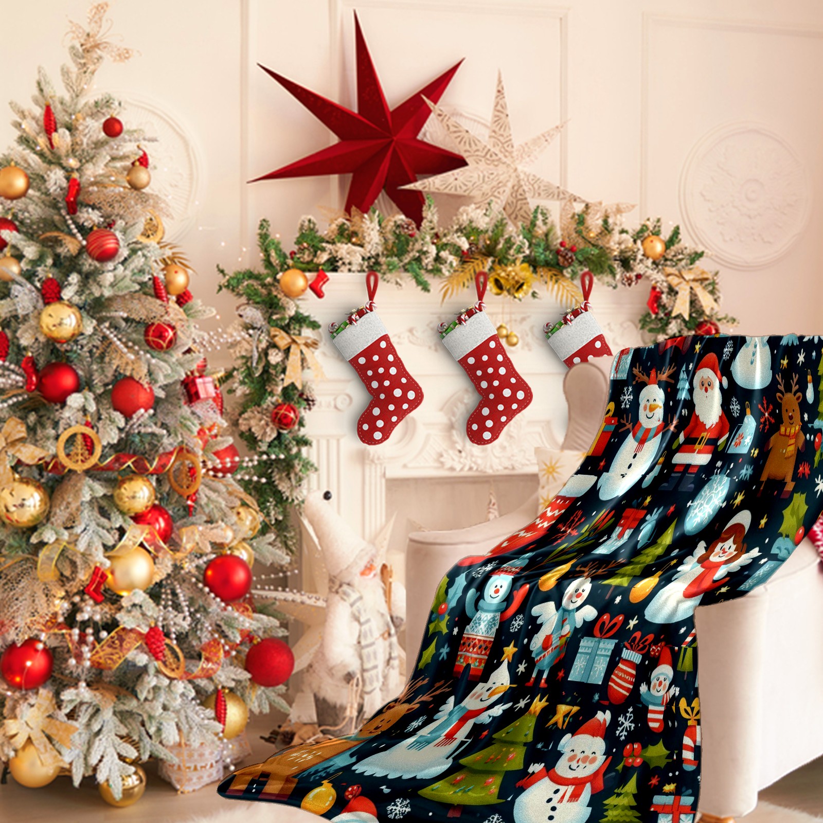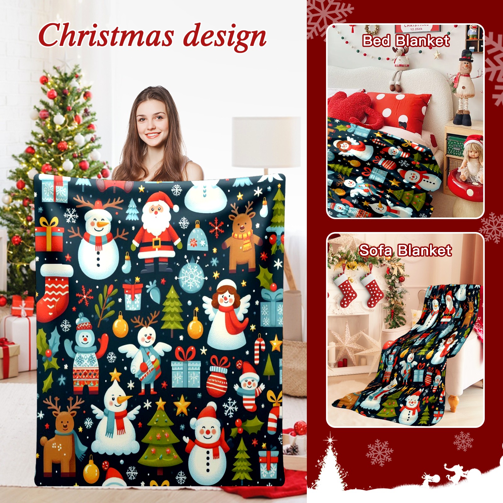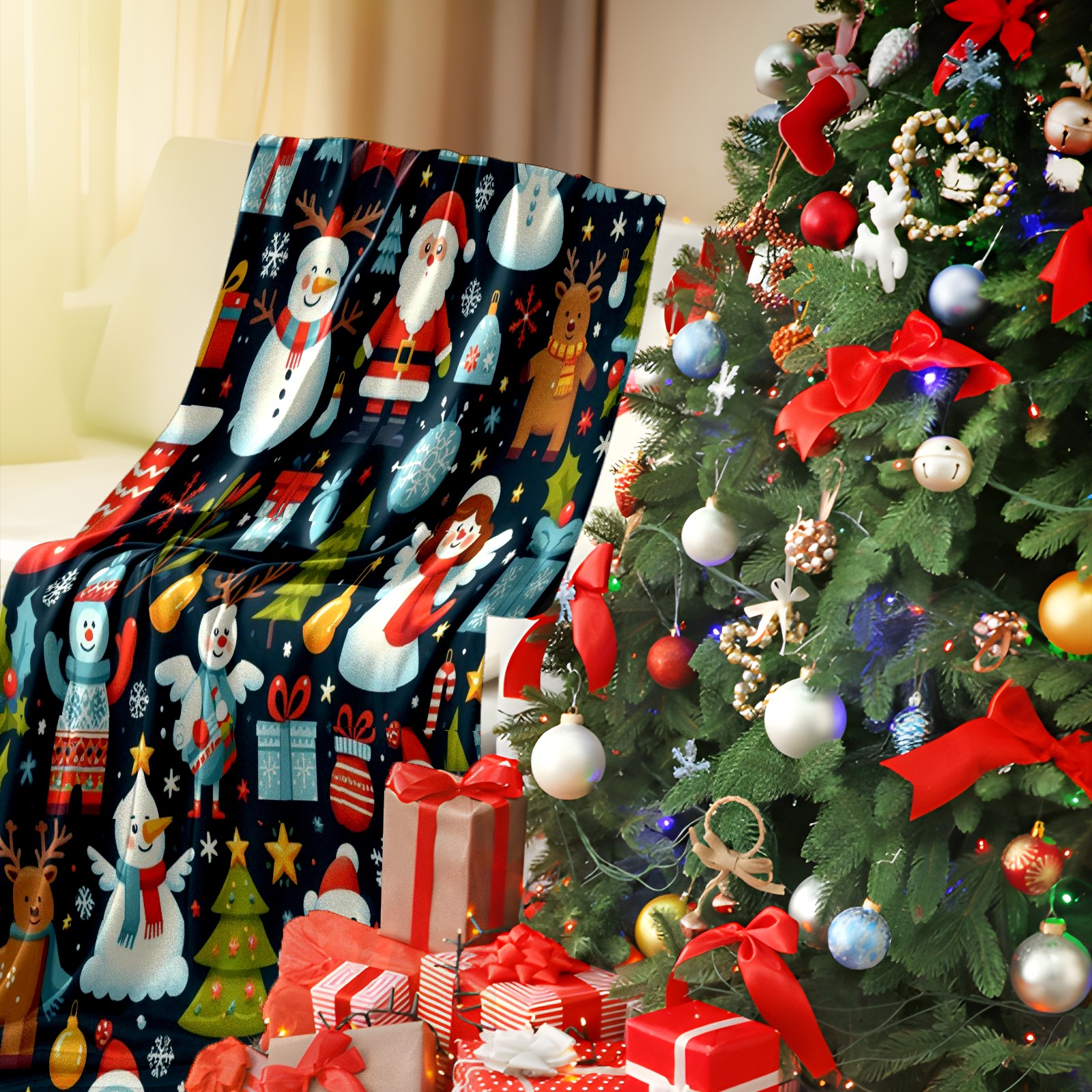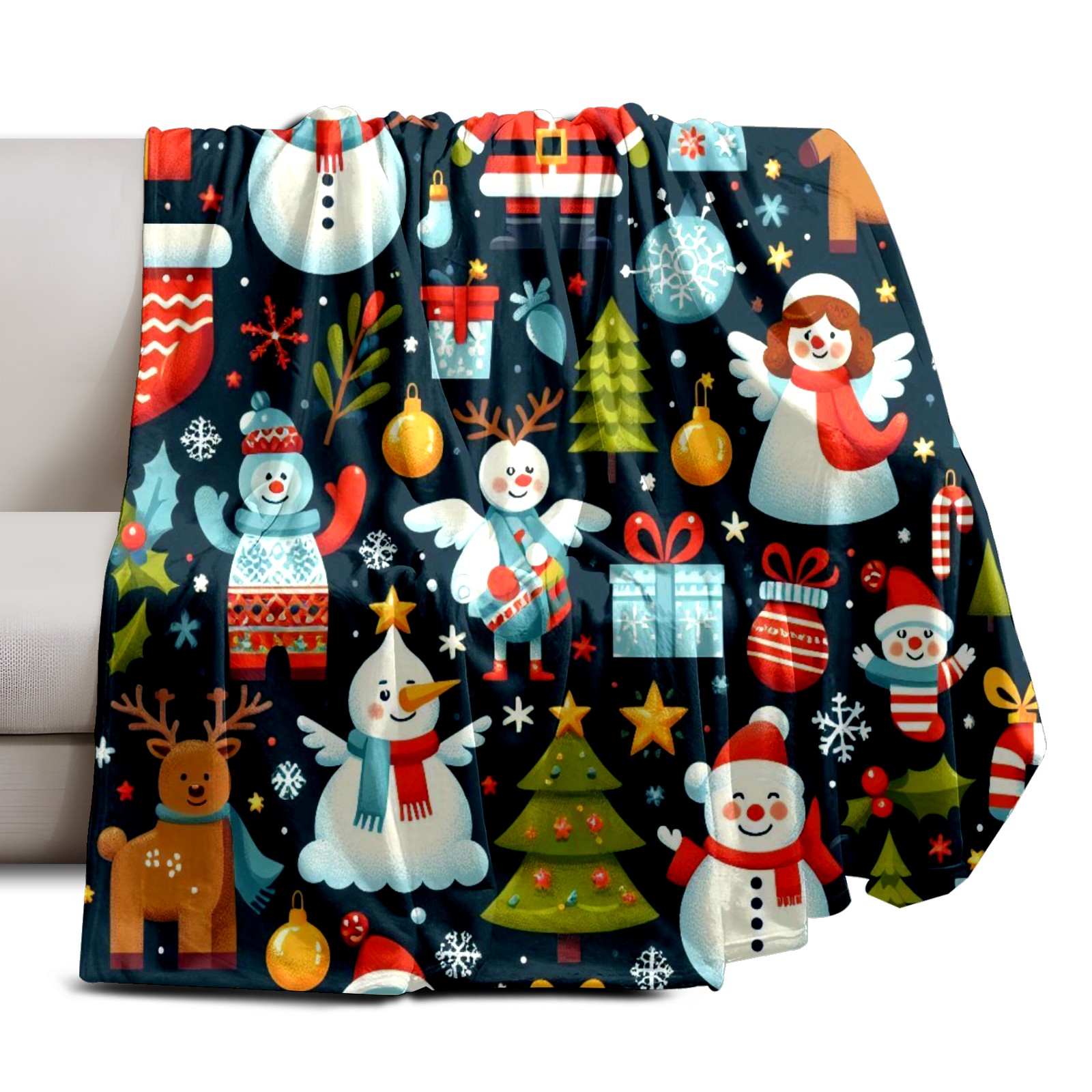 Премиальная фланелевая одеяло Dark Blue Christmas Snowmen Deer