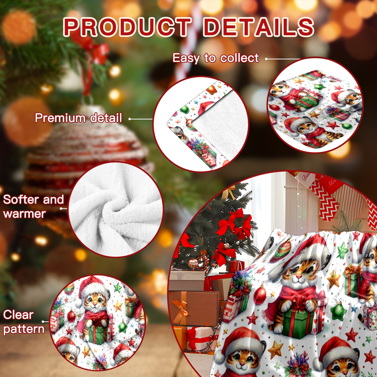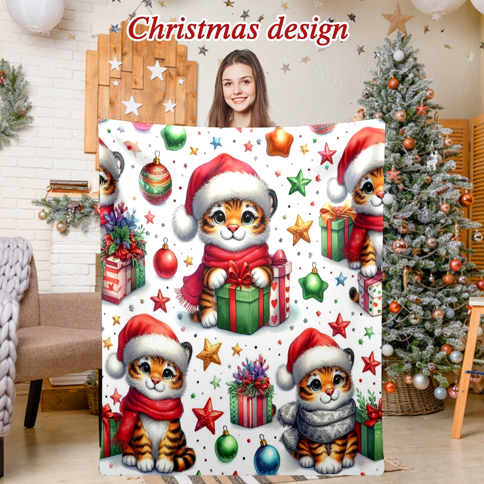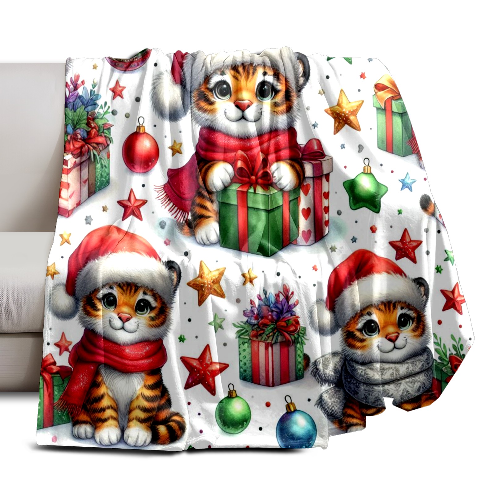 Премиальная фланелевая одеяло Red Christmas Tigers Presents