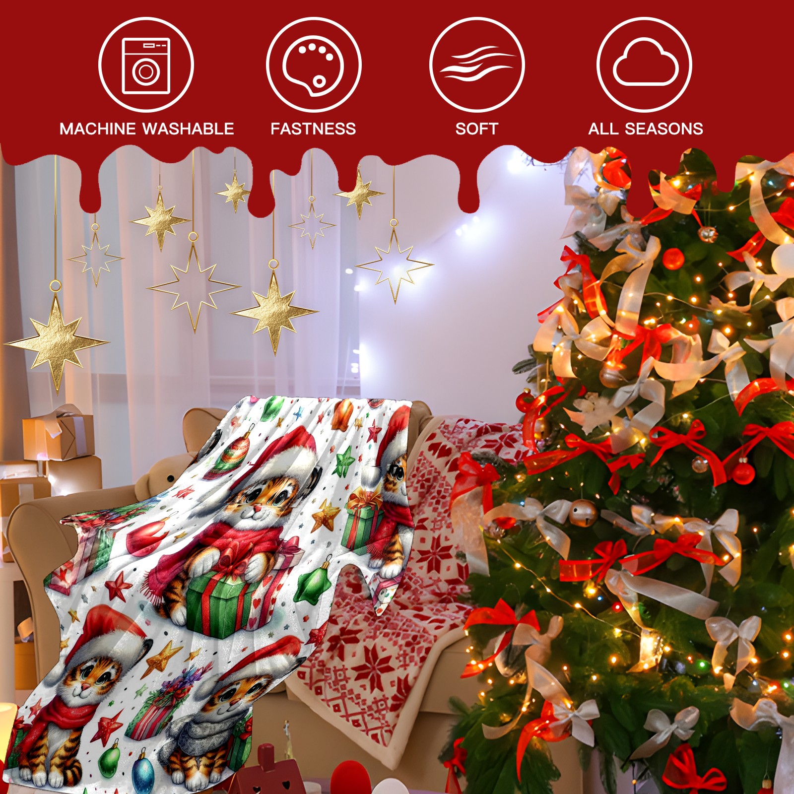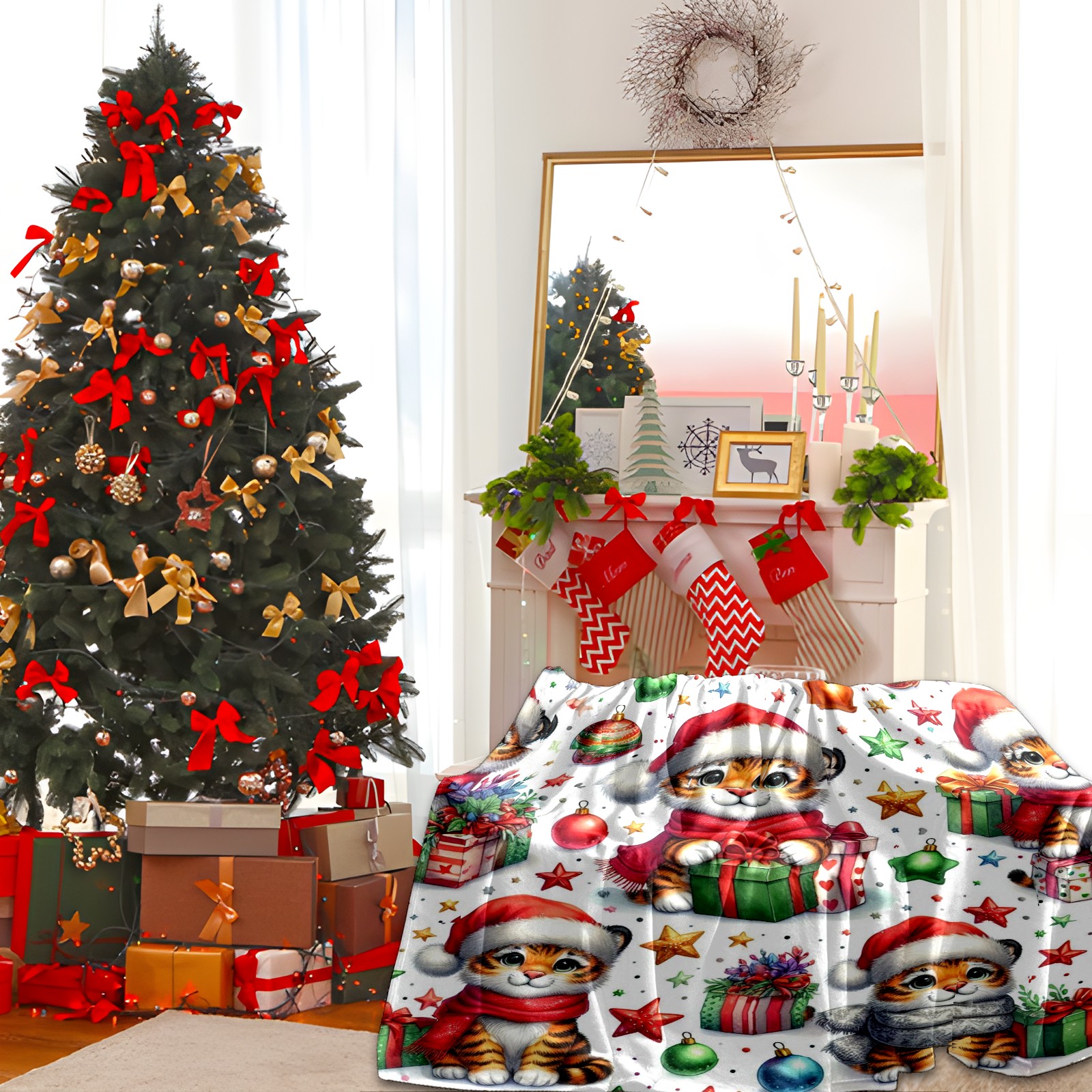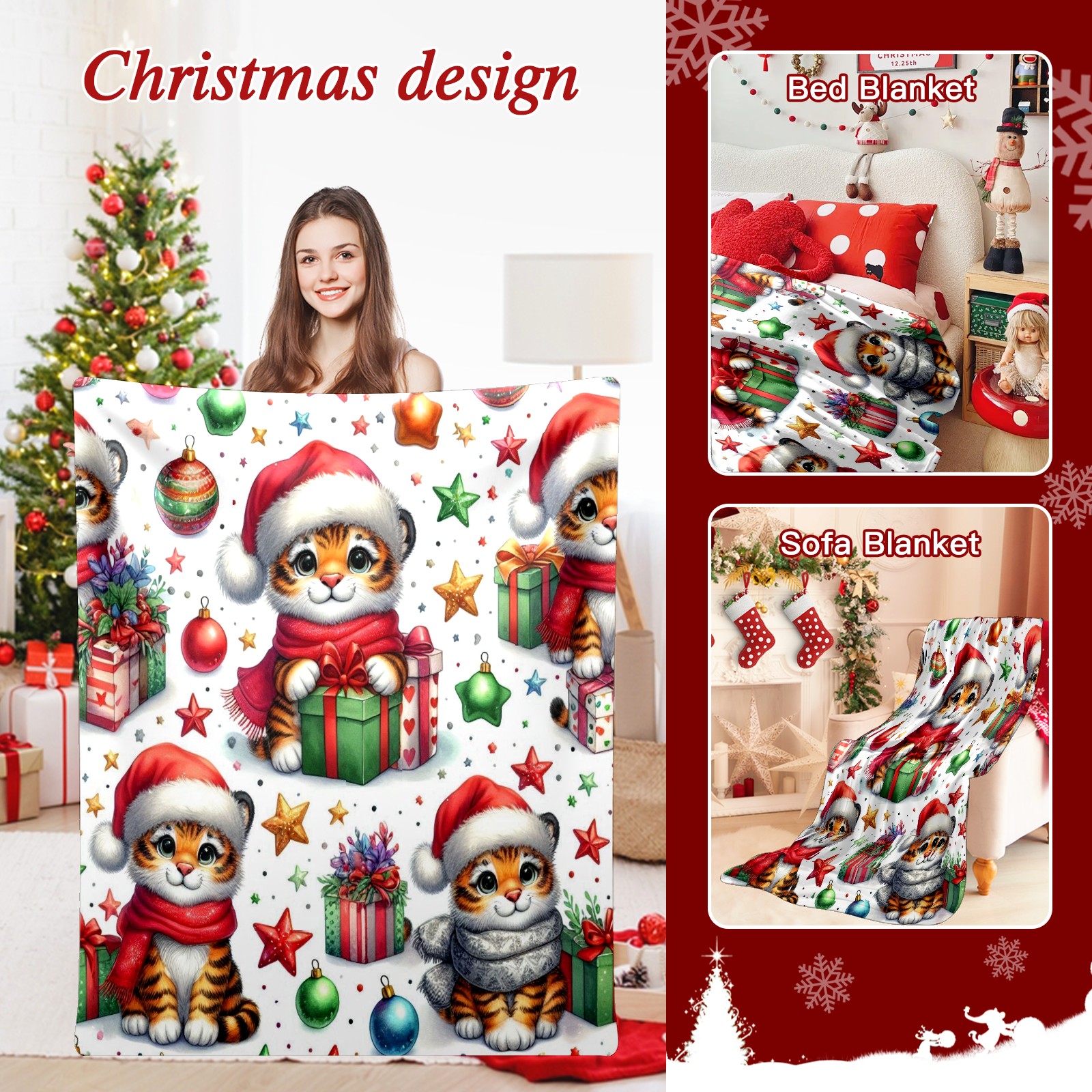 Премиальная фланелевая одеяло Red Christmas Tigers Presents