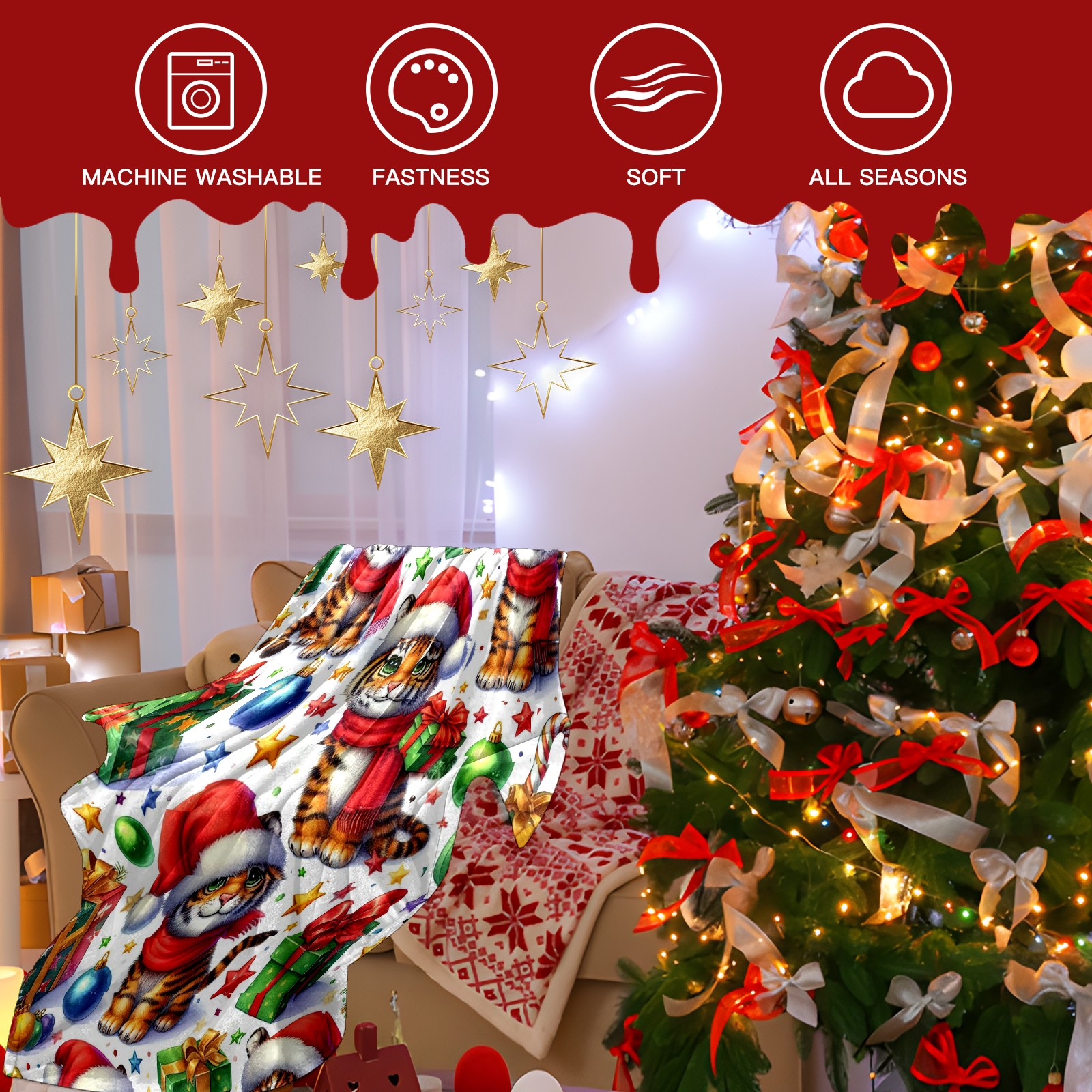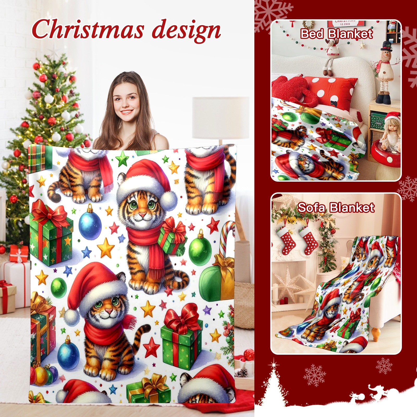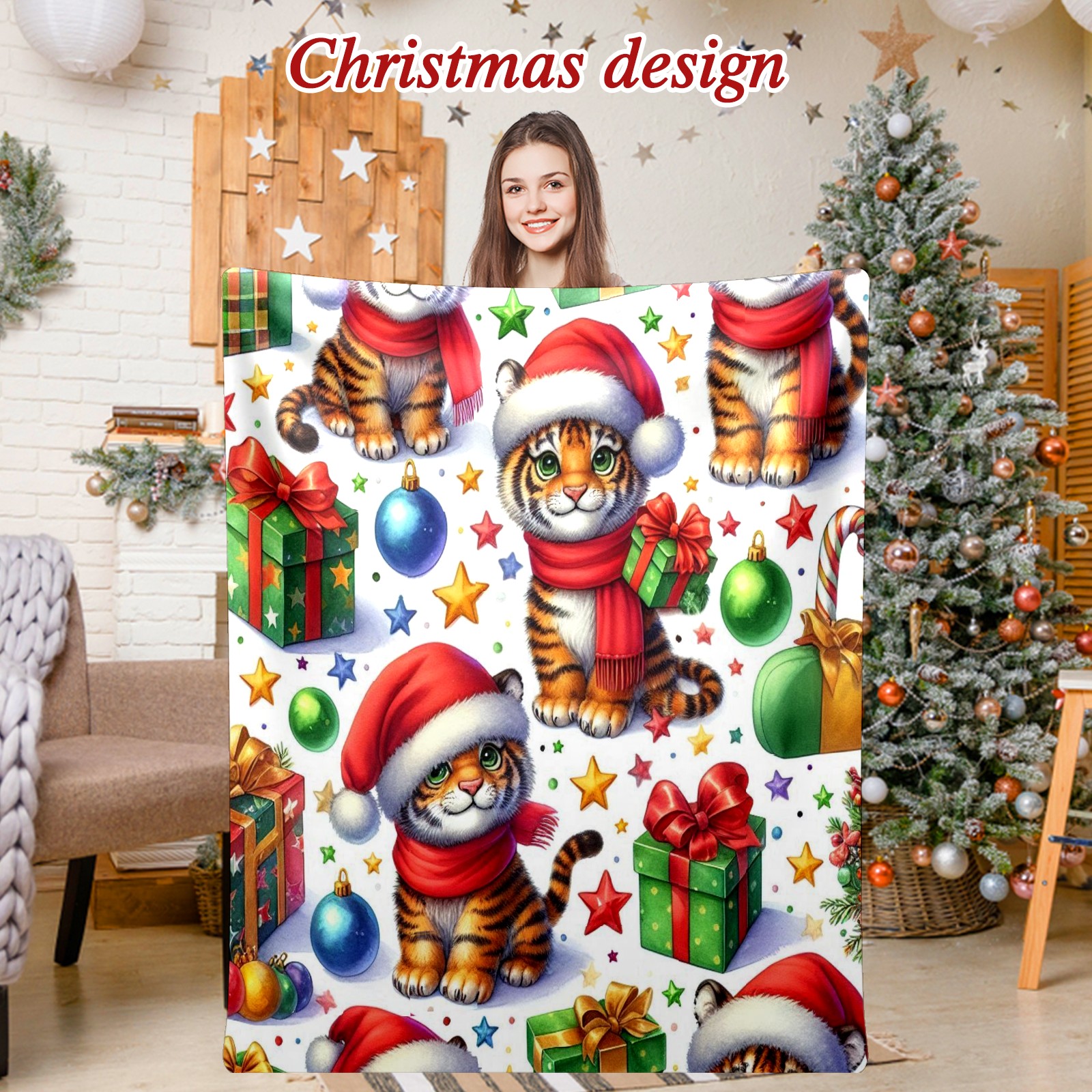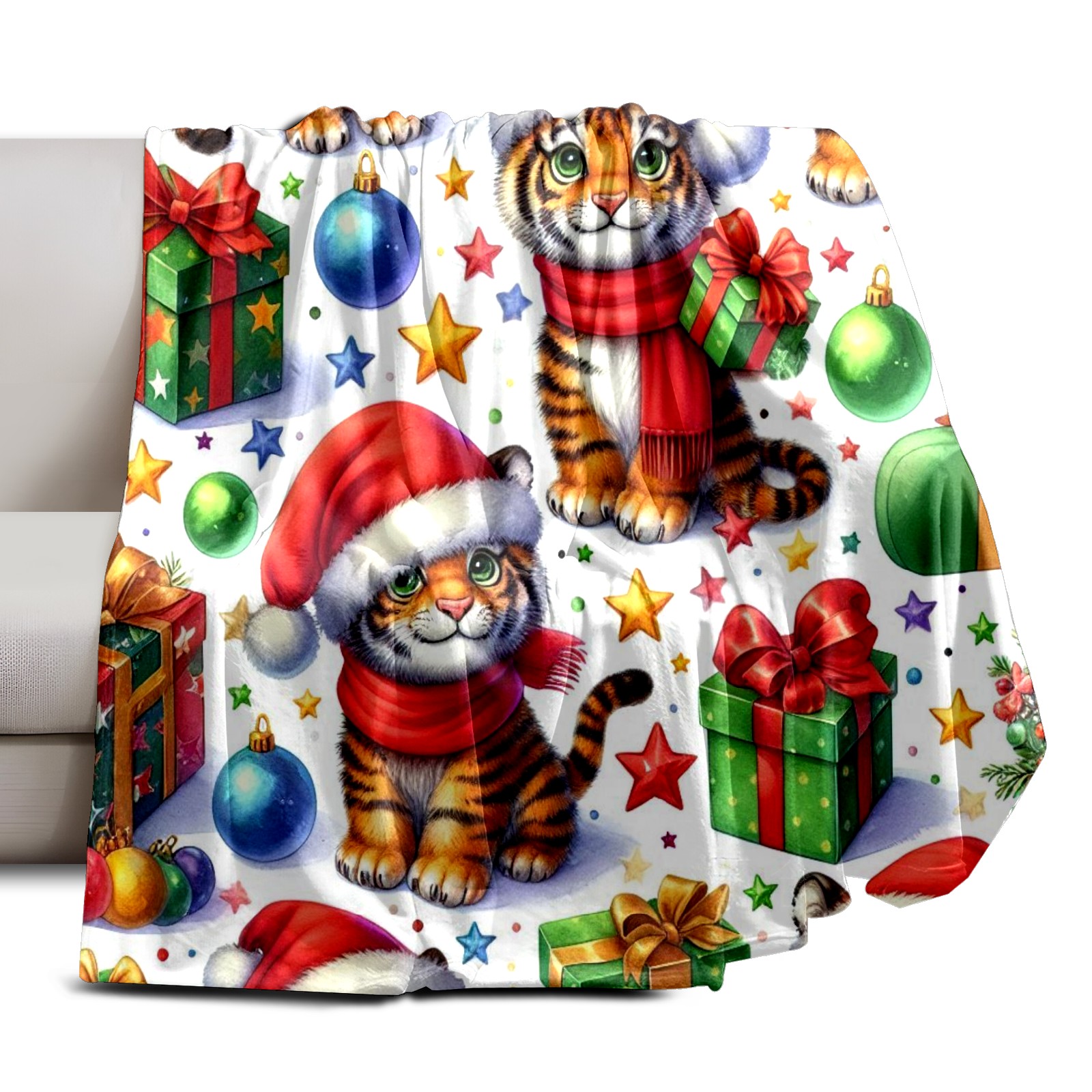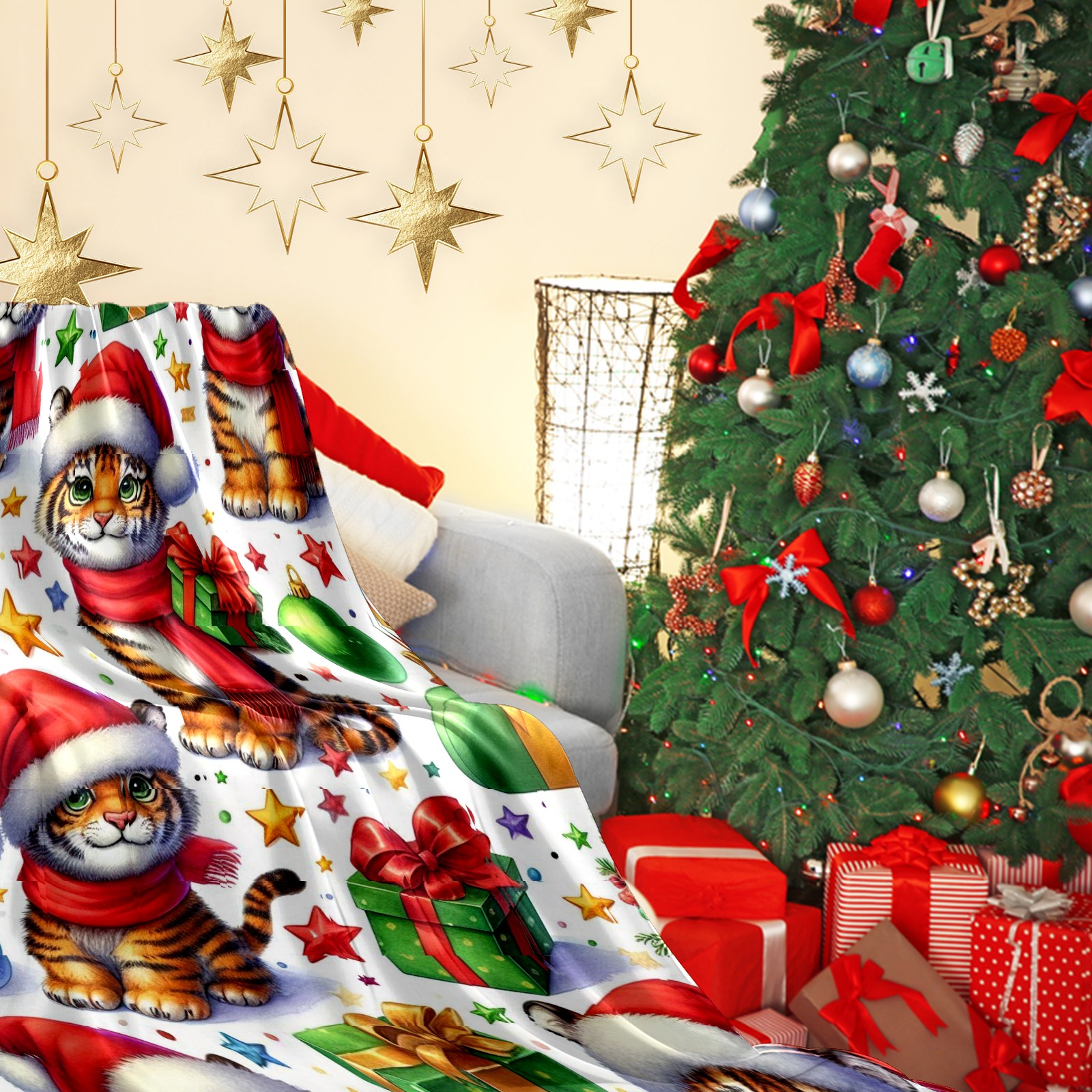 Премиальная фланелевая одеяло Red Christmas Tigers Gifts