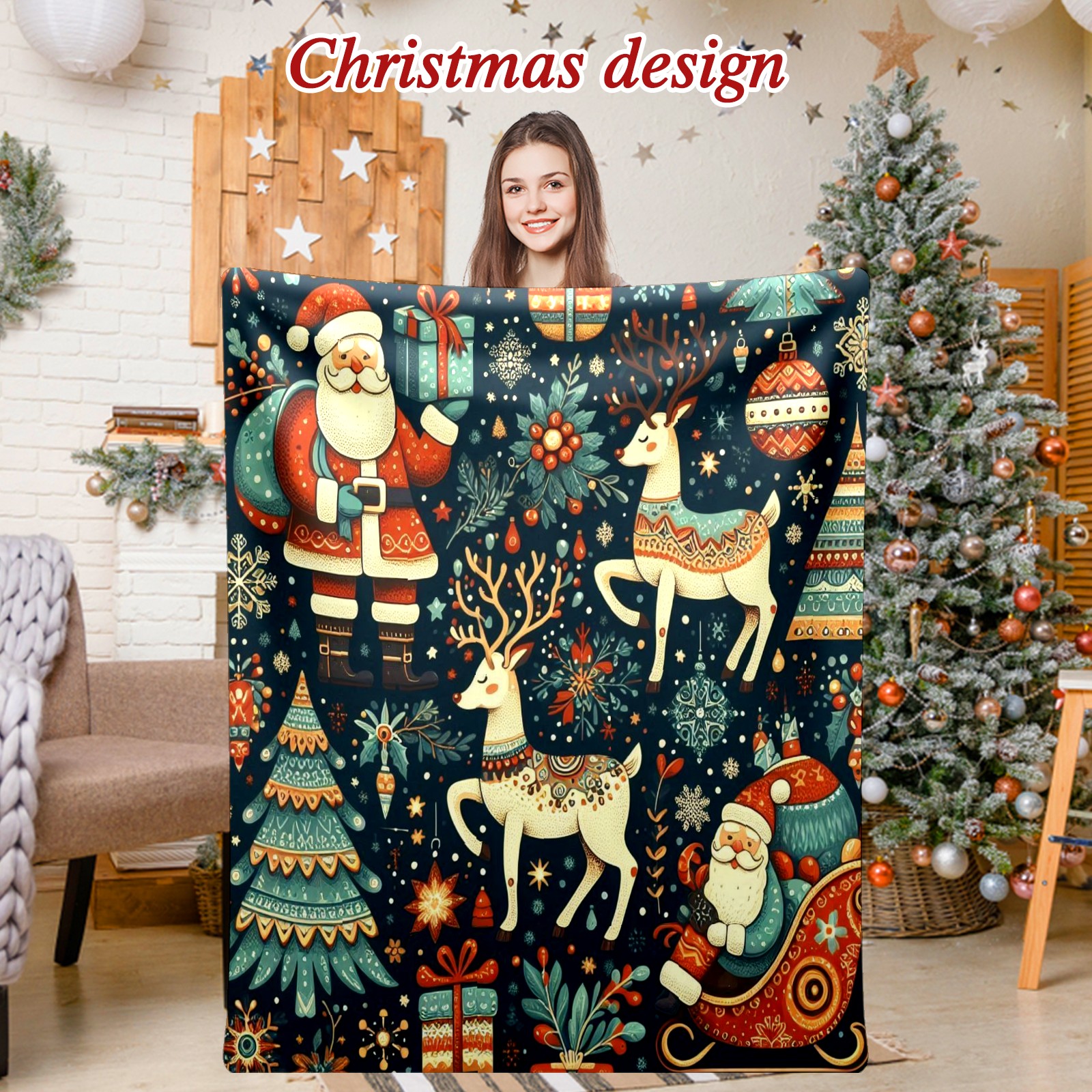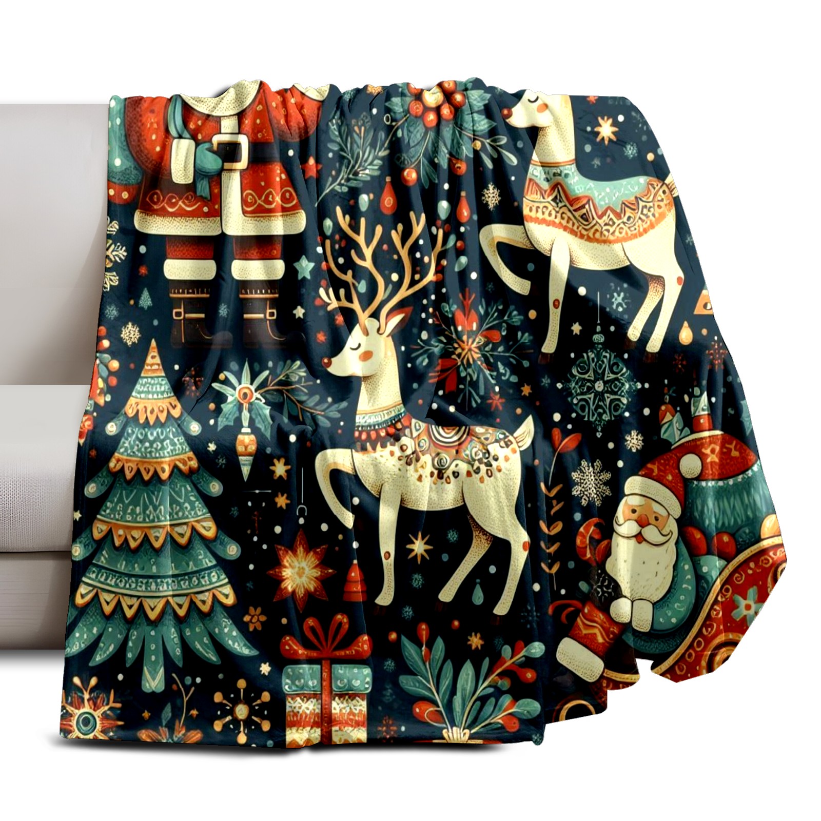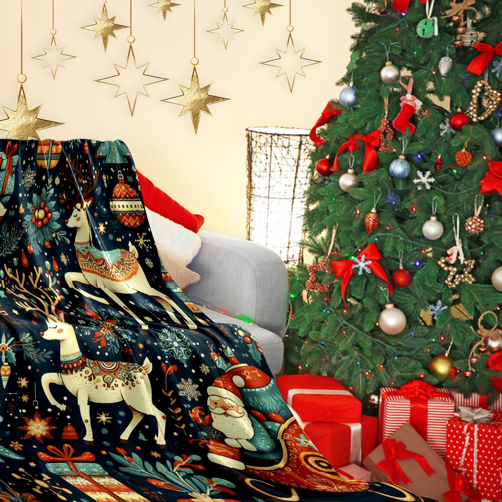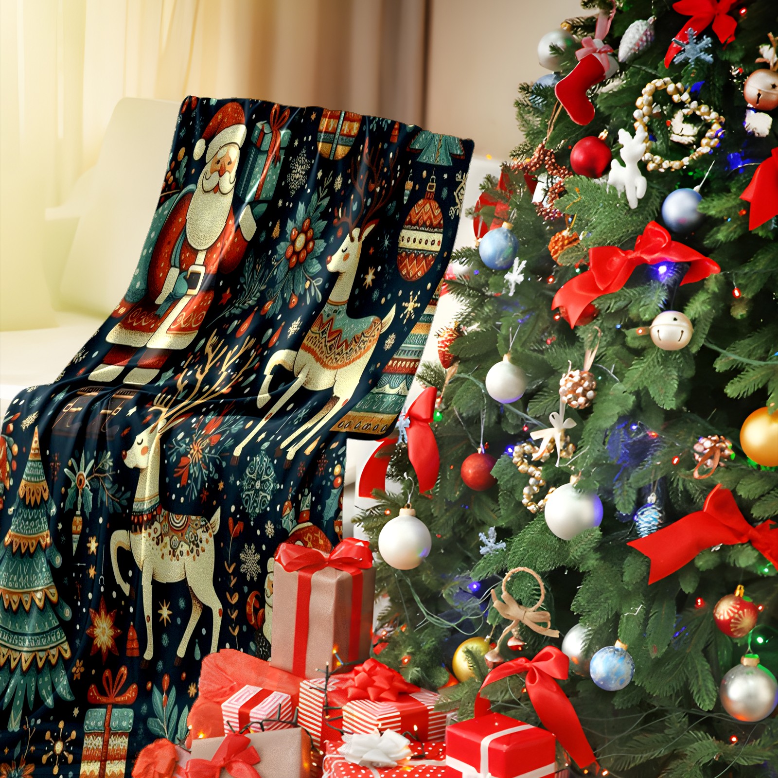 Премиальная фланелевая одеяло Dark Blue Christmas Santa Deer