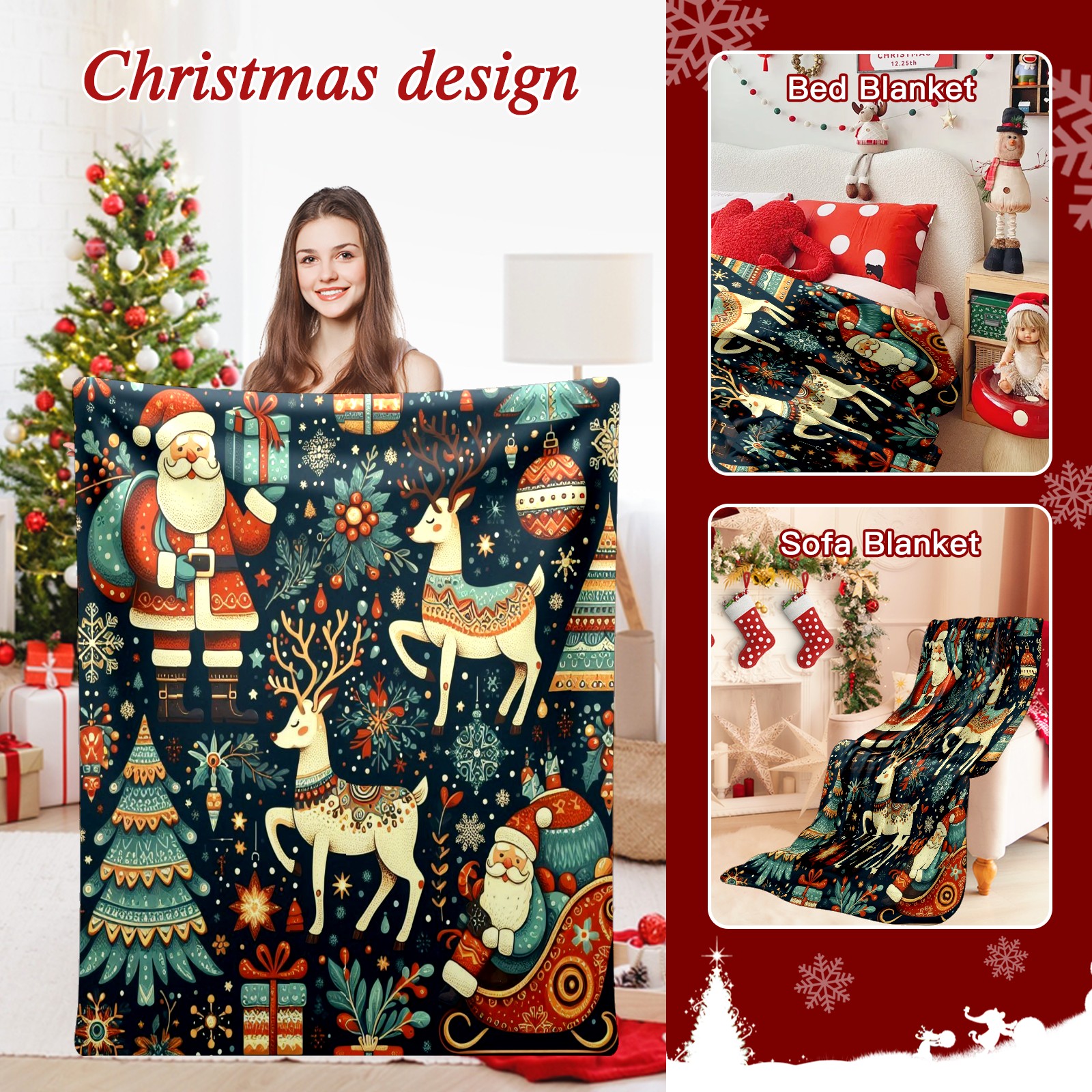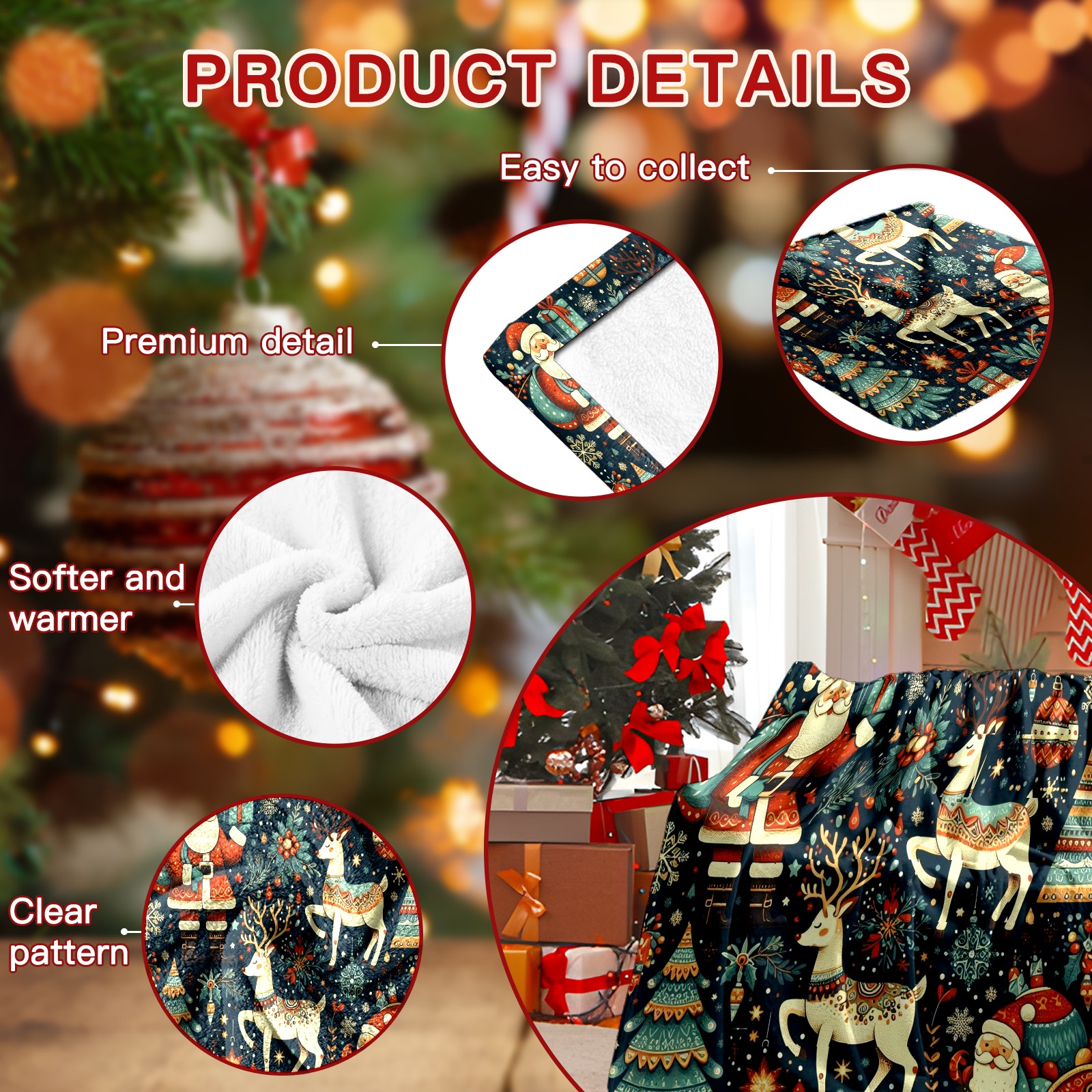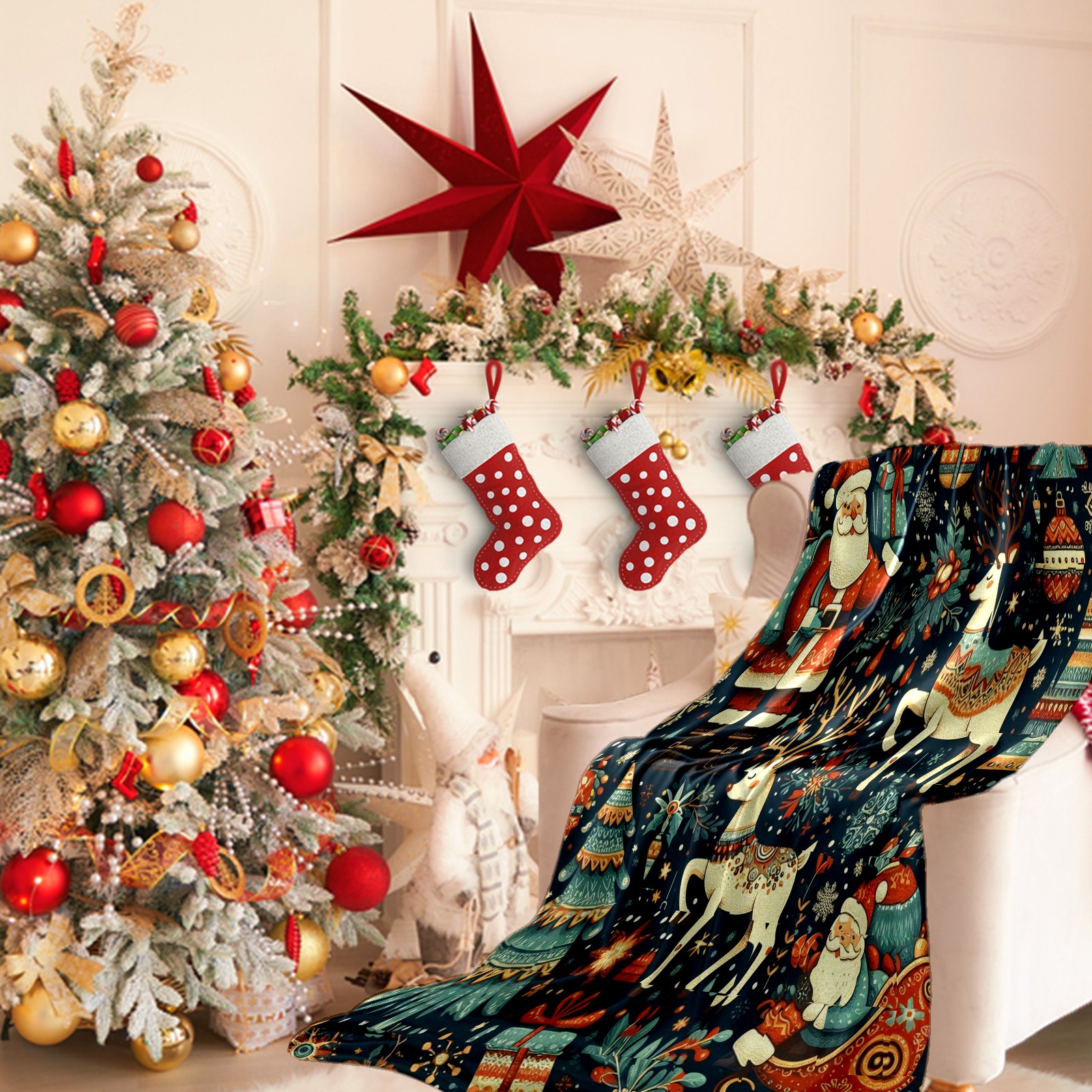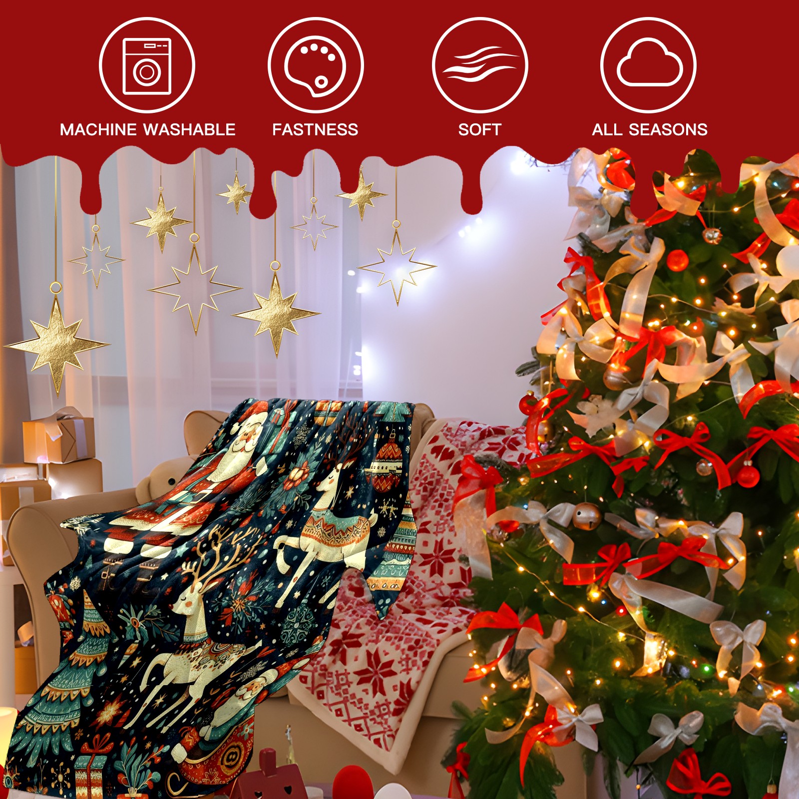 Премиальная фланелевая одеяло Dark Blue Christmas Santa Deer