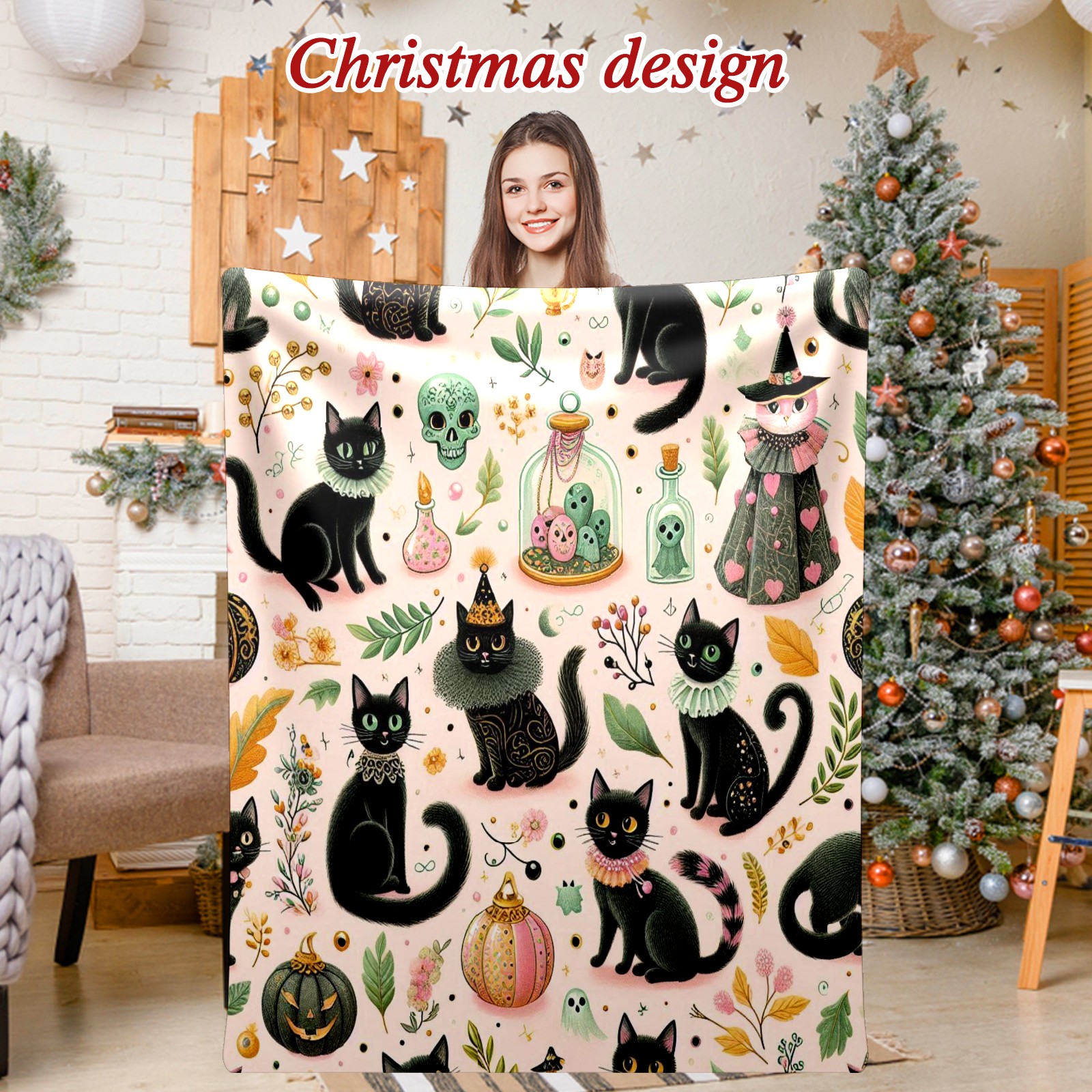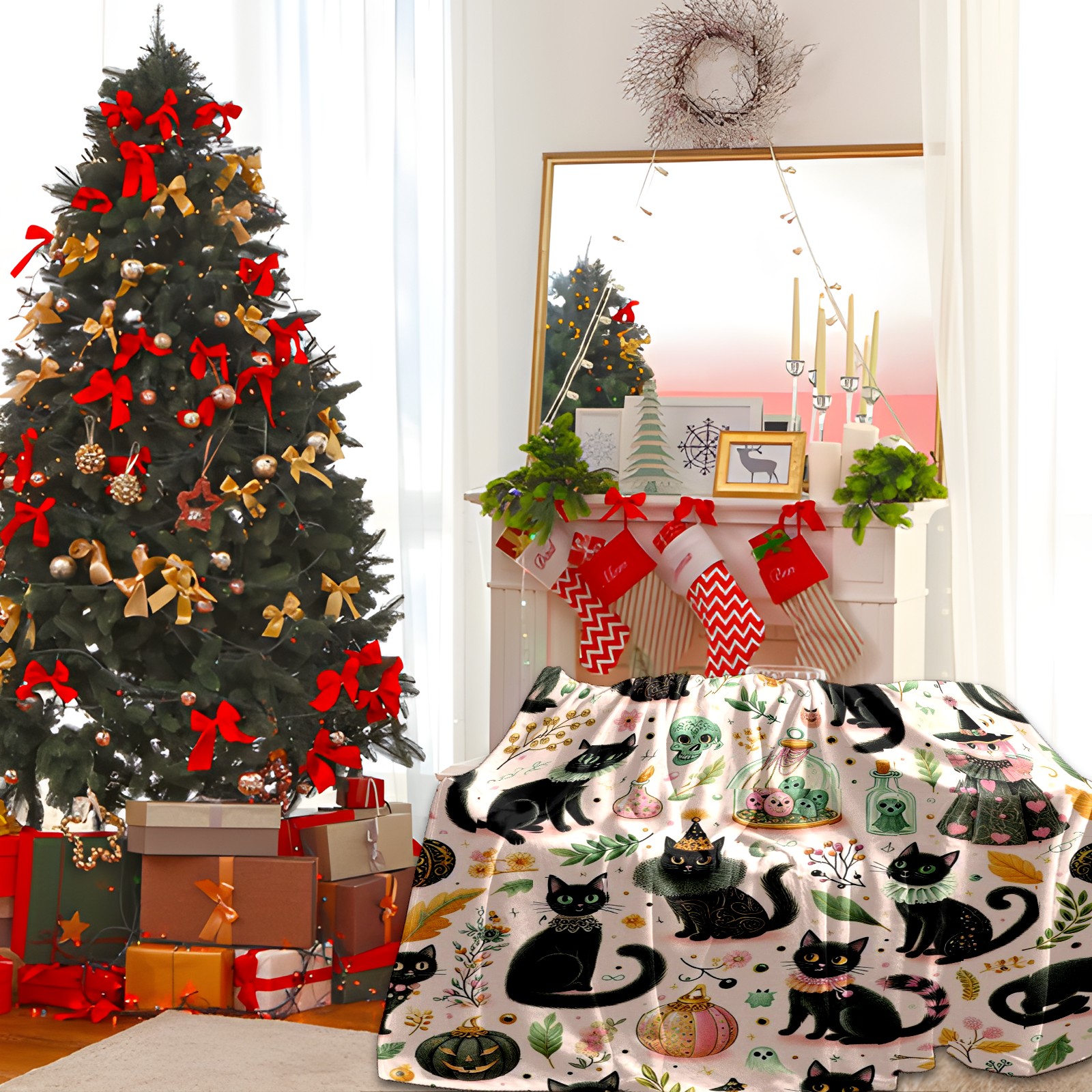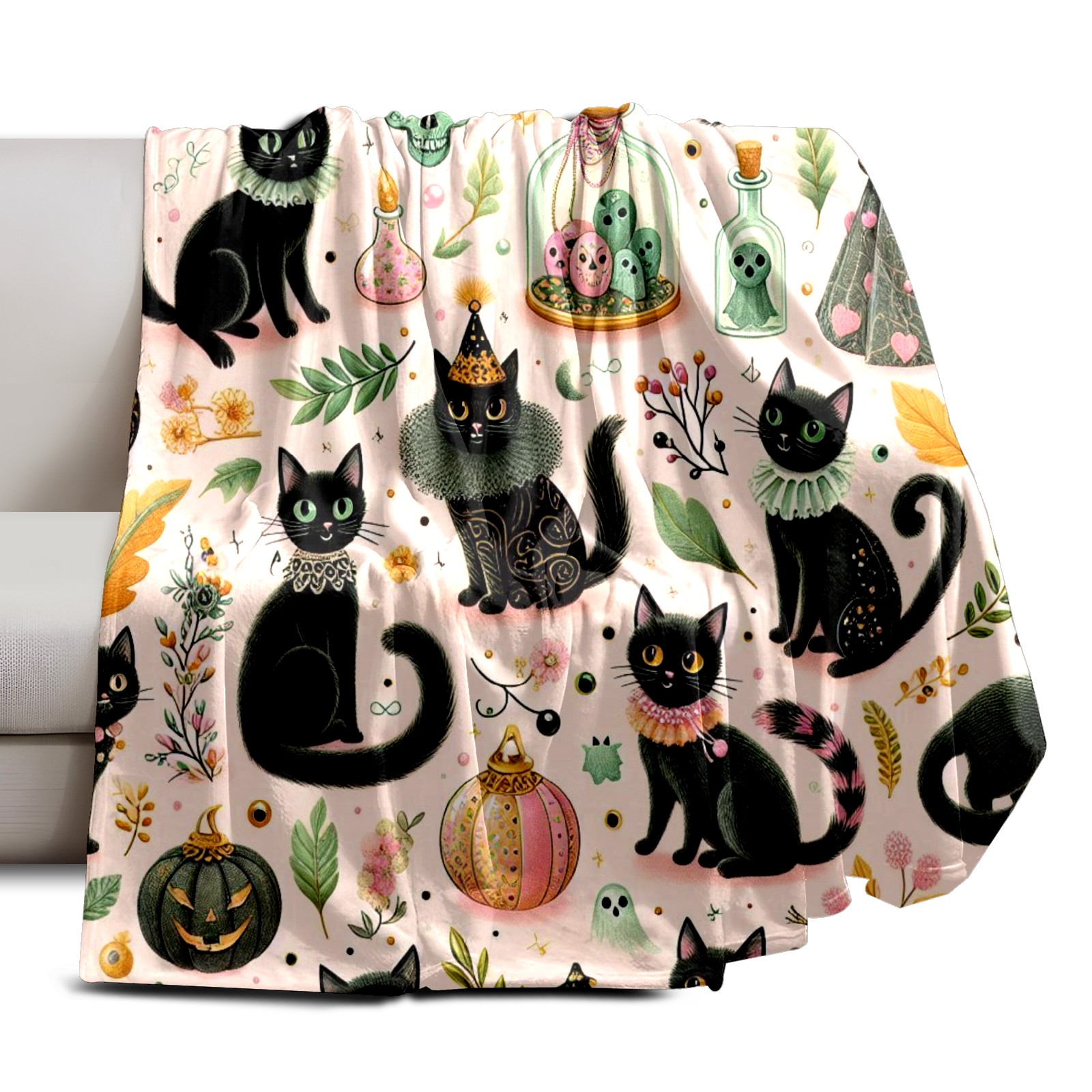 Премиальная фланелевая одеяло Black Halloween Cats
