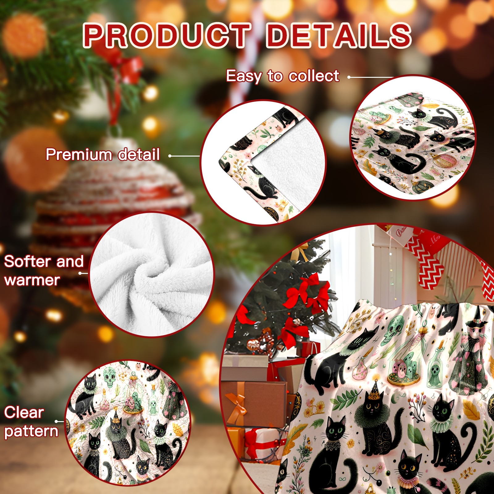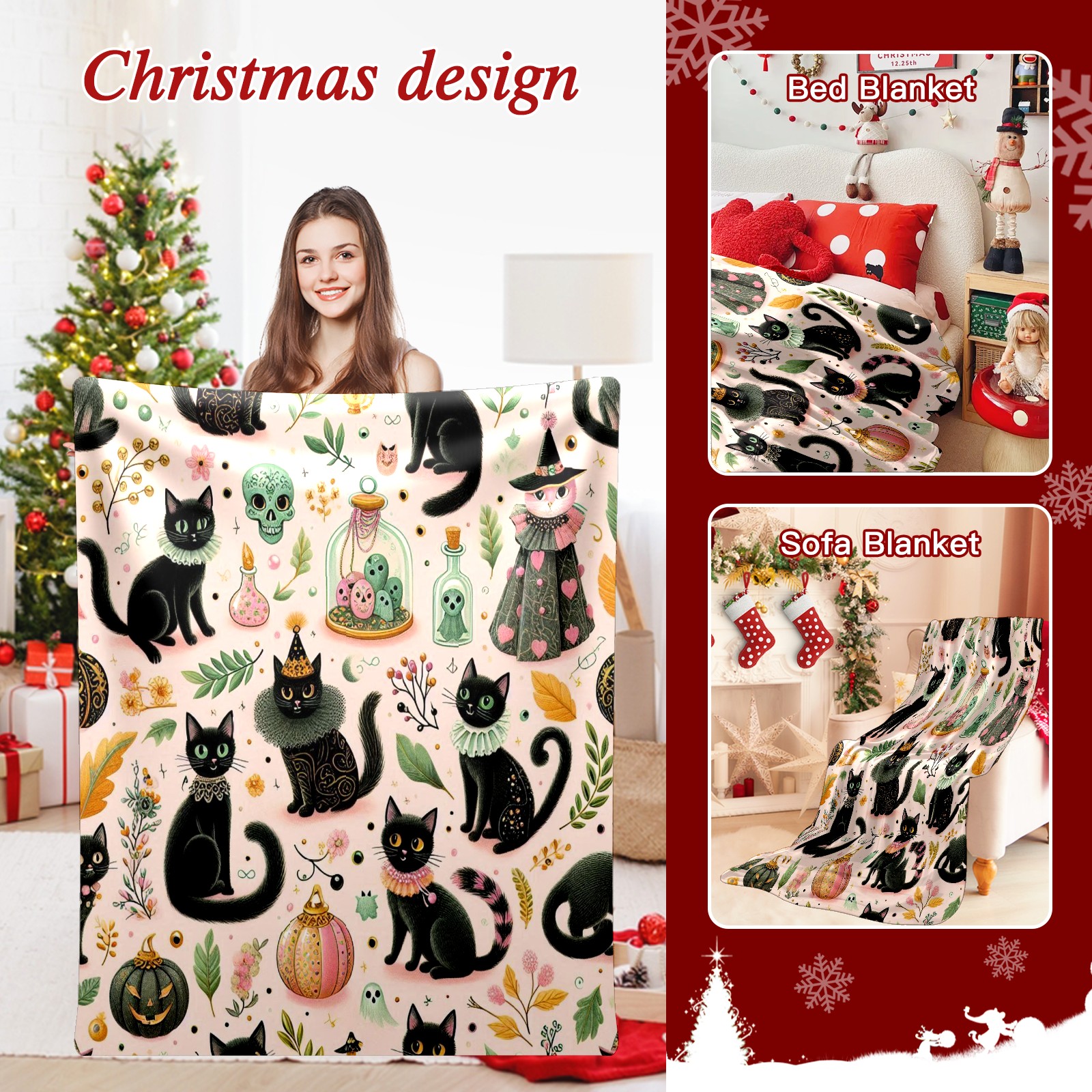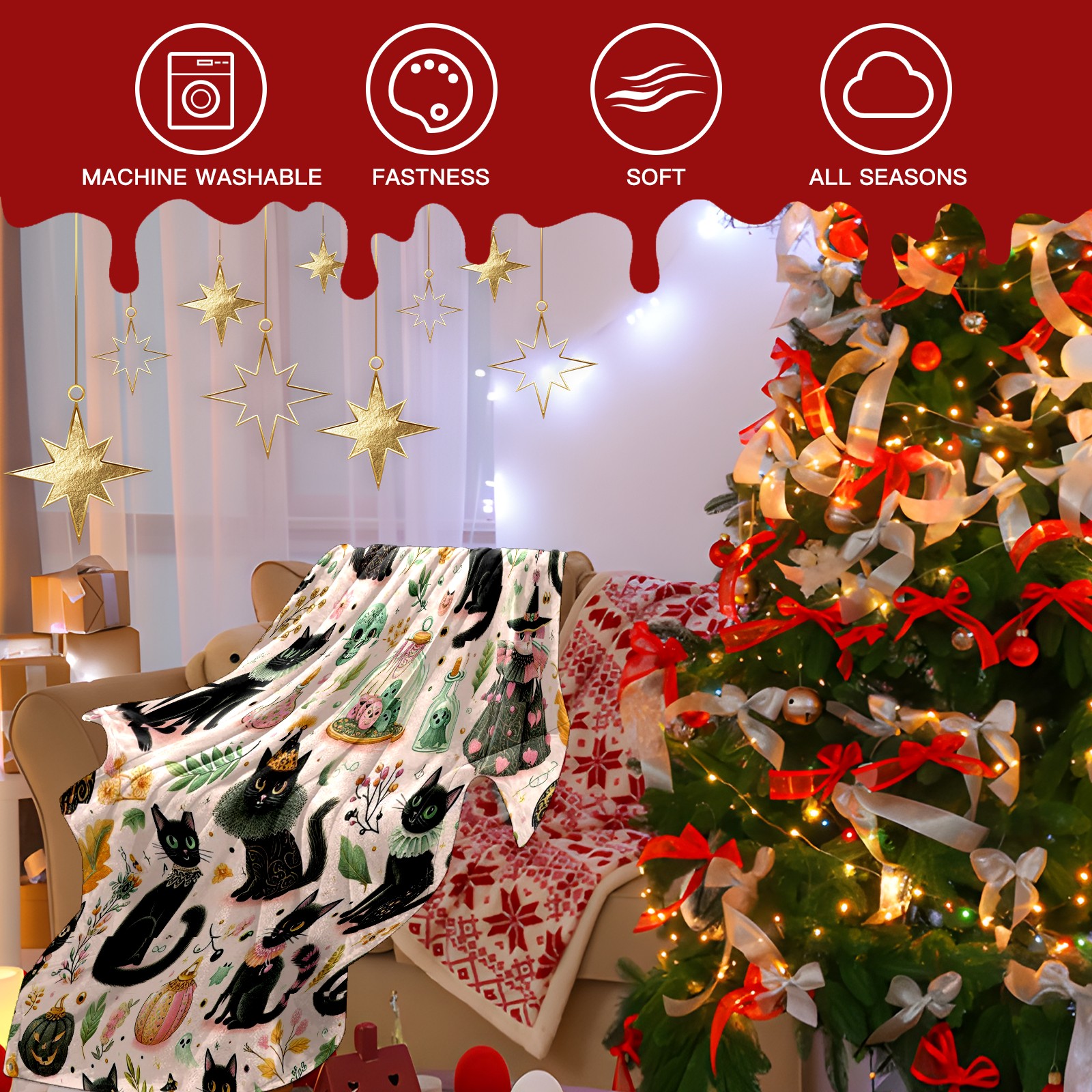 Премиальная фланелевая одеяло Black Halloween Cats