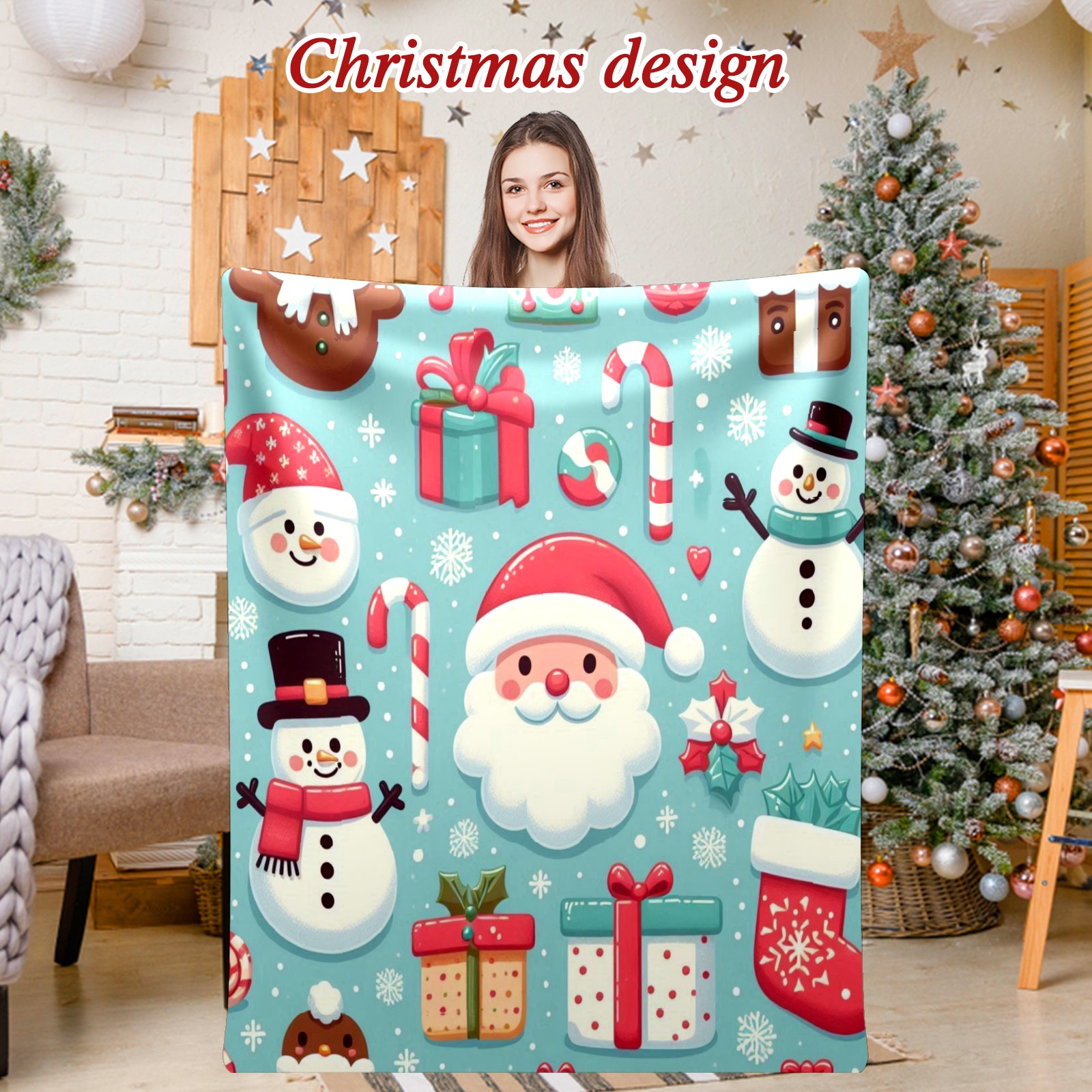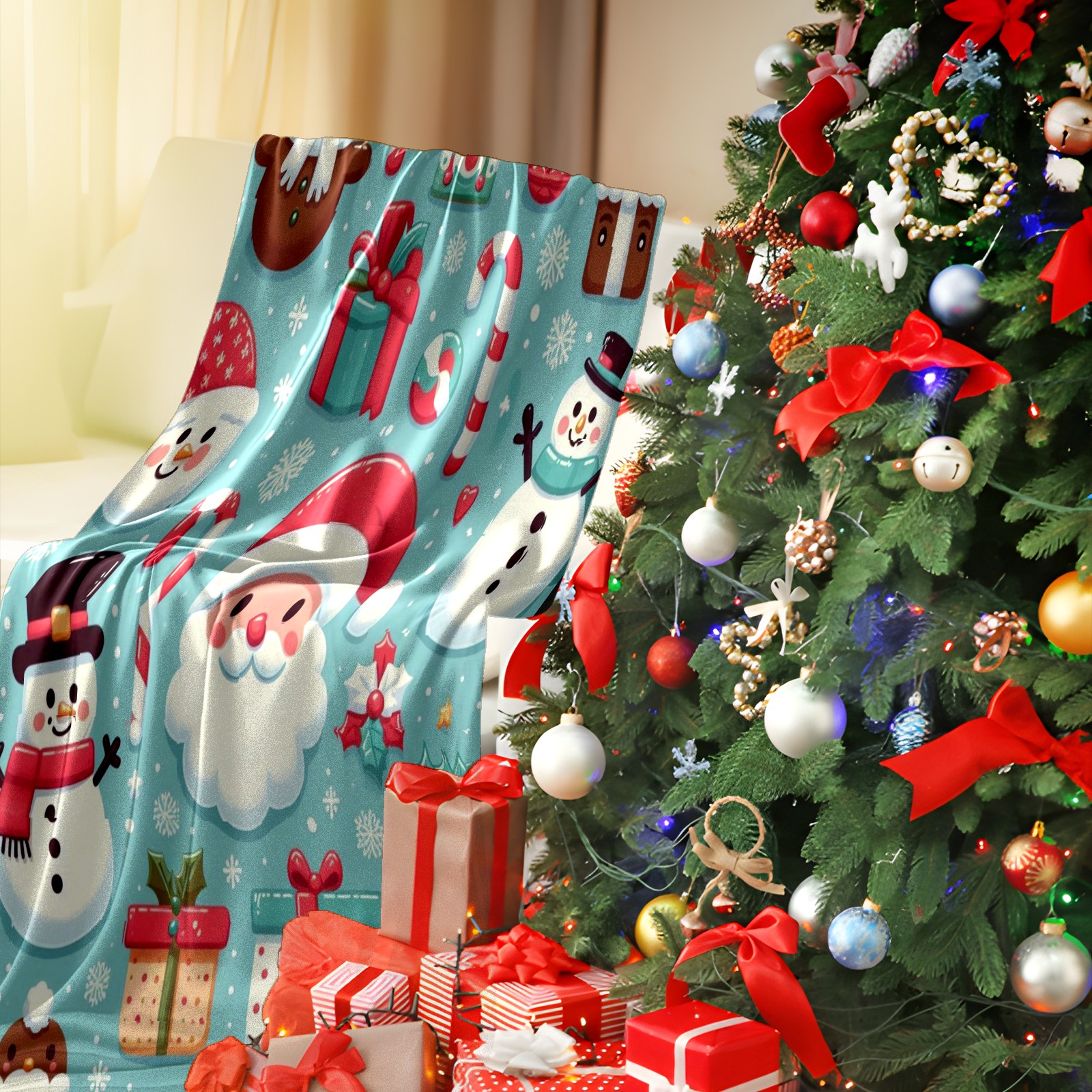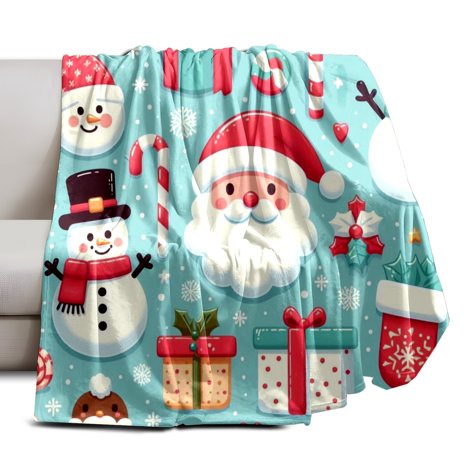 Премиальная фланелевая одеяло Blue Christmas Santa Snowman