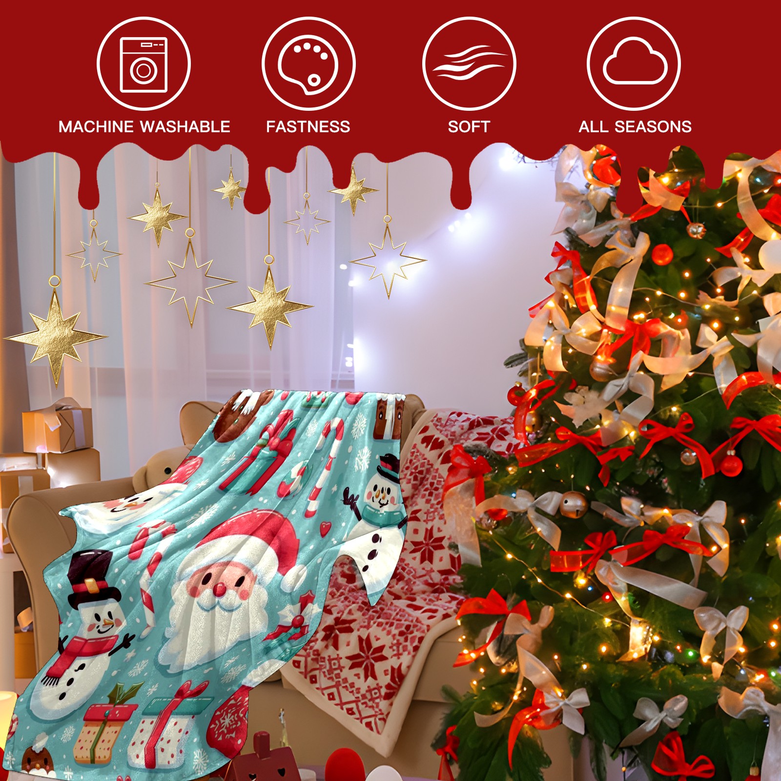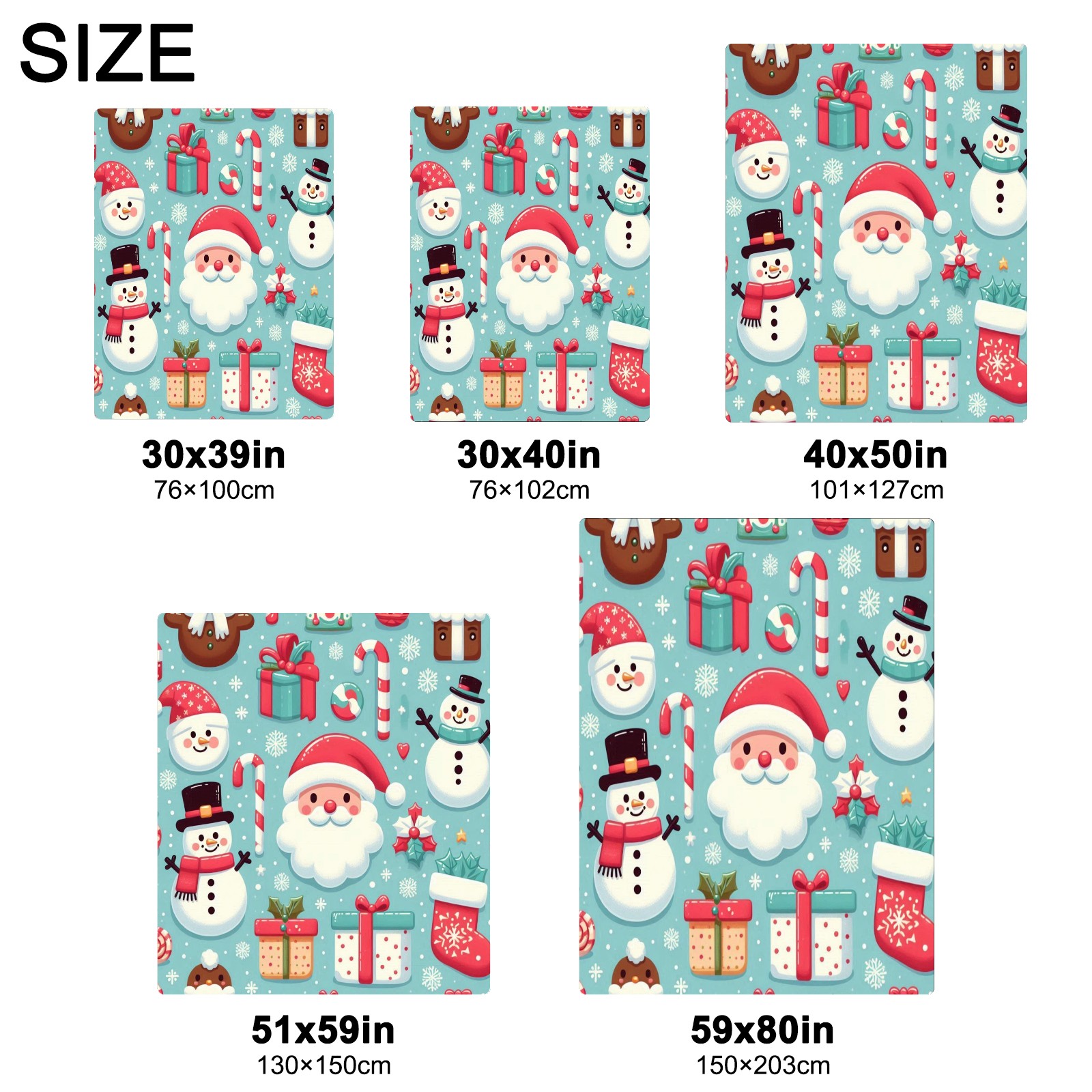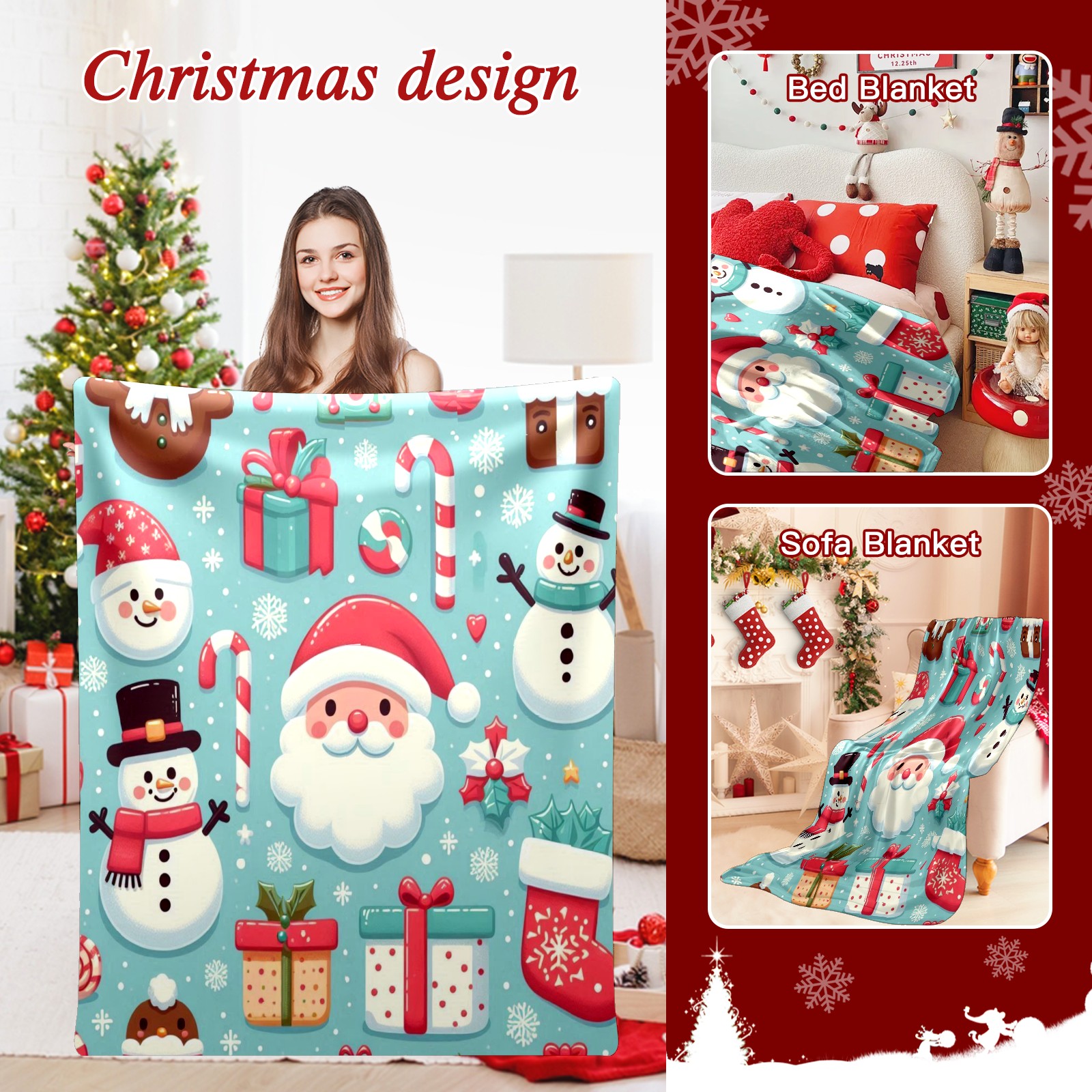 Премиальная фланелевая одеяло Blue Christmas Santa Snowman