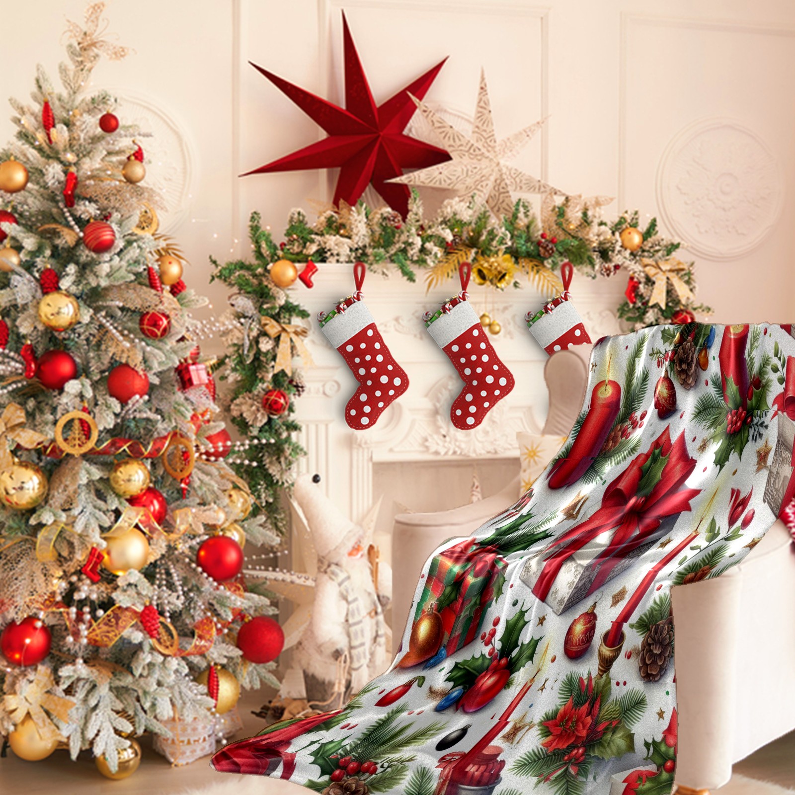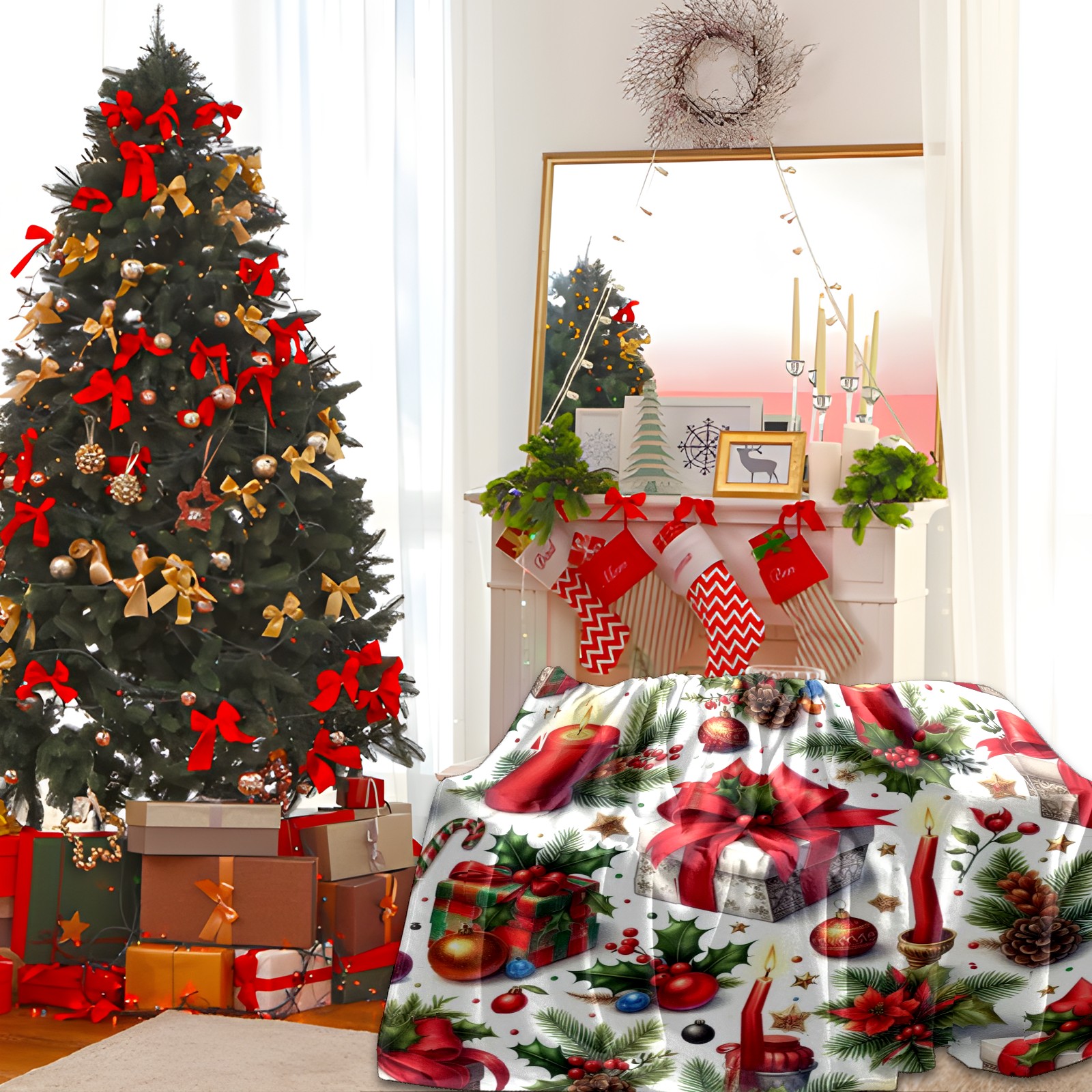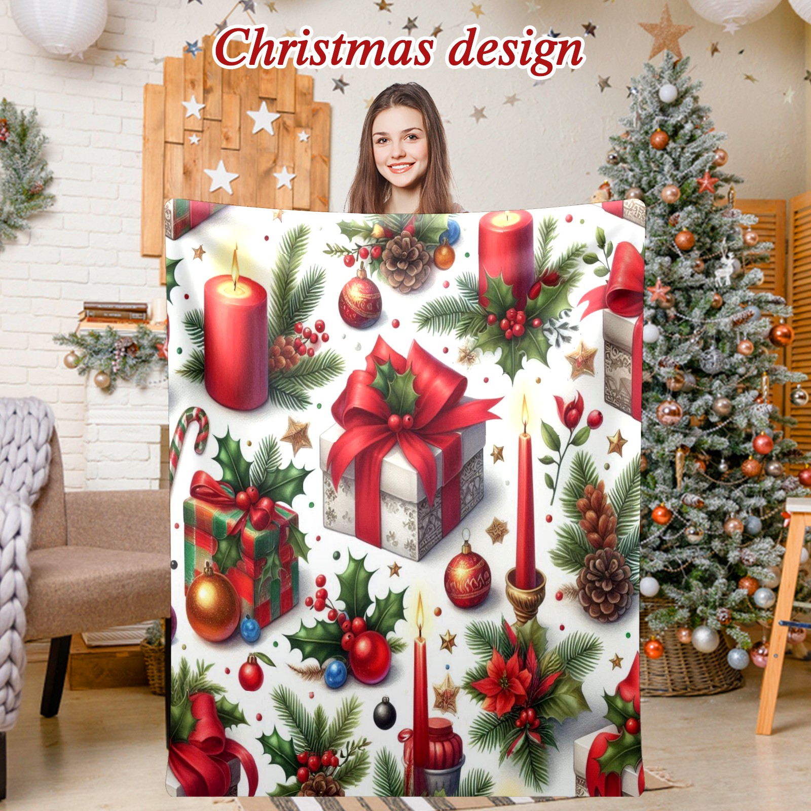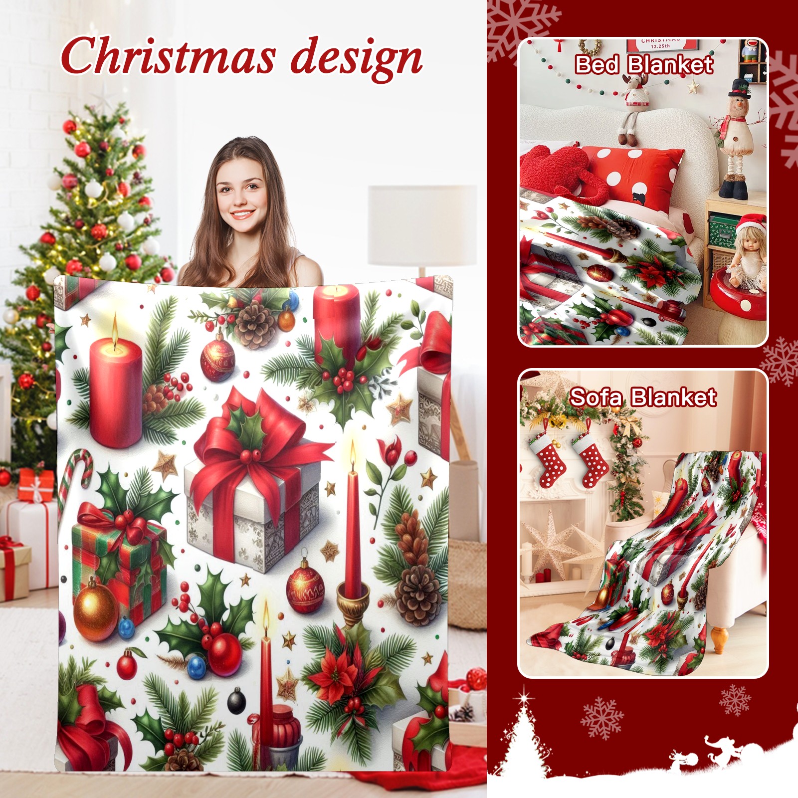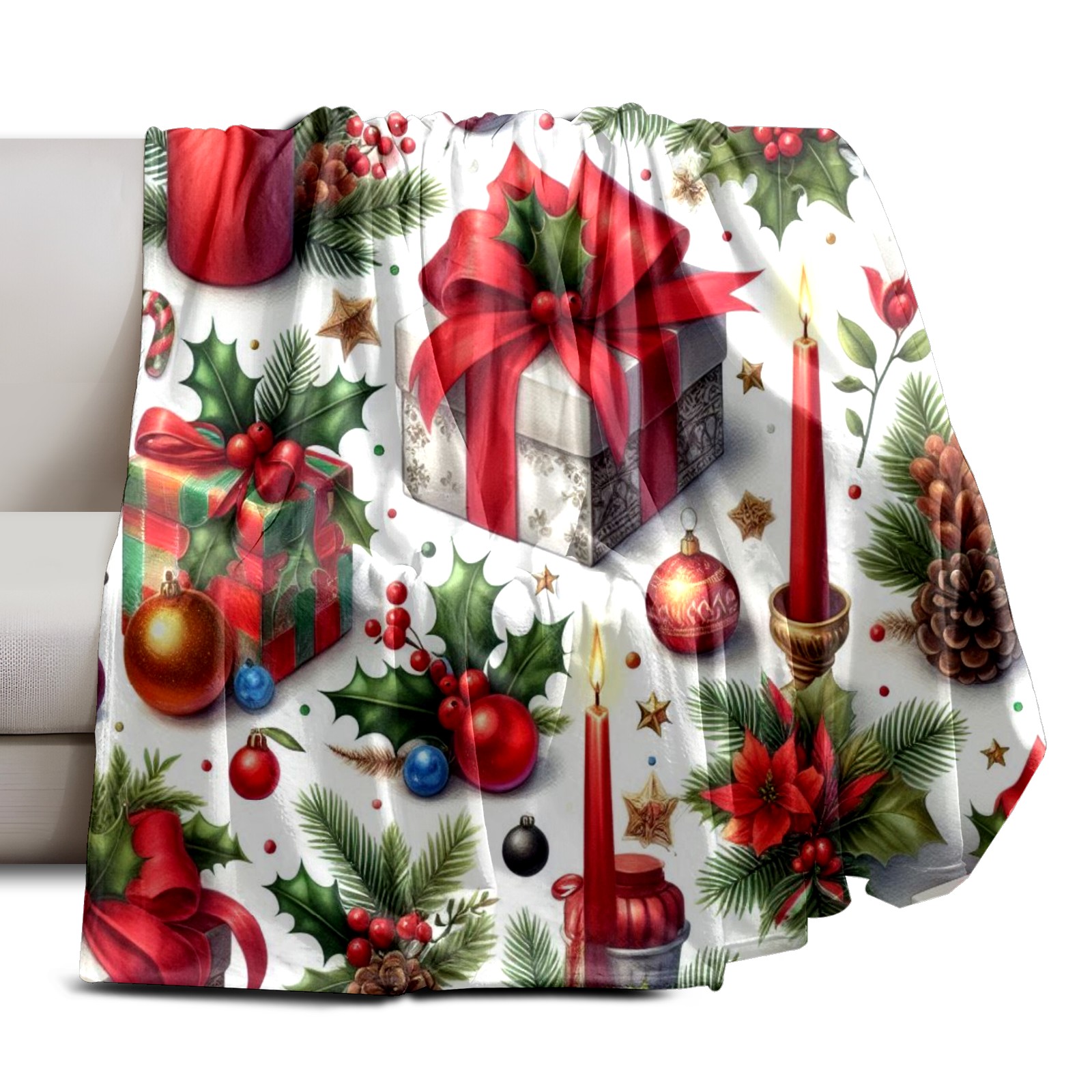 Премиальная фланелевая одеяло Red Christmas Candles Gifts