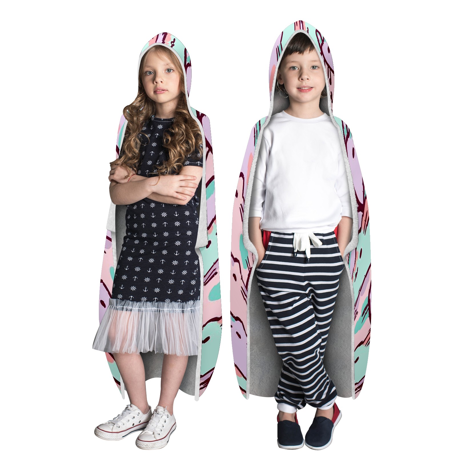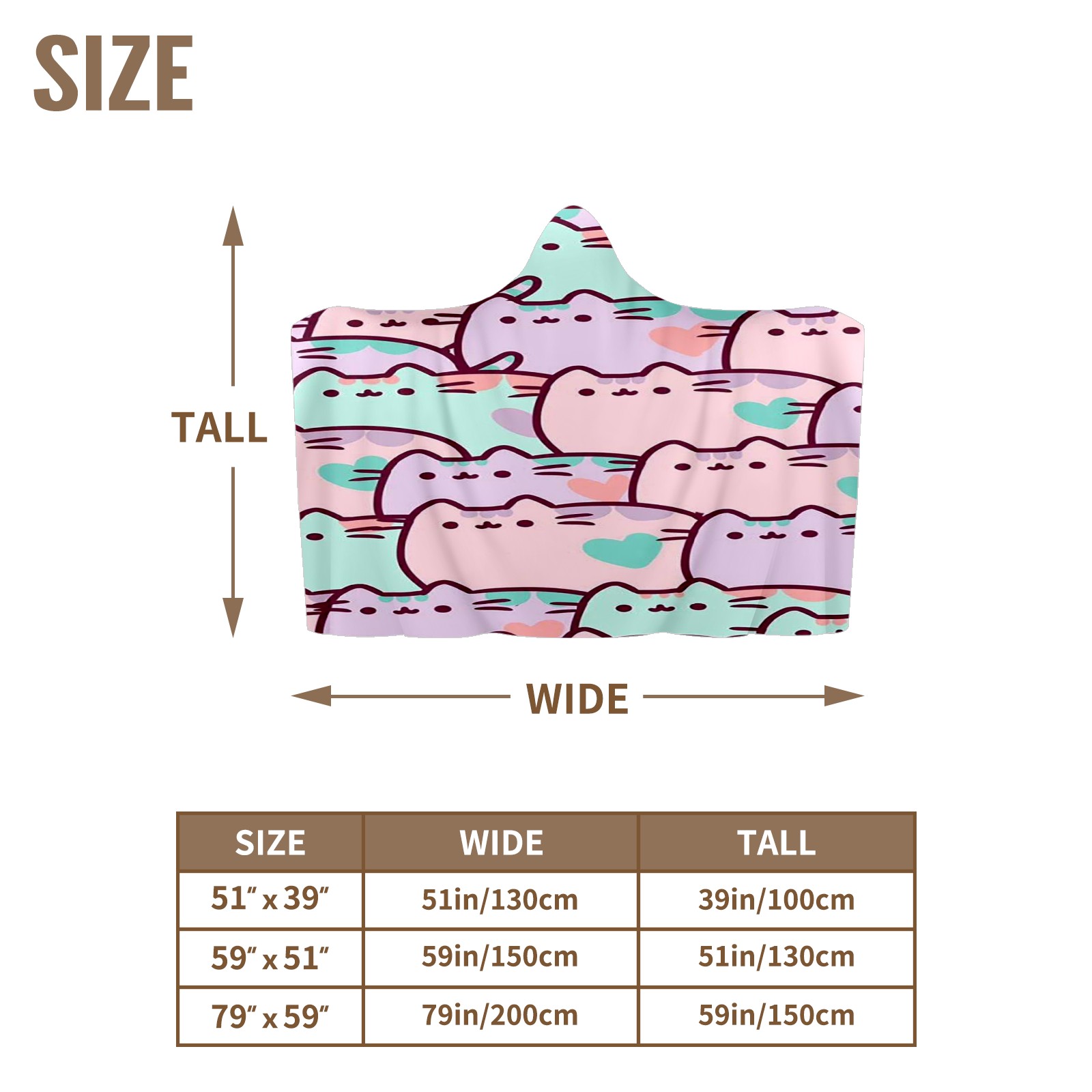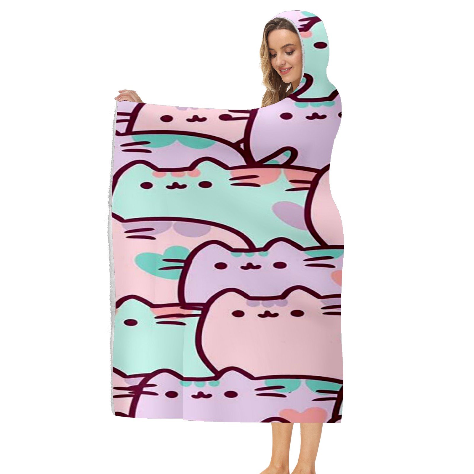 【Материал】Полиэстер + коралловый флис 【Принт】Напечатано на лицевой стороне 【Размер】100x130 см/39x51 дюйм 130x150 см/51x59 дюймов 150x200 см/59x79 дюймов 【Подходящие случаи】Пушистое одеяло с капюшоном, действительно большого размера, подходит как для мужчин, так и для женщин. Теплое и уютное, идеально подходит для приятного времяпрепровождения. Идеально подходит для отдыха дома, просмотра телевизора, игр, чтения, сна или любых походов и мероприятий на природе. Капюшон одеяла закрывает плечи и руки, позволяя свободно двигаться и использовать руки. Идеальный размер как для женщин, так и для мужчин. Прекрасный и продуманный подарок для семьи, друзей и партнеров. 【Рекомендации по стирке】Машинная стирка, не отбеливать, сушить в сушилке при низкой температуре.