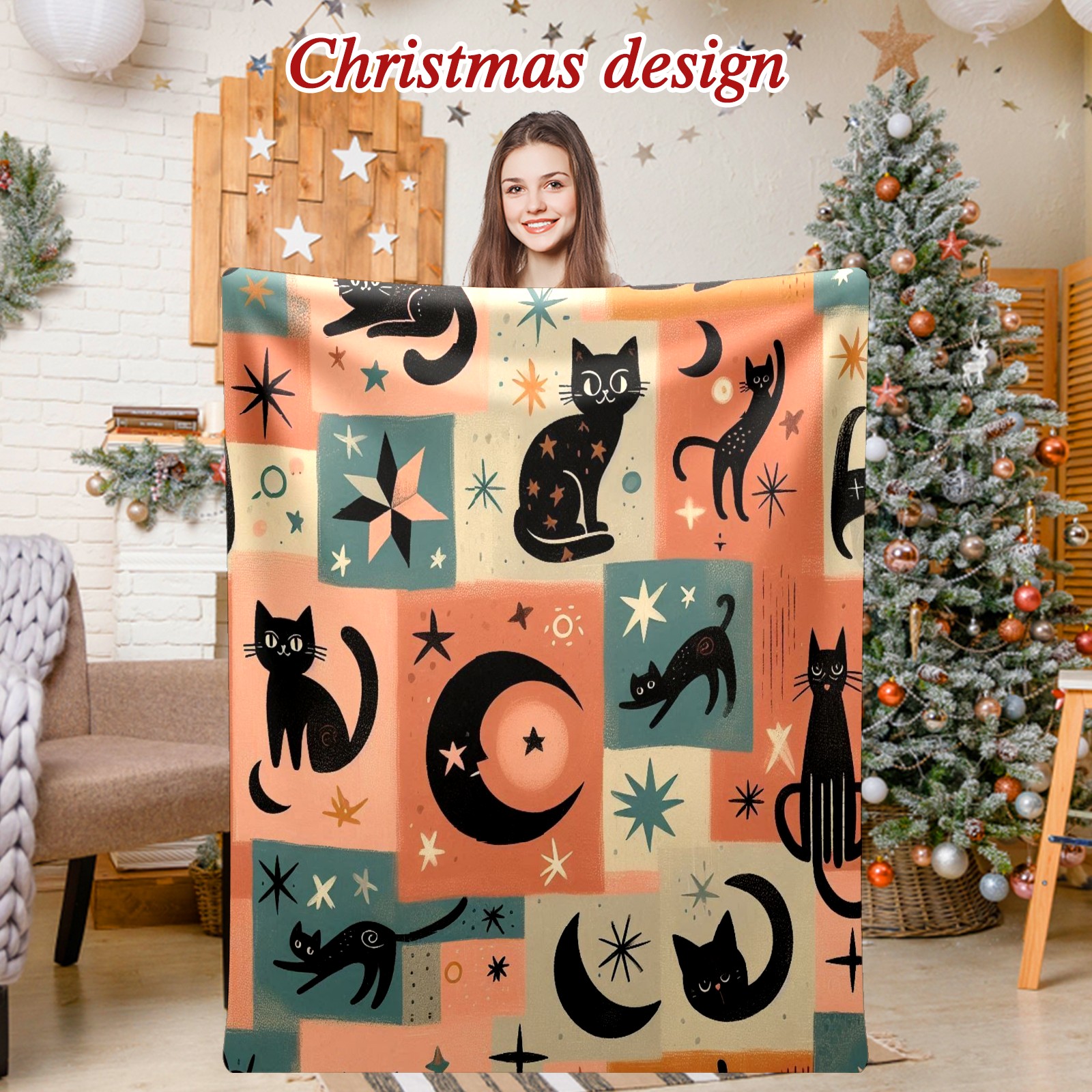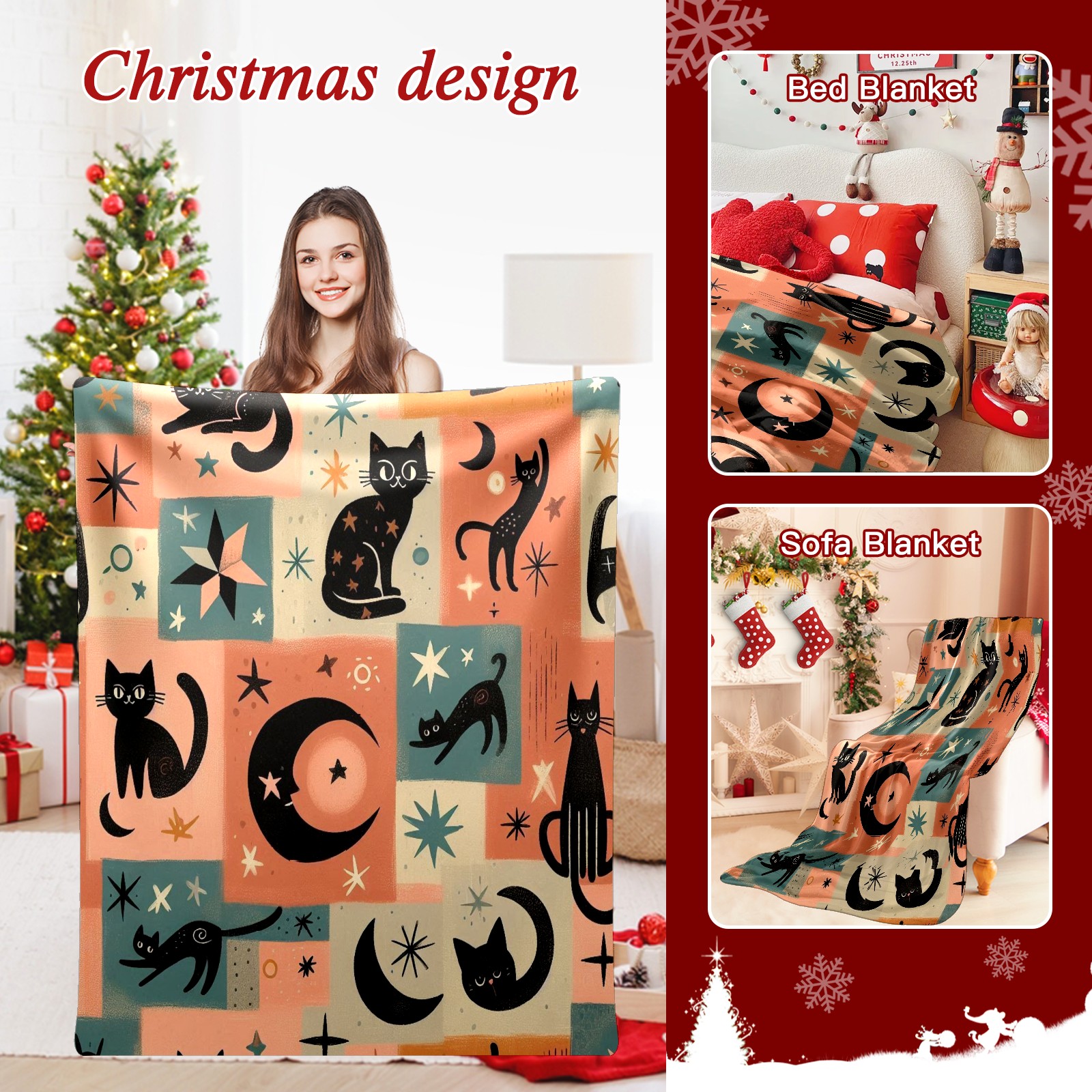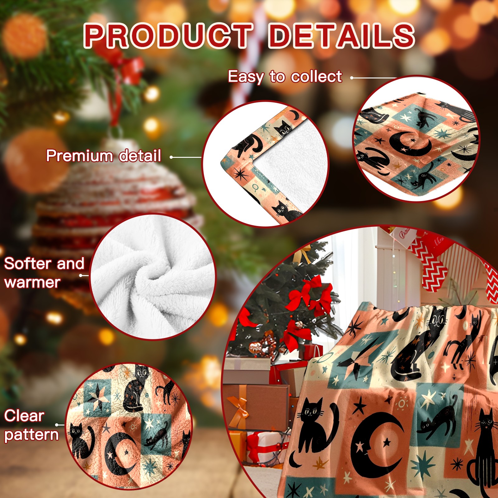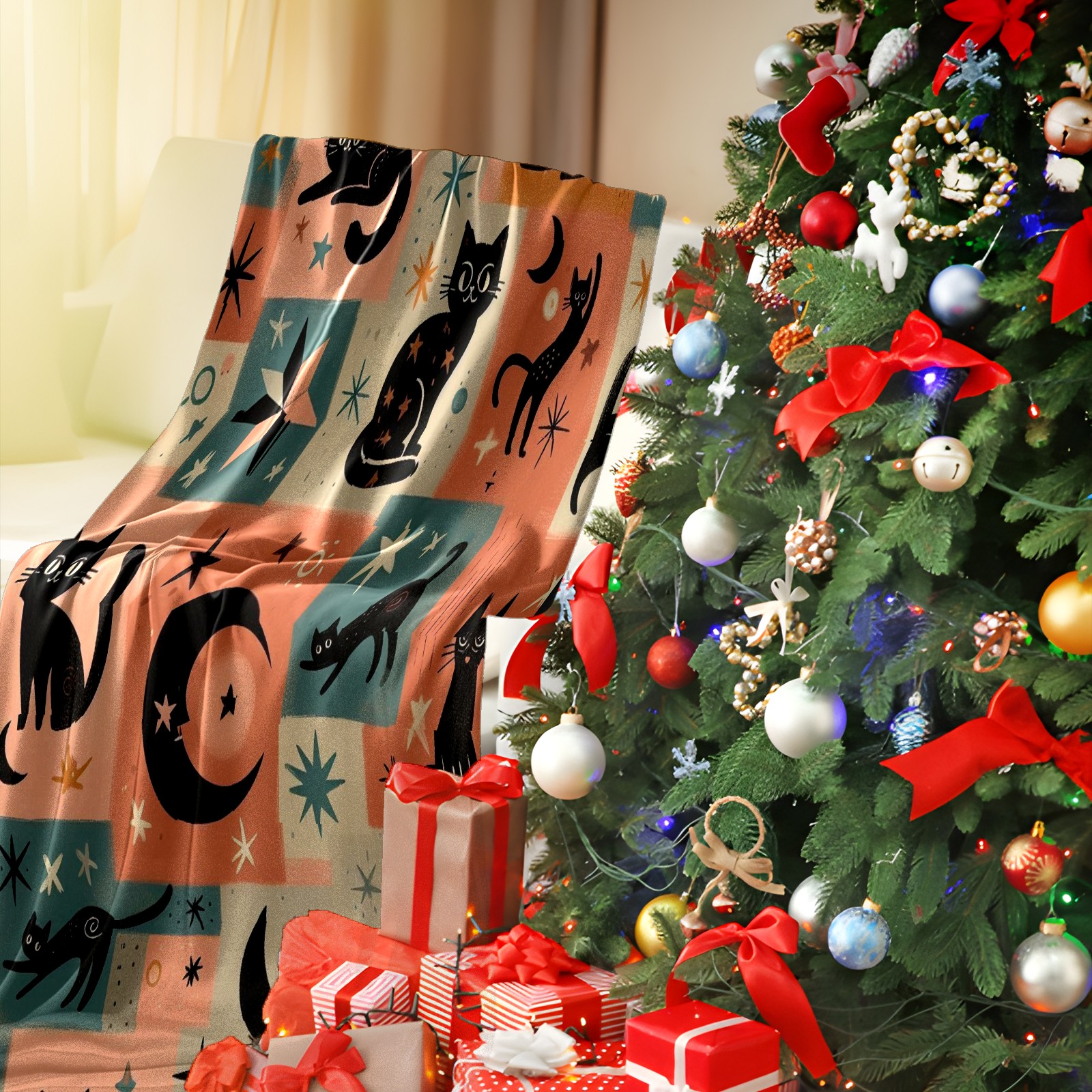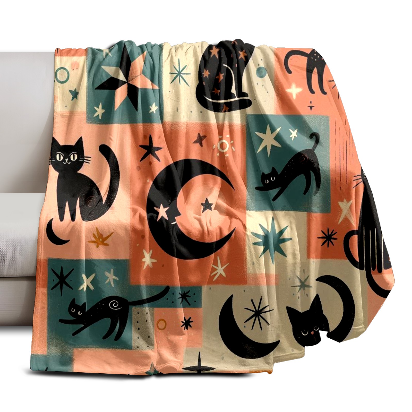 Премиальная фланелевая одеяло Black Orange Halloween Cats