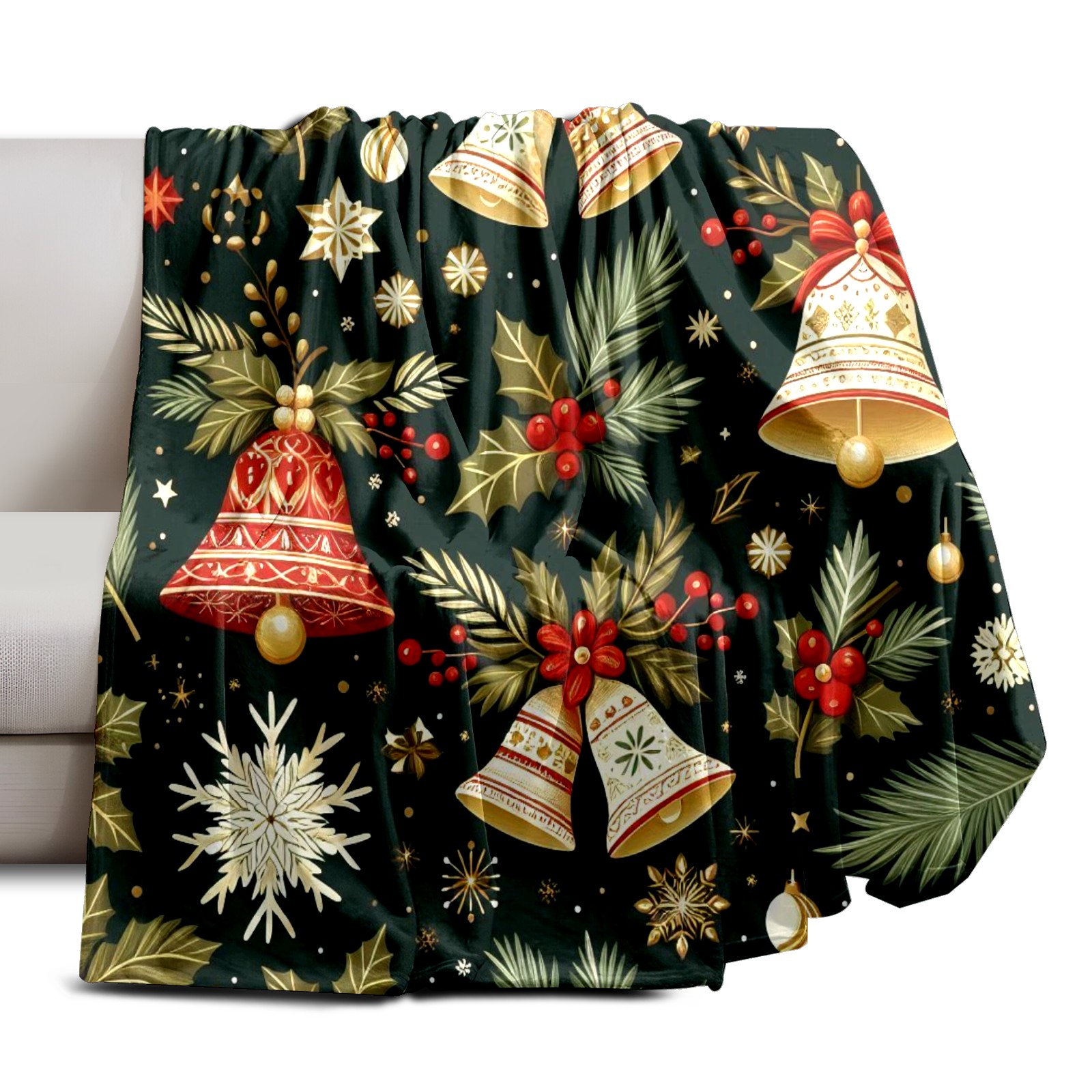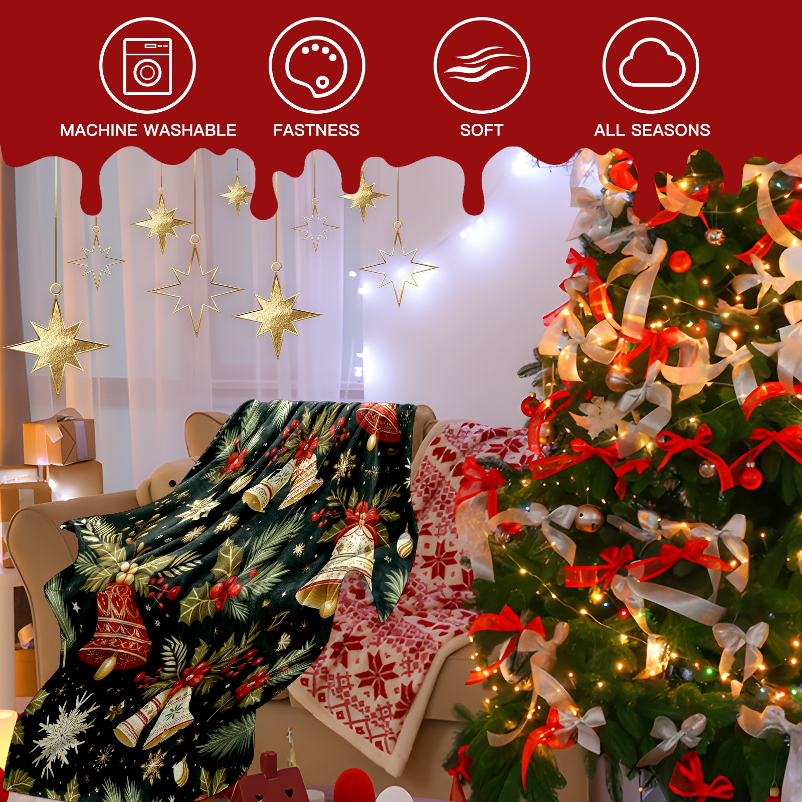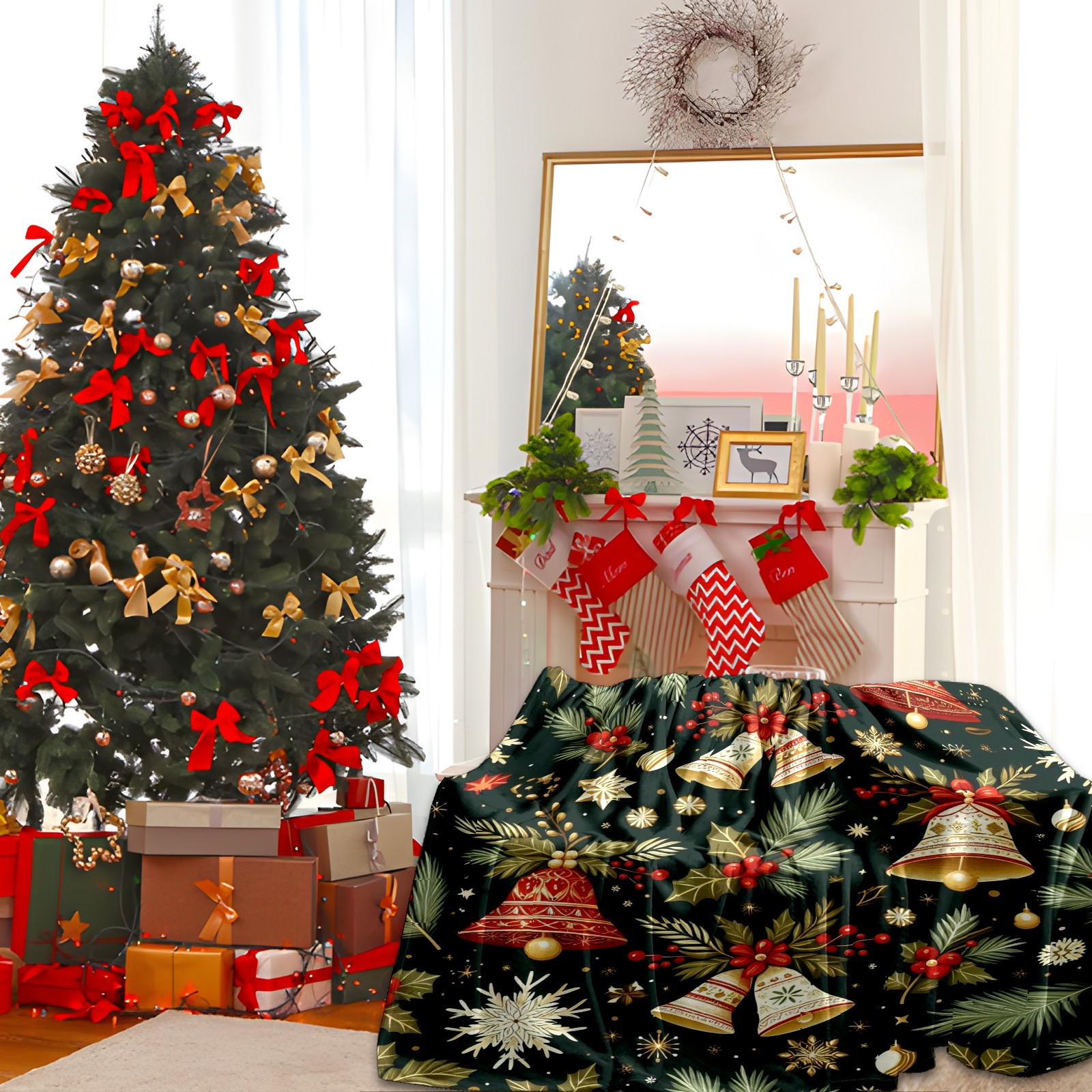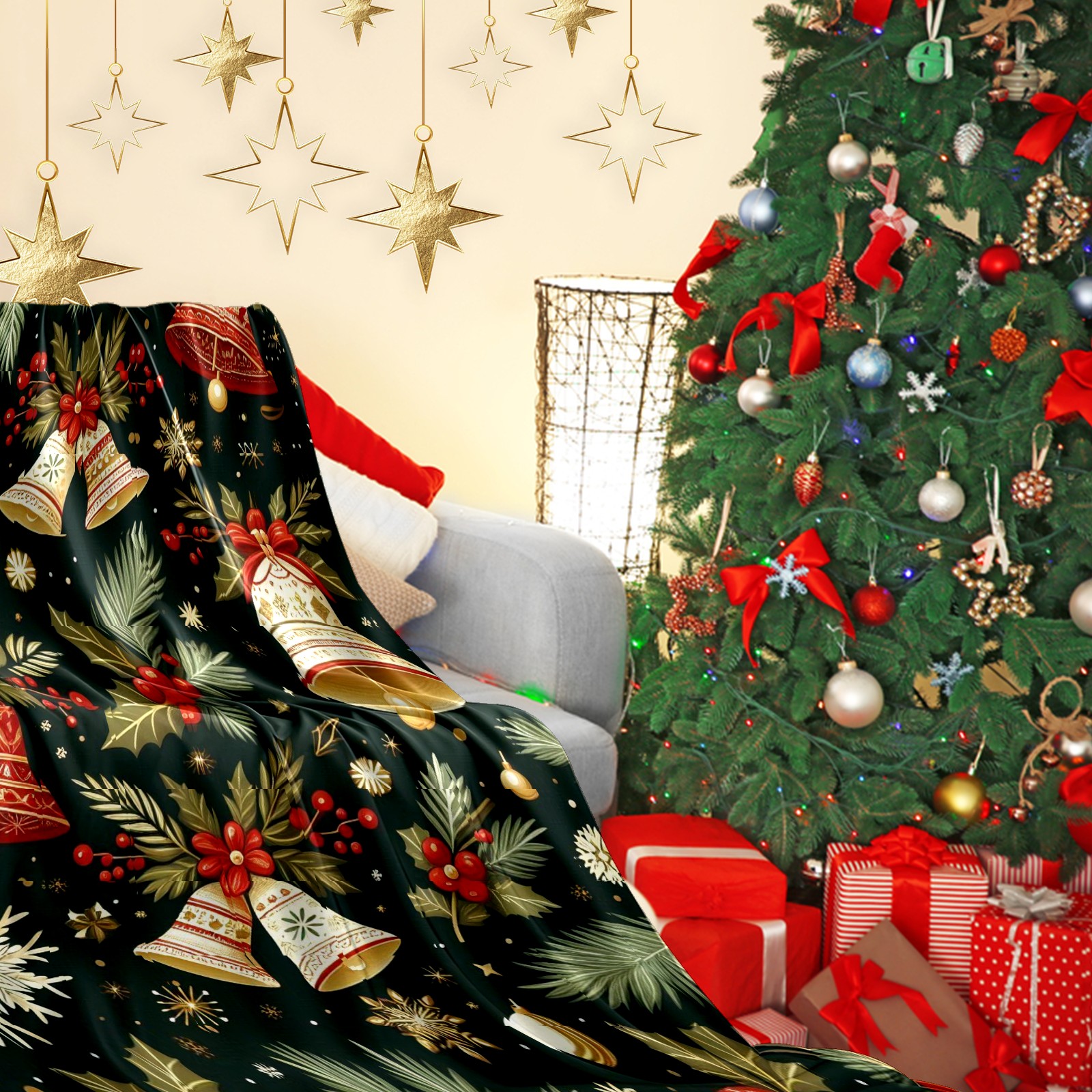 Премиальная фланелевая одеяло Dark Green Christmas Bells