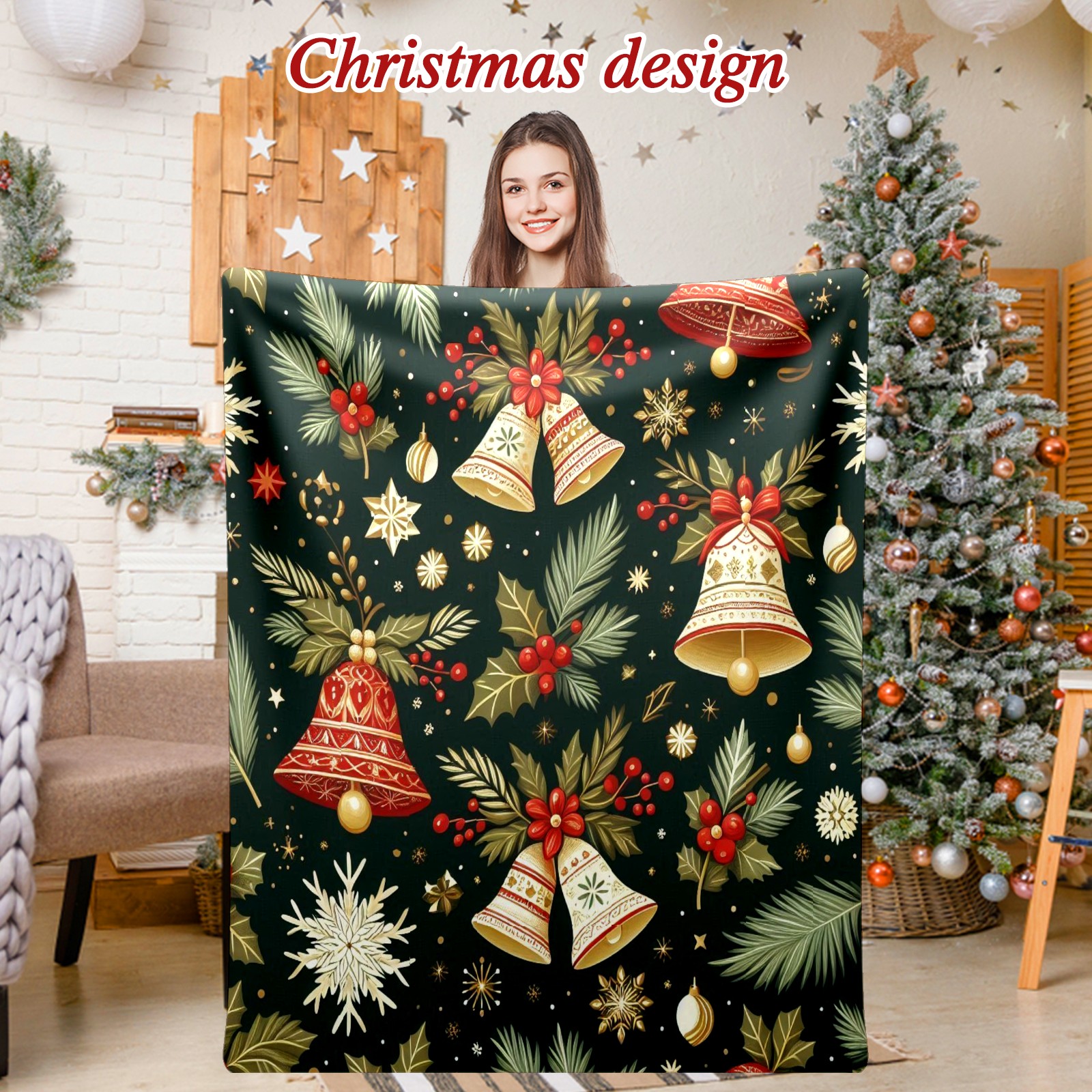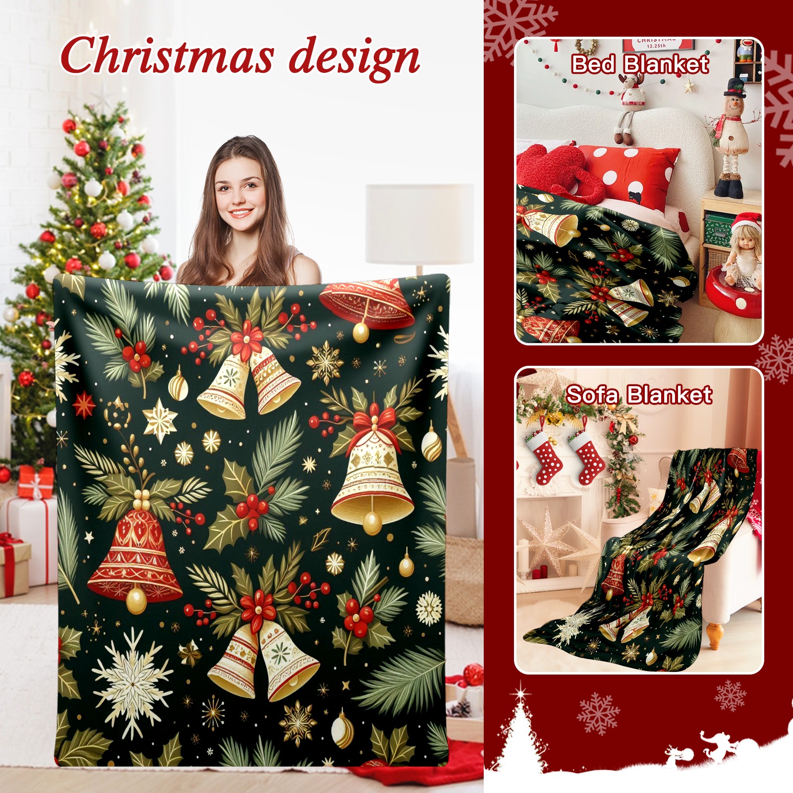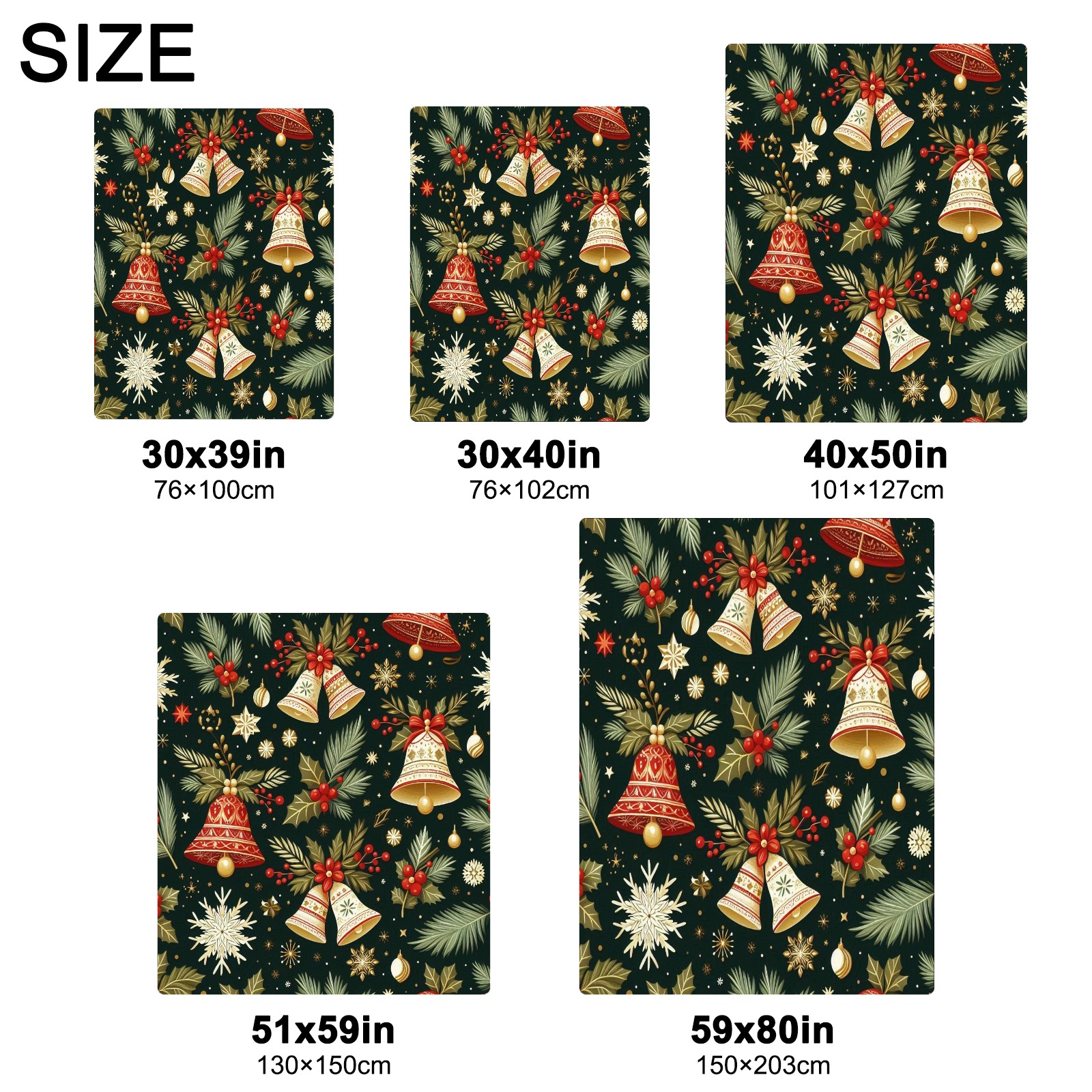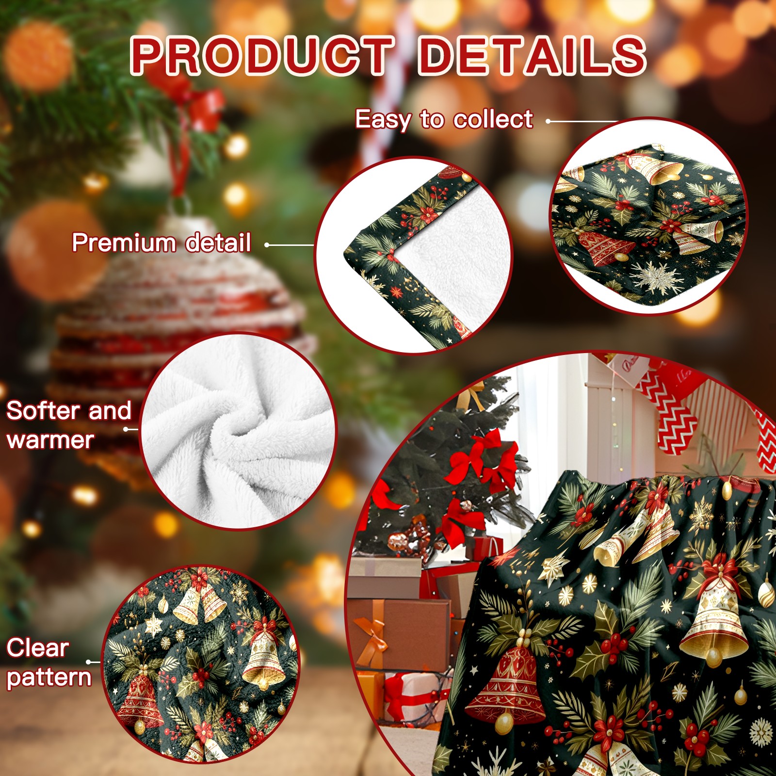 Премиальная фланелевая одеяло Dark Green Christmas Bells