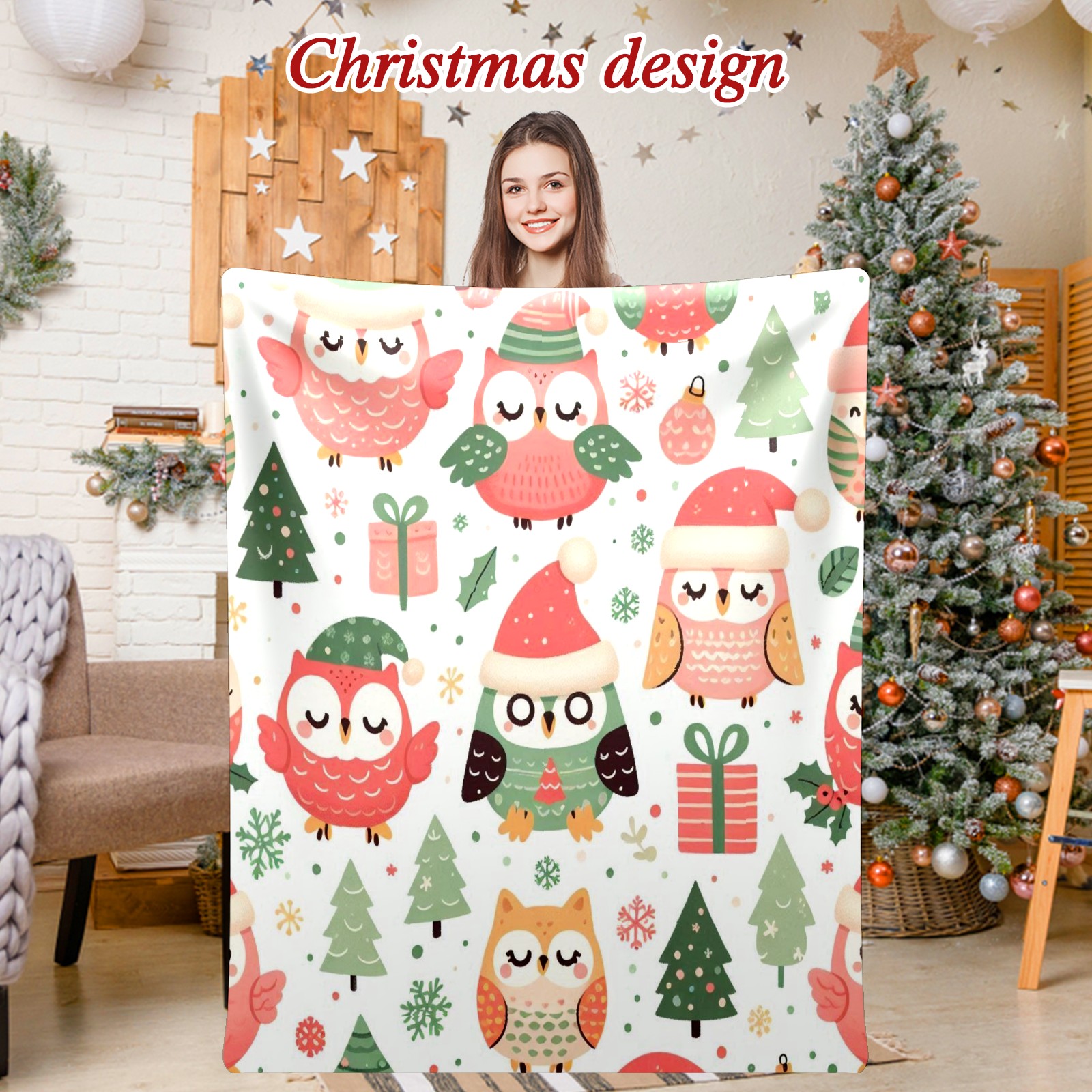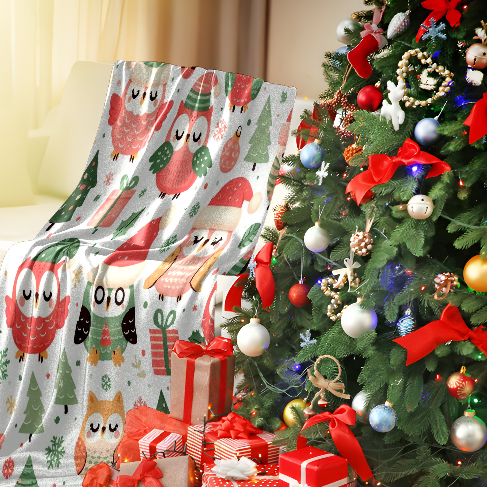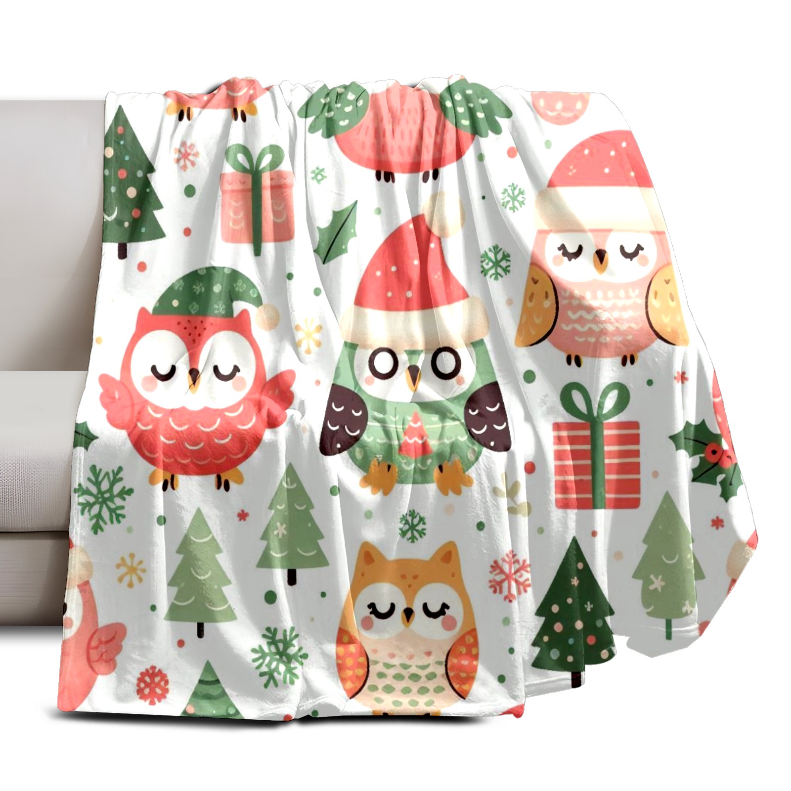 Премиальная фланелевая одеяло Light Green Christmas Owls Gifts