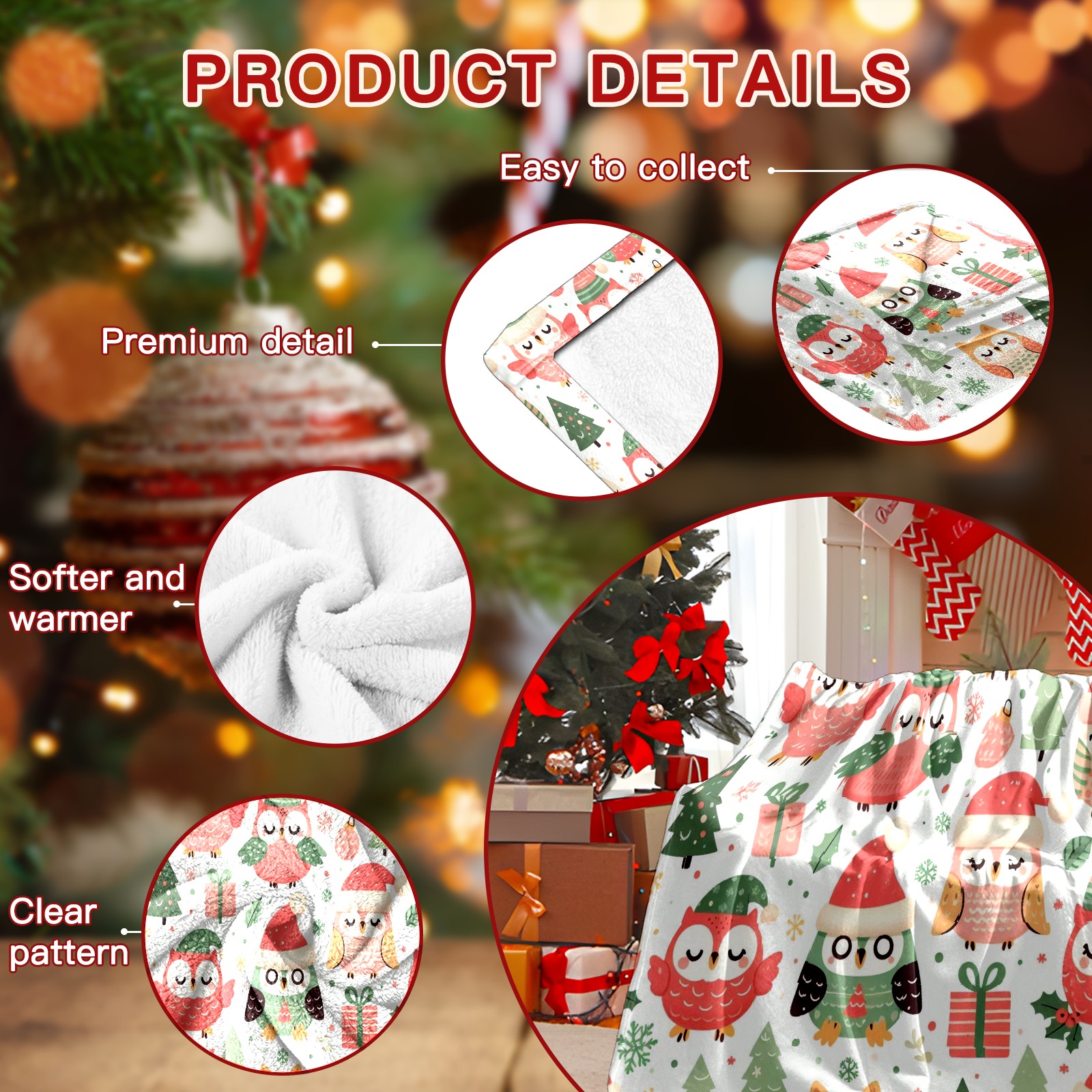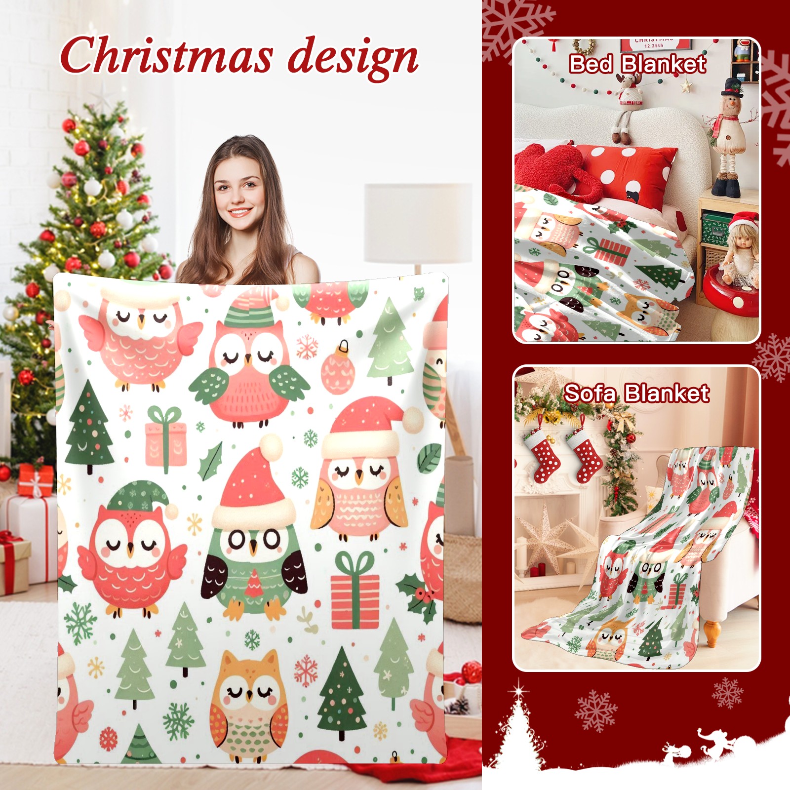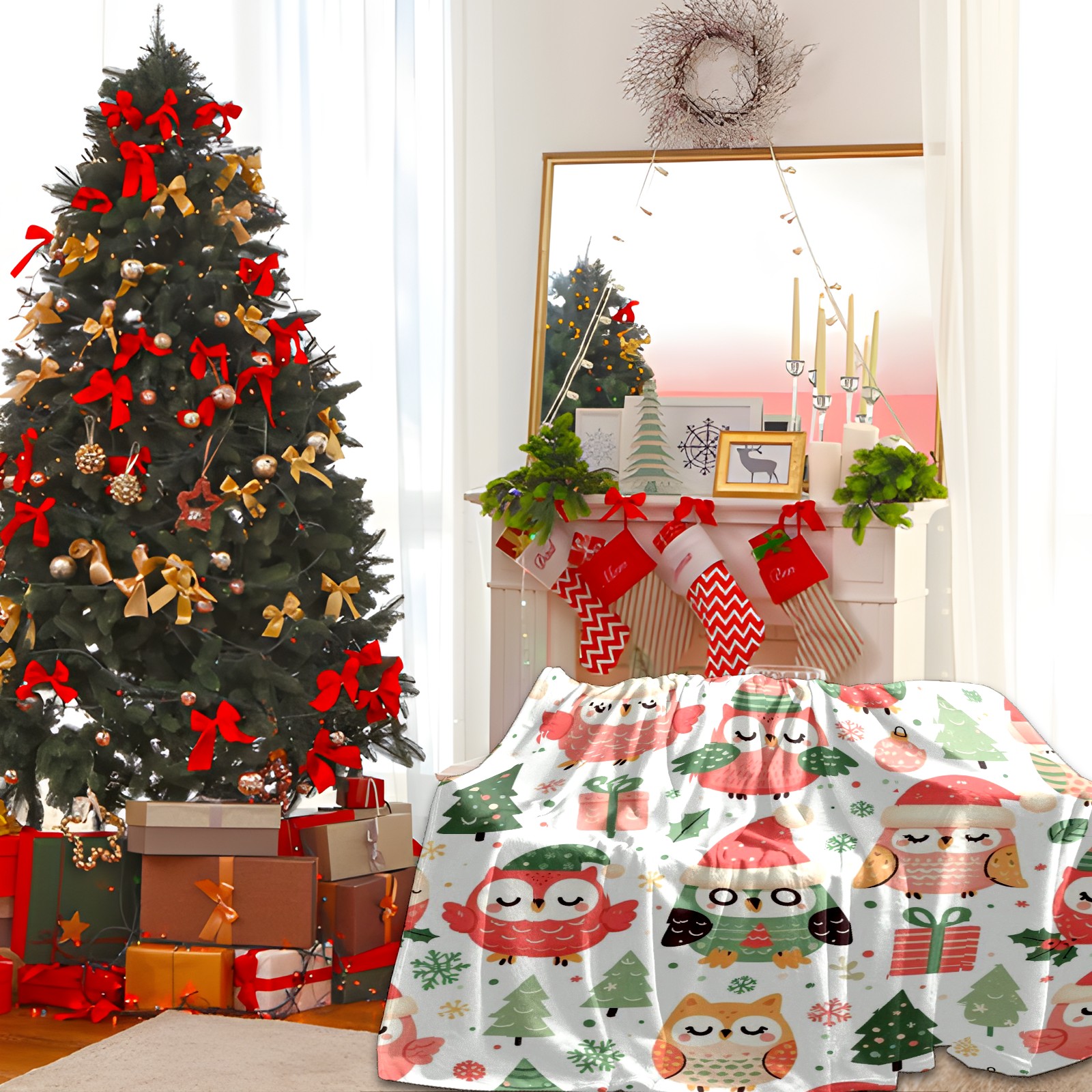 Премиальная фланелевая одеяло Light Green Christmas Owls Gifts
