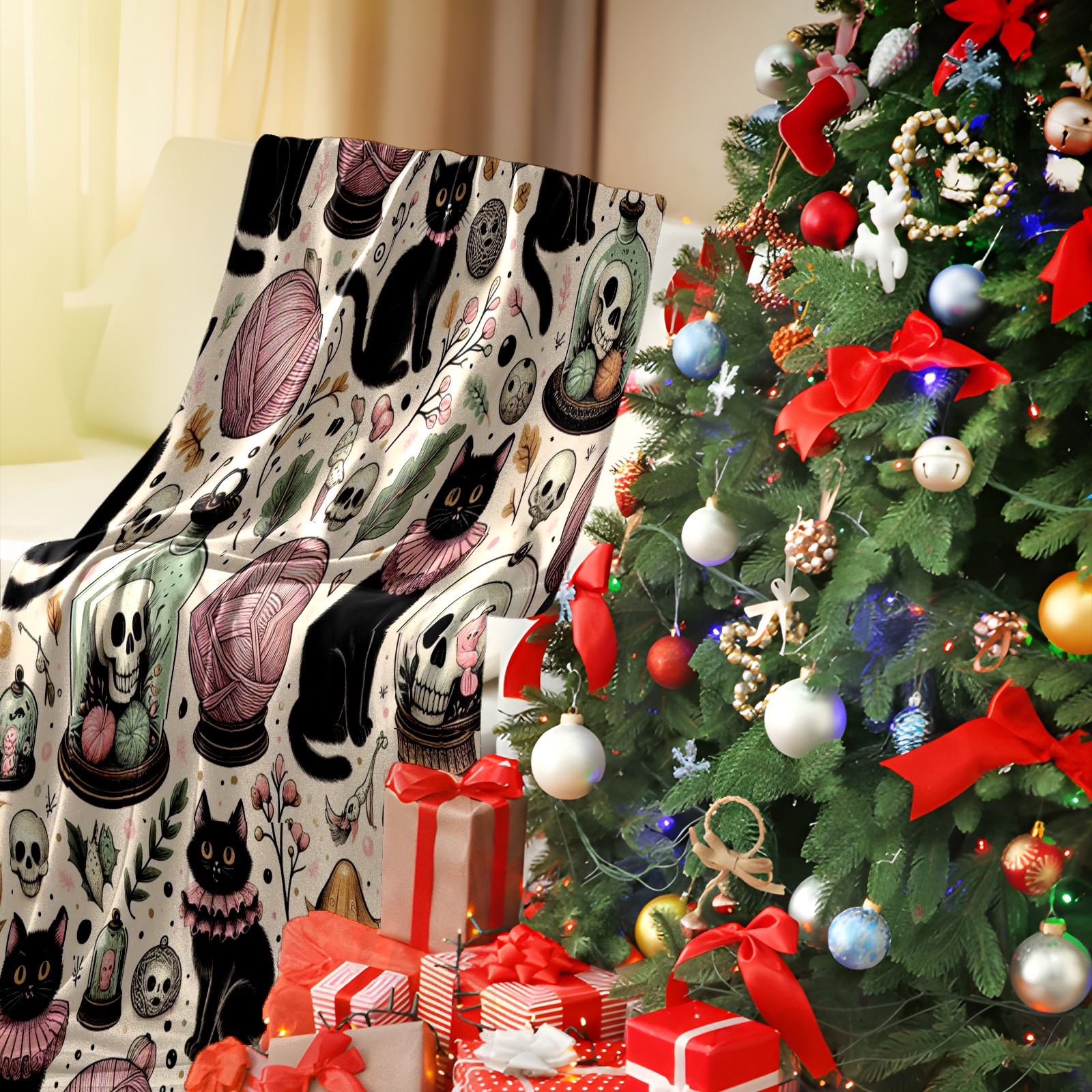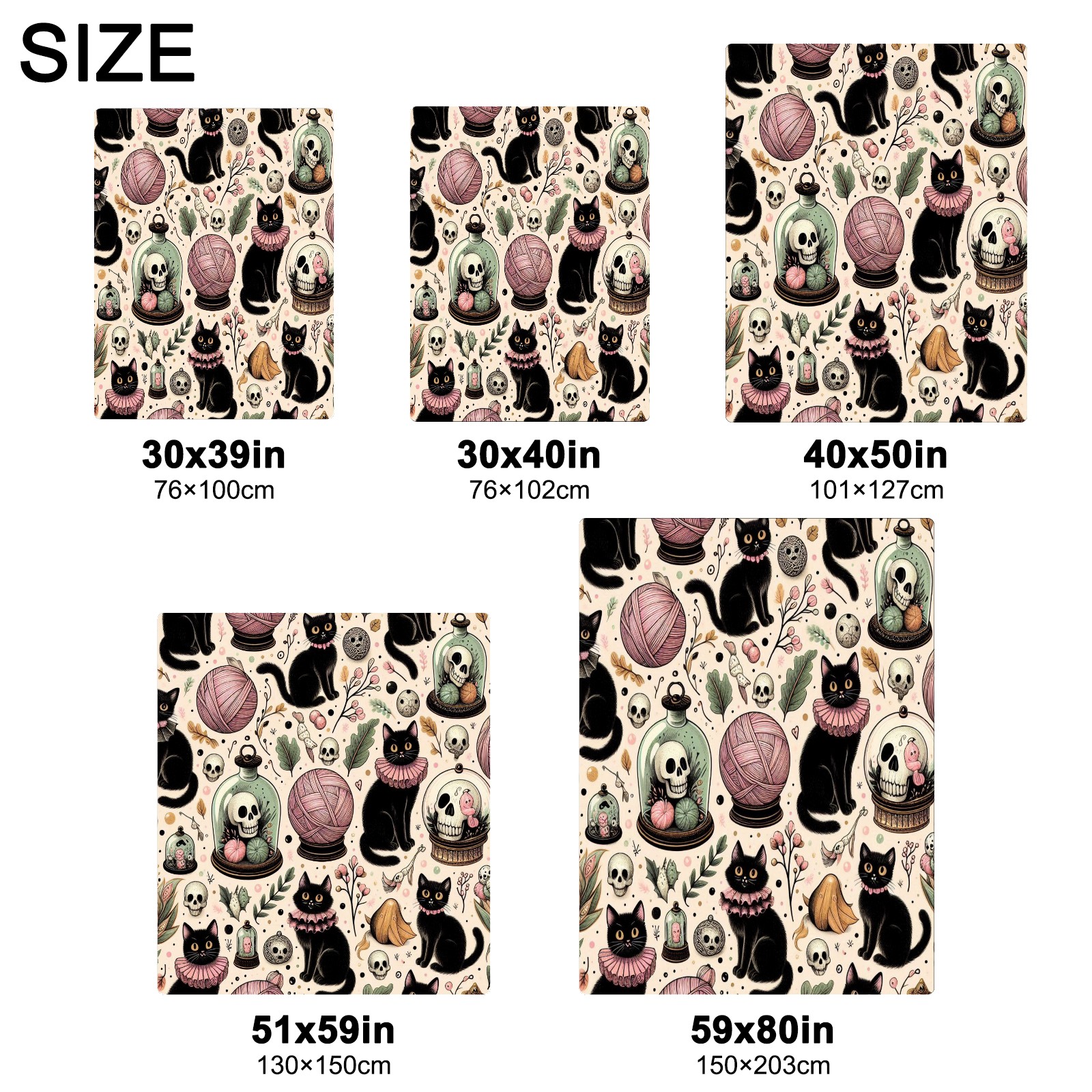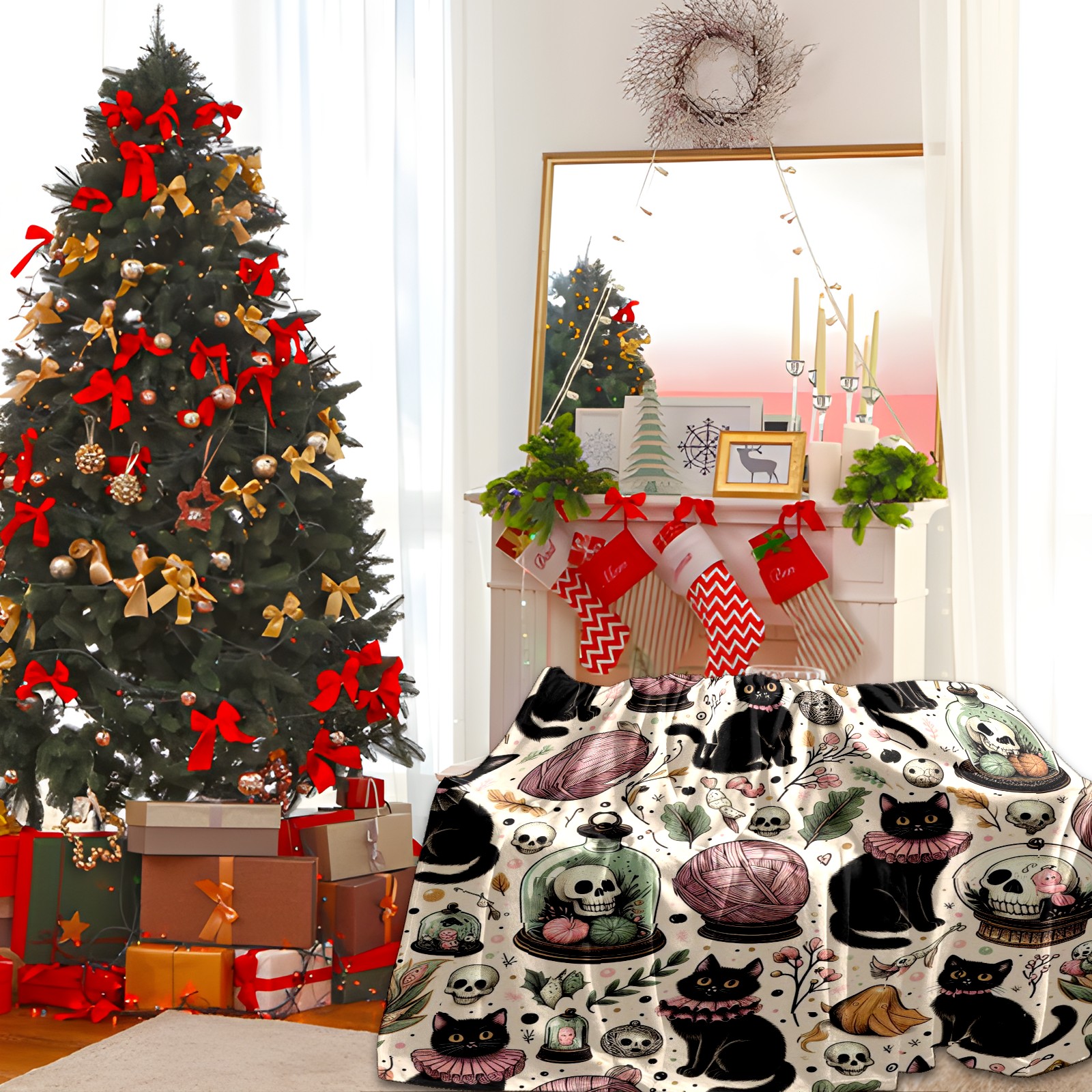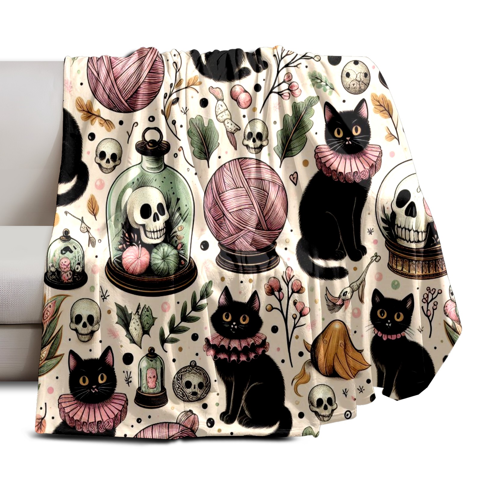 Премиальная фланелевая одеяло Black Halloween Cats Skulls