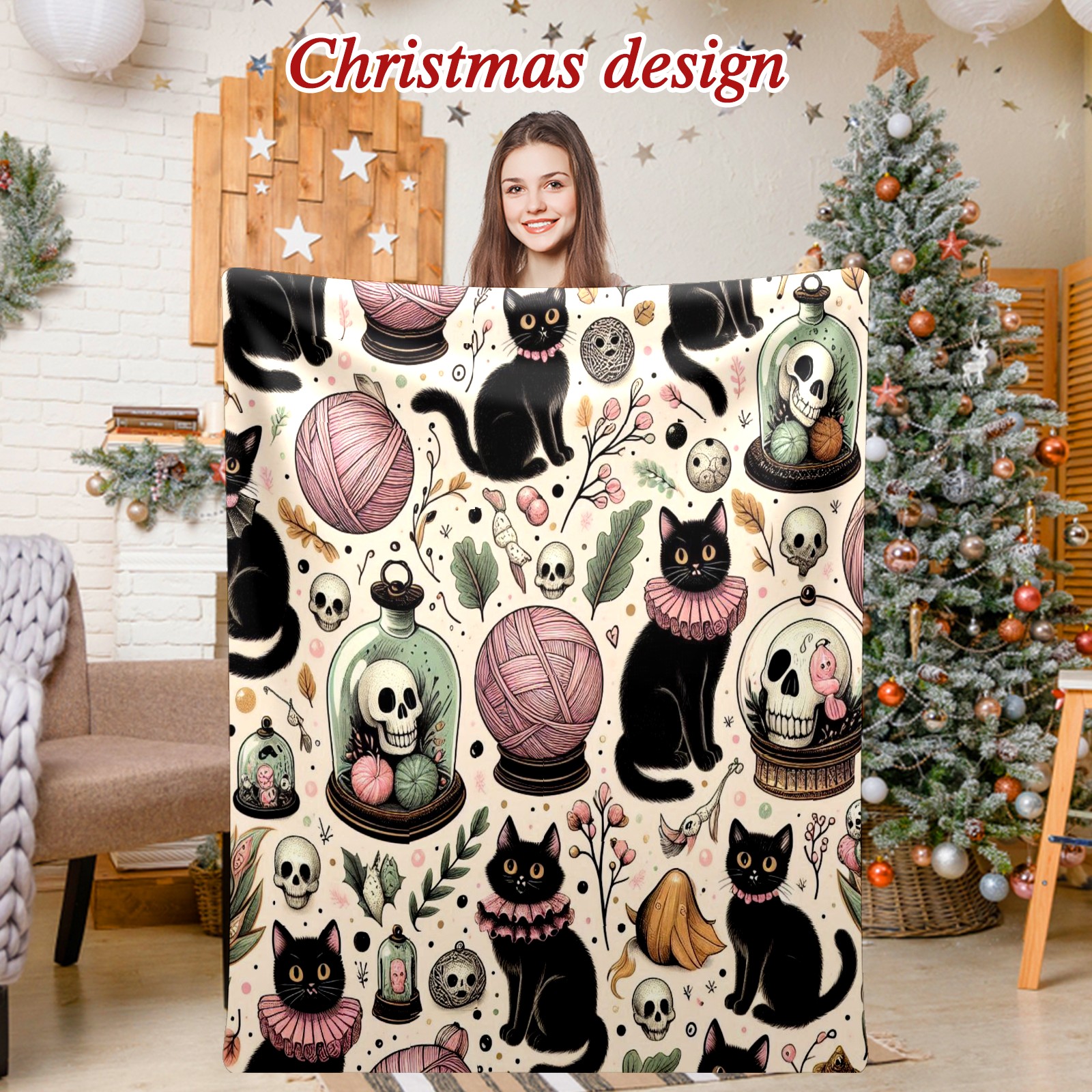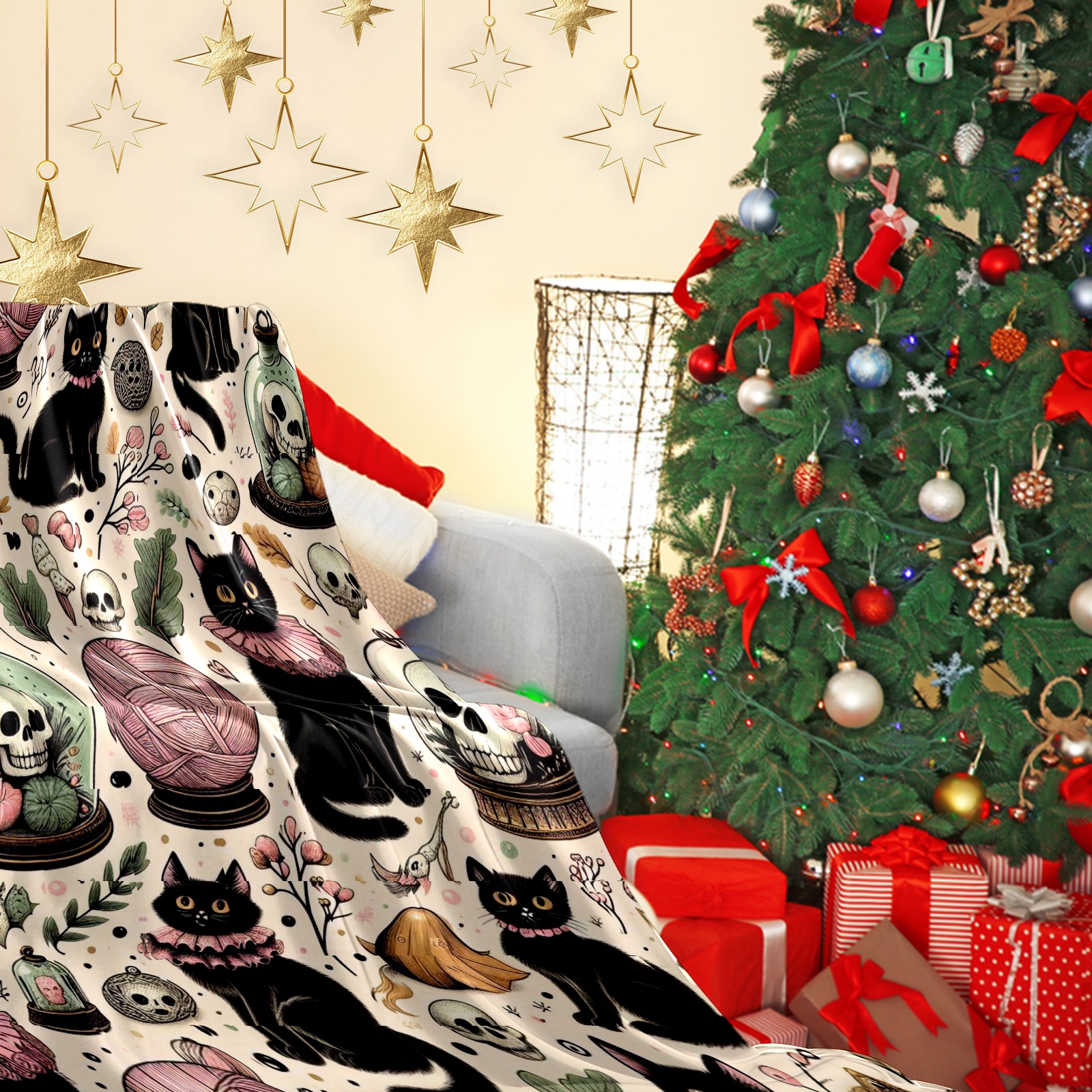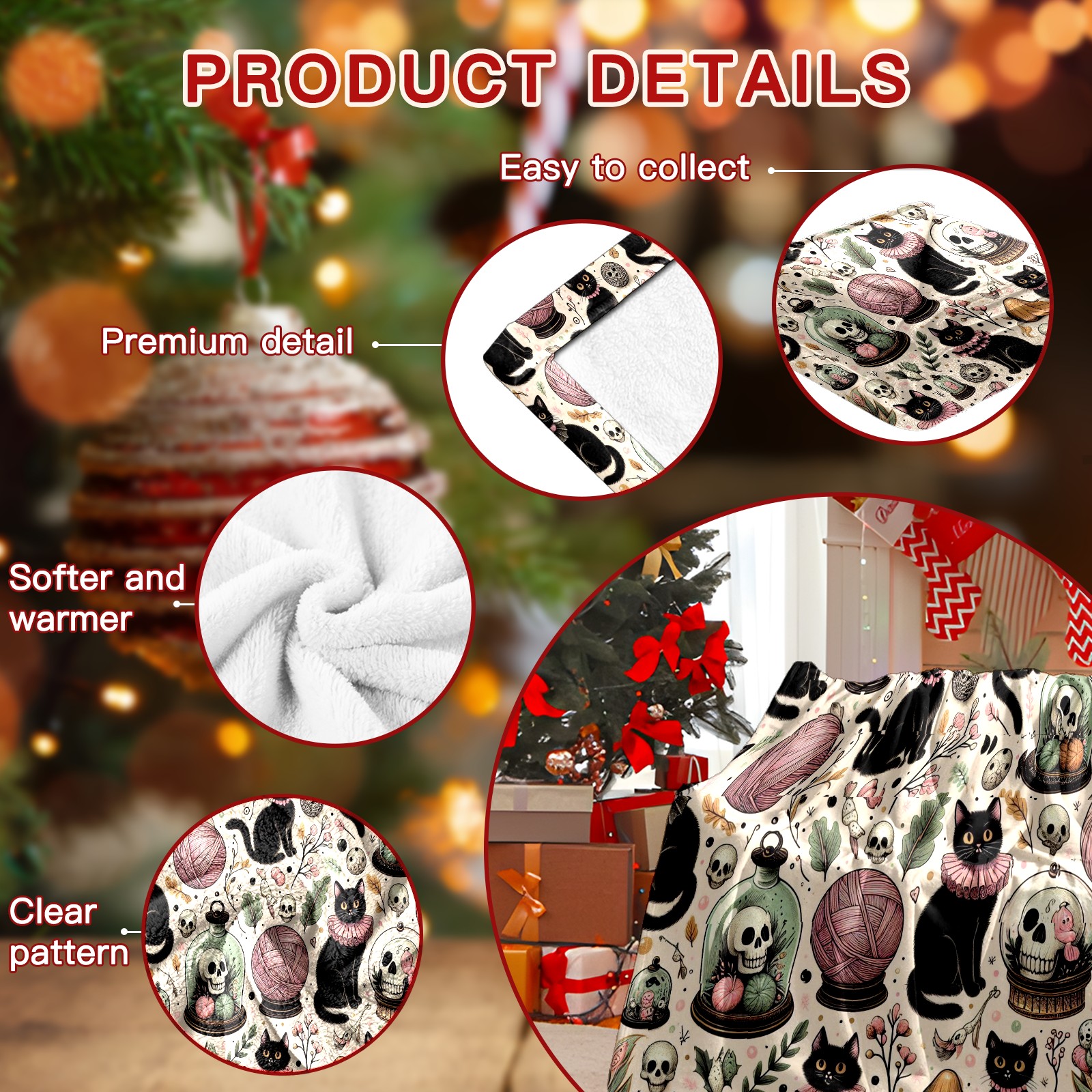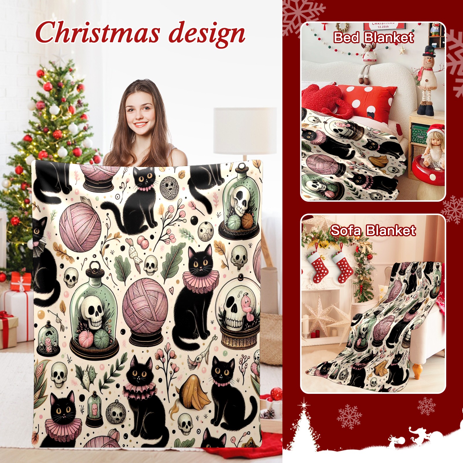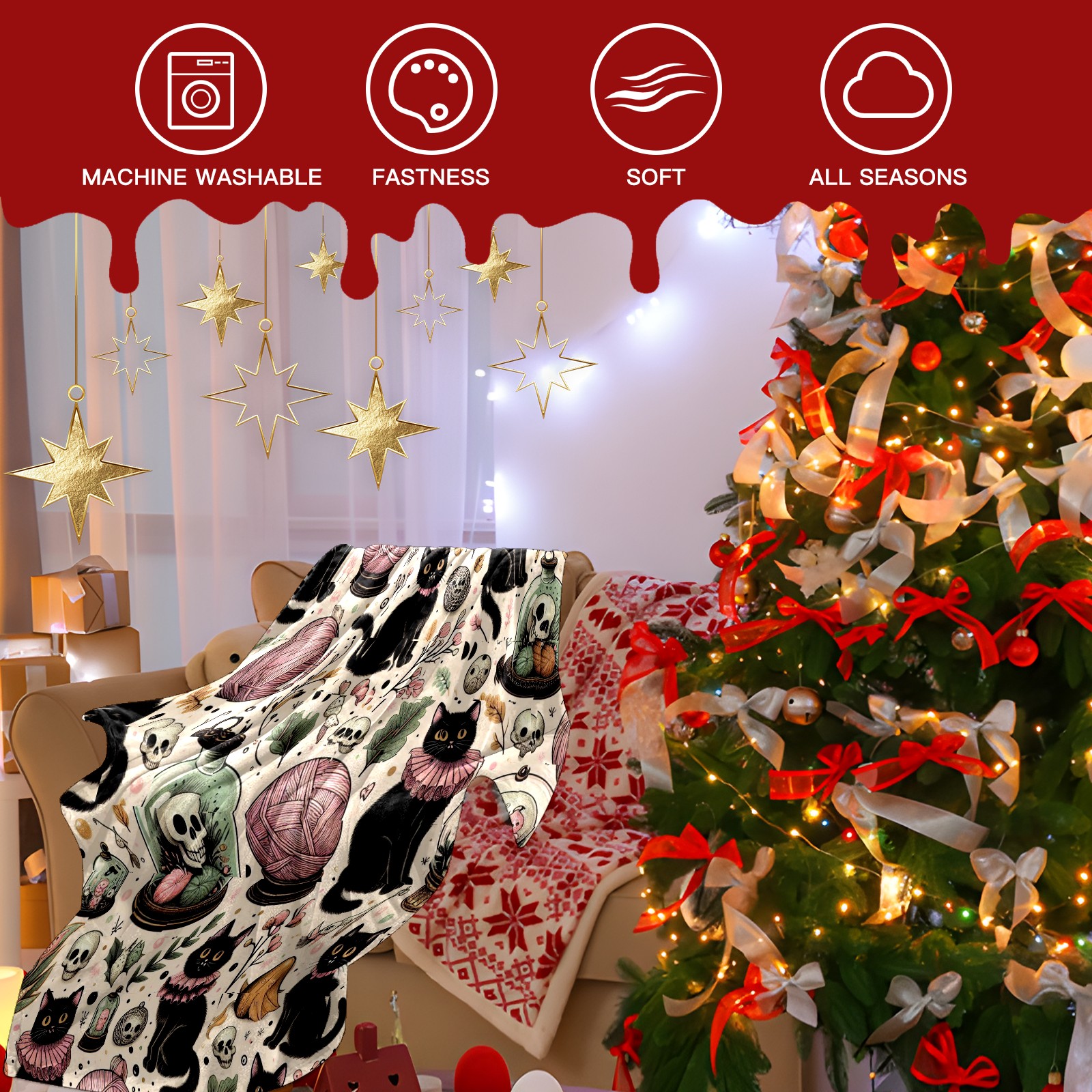 Премиальная фланелевая одеяло Black Halloween Cats Skulls