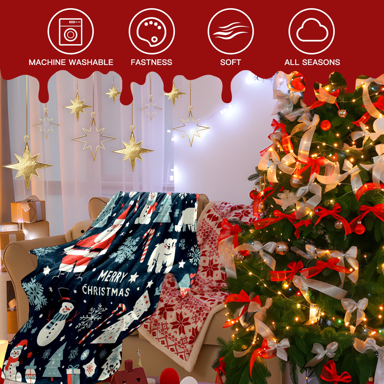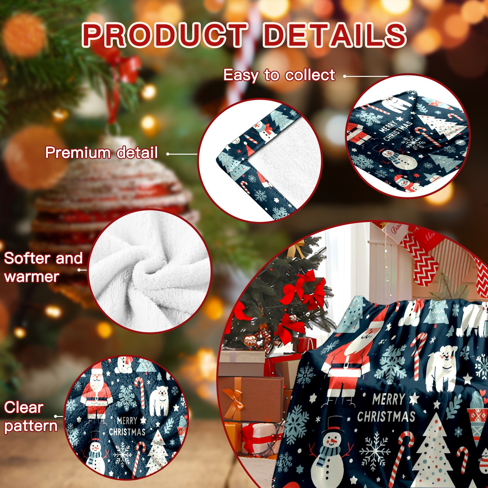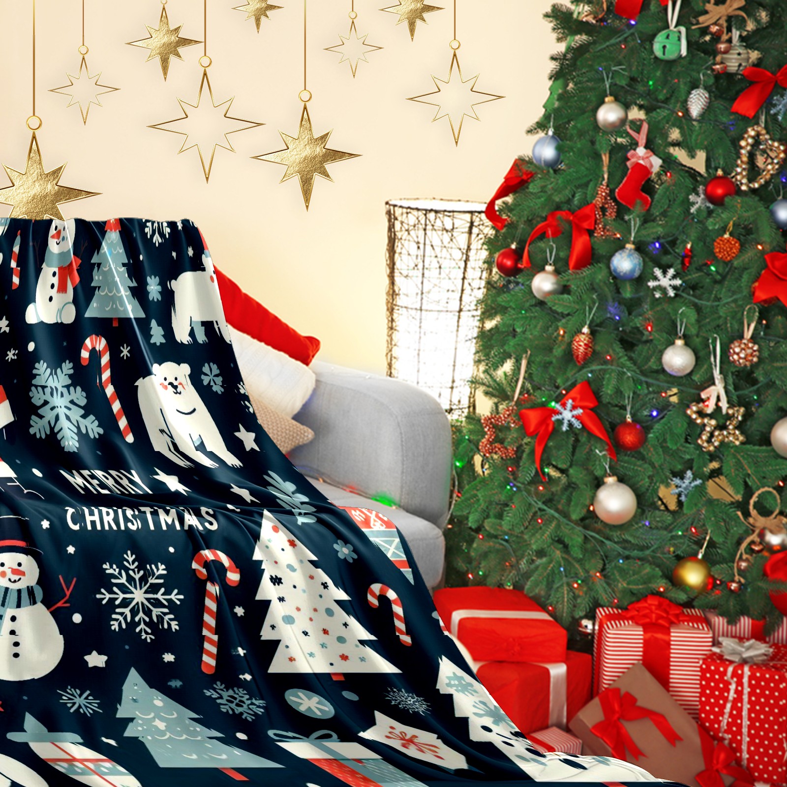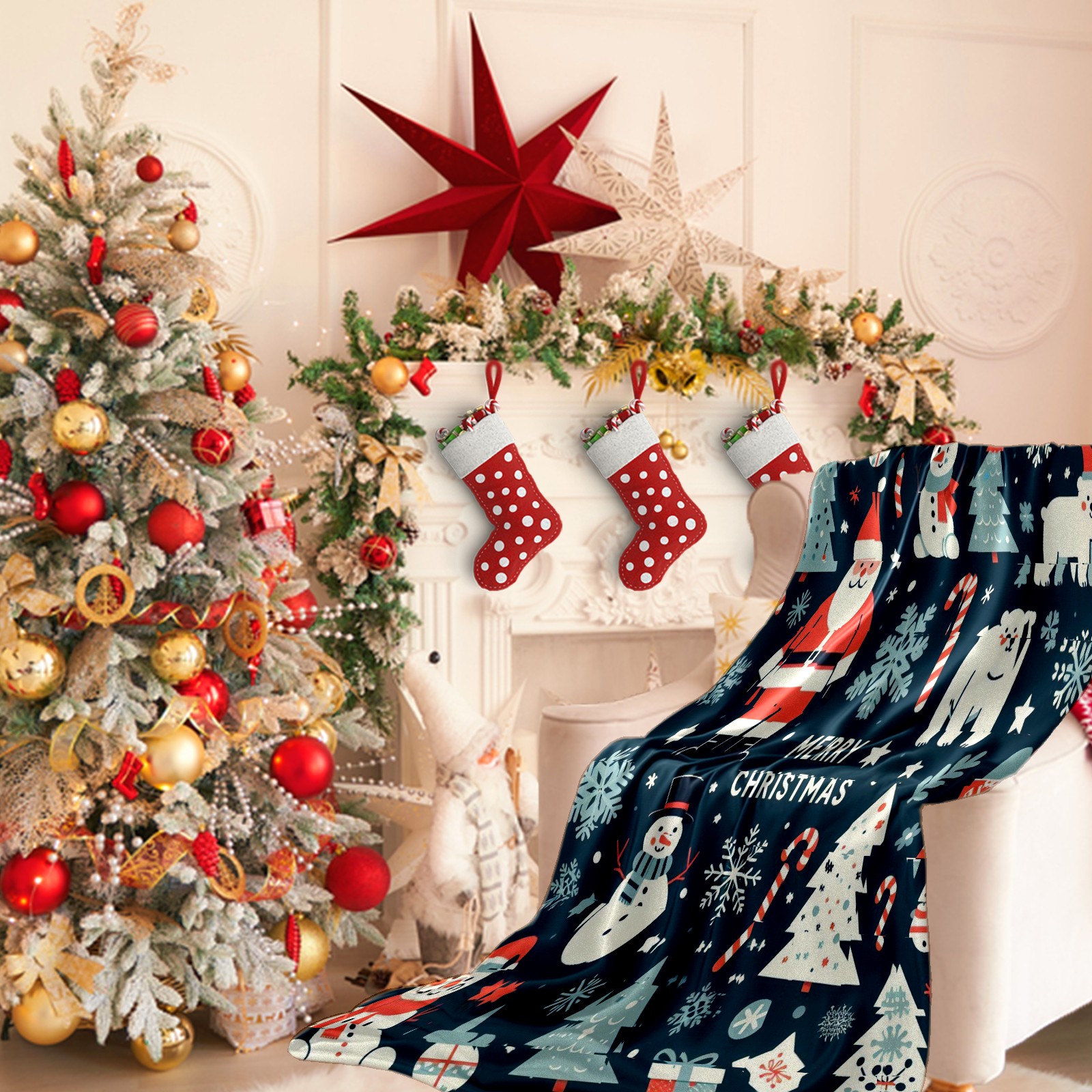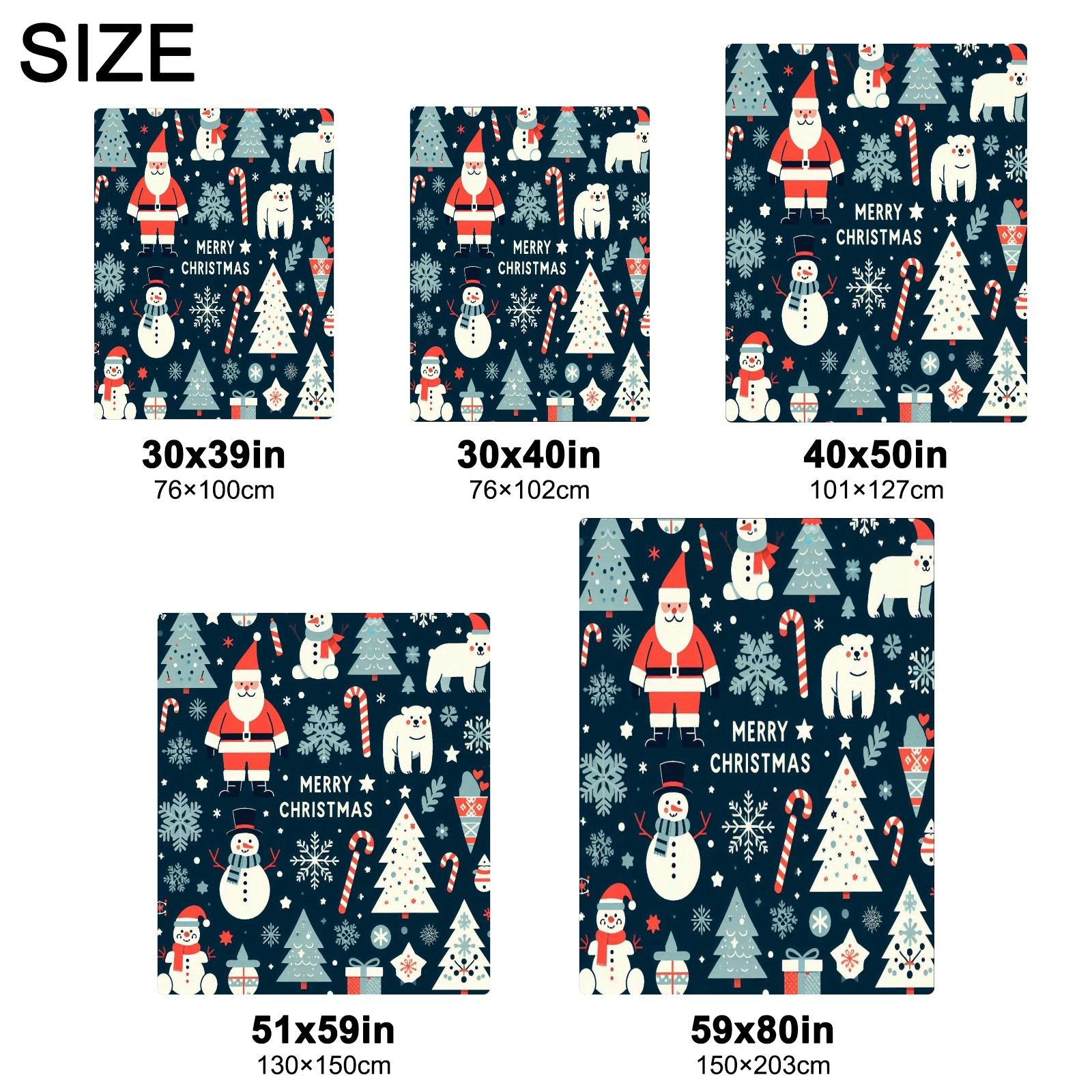 Премиальная фланелевая одеяло Dark Blue Christmas Santa Snowman Polar Bear