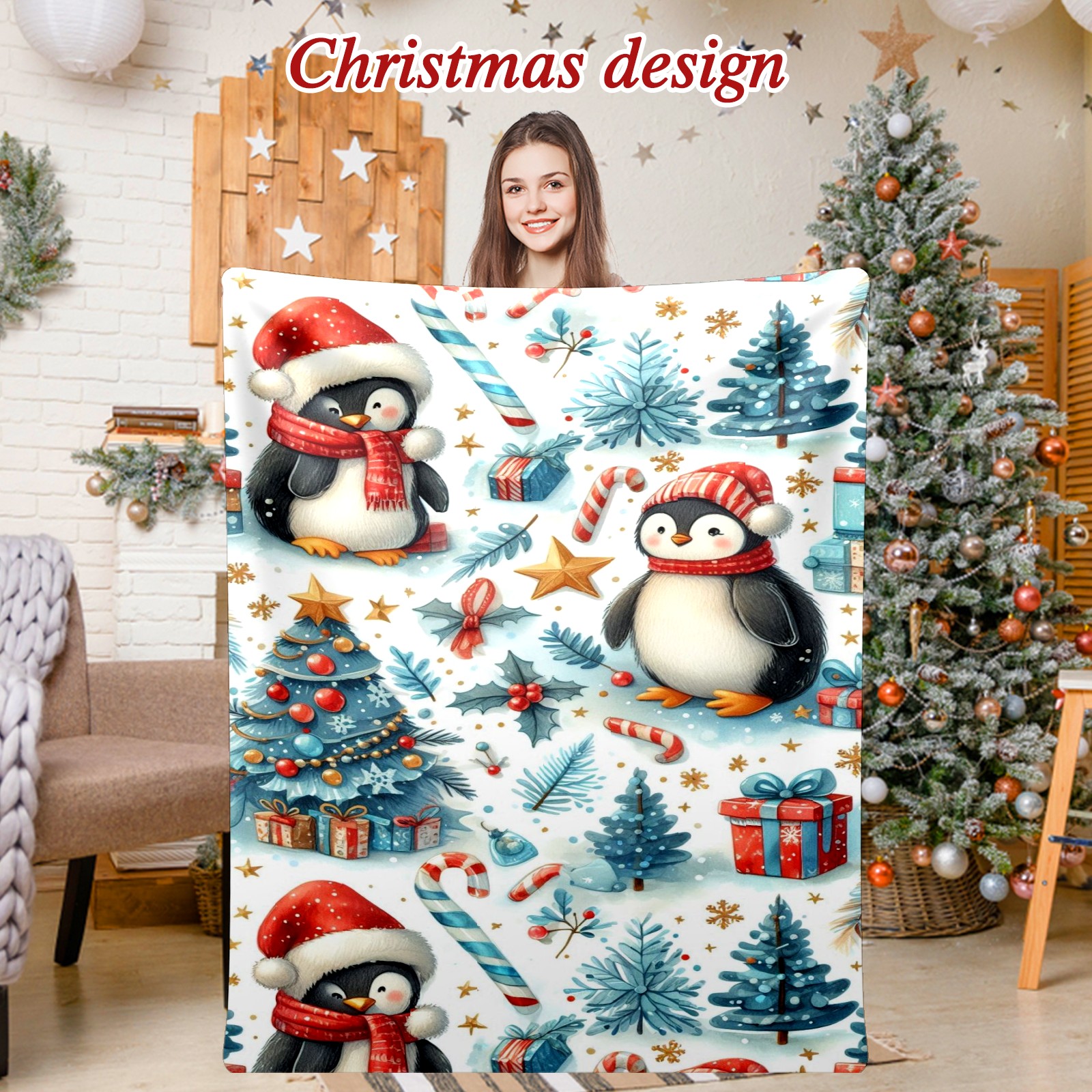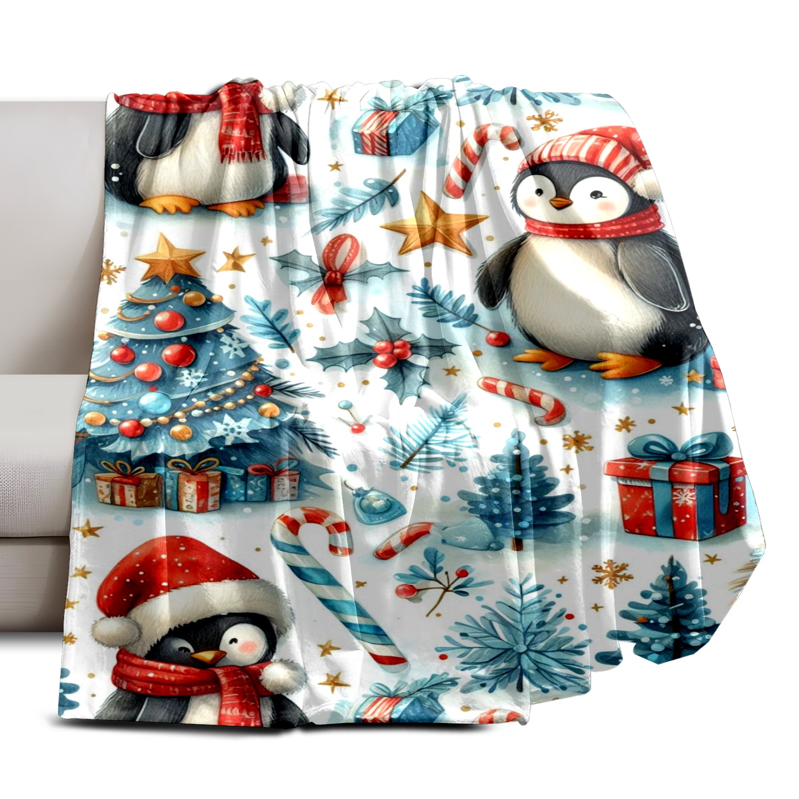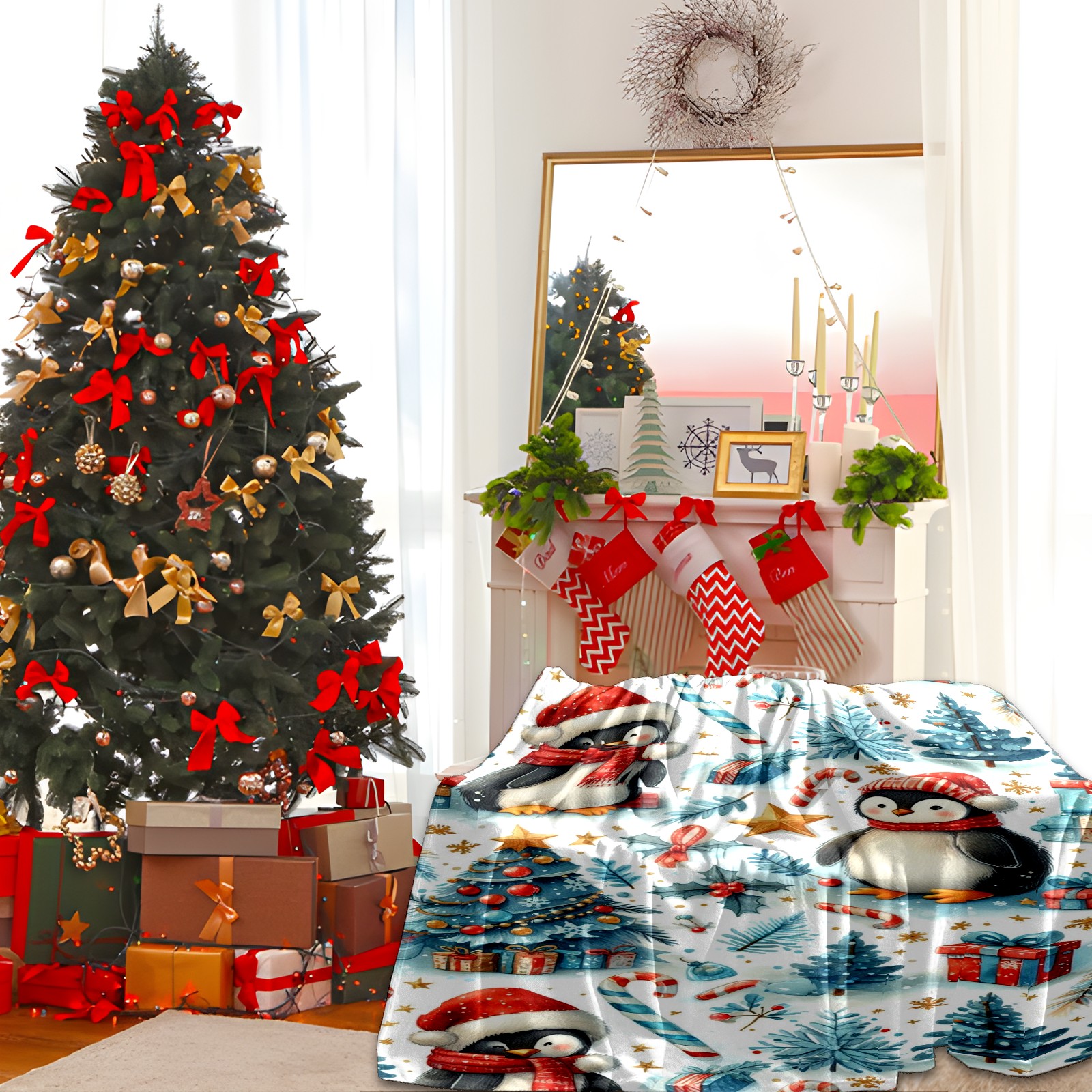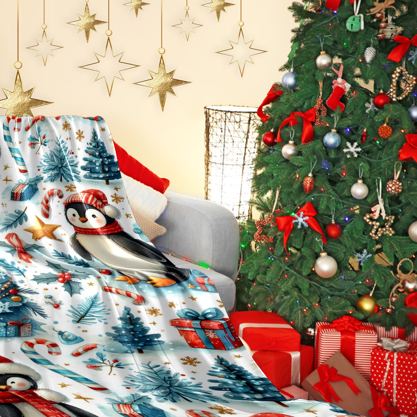 Премиальная фланелевая одеяло Light Blue Christmas Penguins Trees