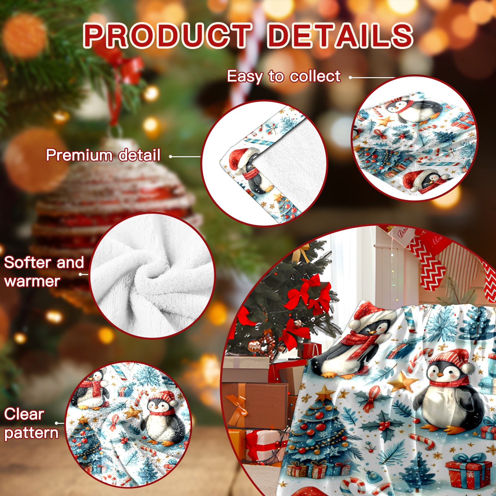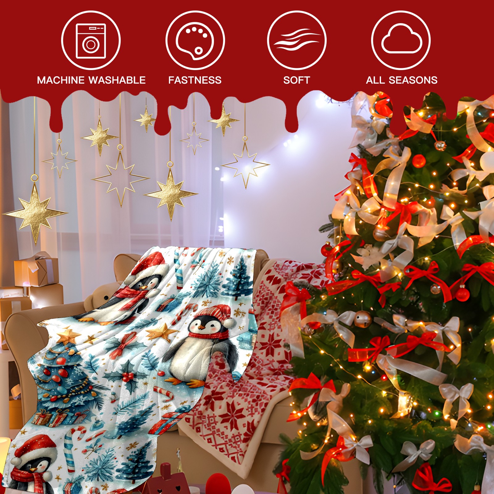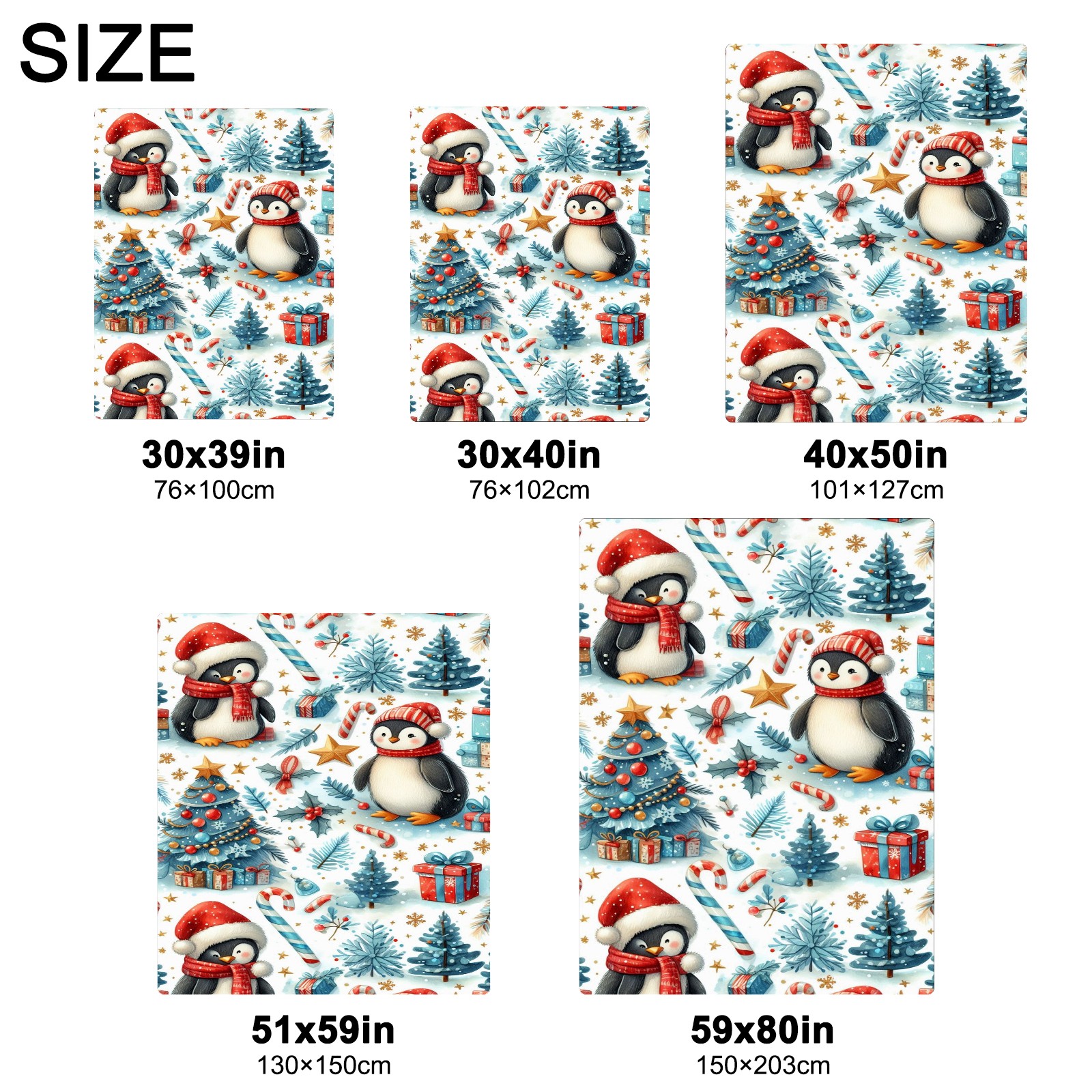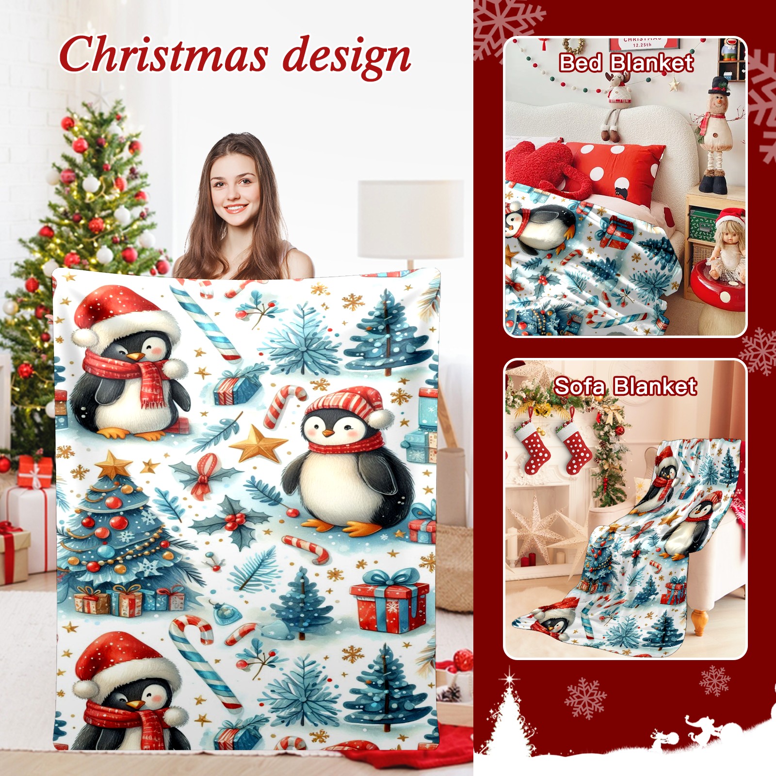 Премиальная фланелевая одеяло Light Blue Christmas Penguins Trees
