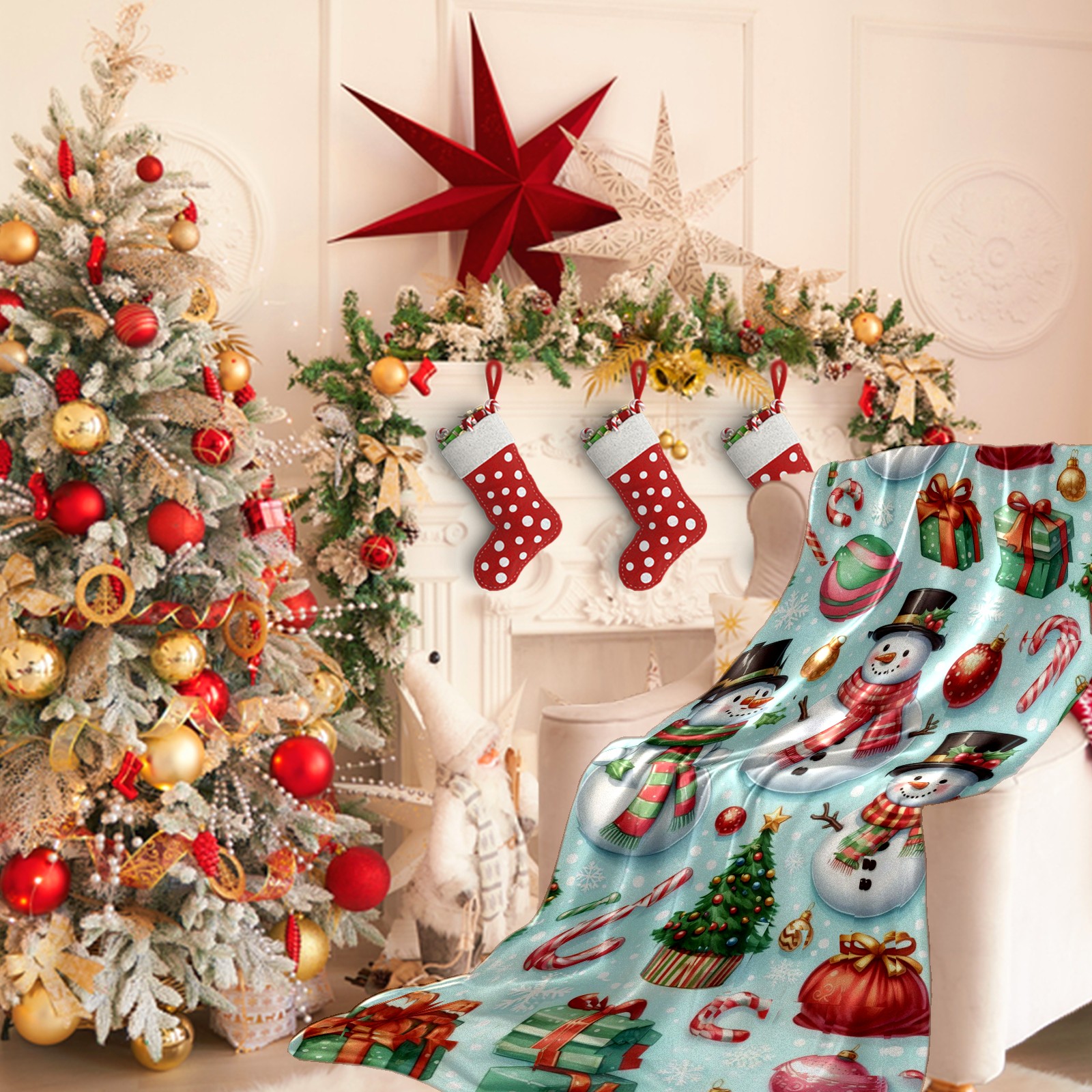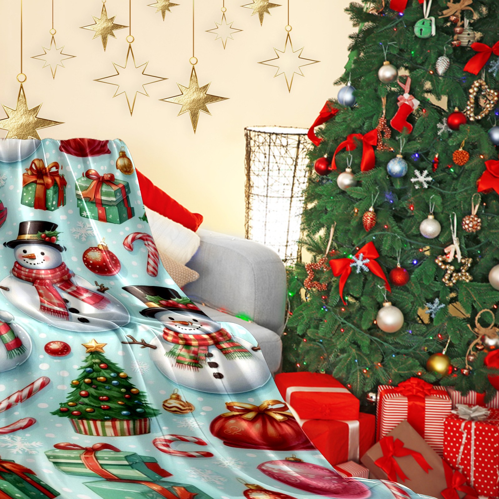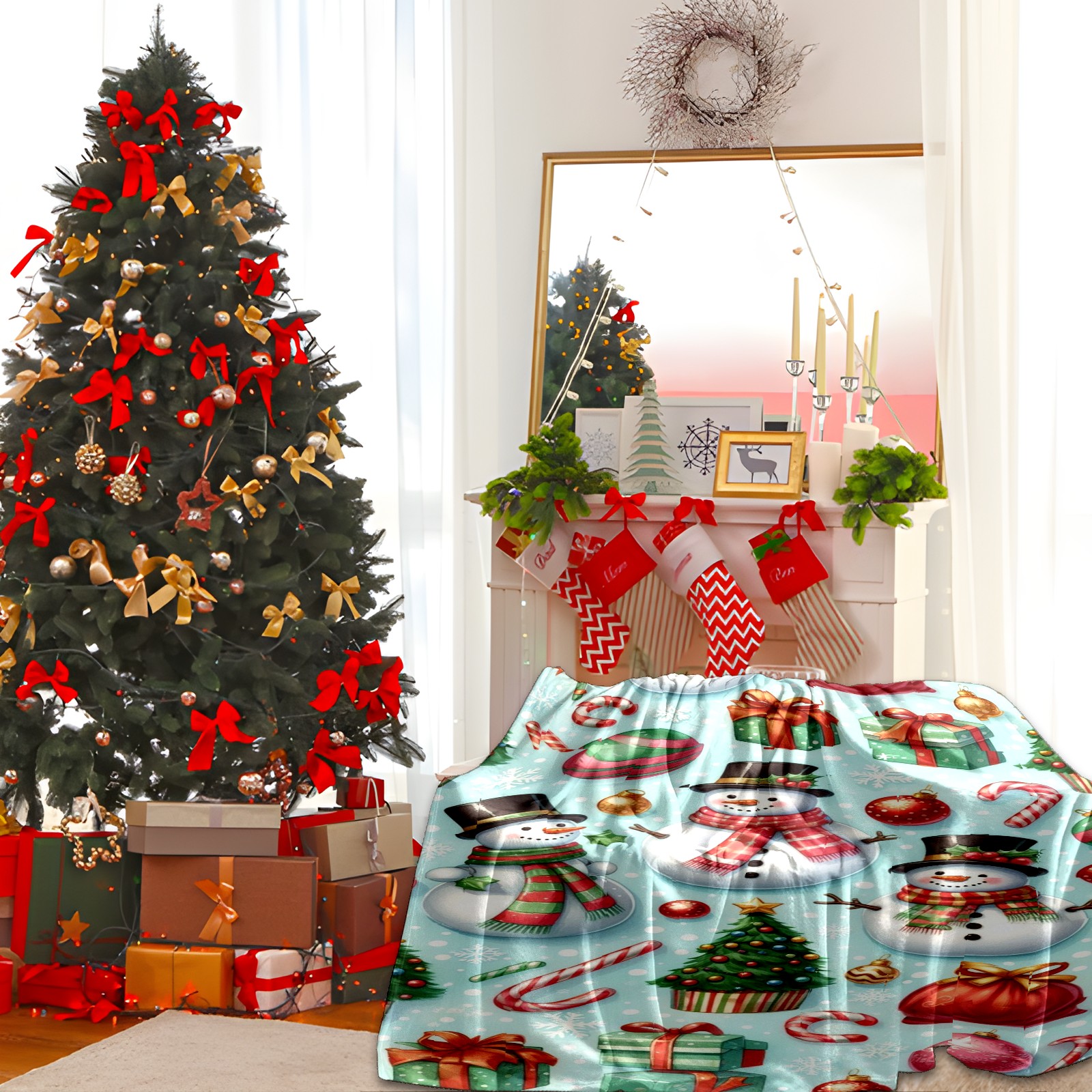 Премиальная фланелевая одеяло Light Blue Christmas Snowman Gifts