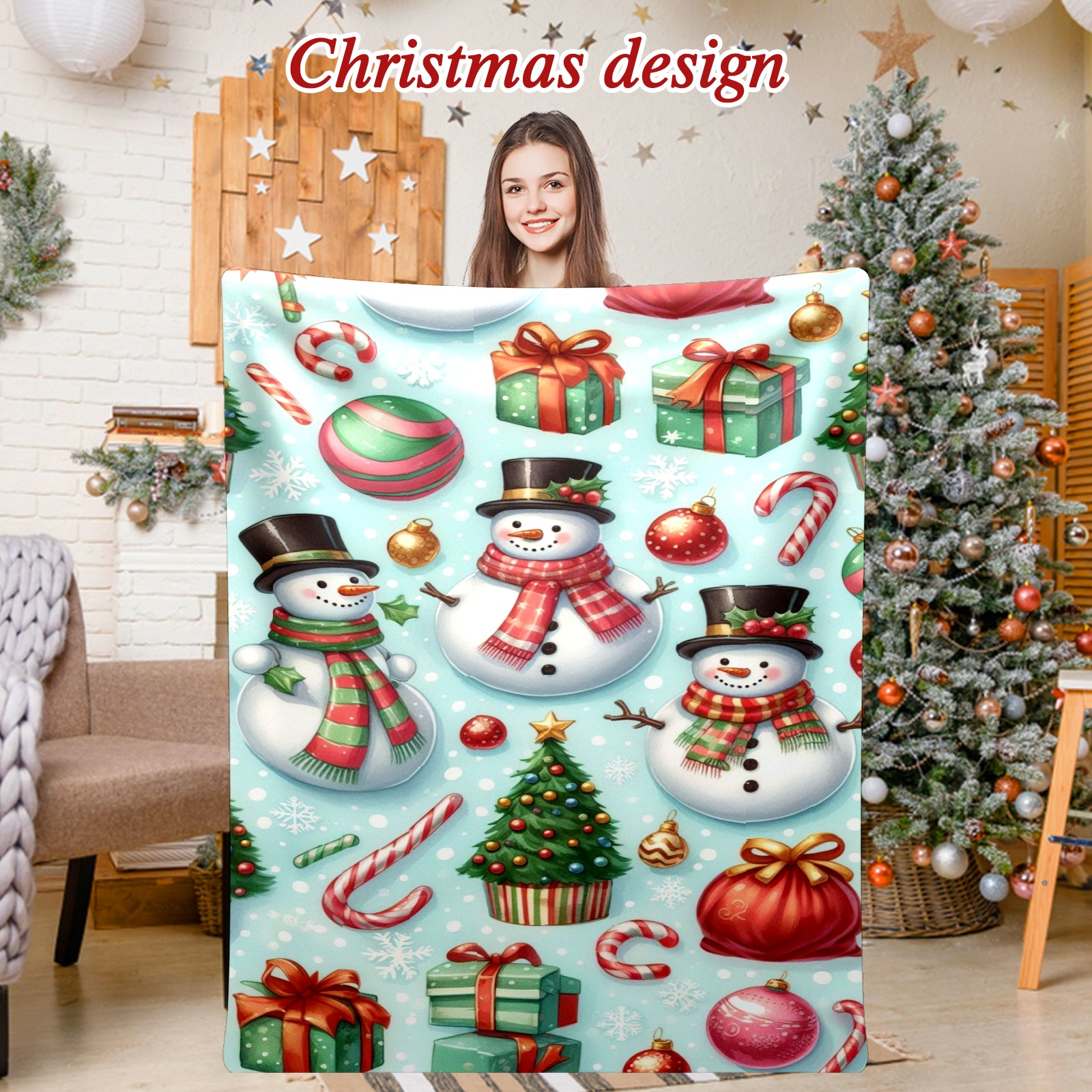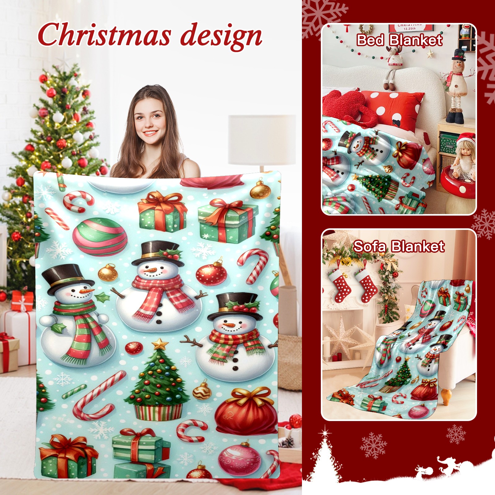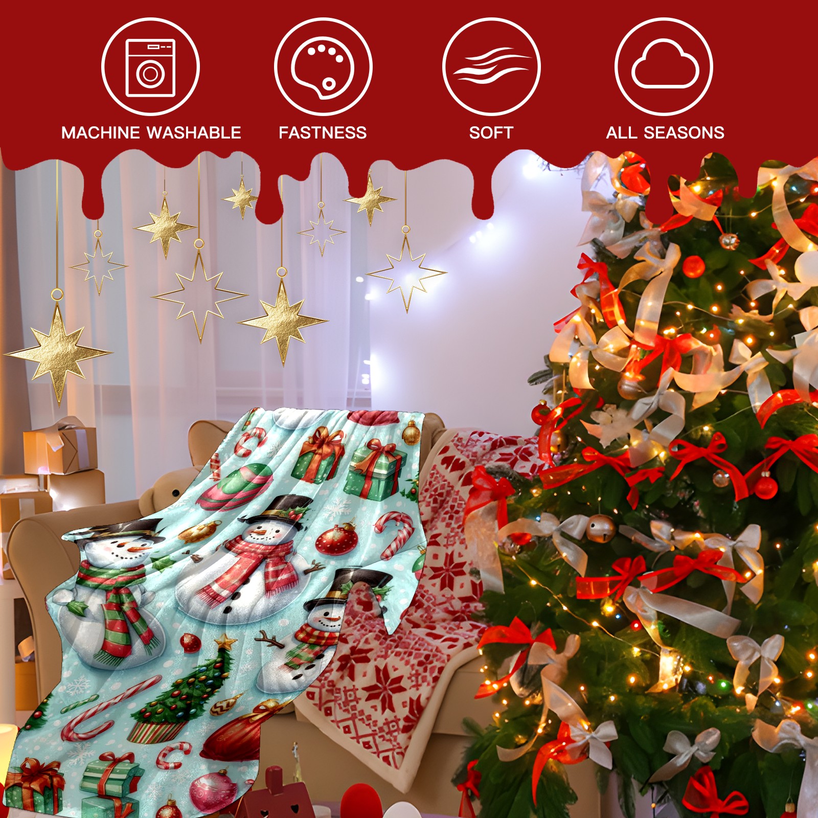 Премиальная фланелевая одеяло Light Blue Christmas Snowman Gifts