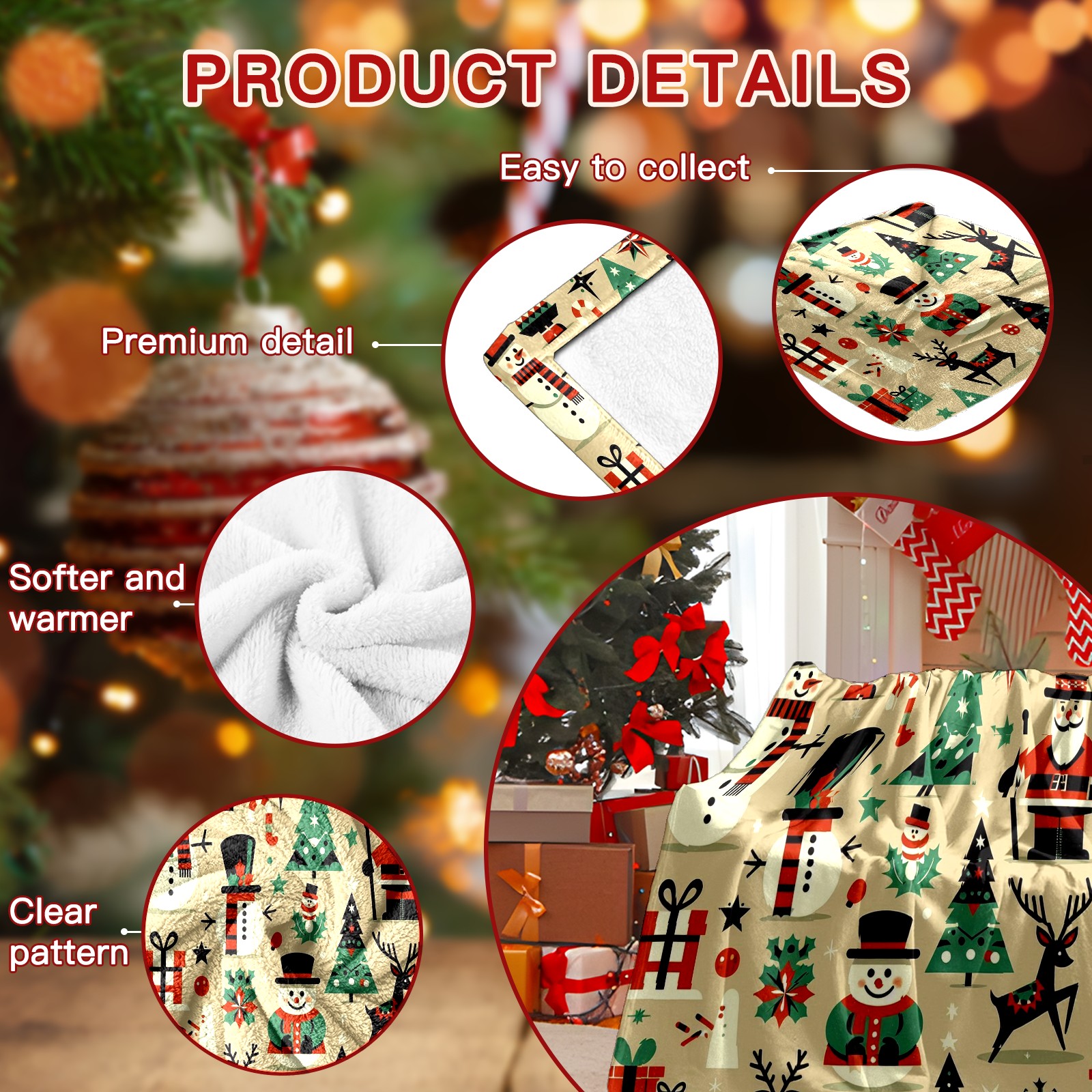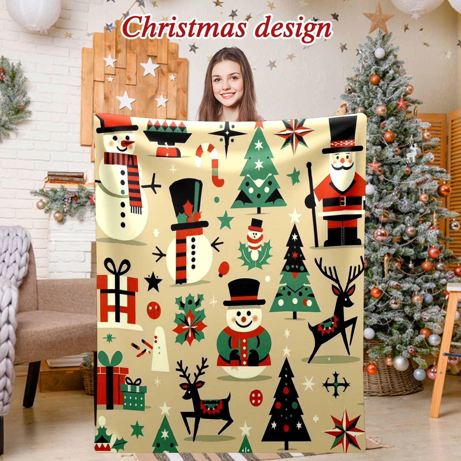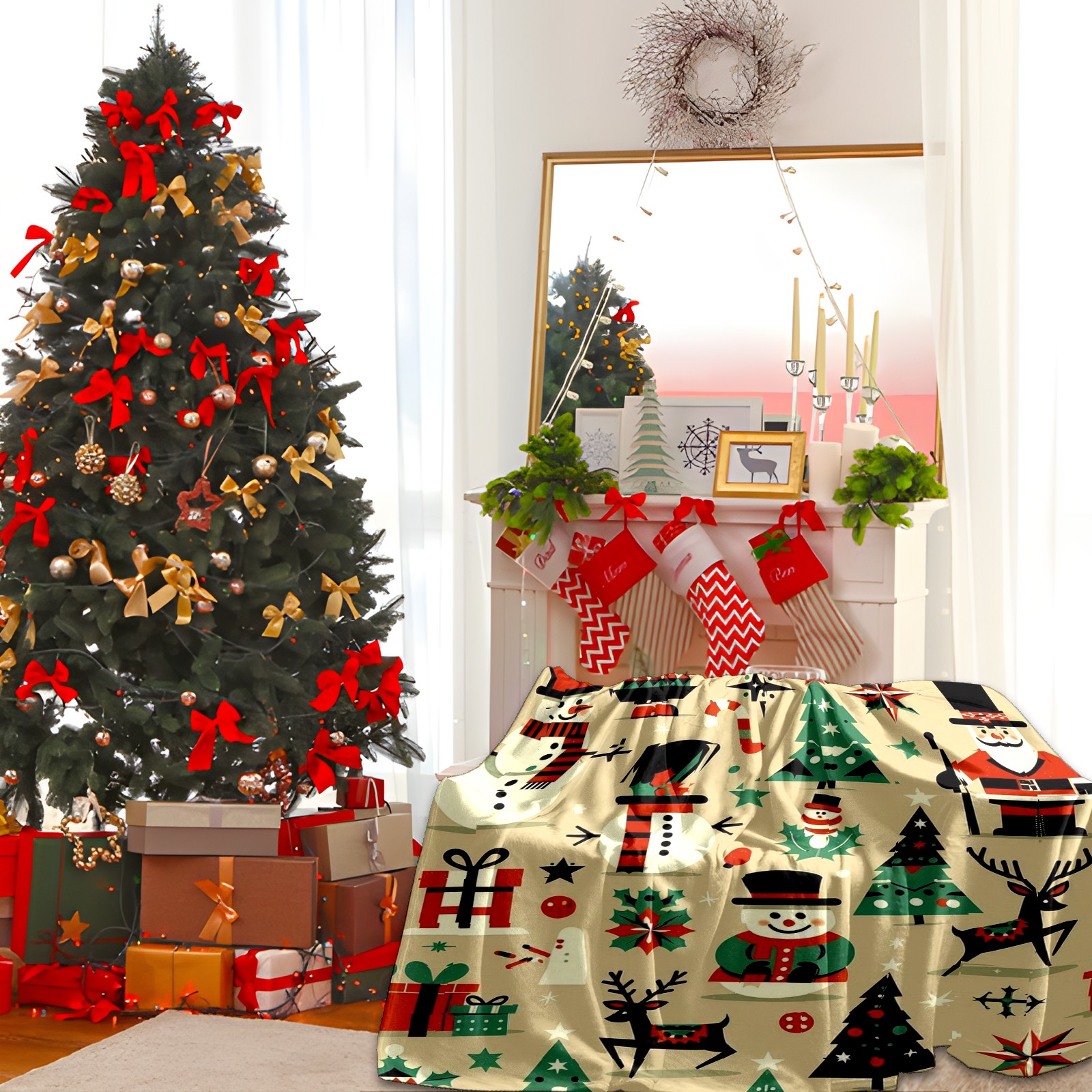 Премиальная фланелевая одеяло Beige Christmas Snowman Deer