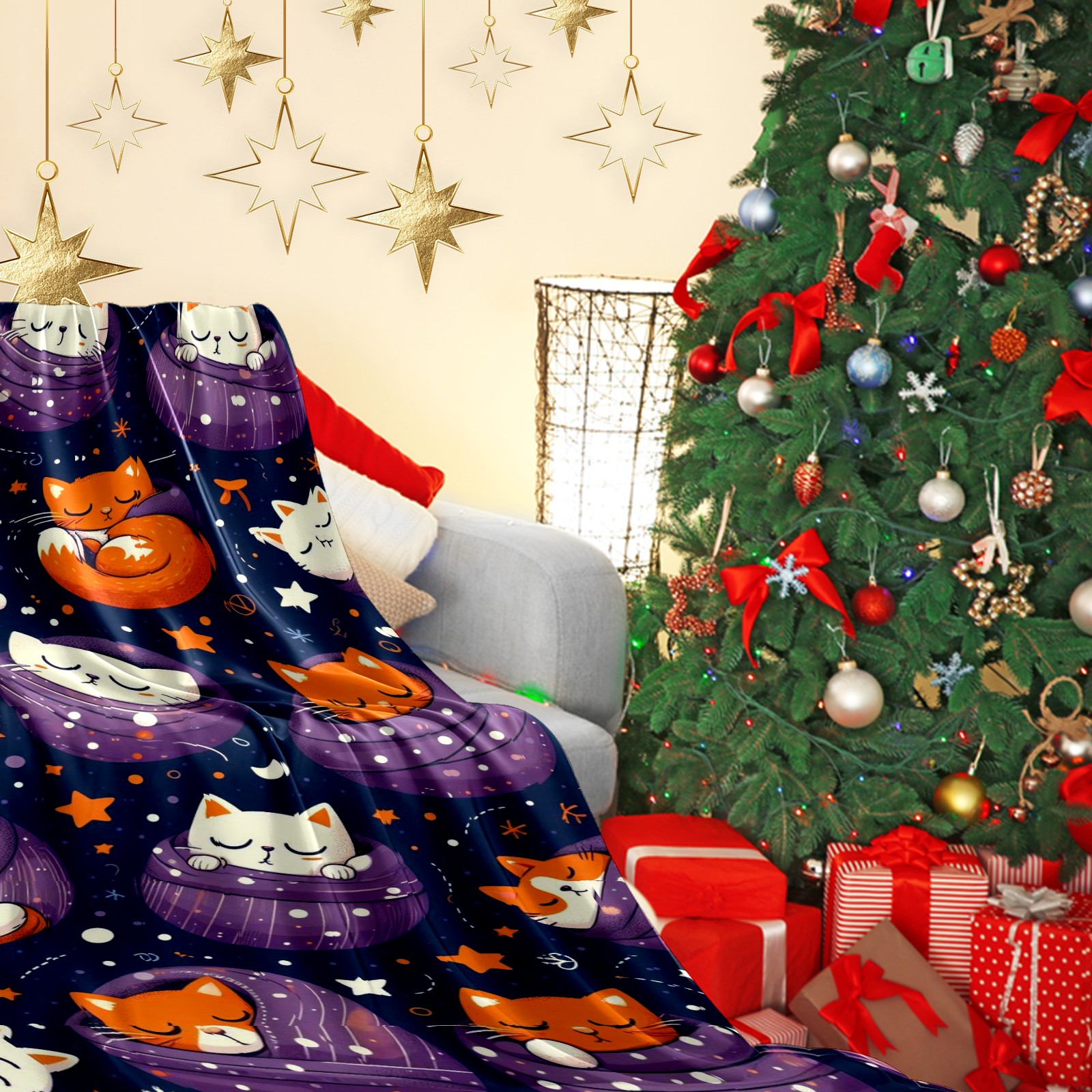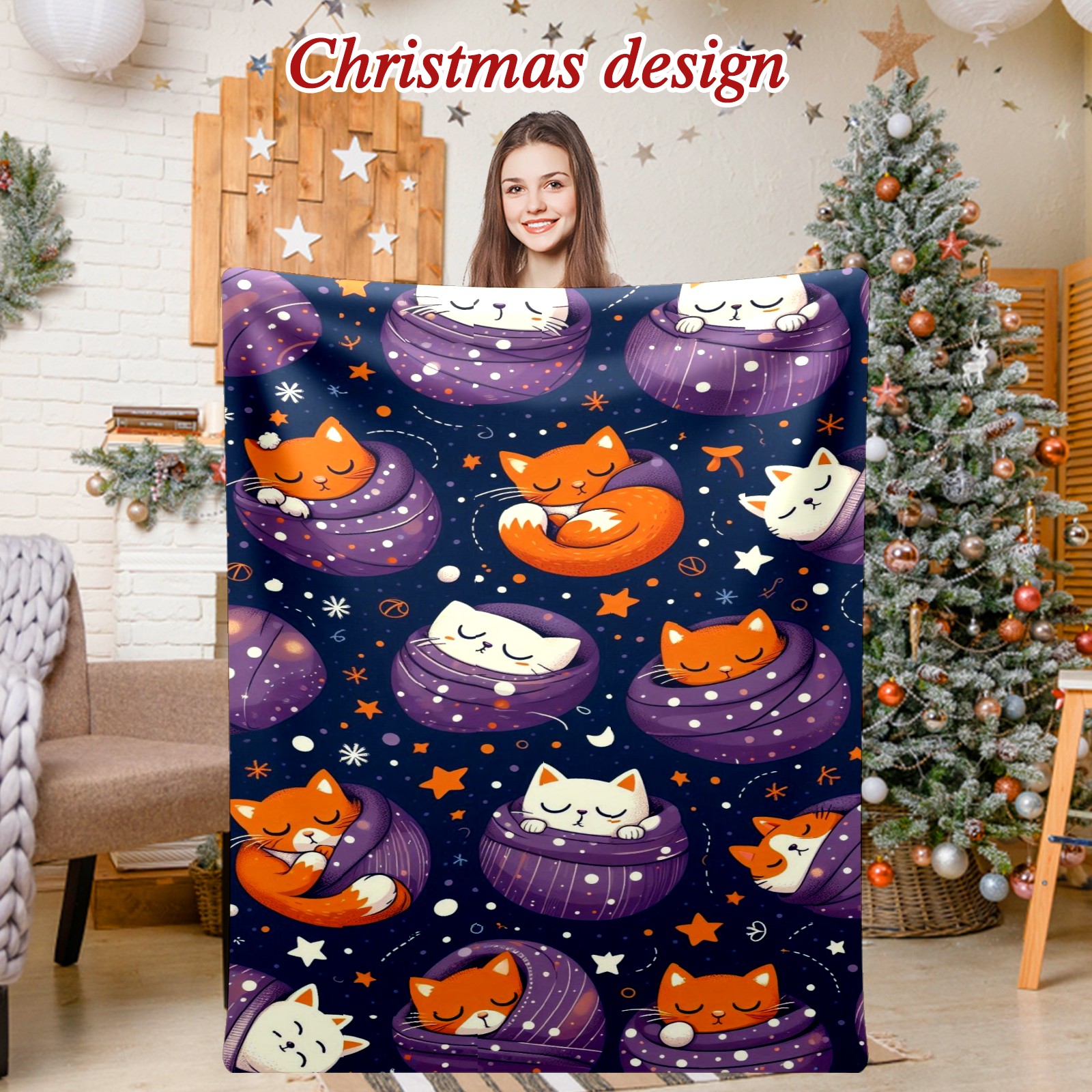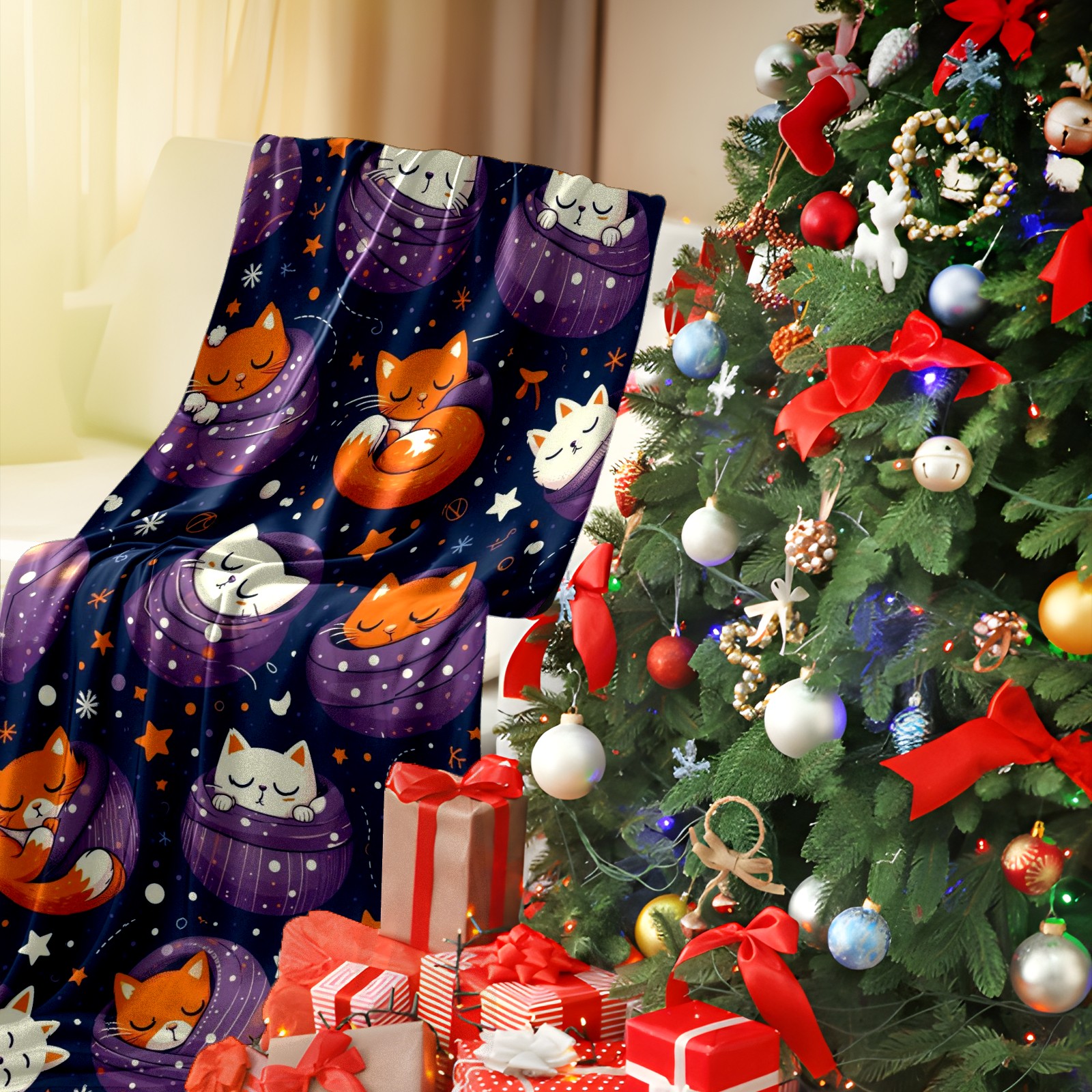 Премиальная фланелевая одеяло Purple Christmas Cats