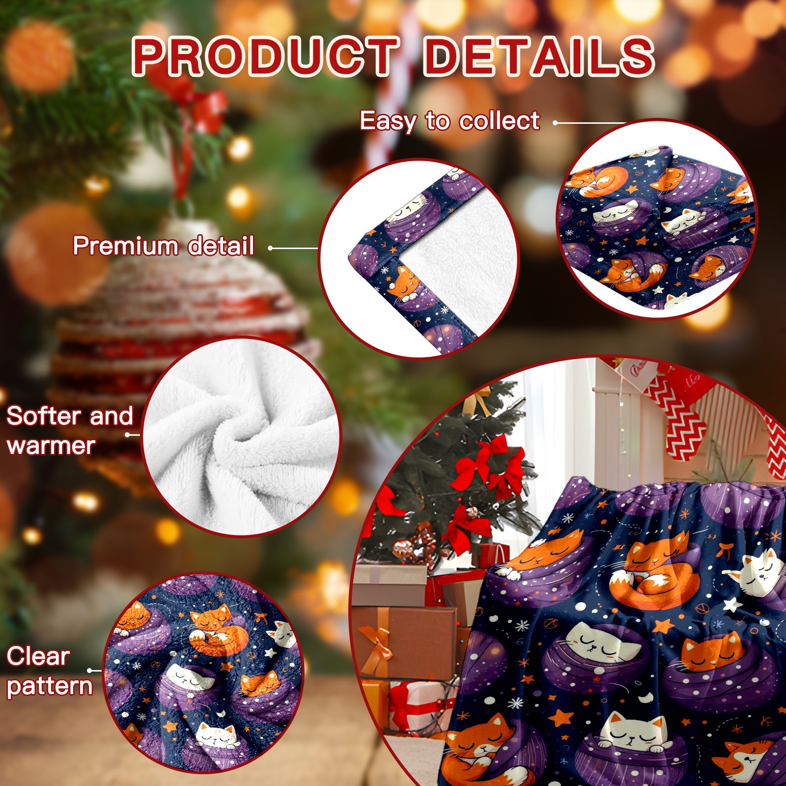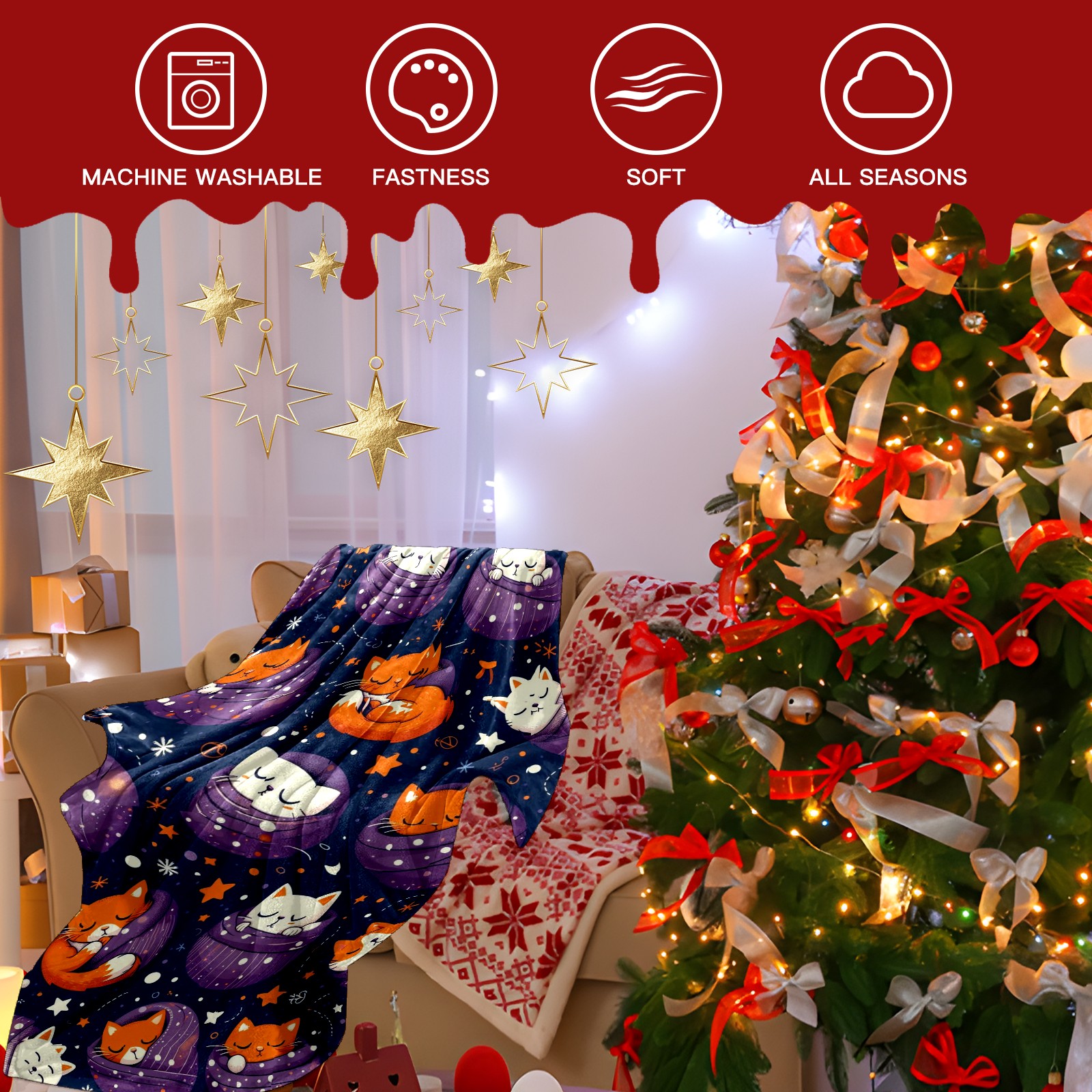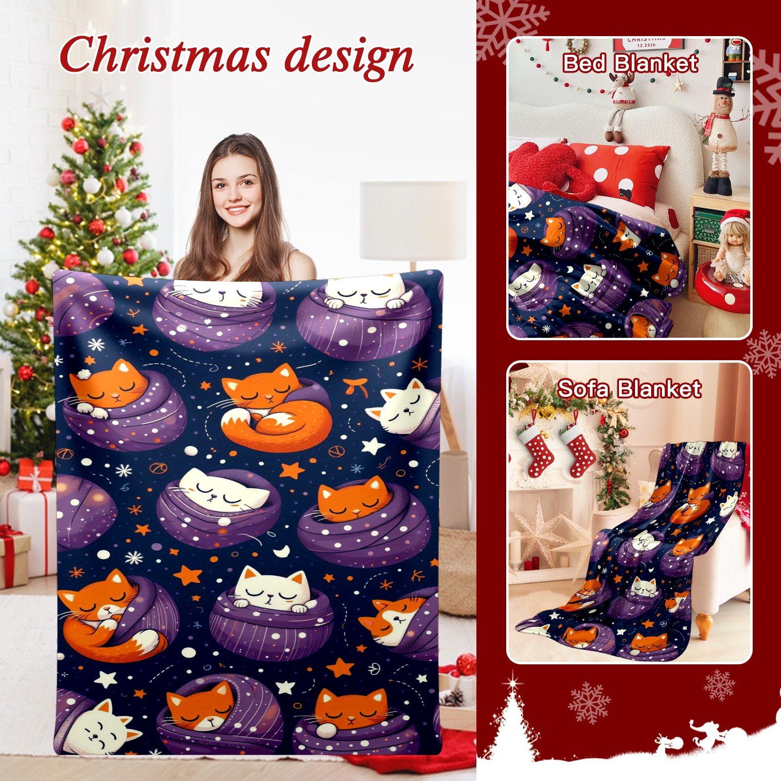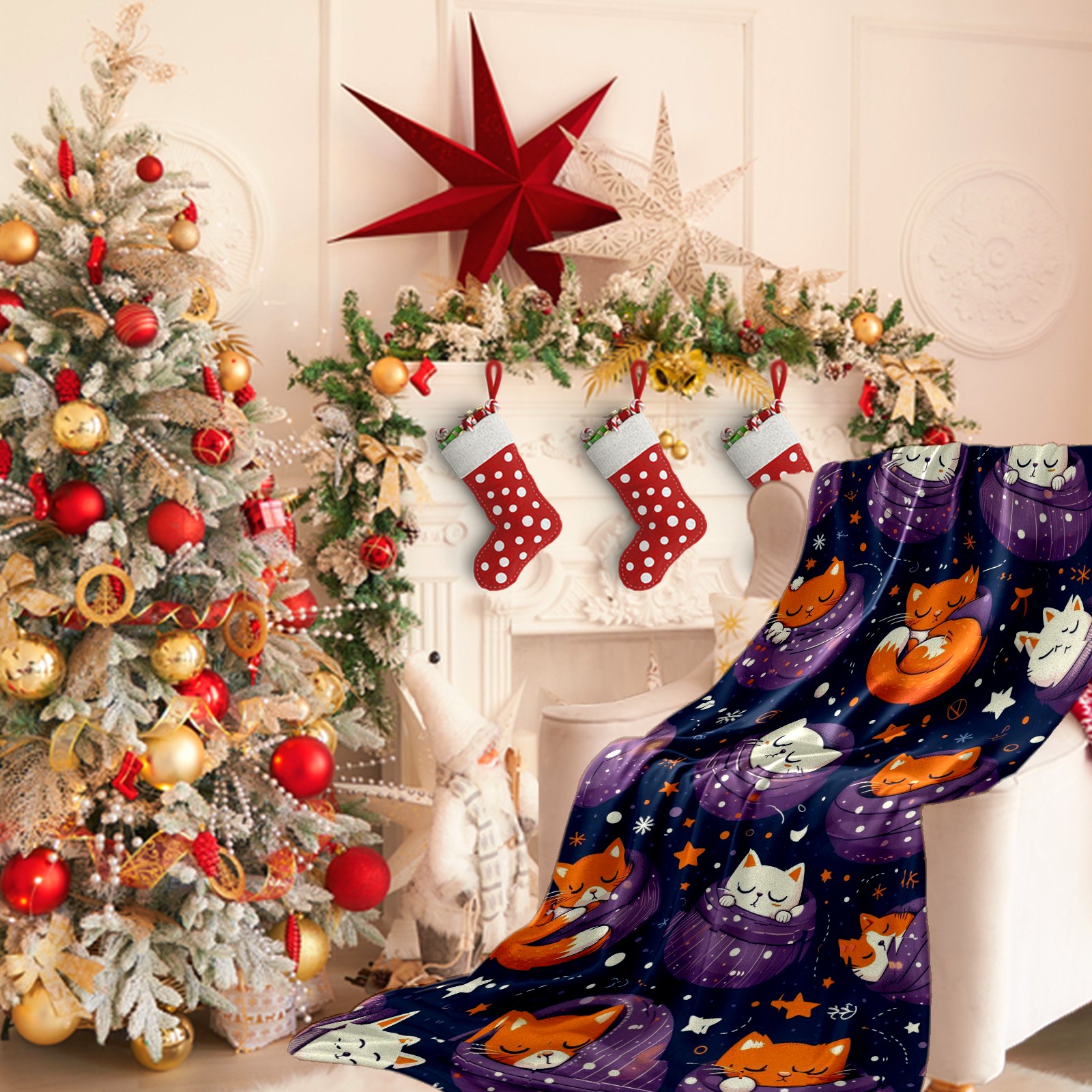 Премиальная фланелевая одеяло Purple Christmas Cats