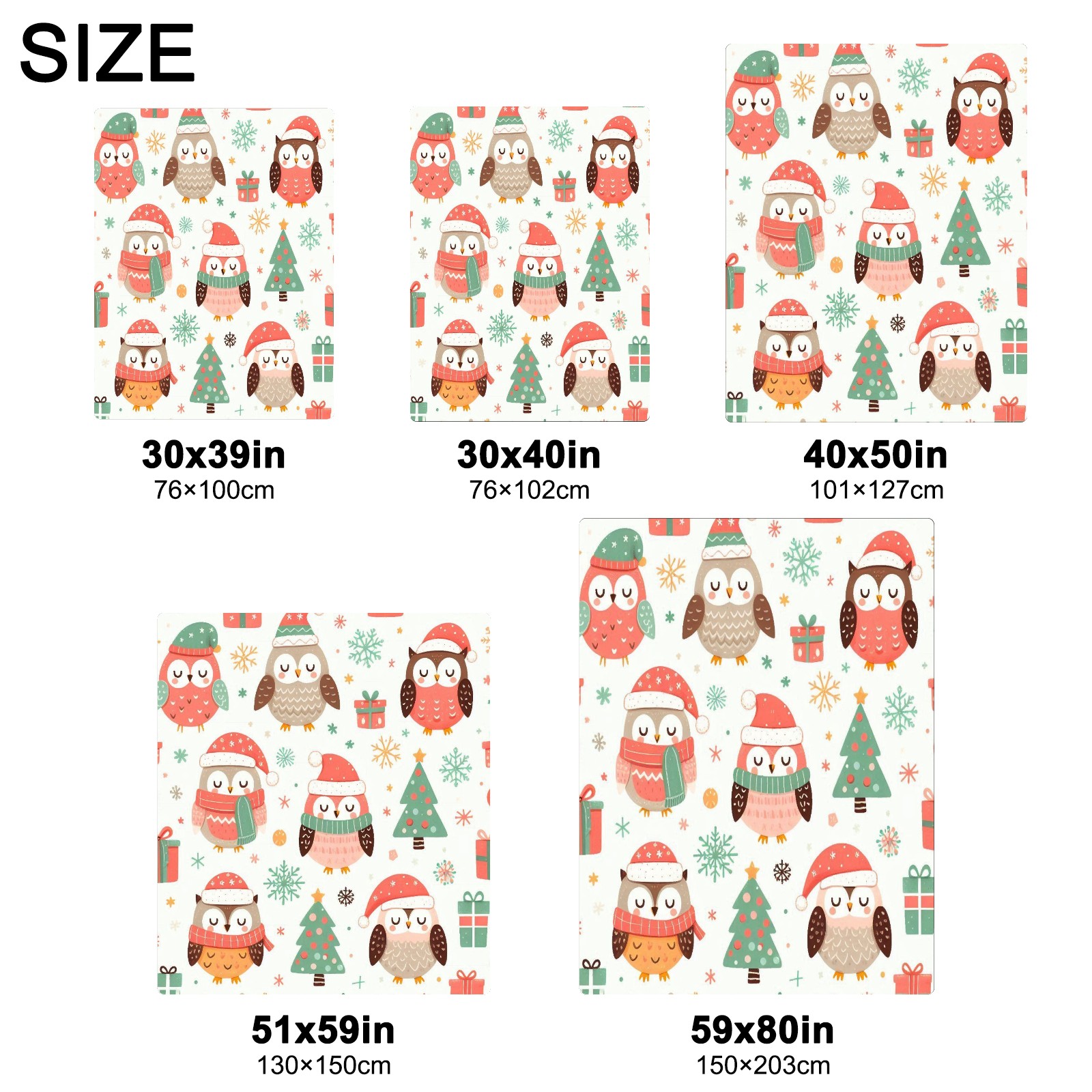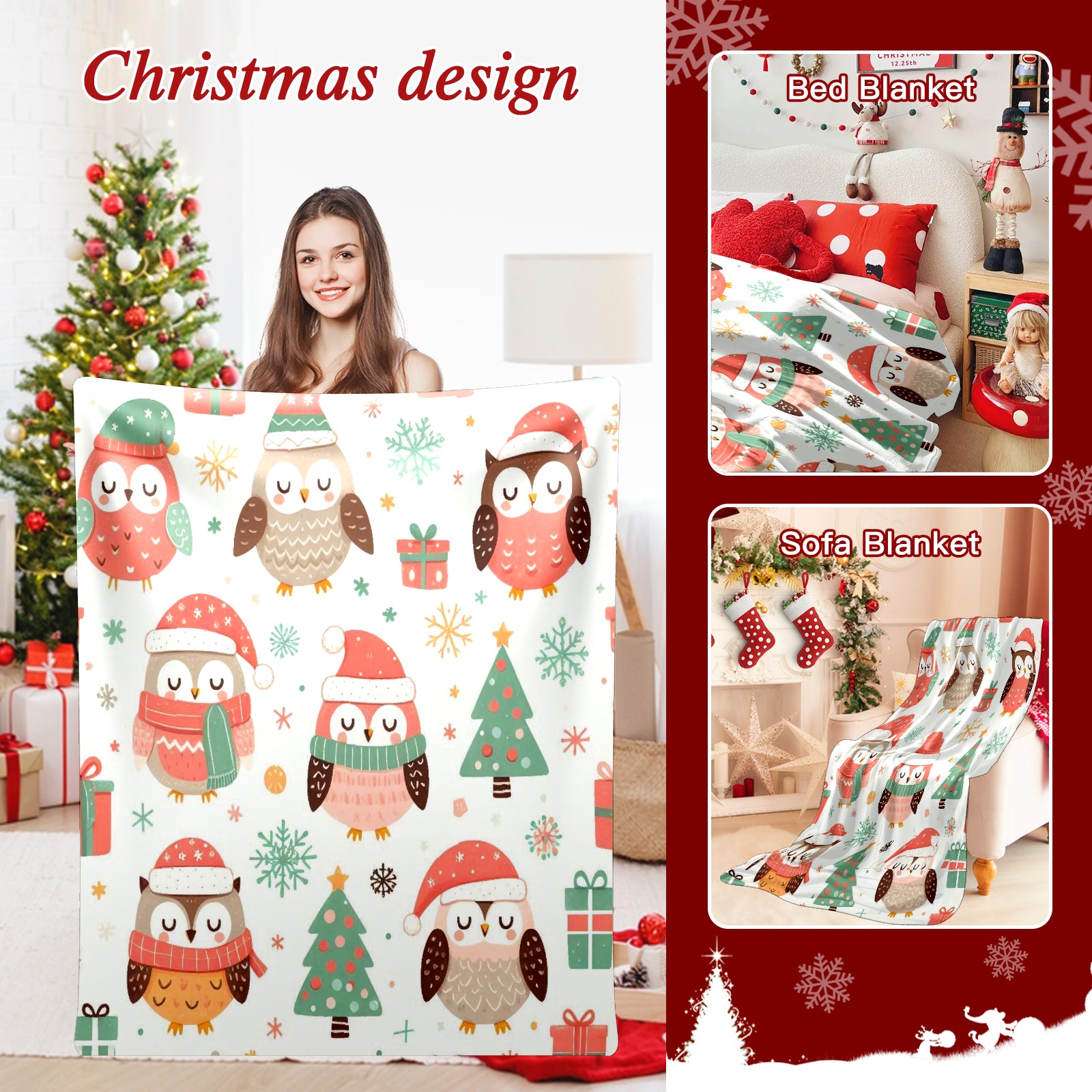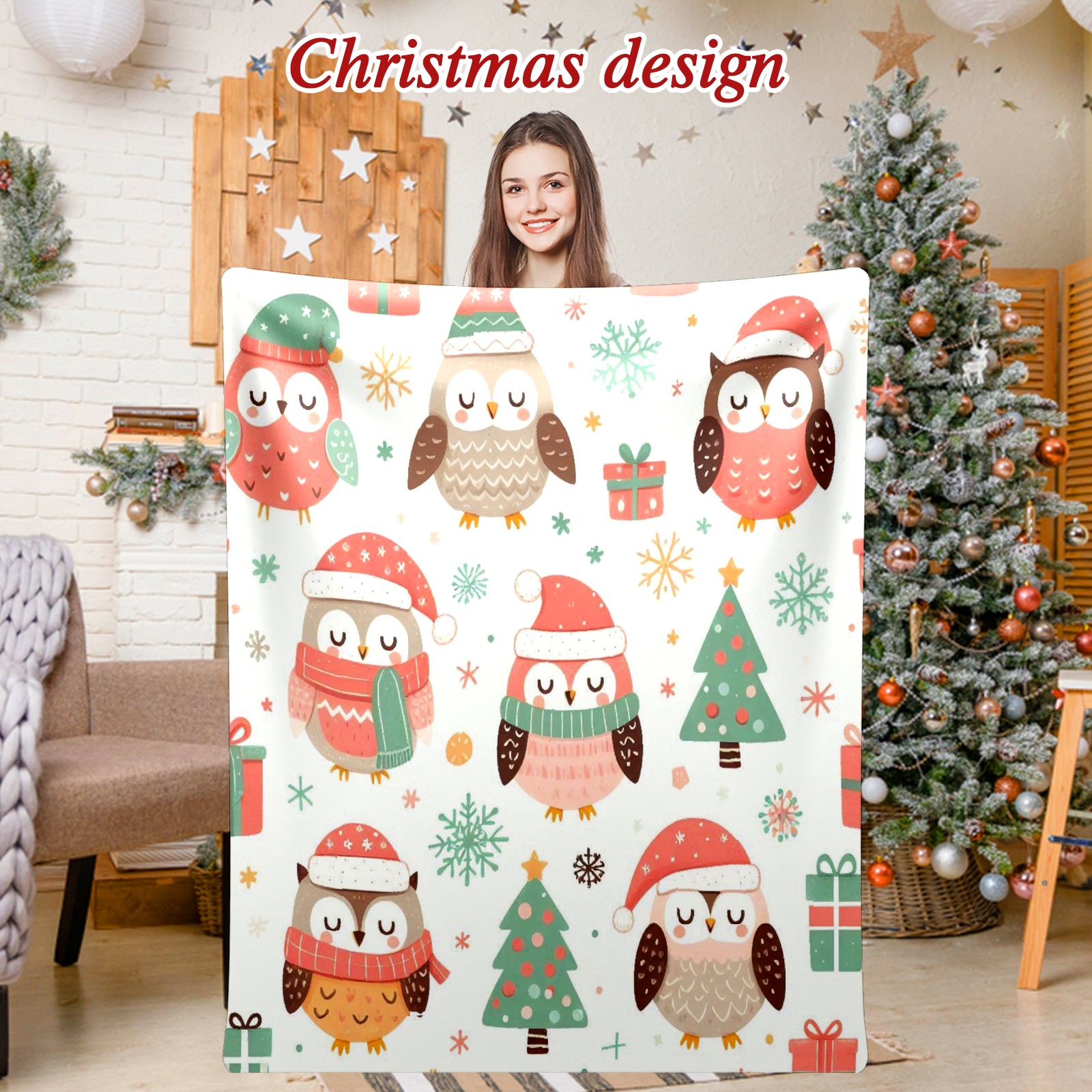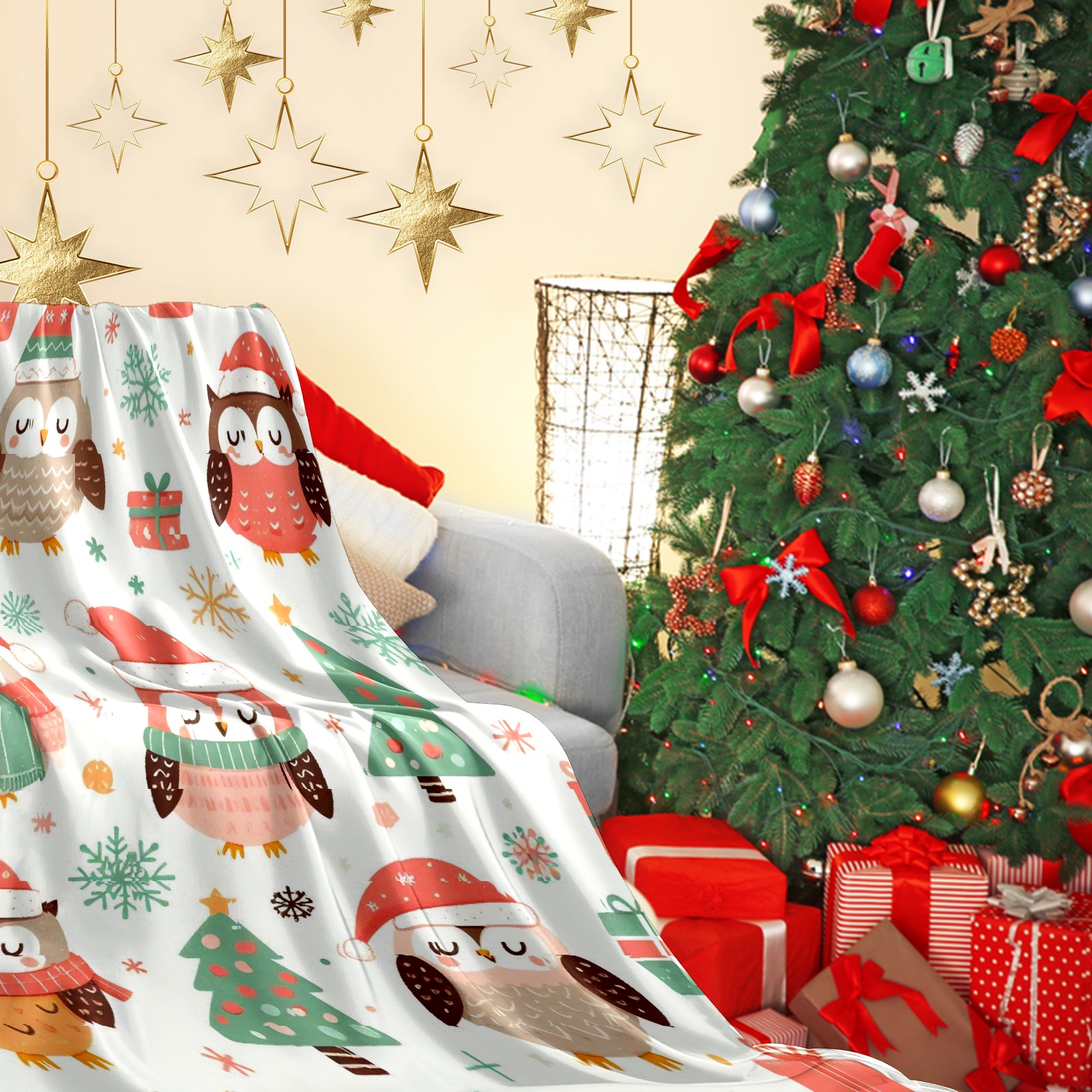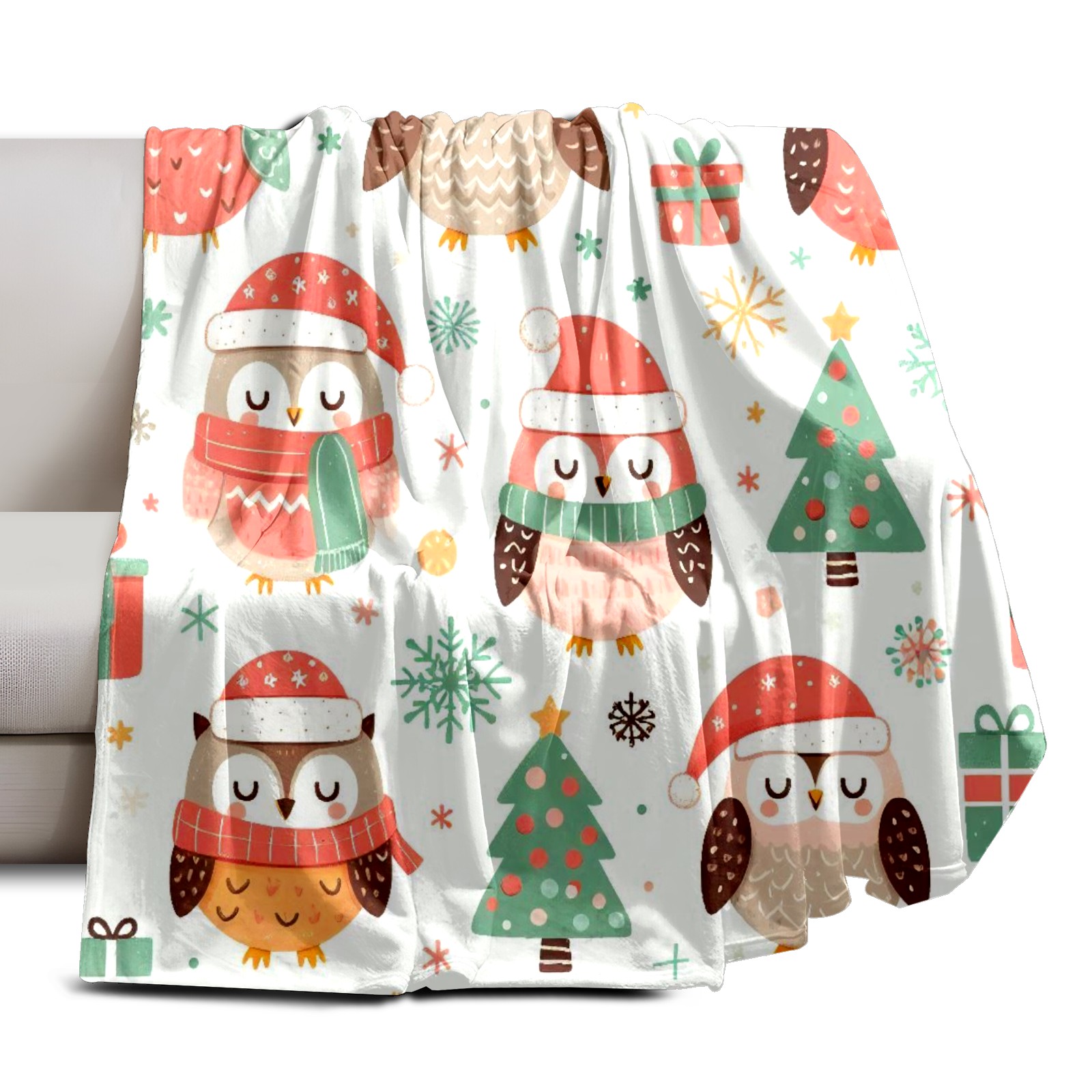 Премиальная фланелевая одеяло Light Blue Christmas Owls