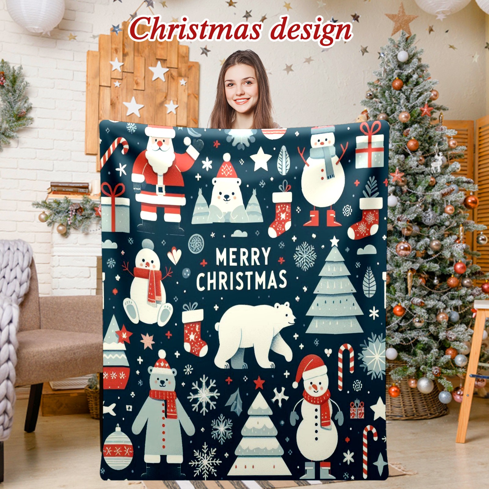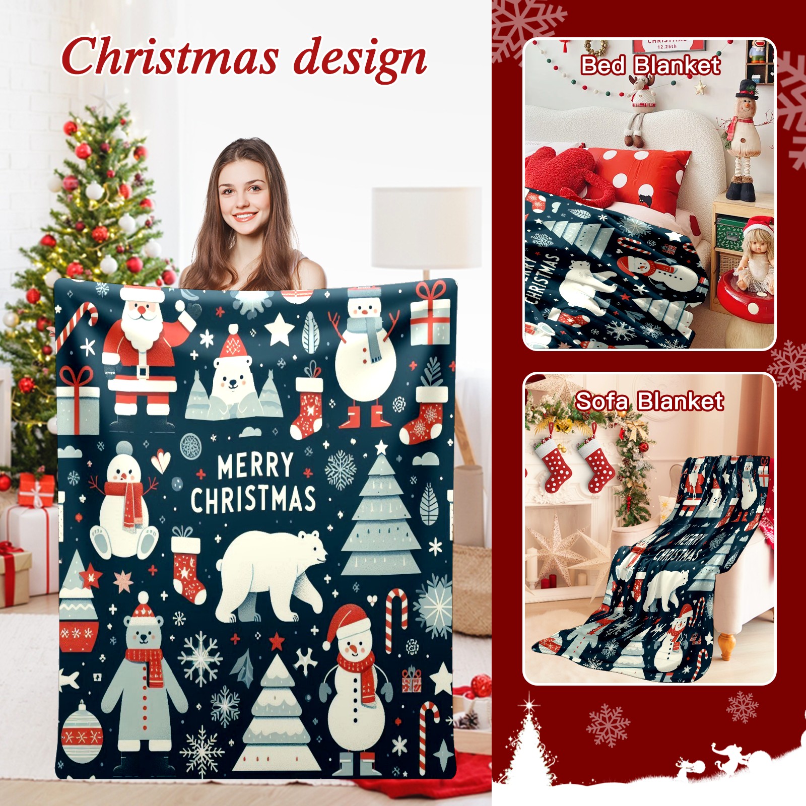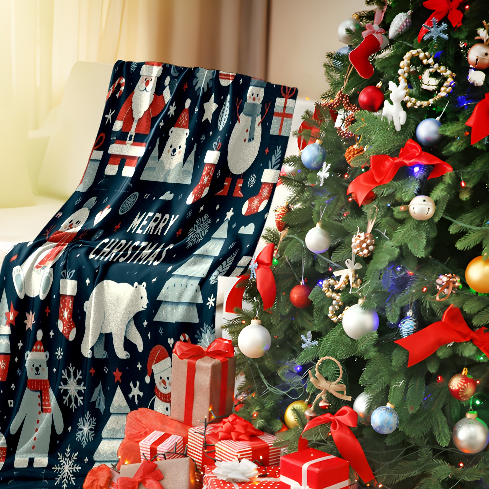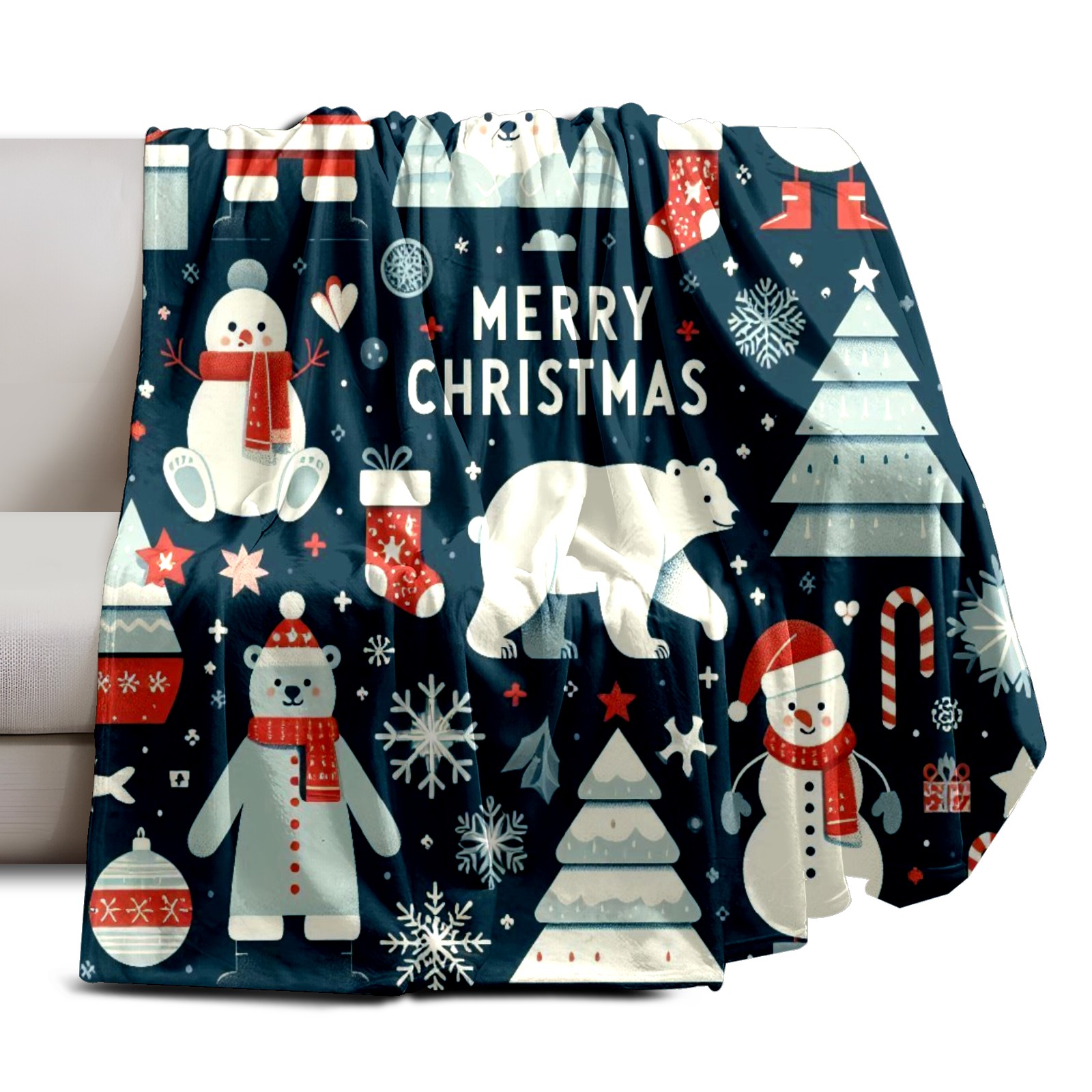 Премиальная фланелевая одеяло Dark Blue Christmas Snowman Polar Bear