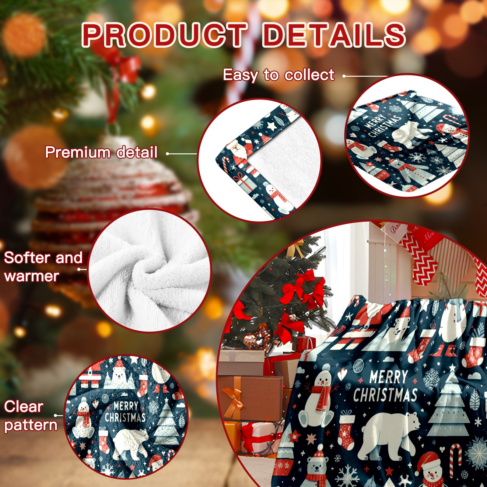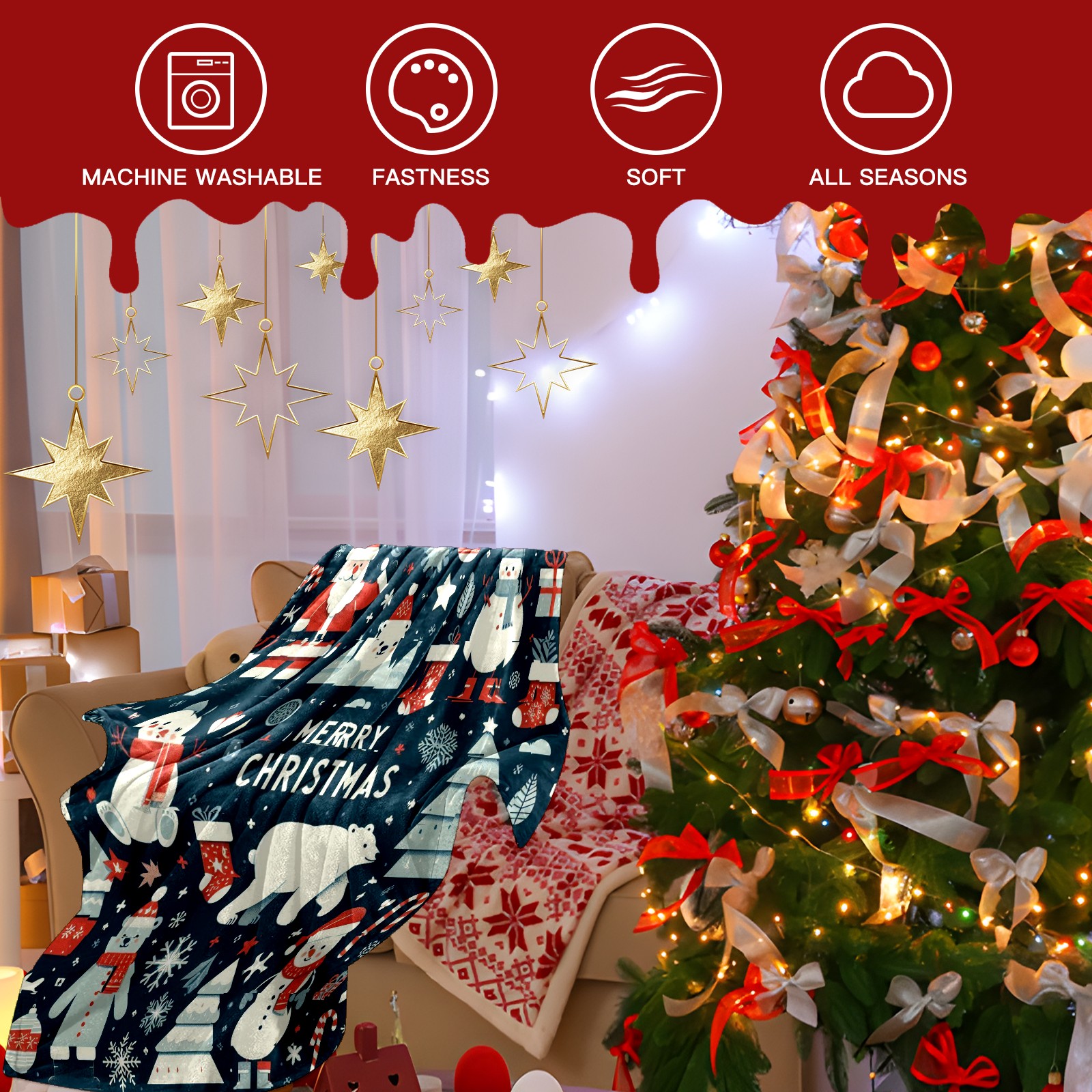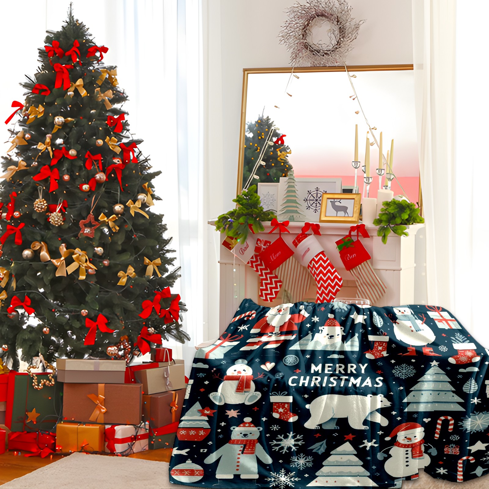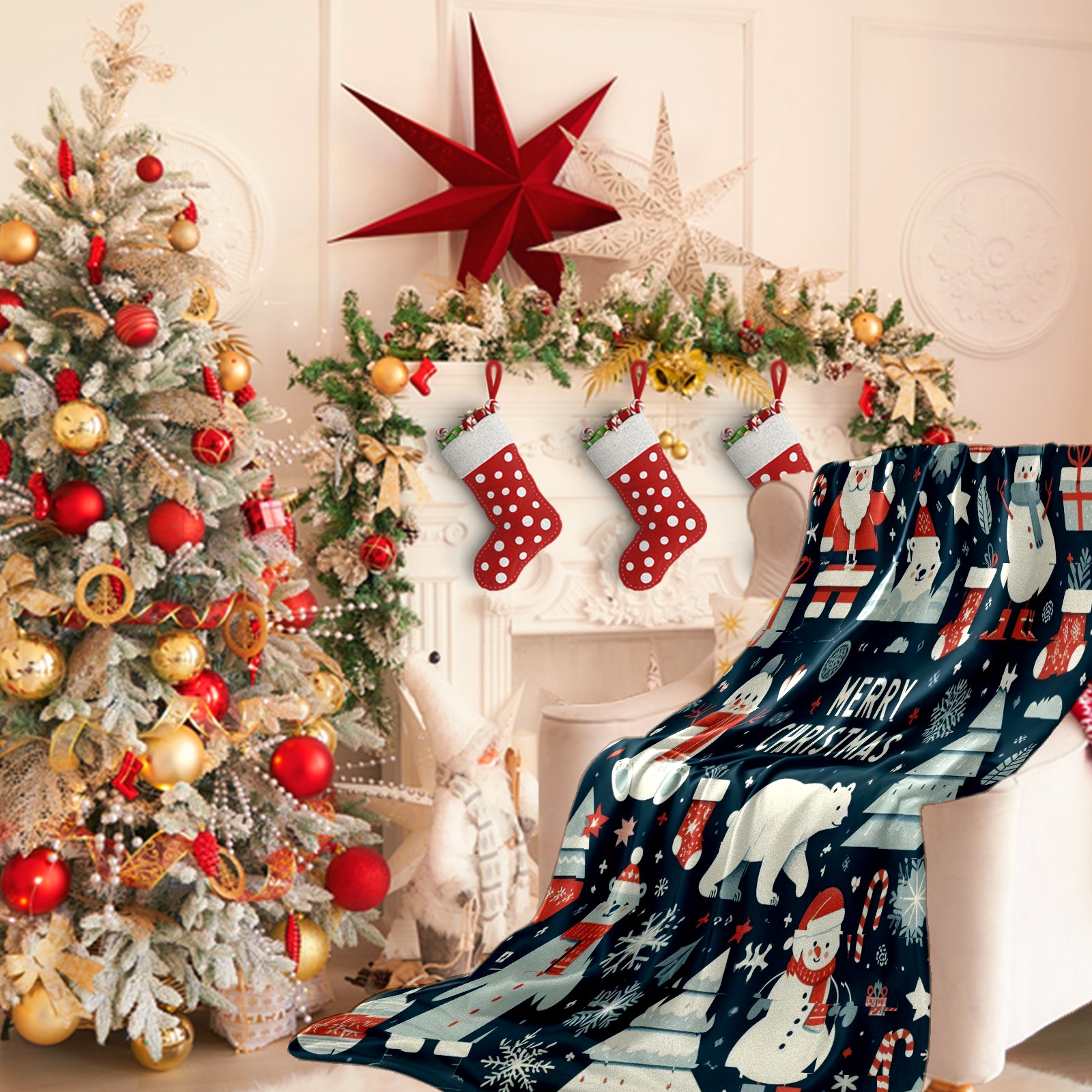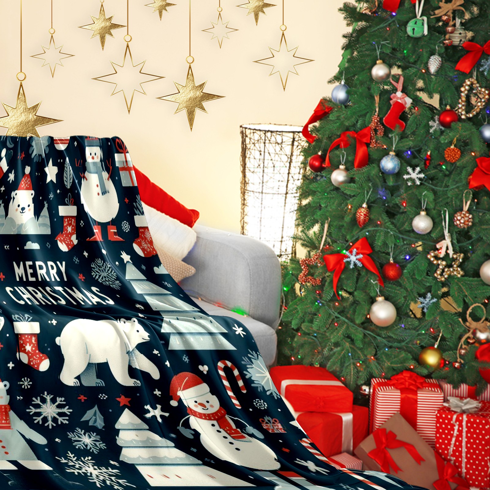 Премиальная фланелевая одеяло Dark Blue Christmas Snowman Polar Bear